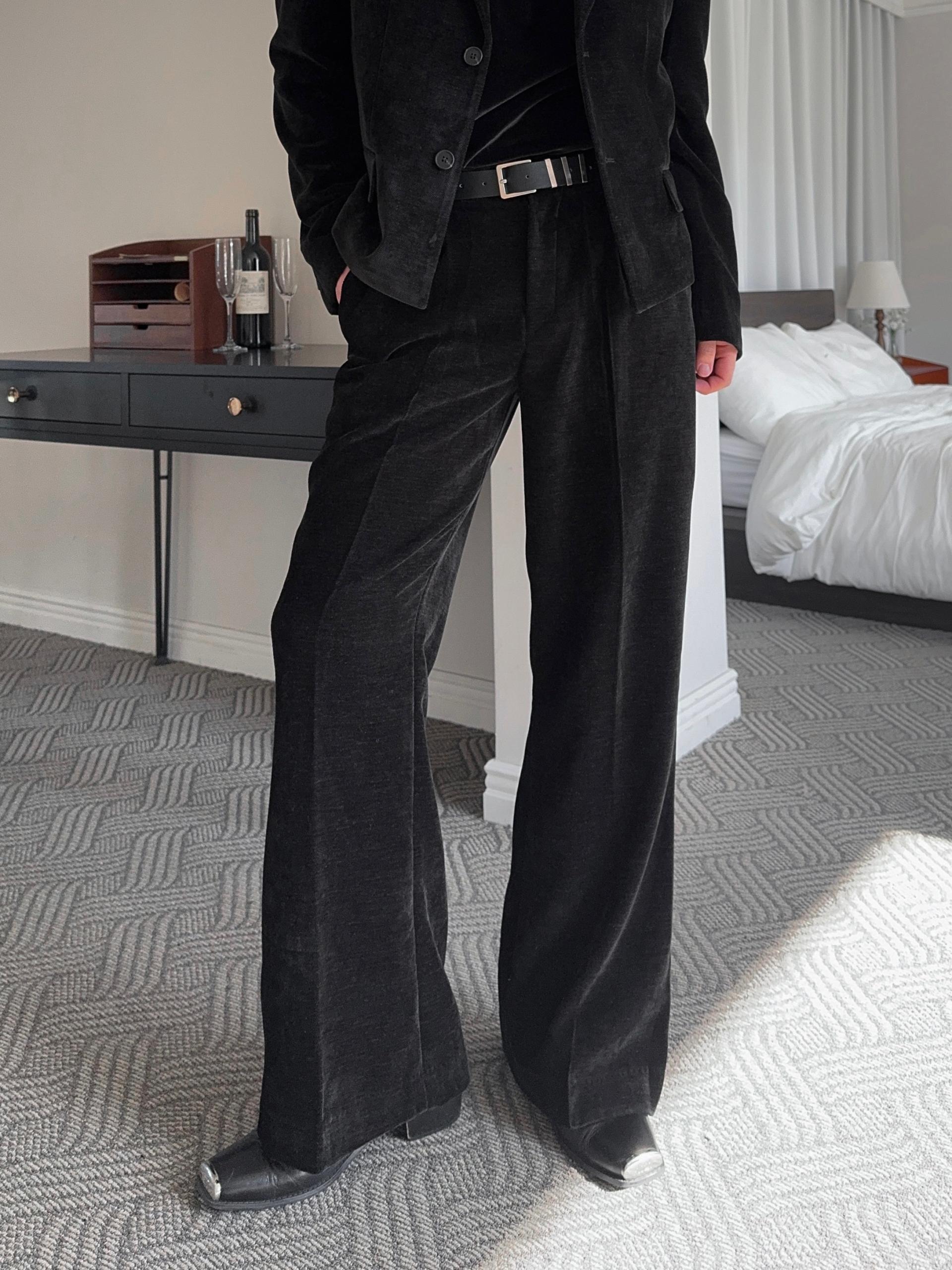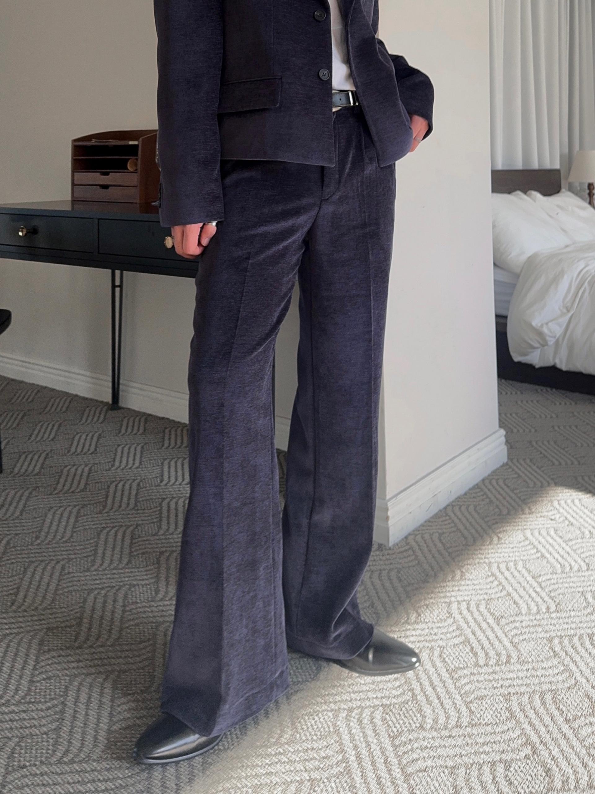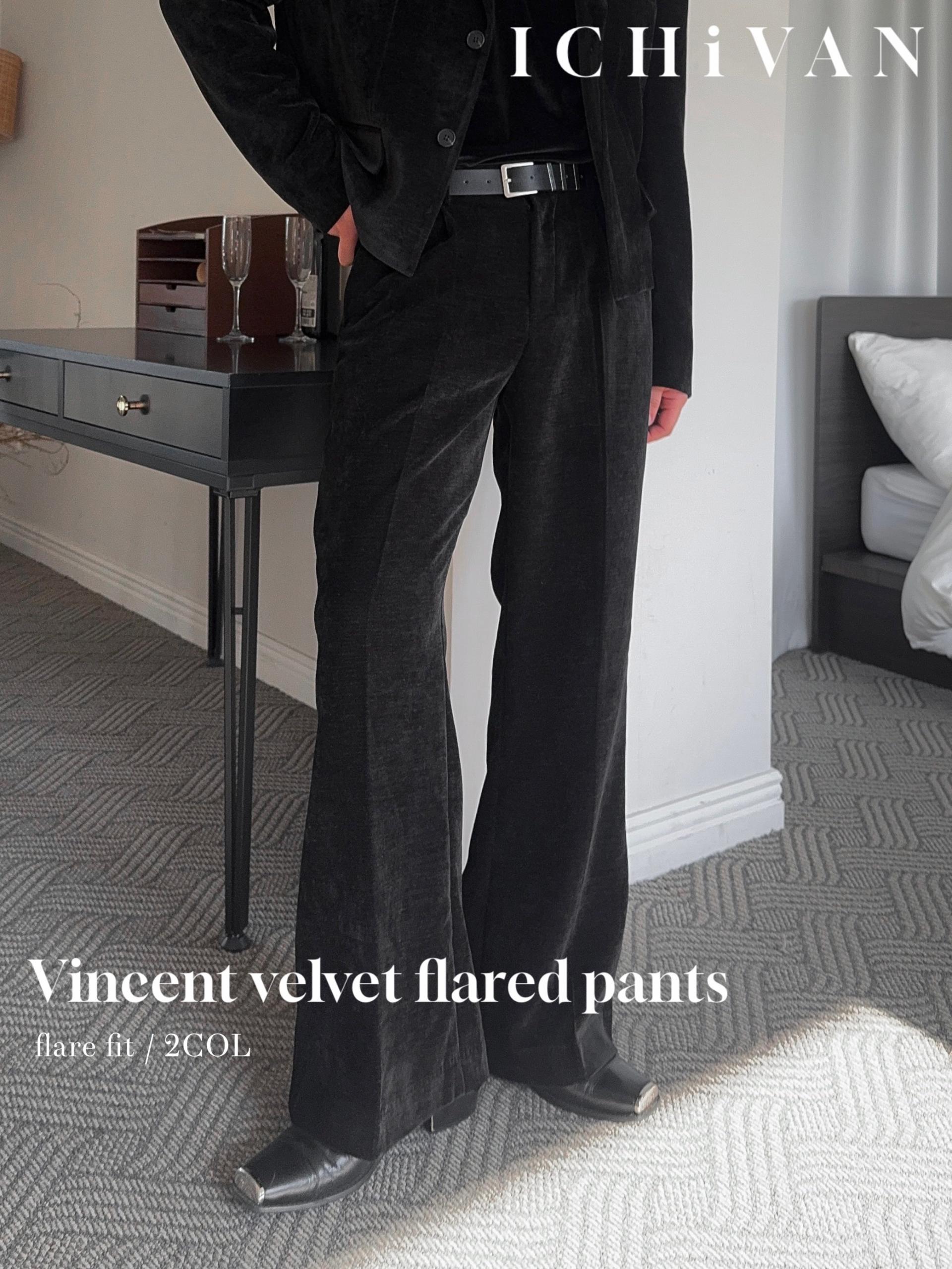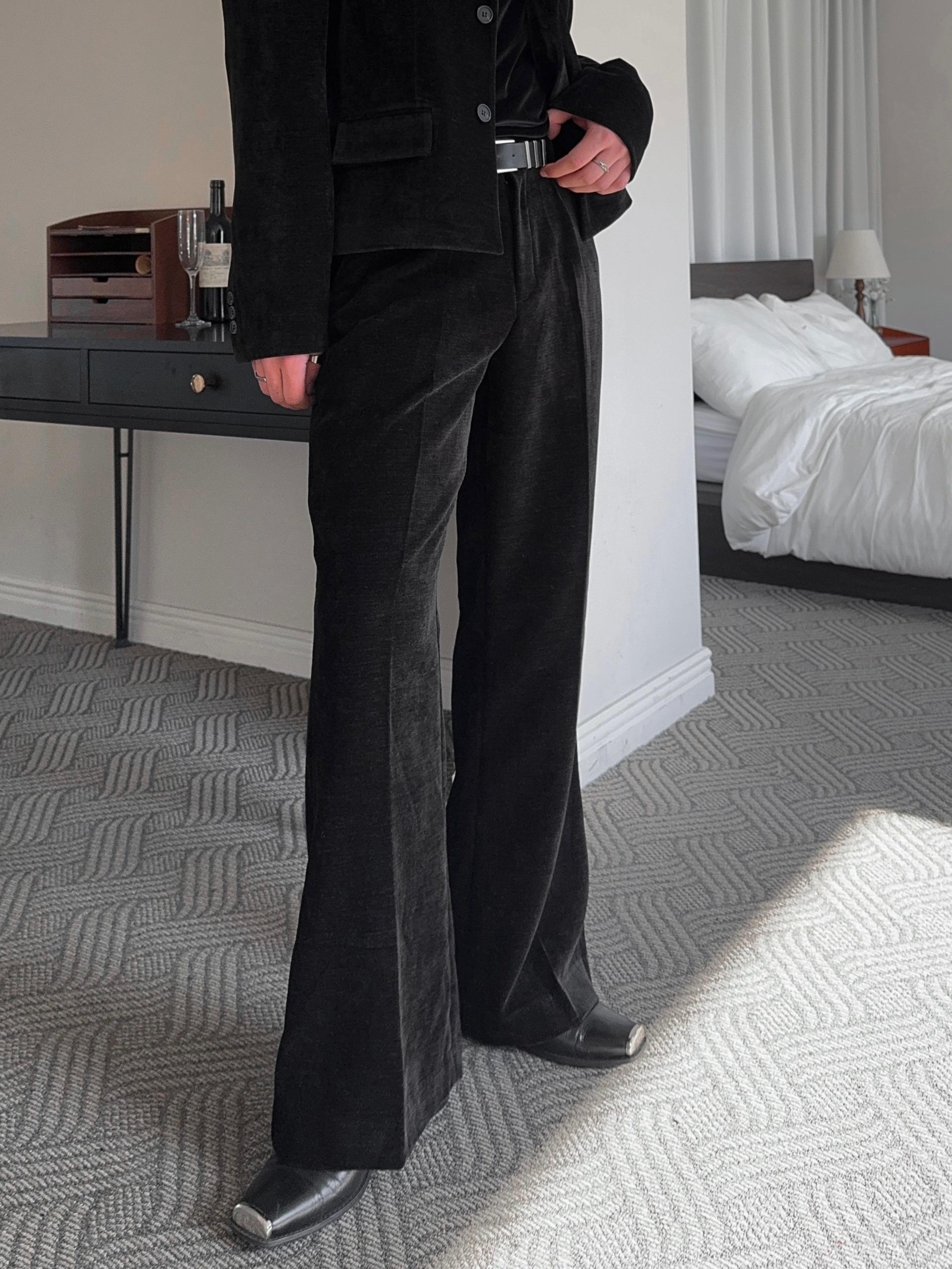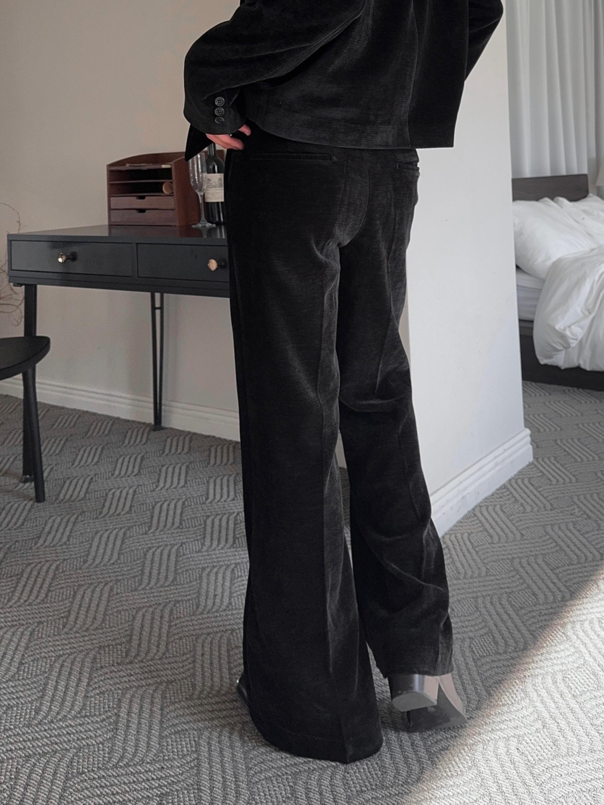 -부드러운 벨벳 소재로 제작된 플레어 팬츠