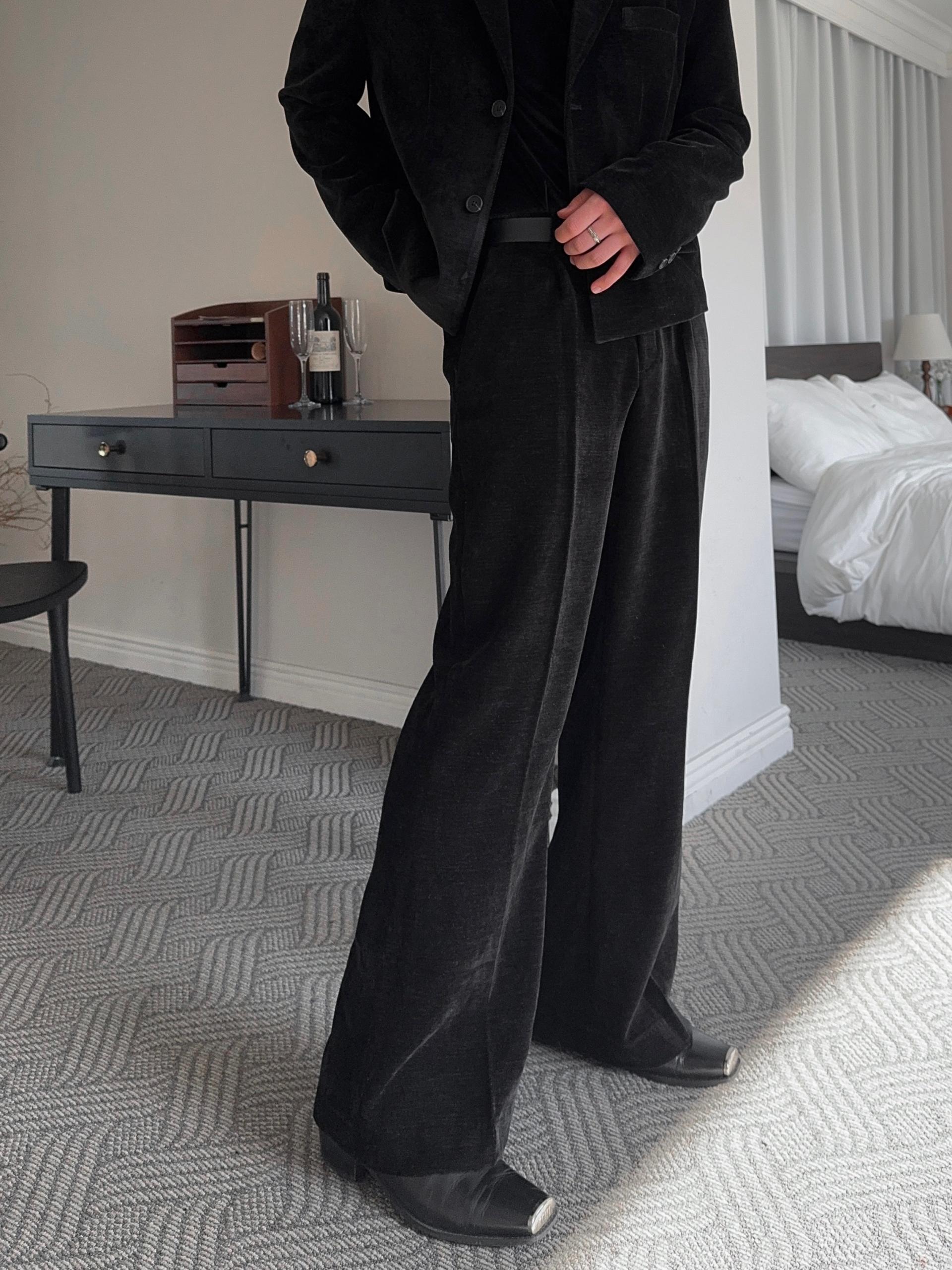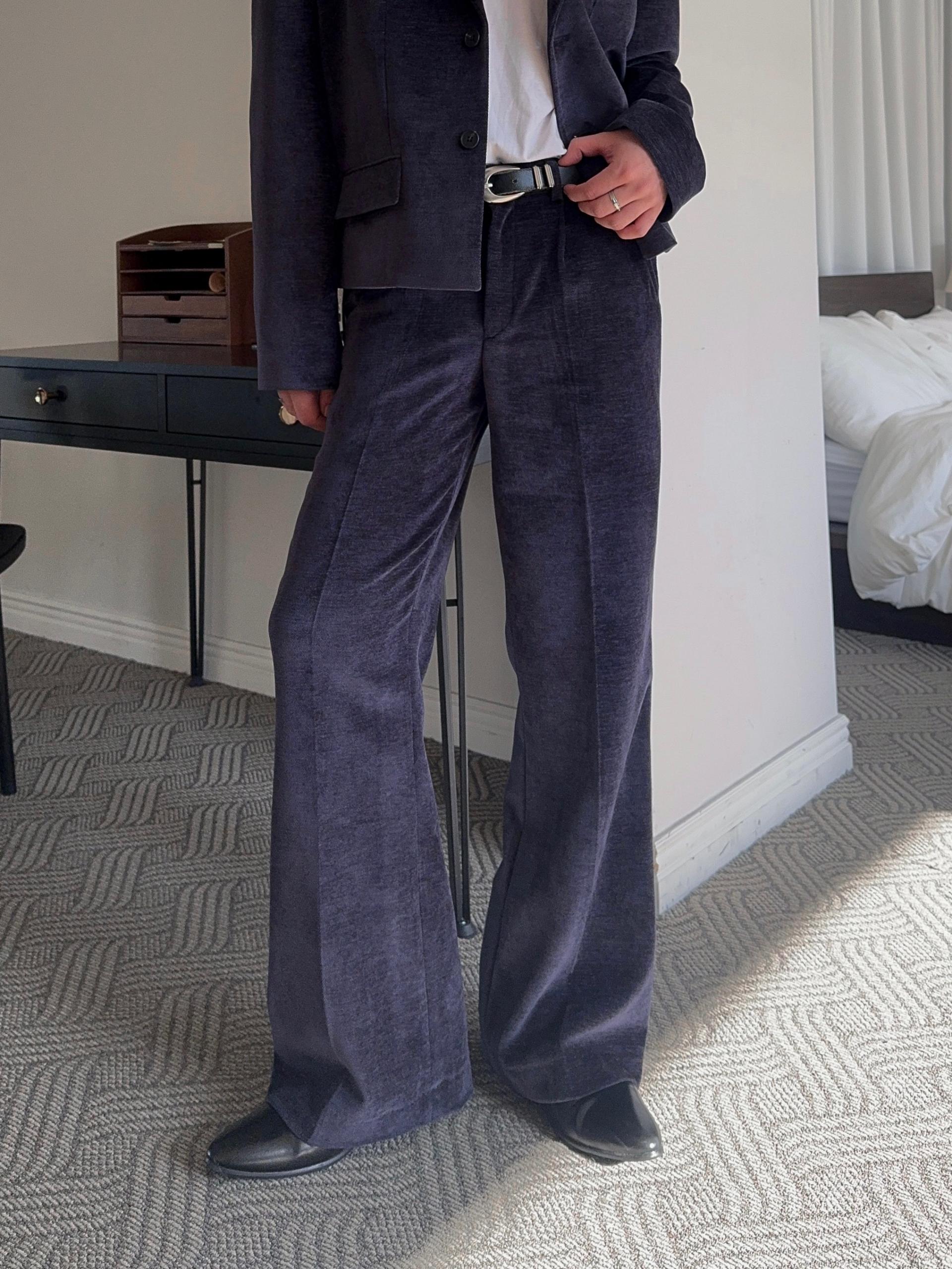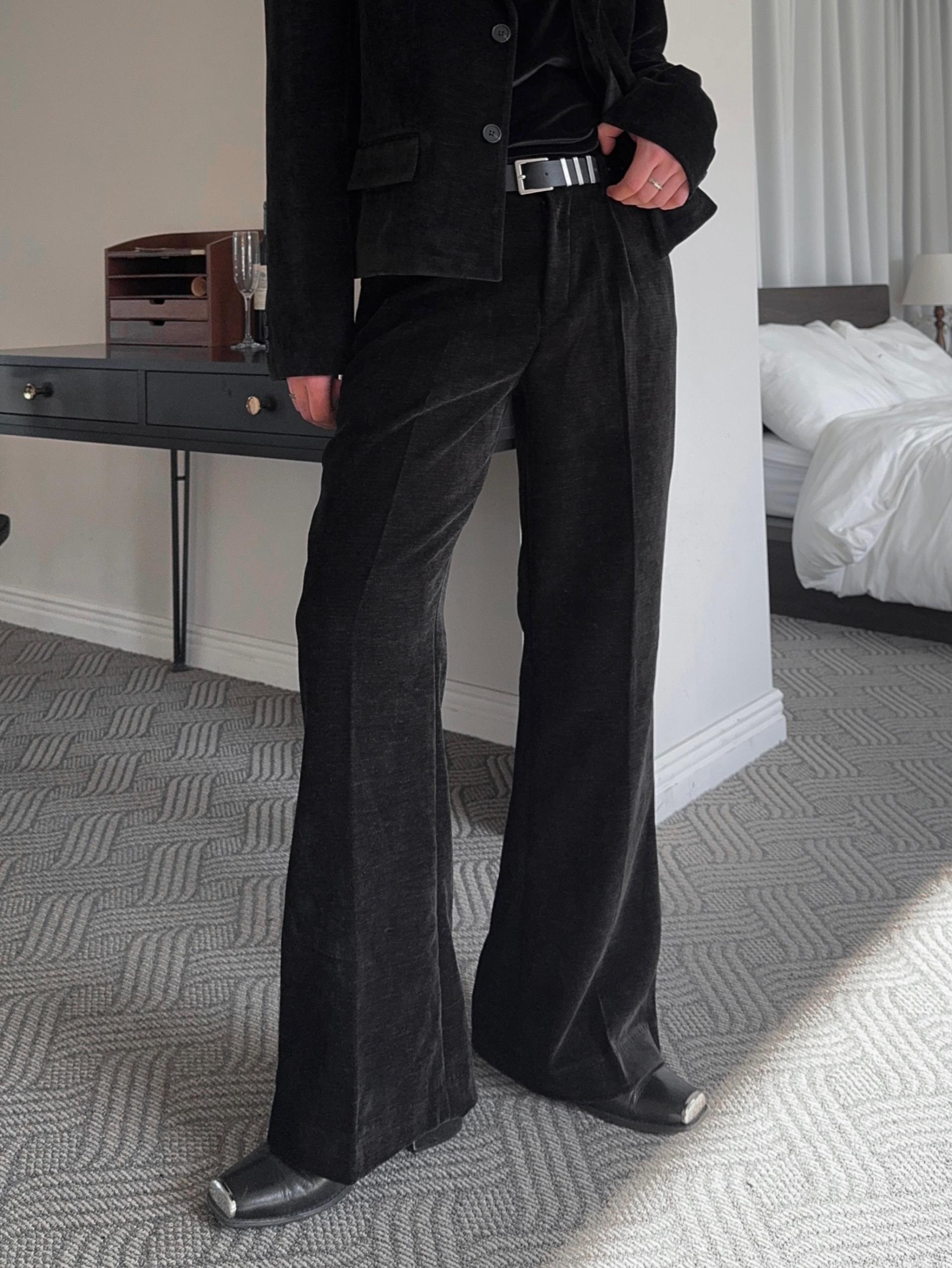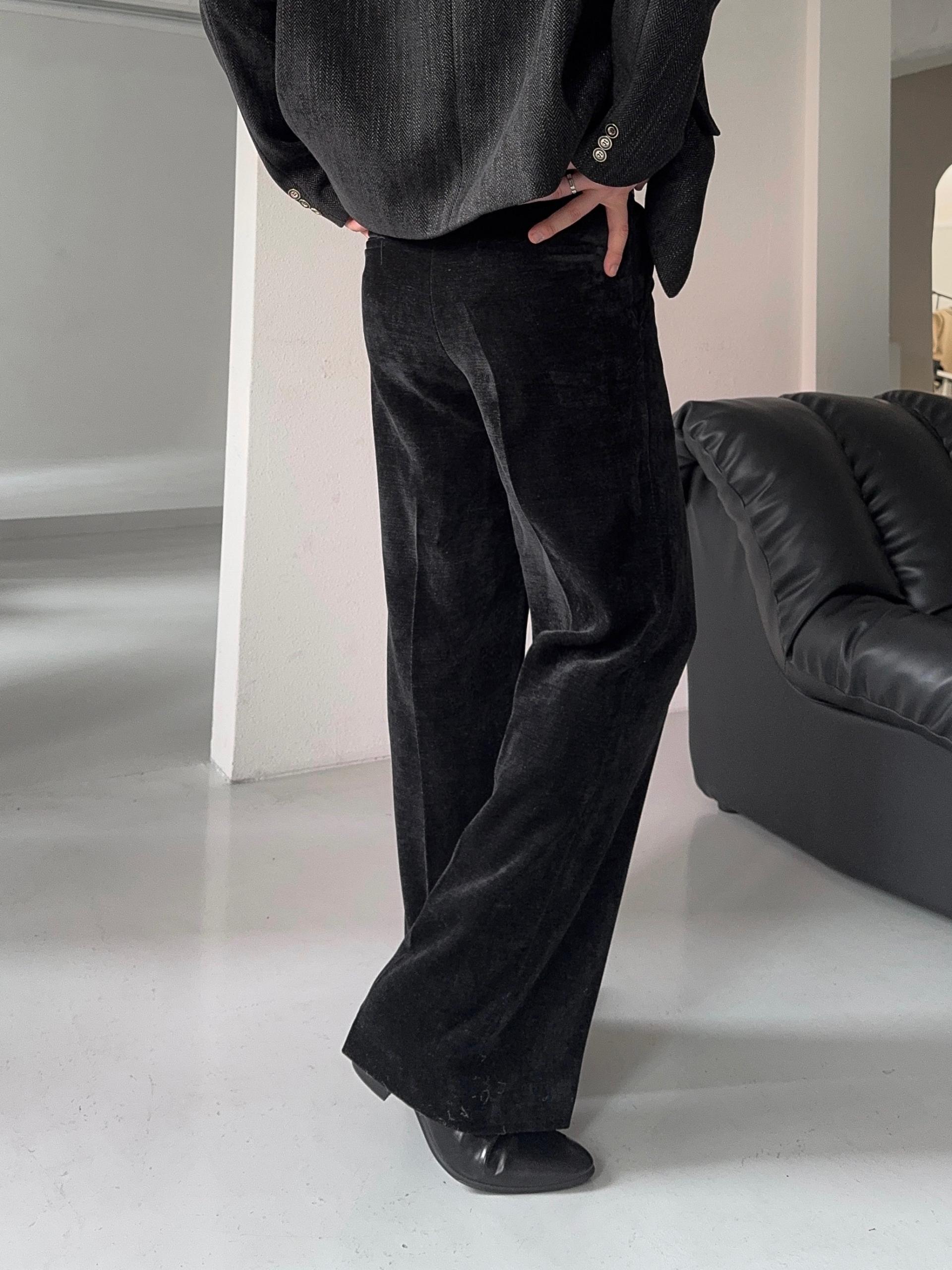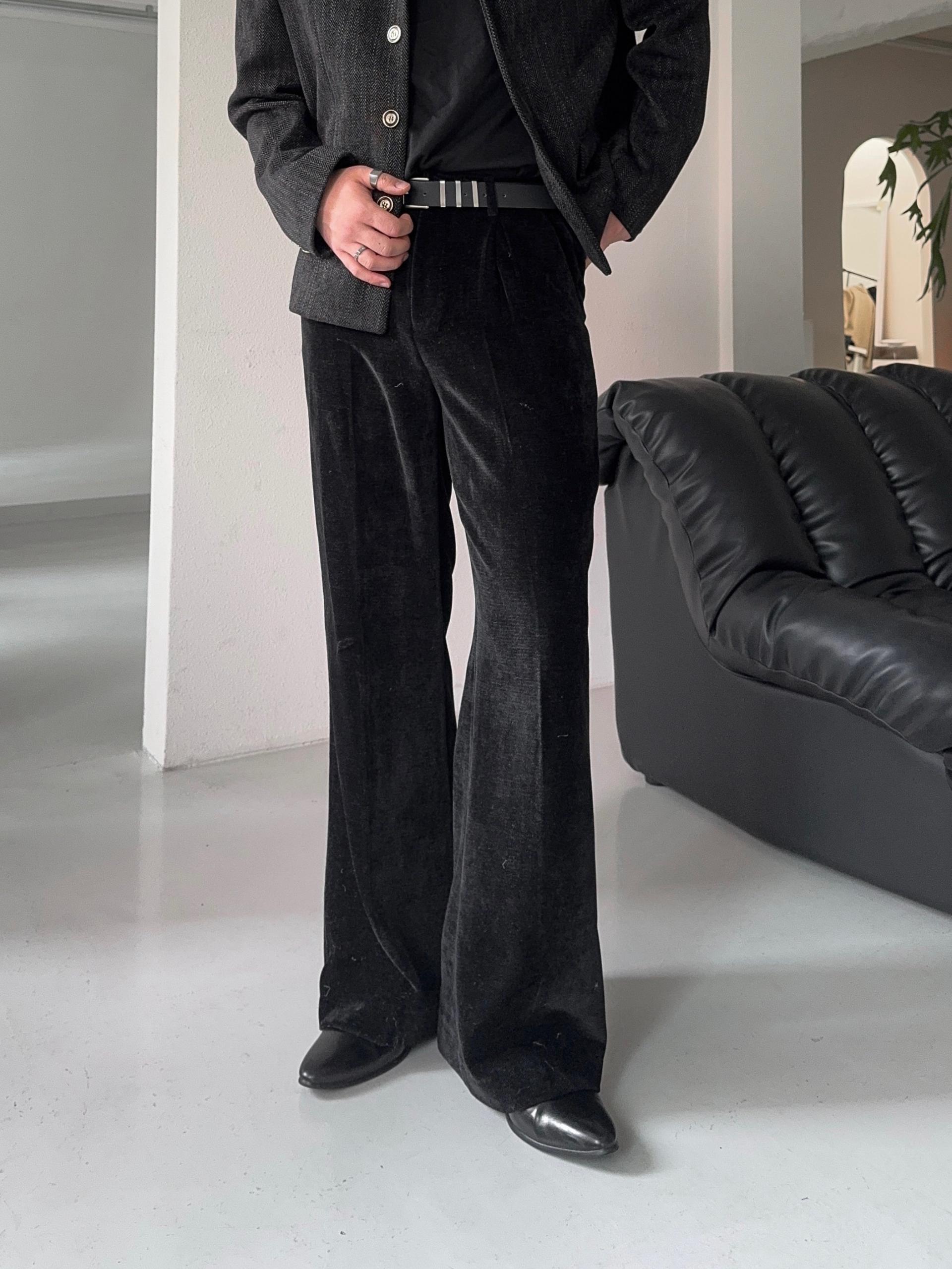 -부드러운 벨벳 소재로 제작된 플레어 팬츠