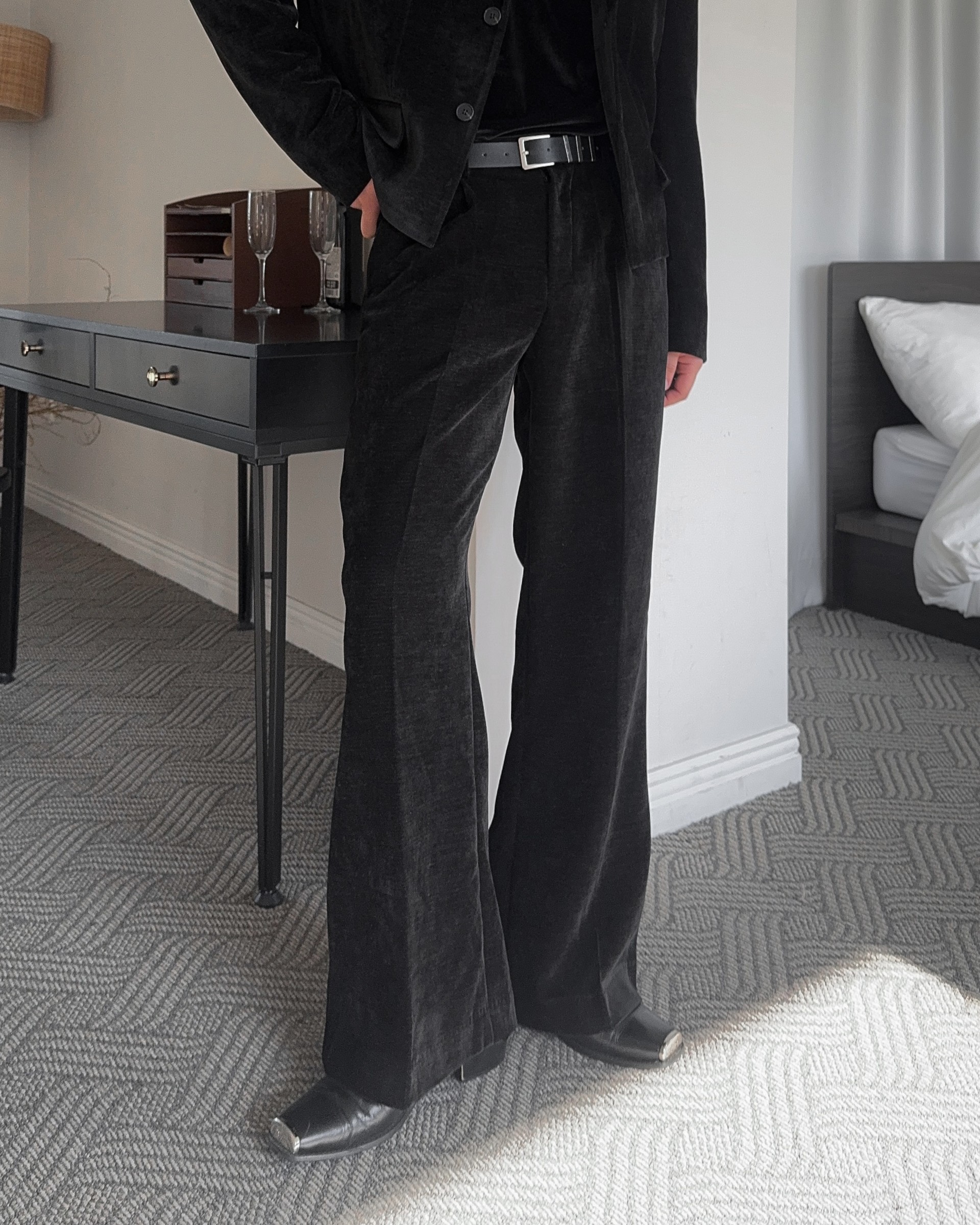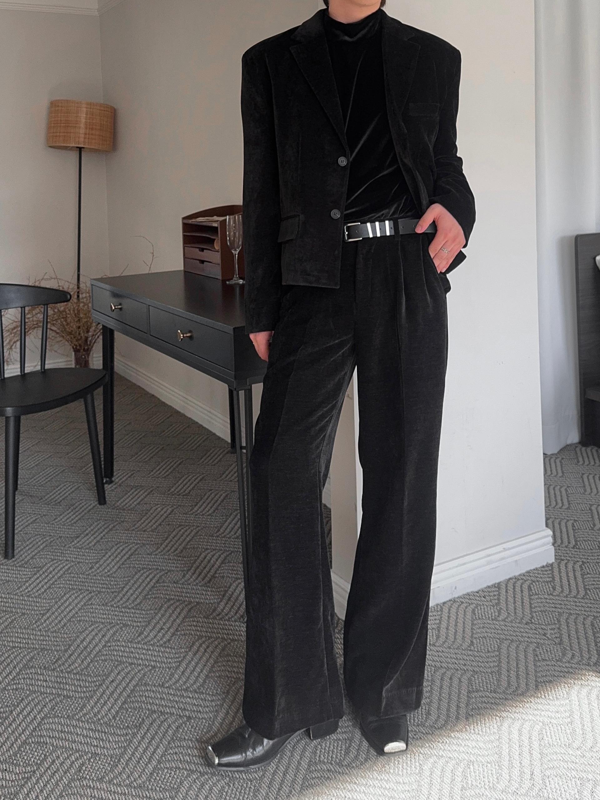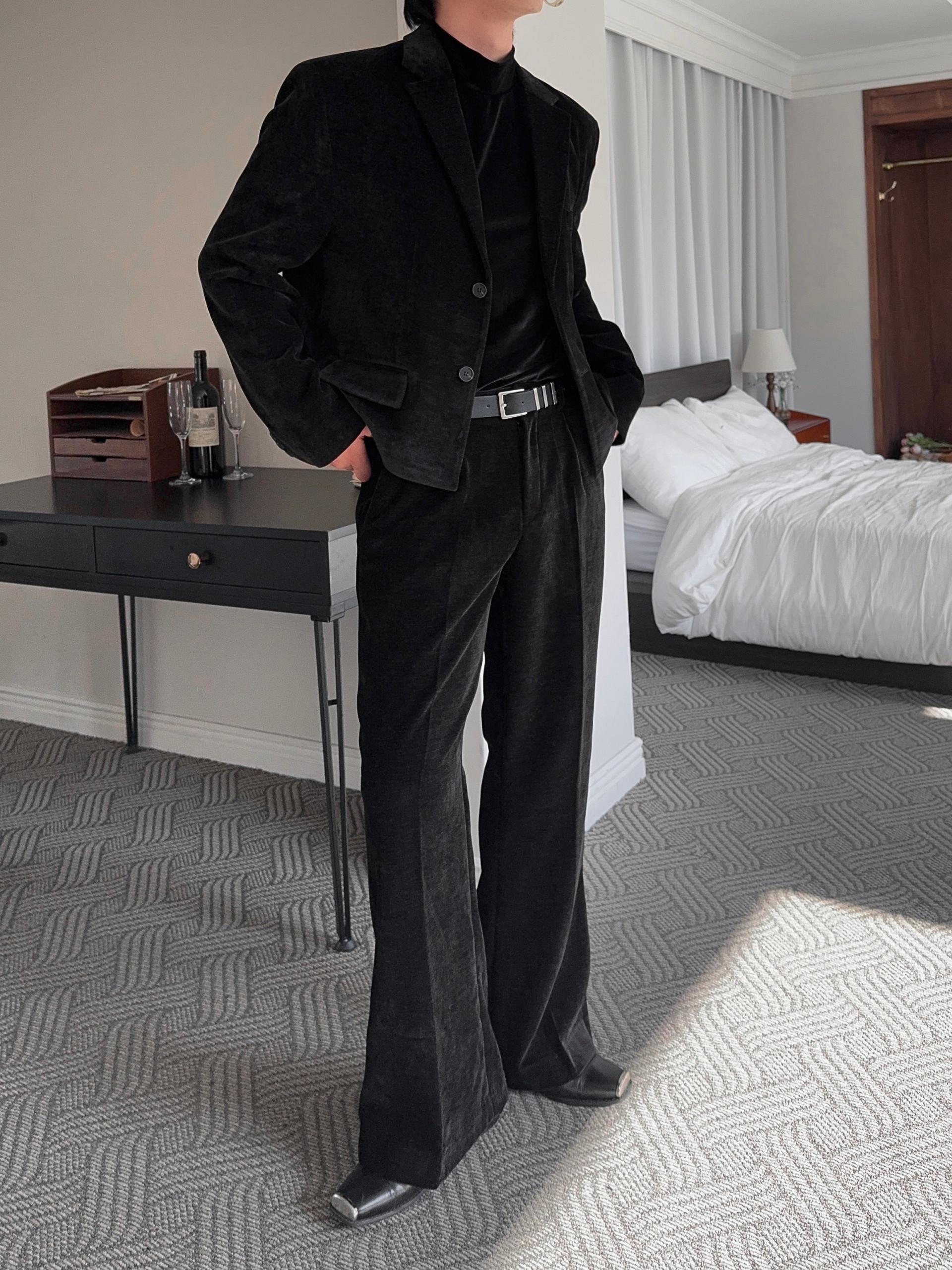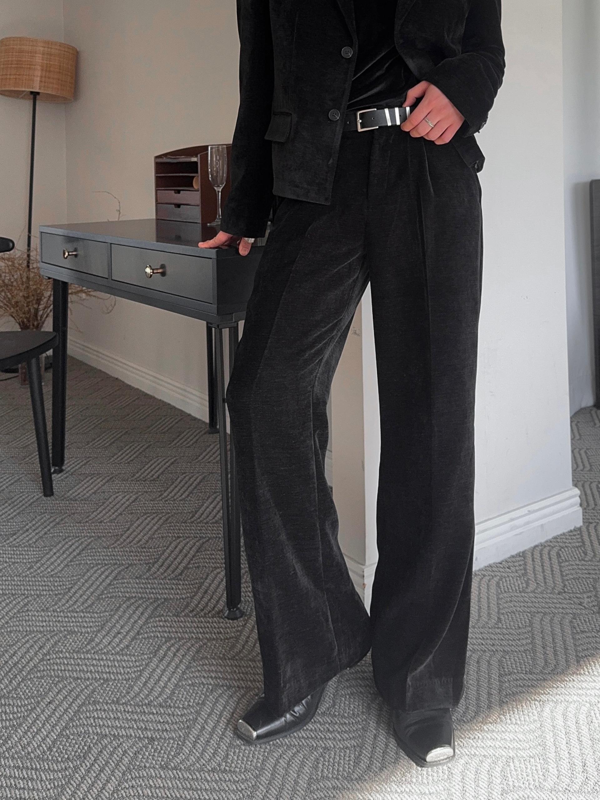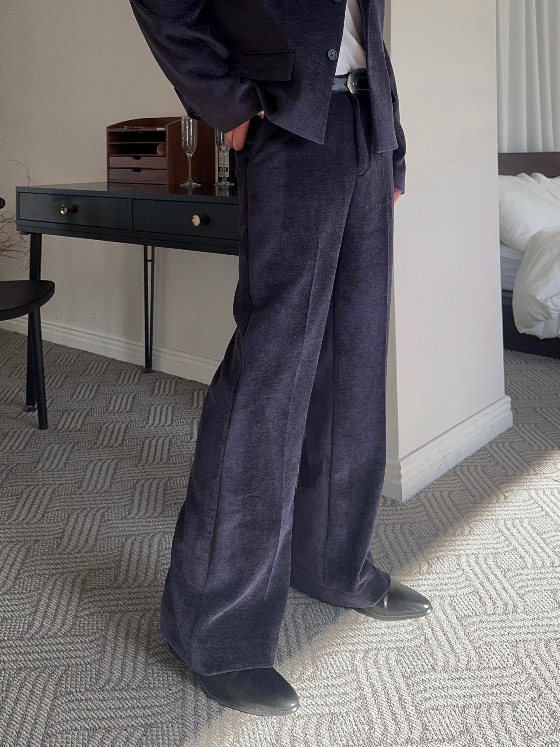 -부드러운 벨벳 소재로 제작된 플레어 팬츠