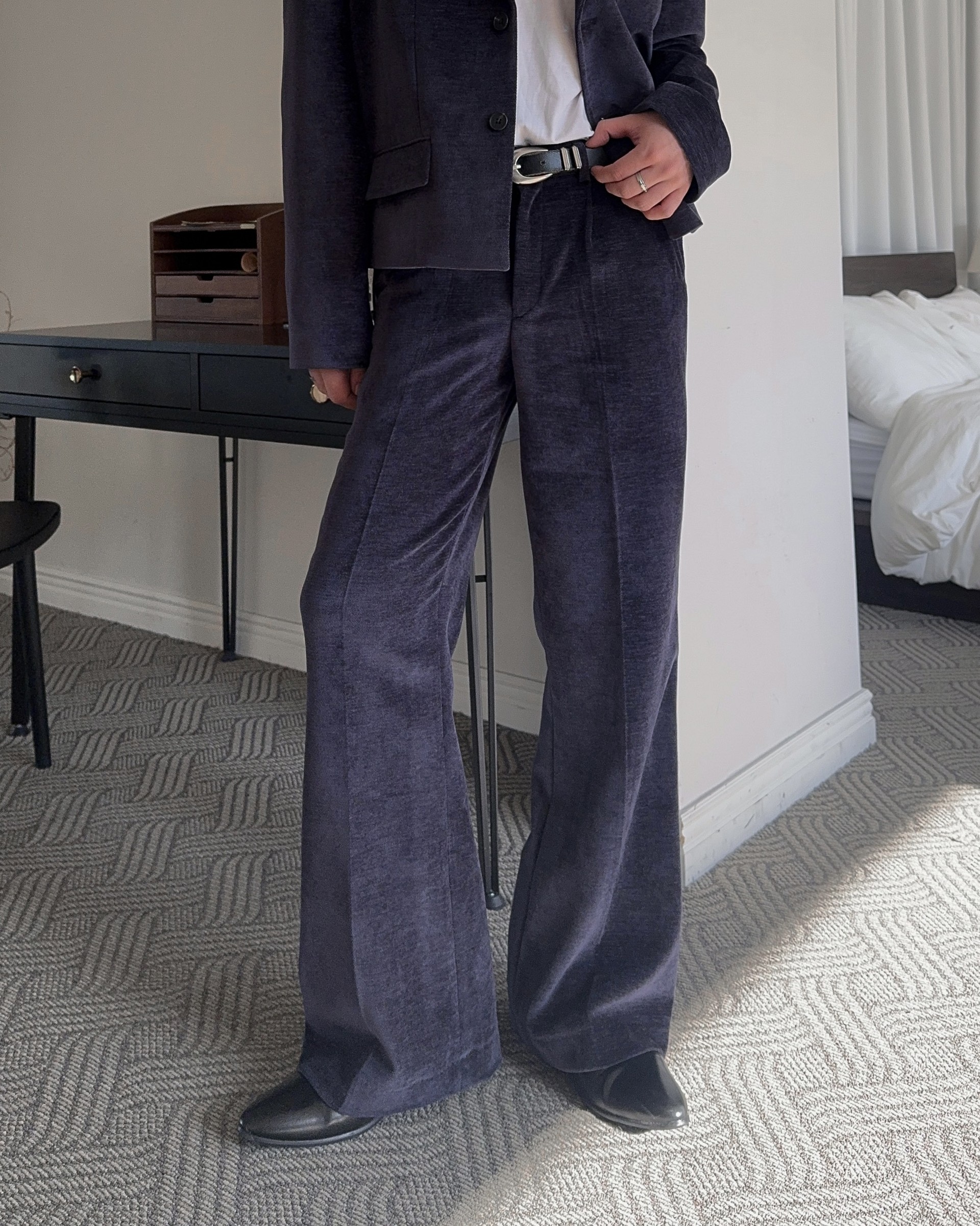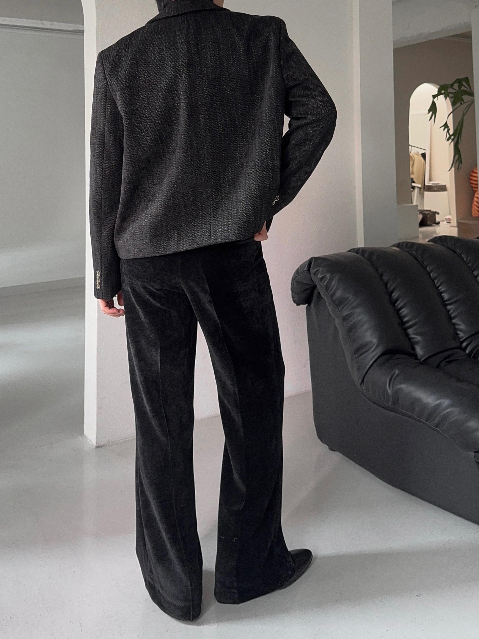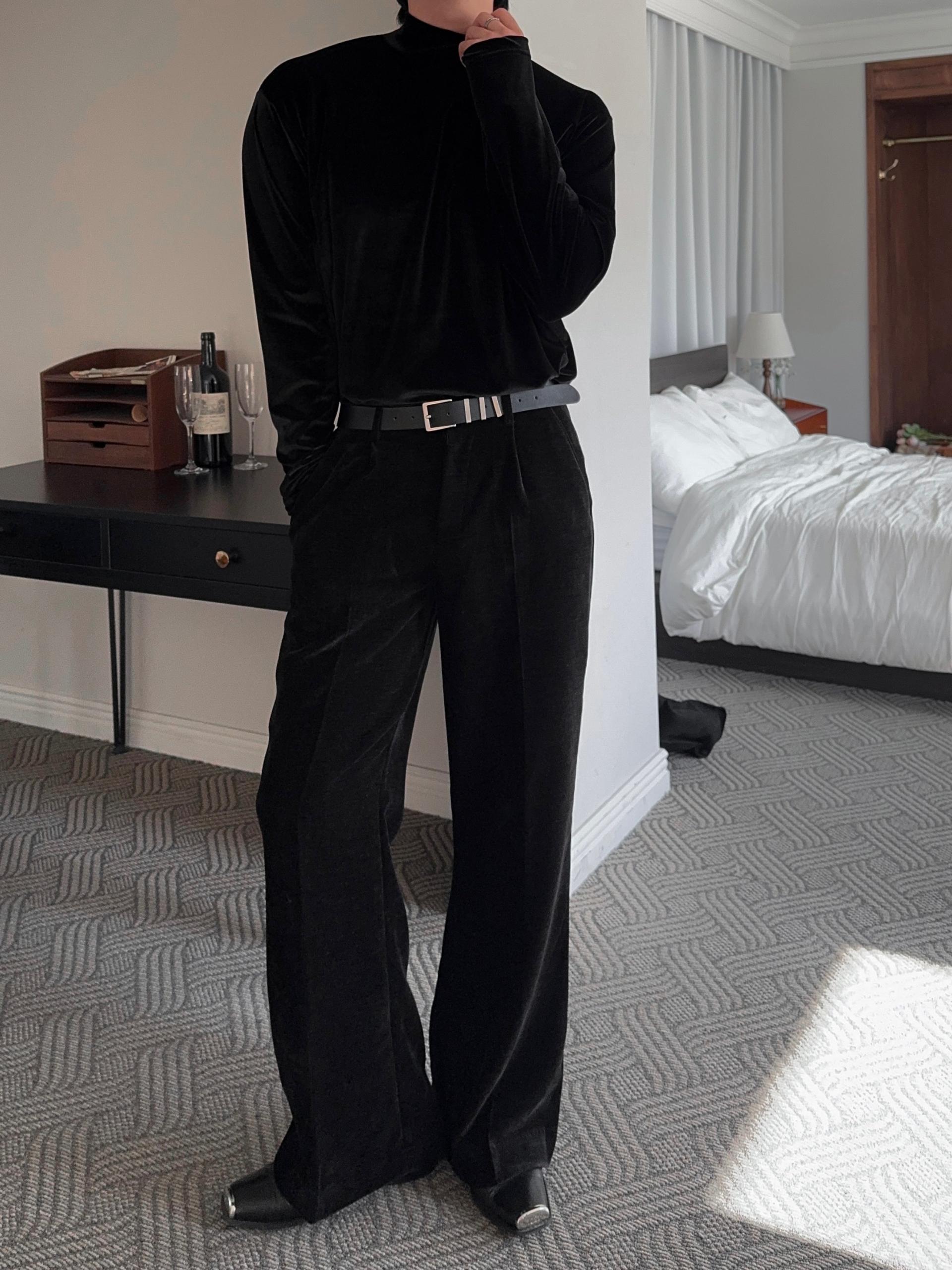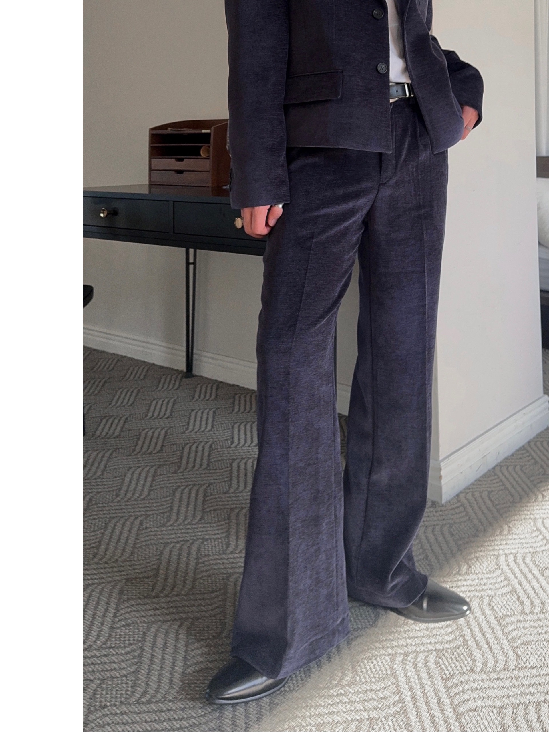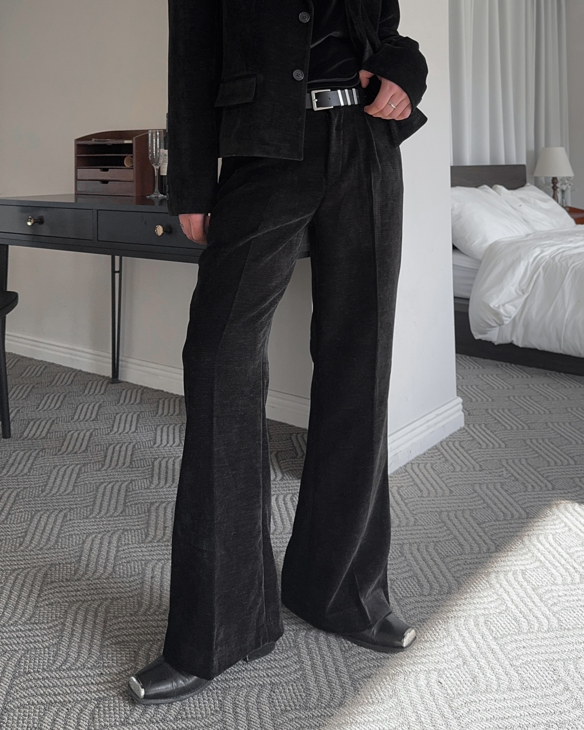 -부드러운 벨벳 소재로 제작된 플레어 팬츠
