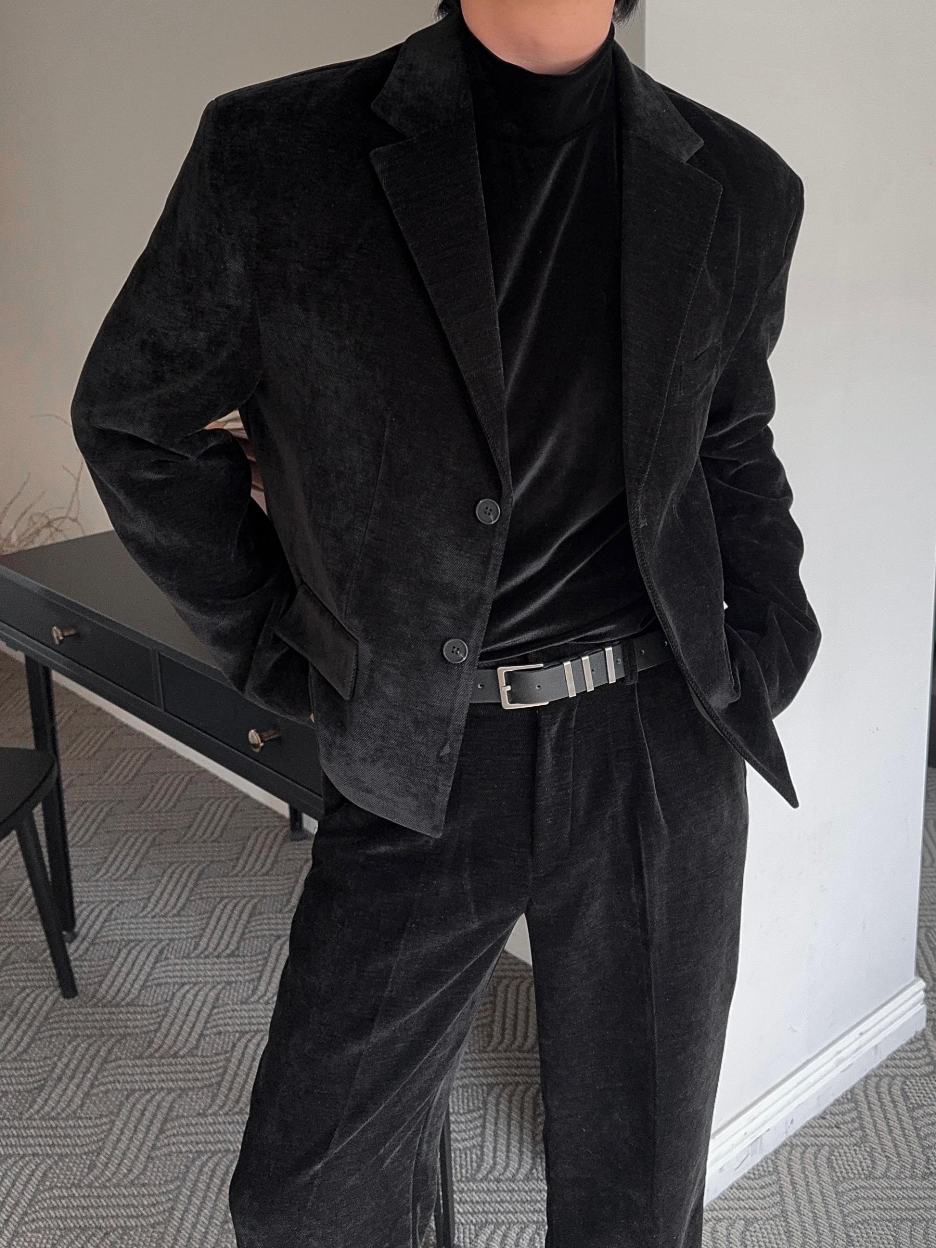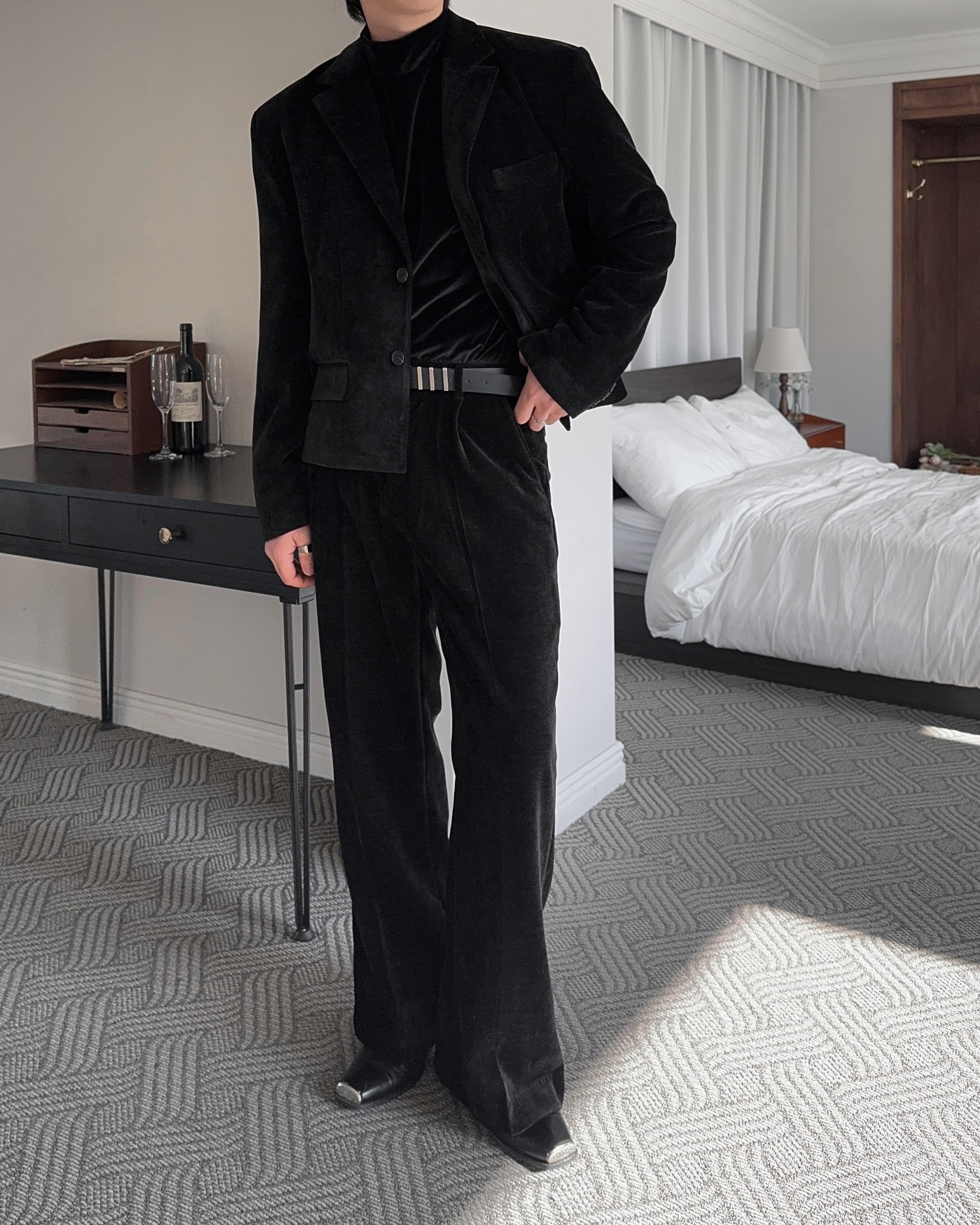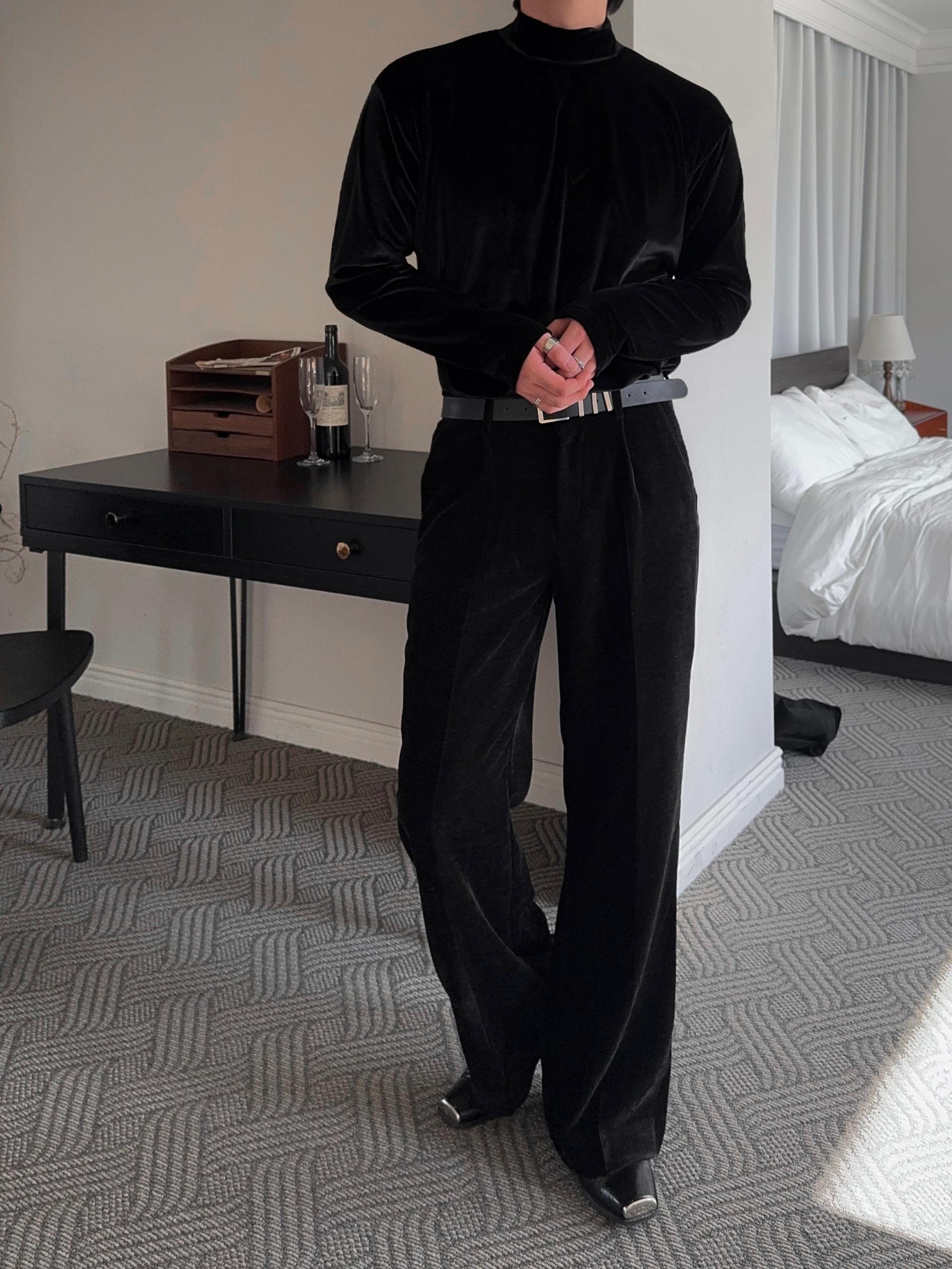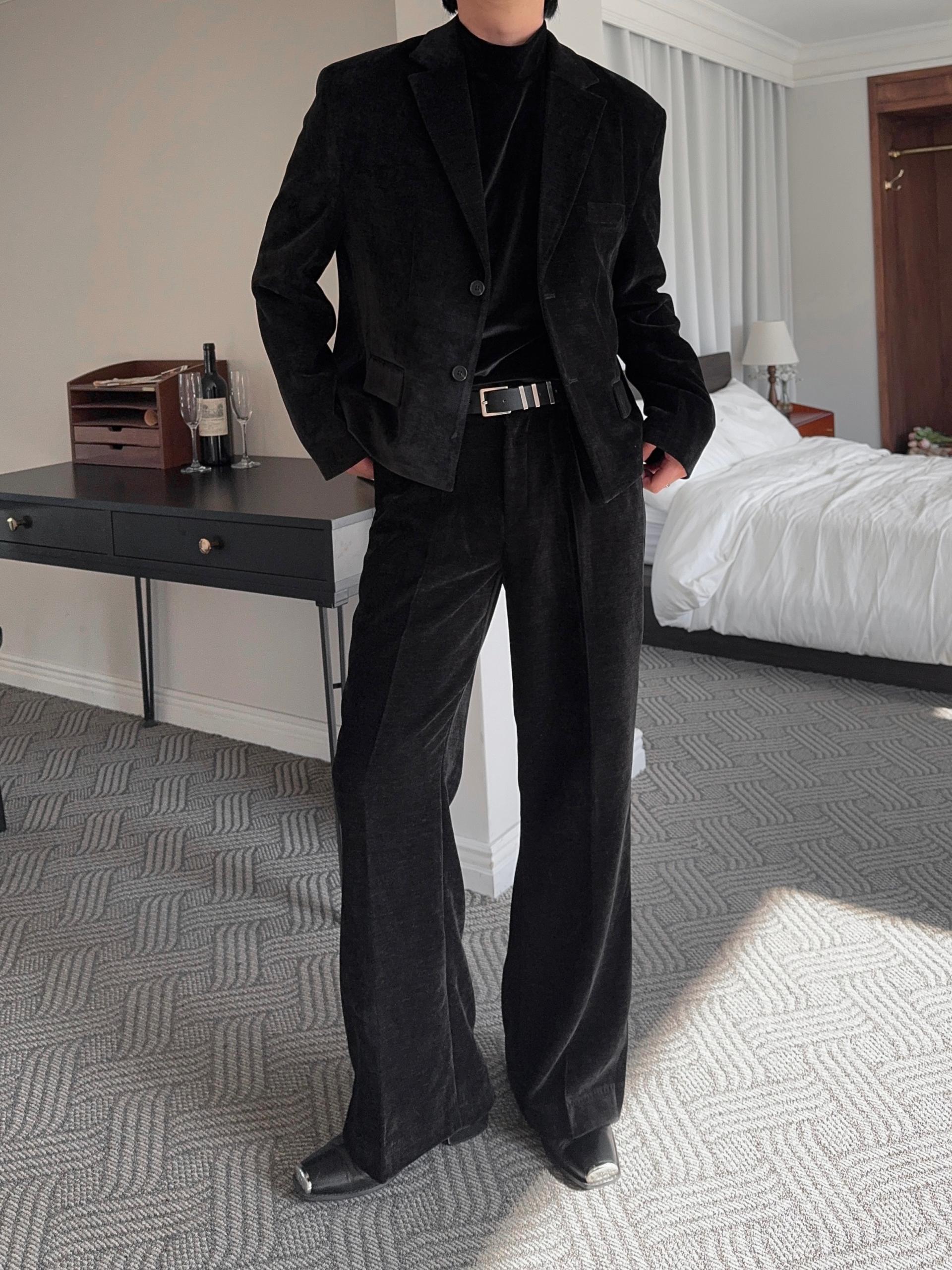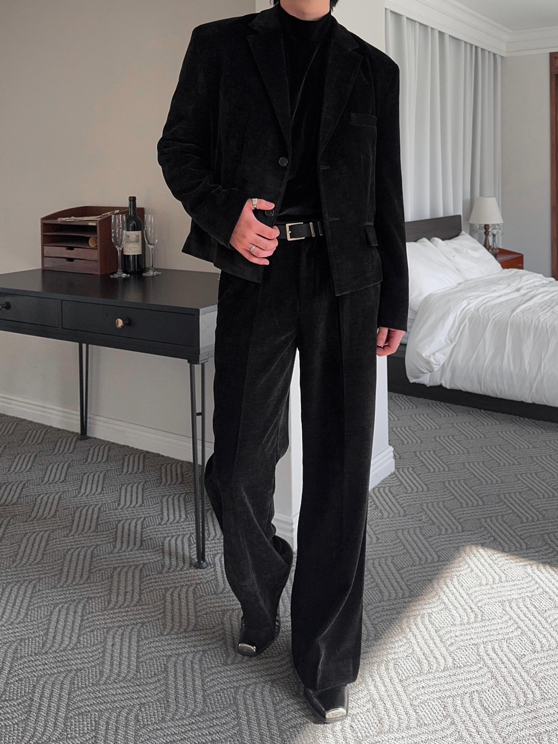 -부드러운 벨벳 소재로 제작된 플레어 팬츠