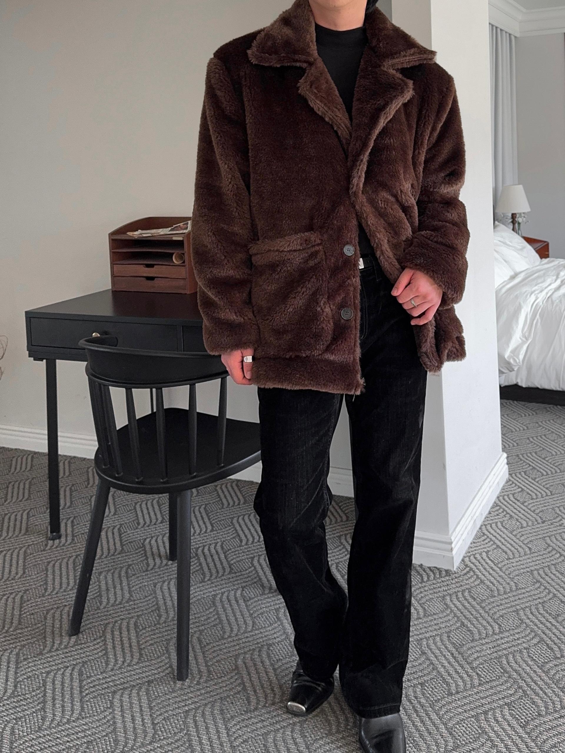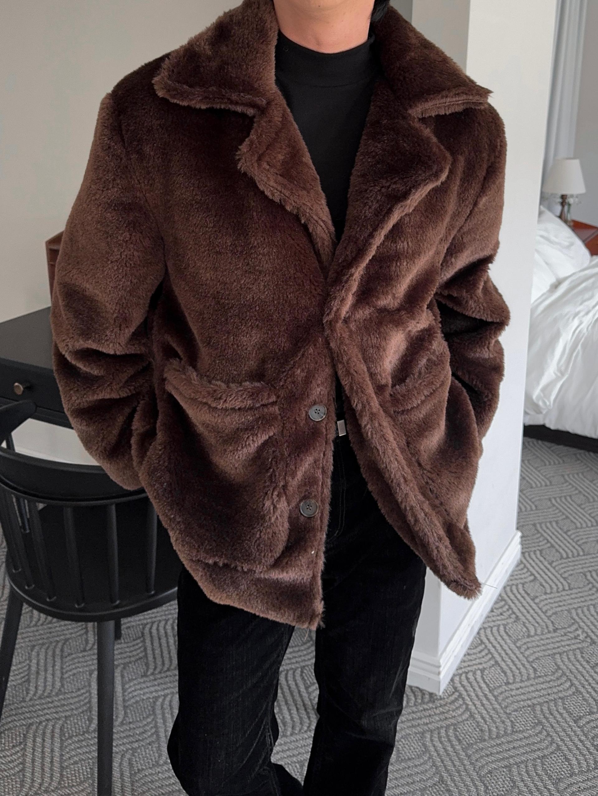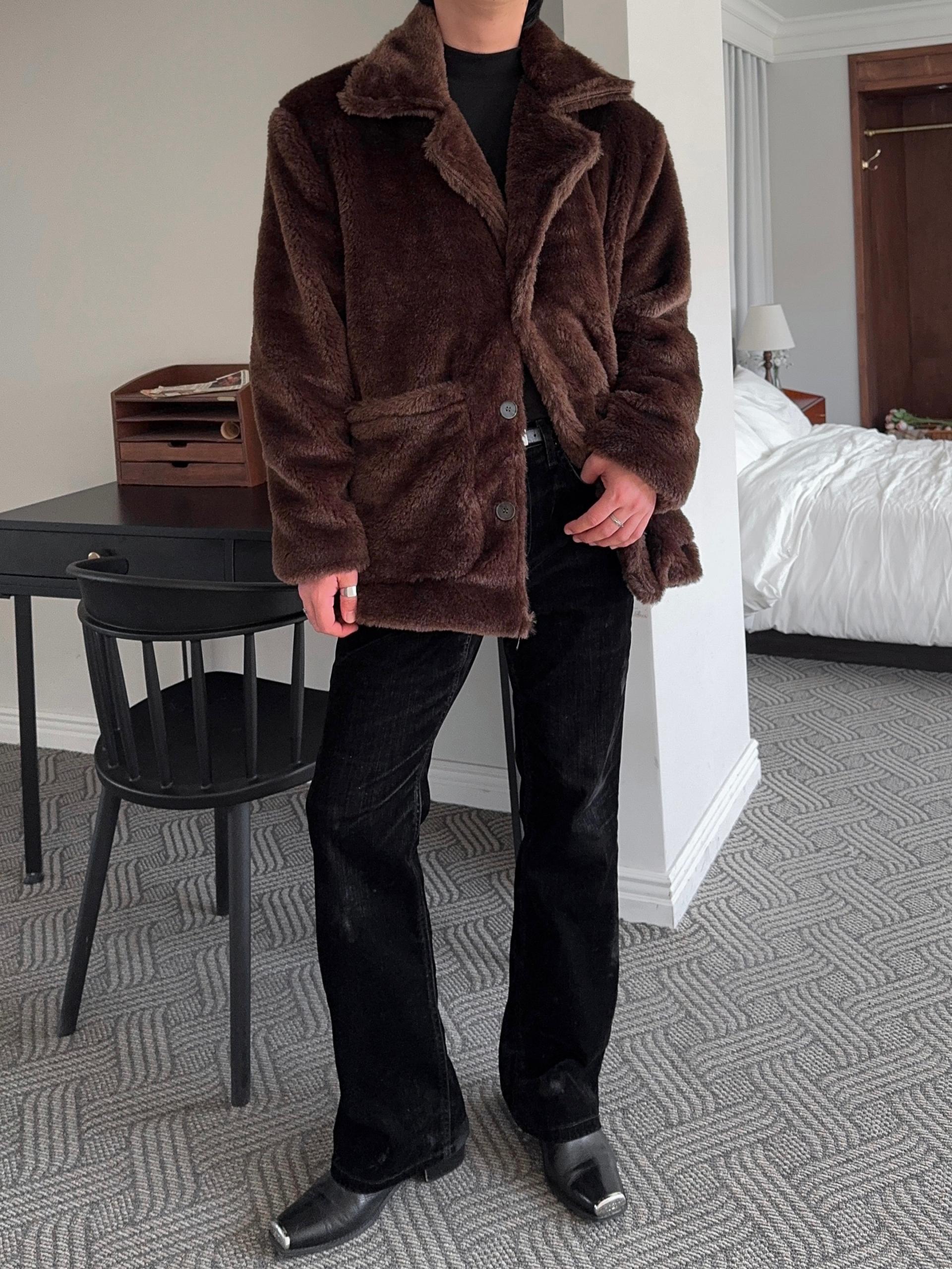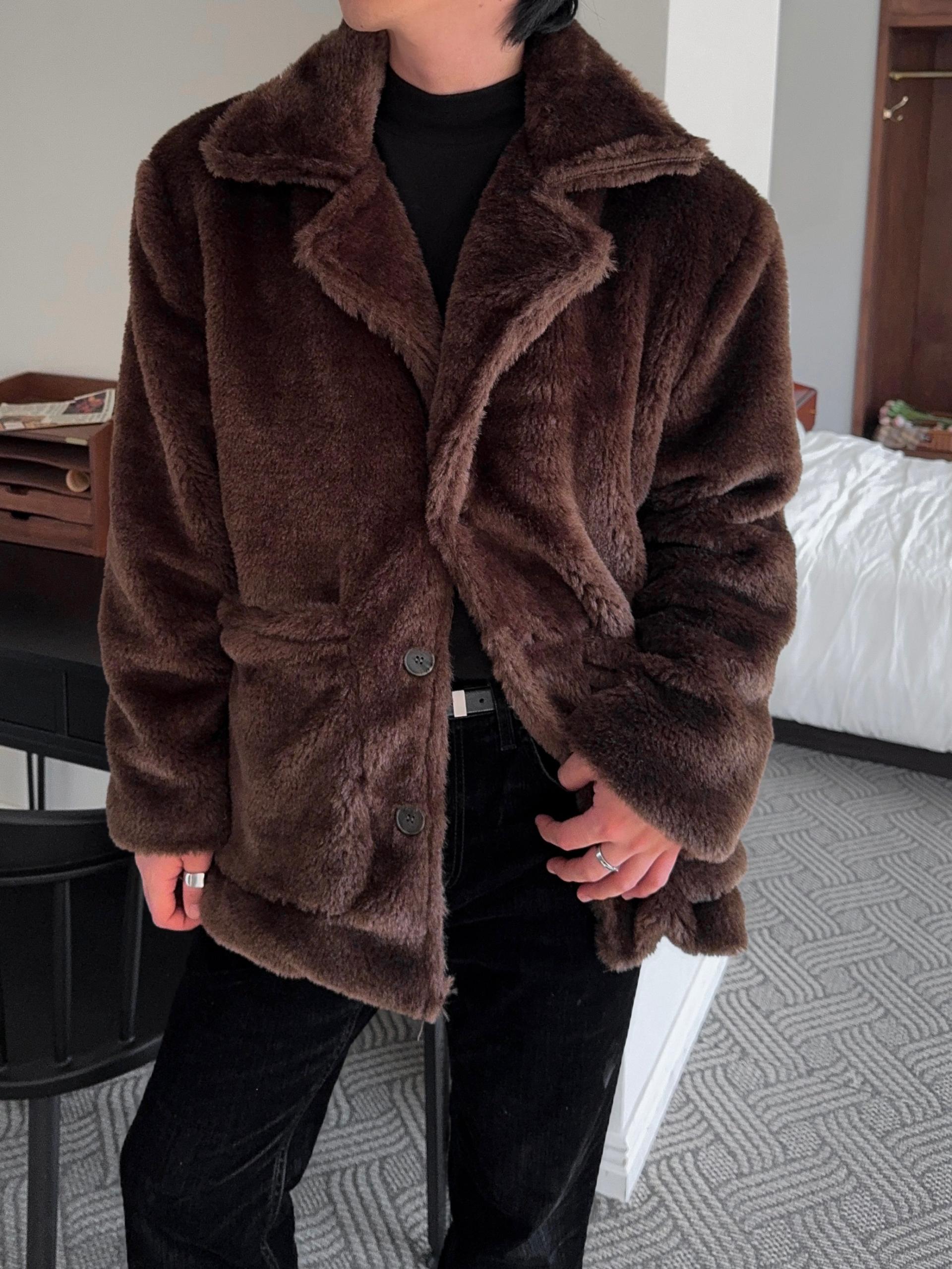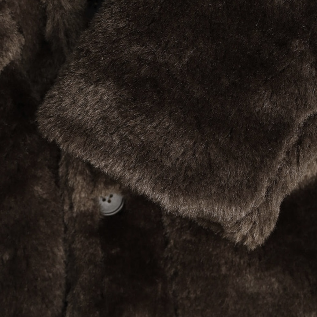 -풍성한 헤어감으로 제작된 퍼 코트