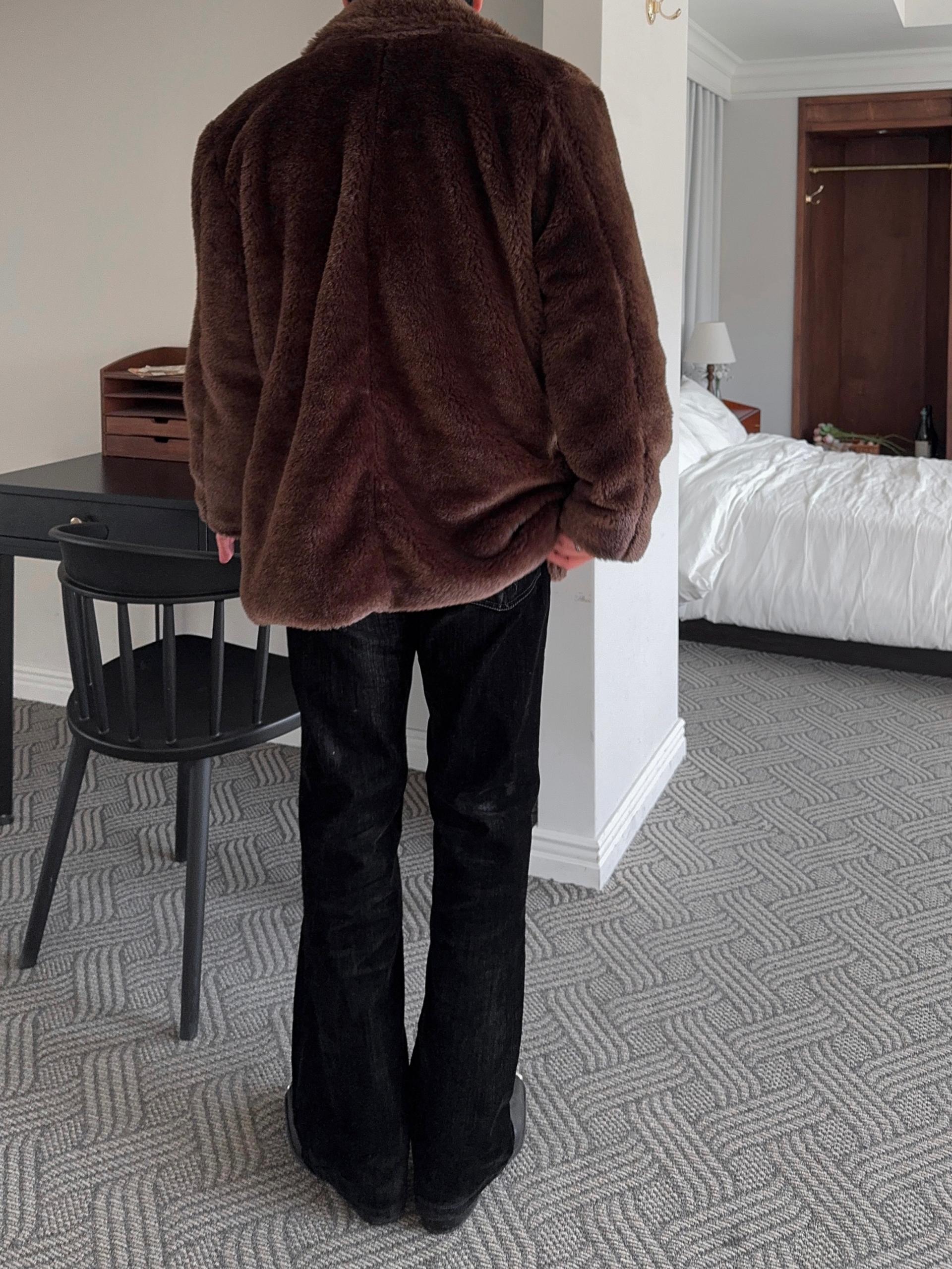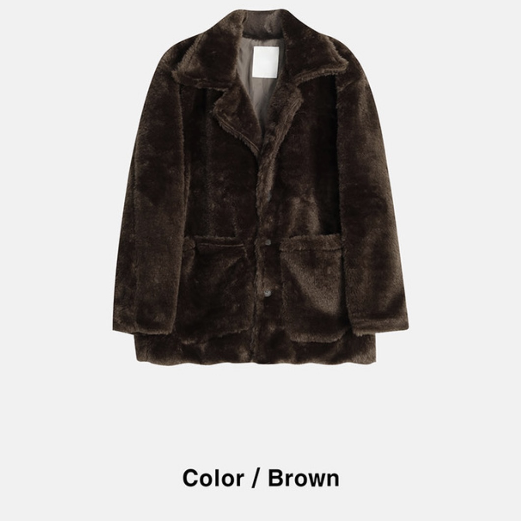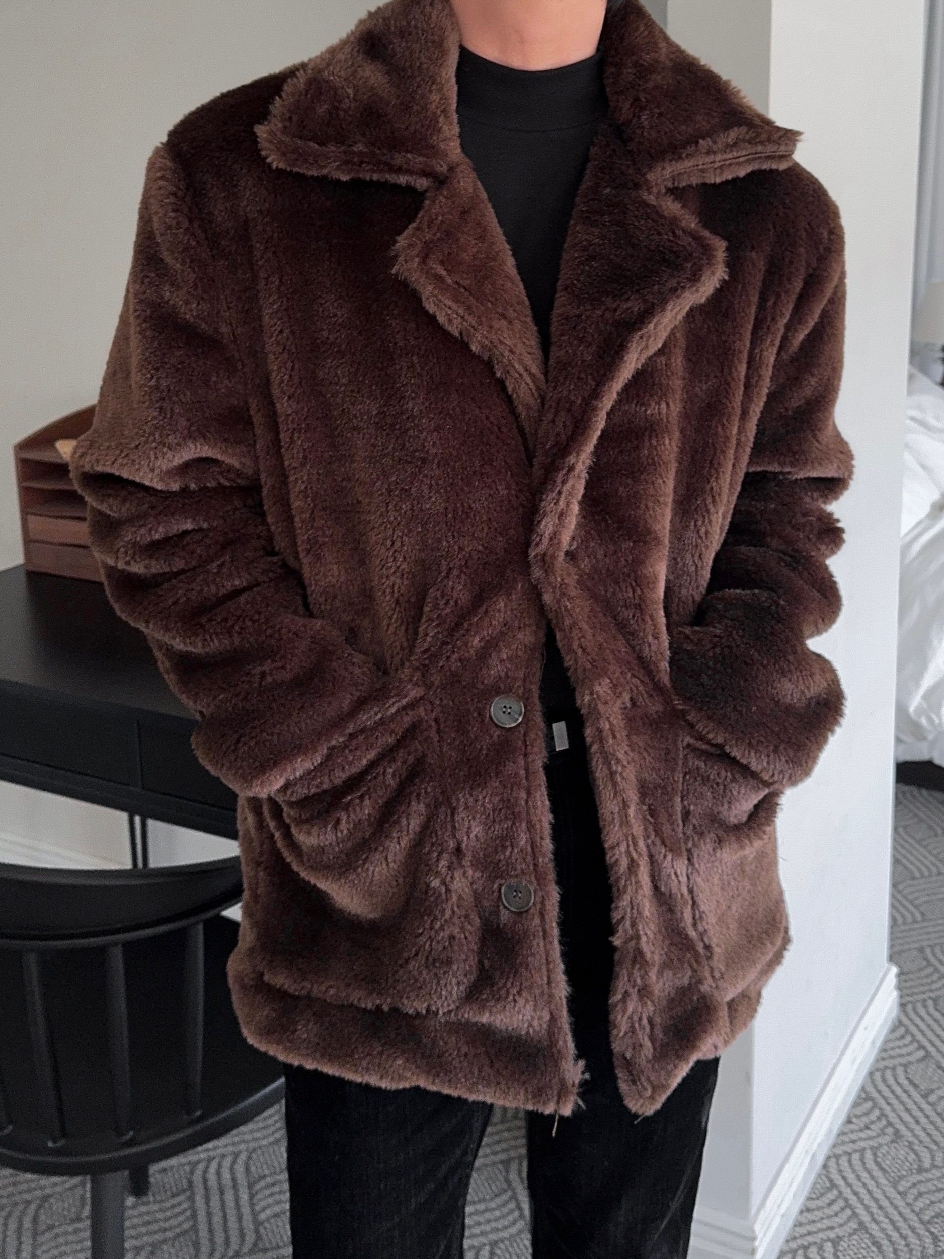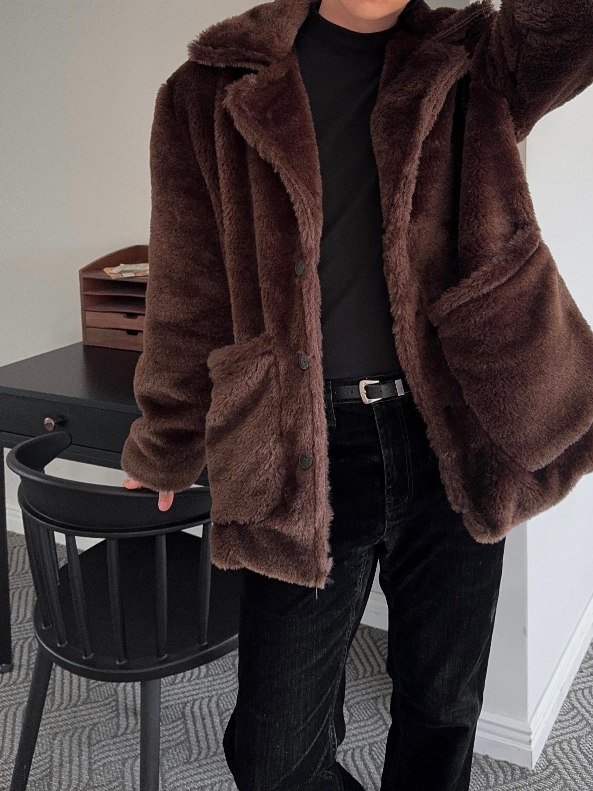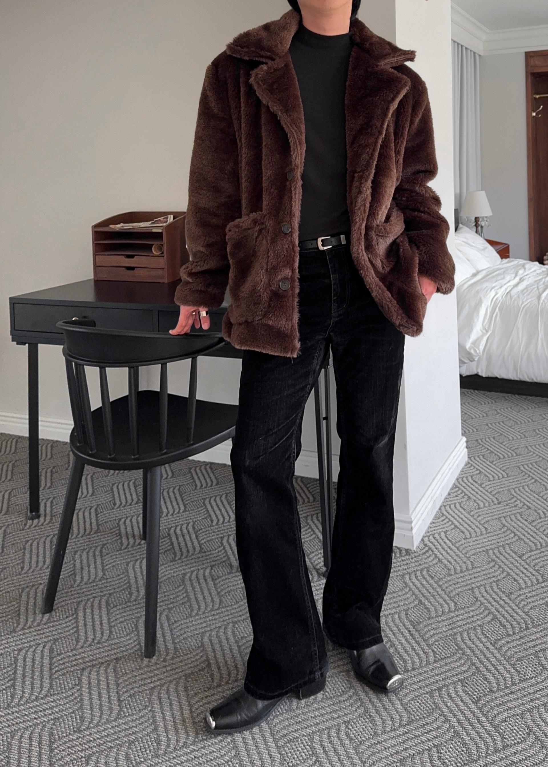 -풍성한 헤어감으로 제작된 퍼 코트