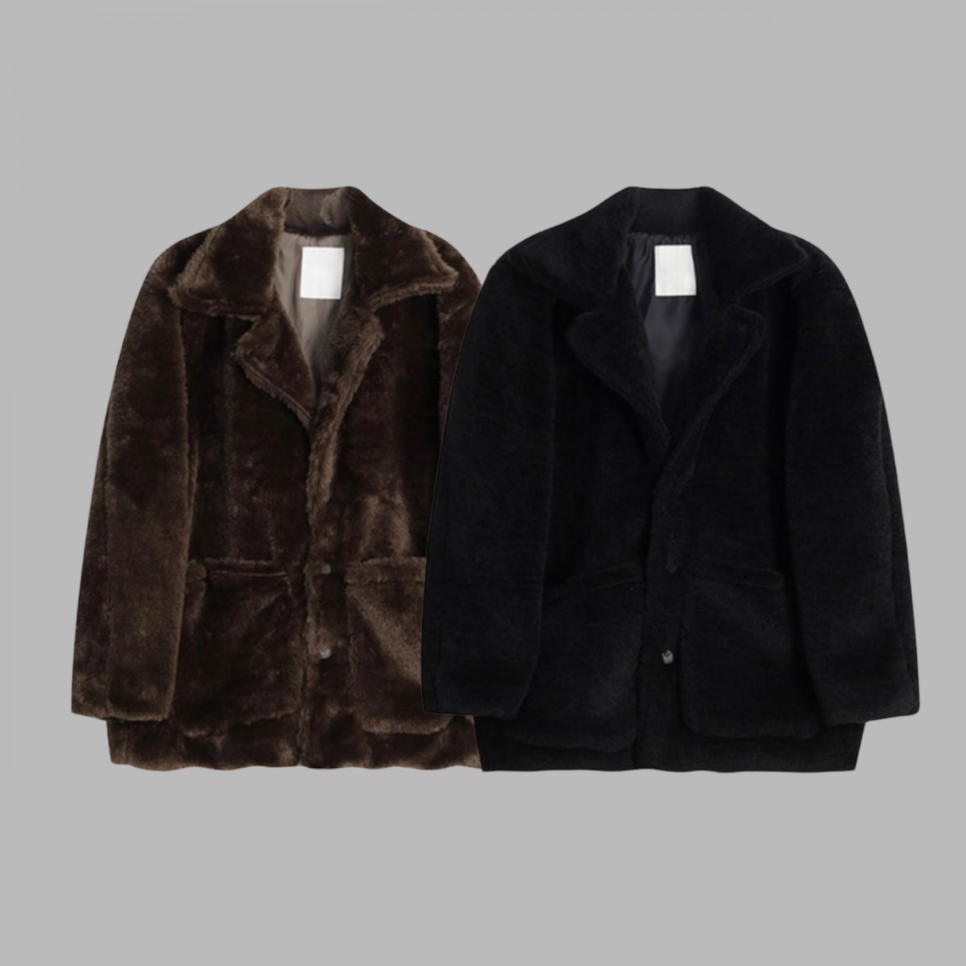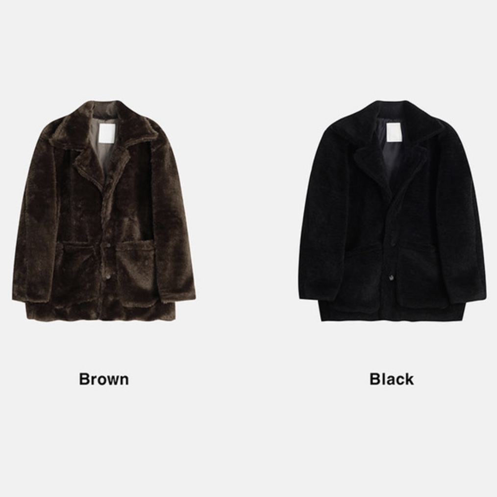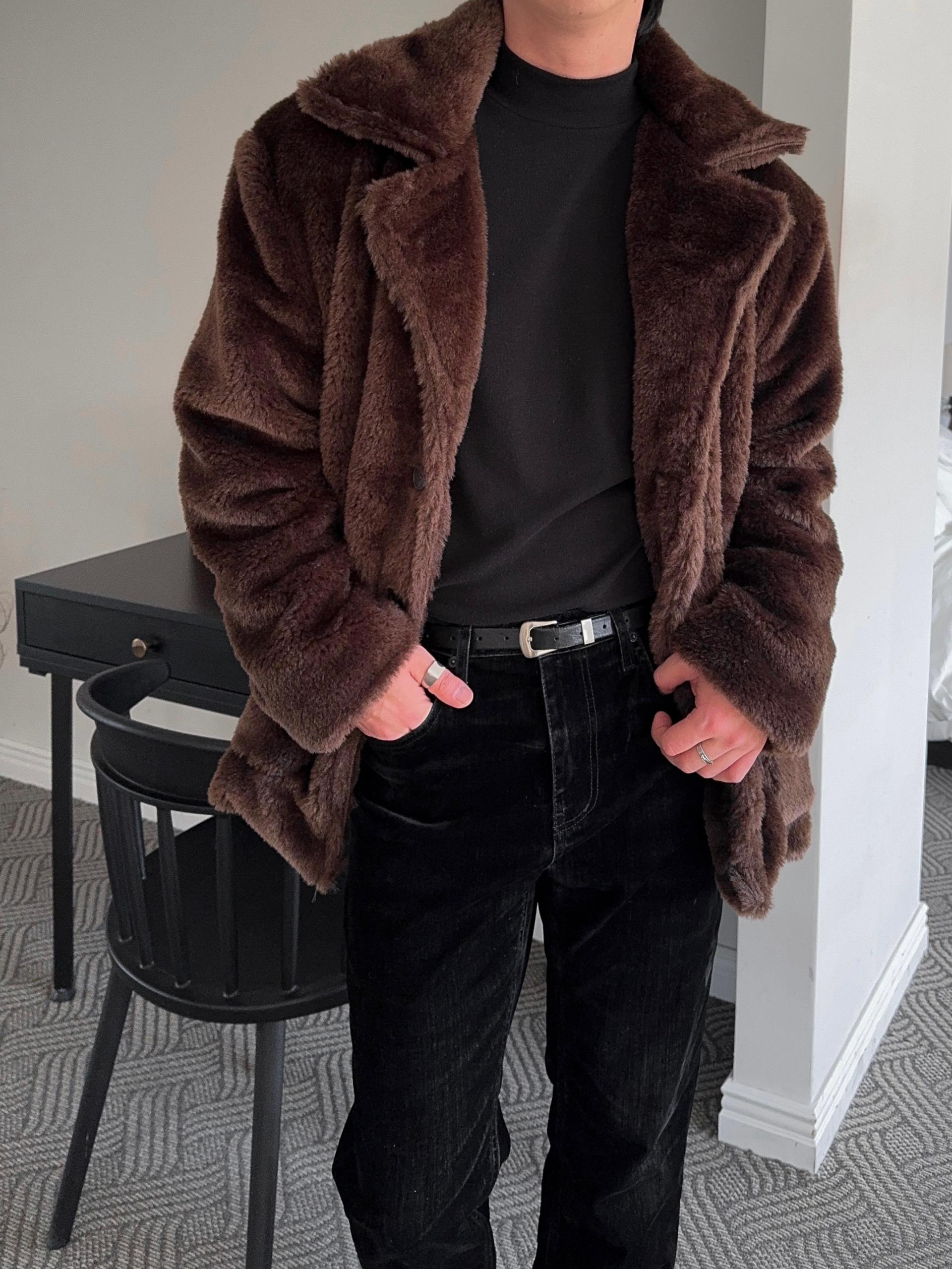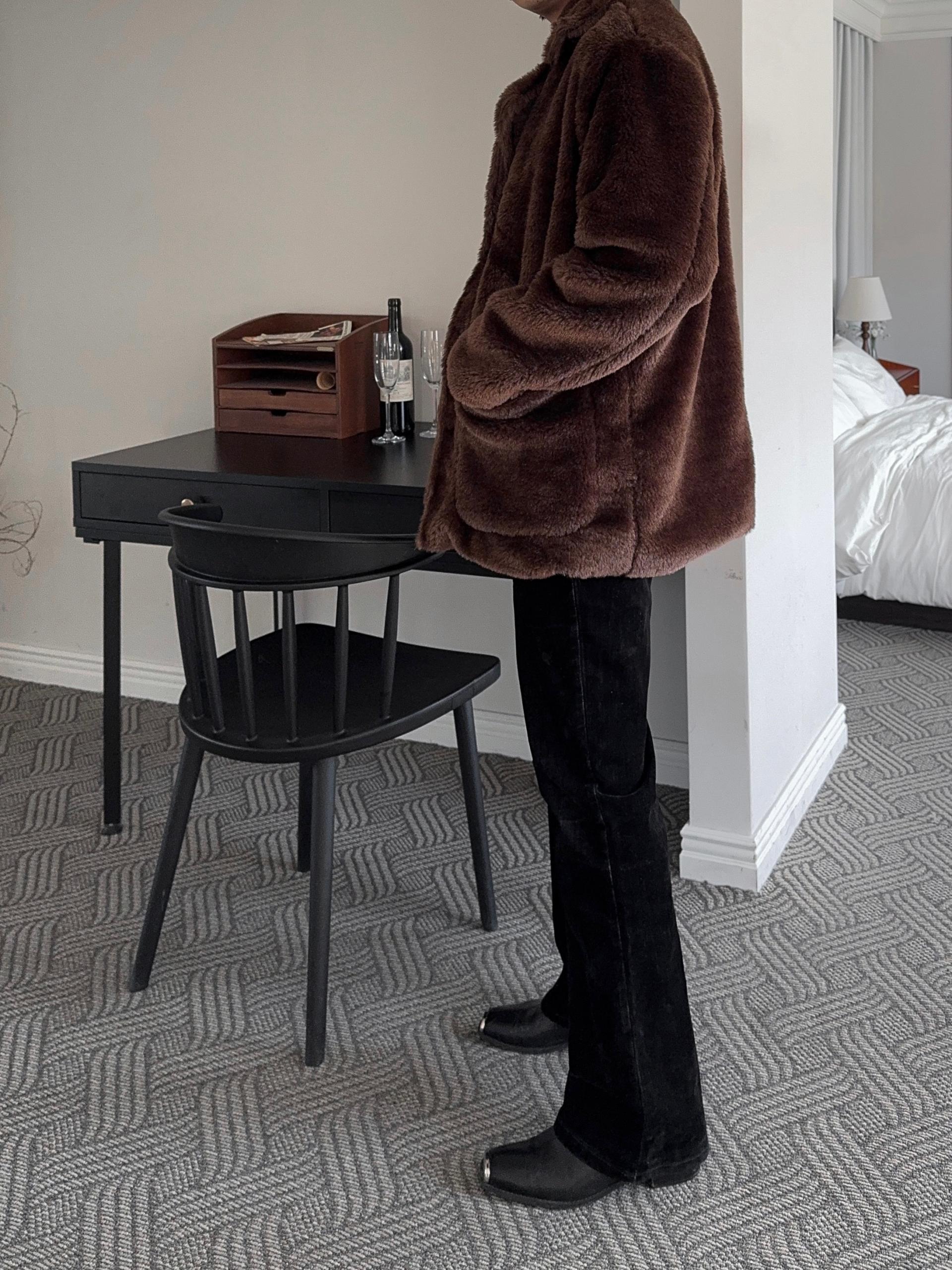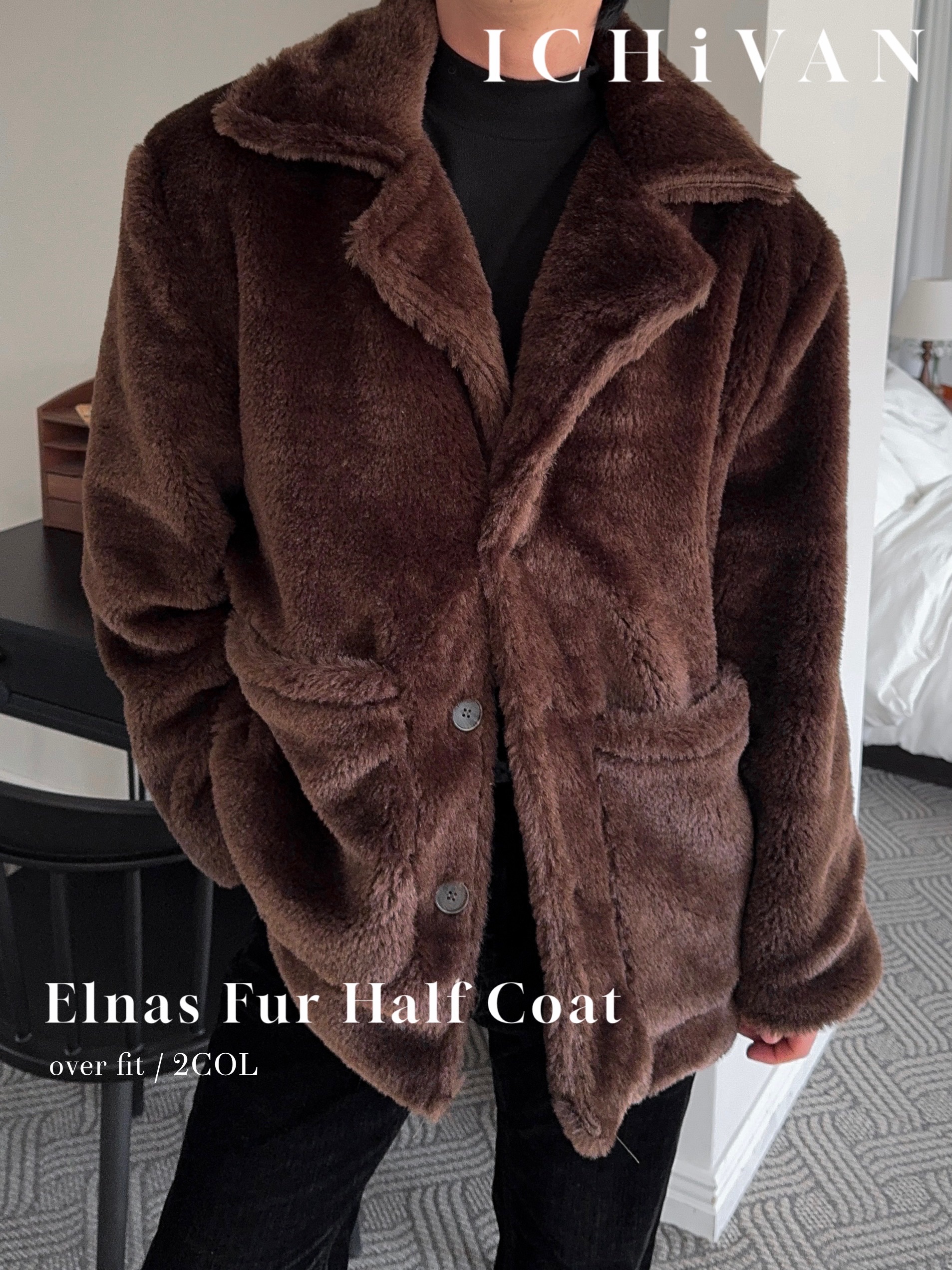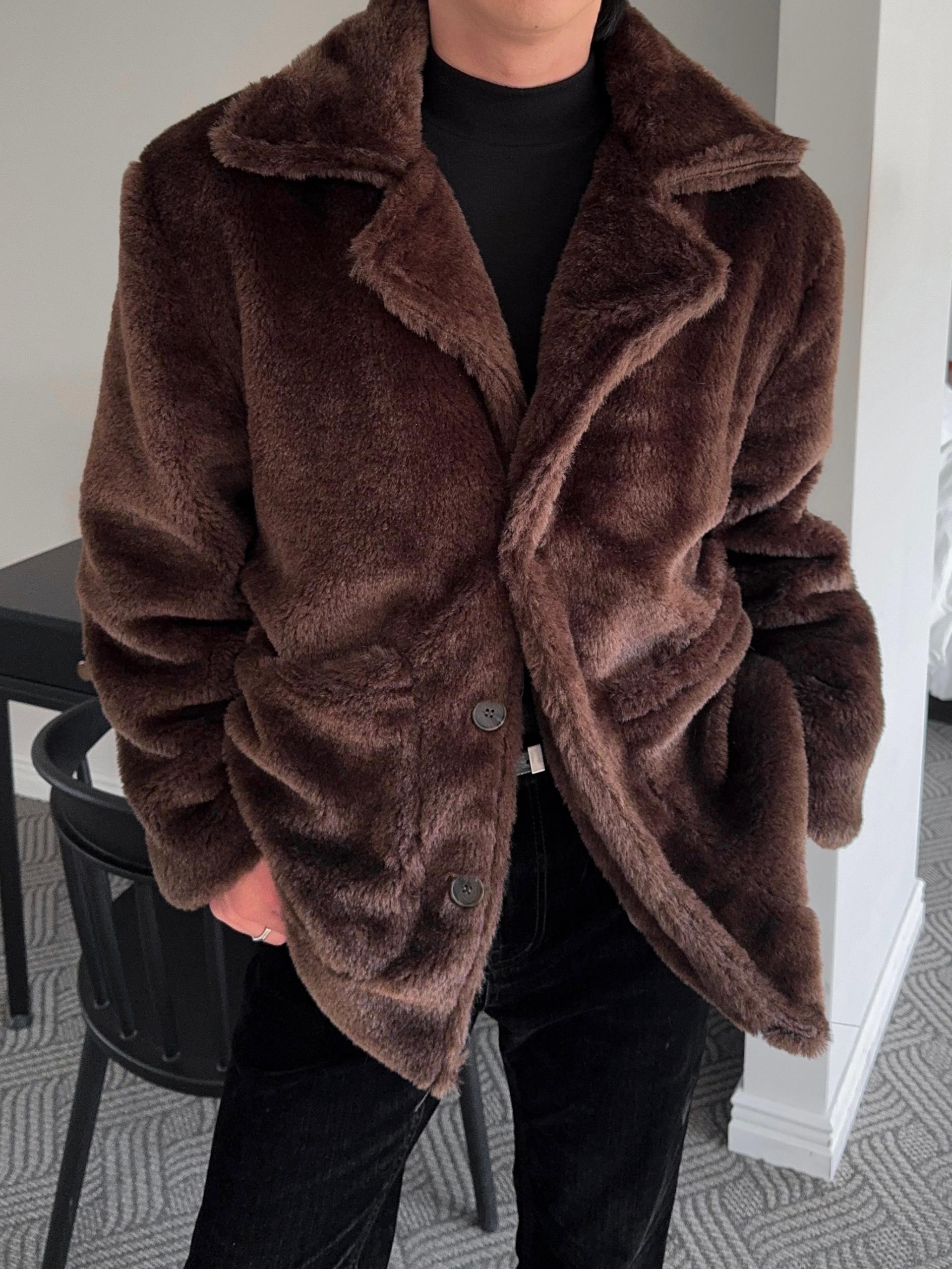 -풍성한 헤어감으로 제작된 퍼 코트