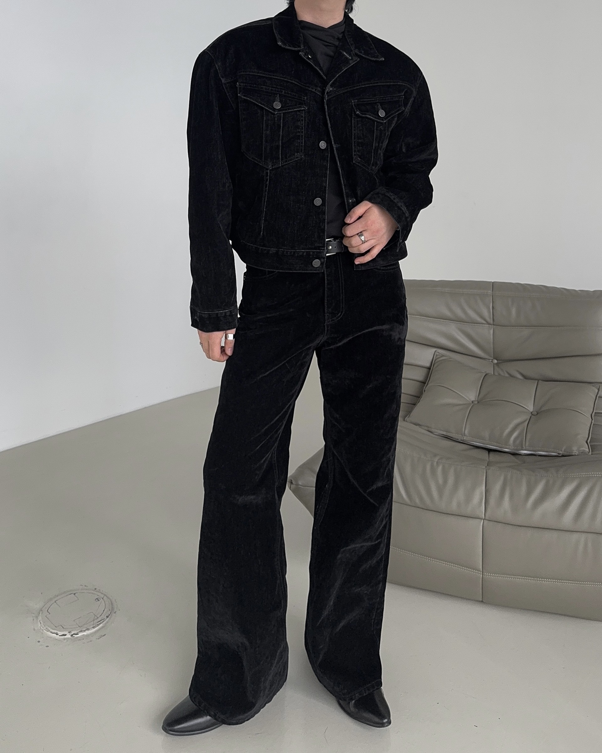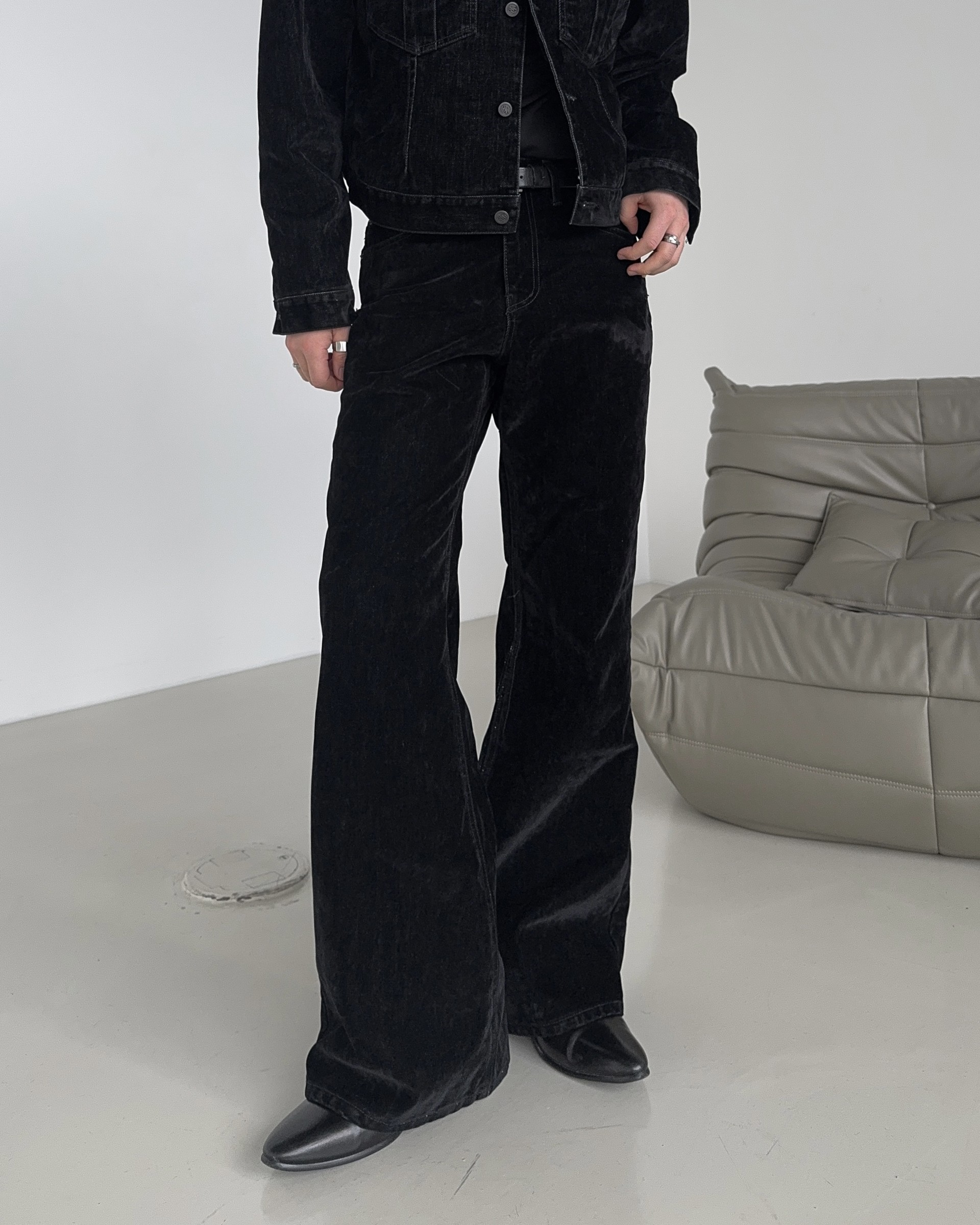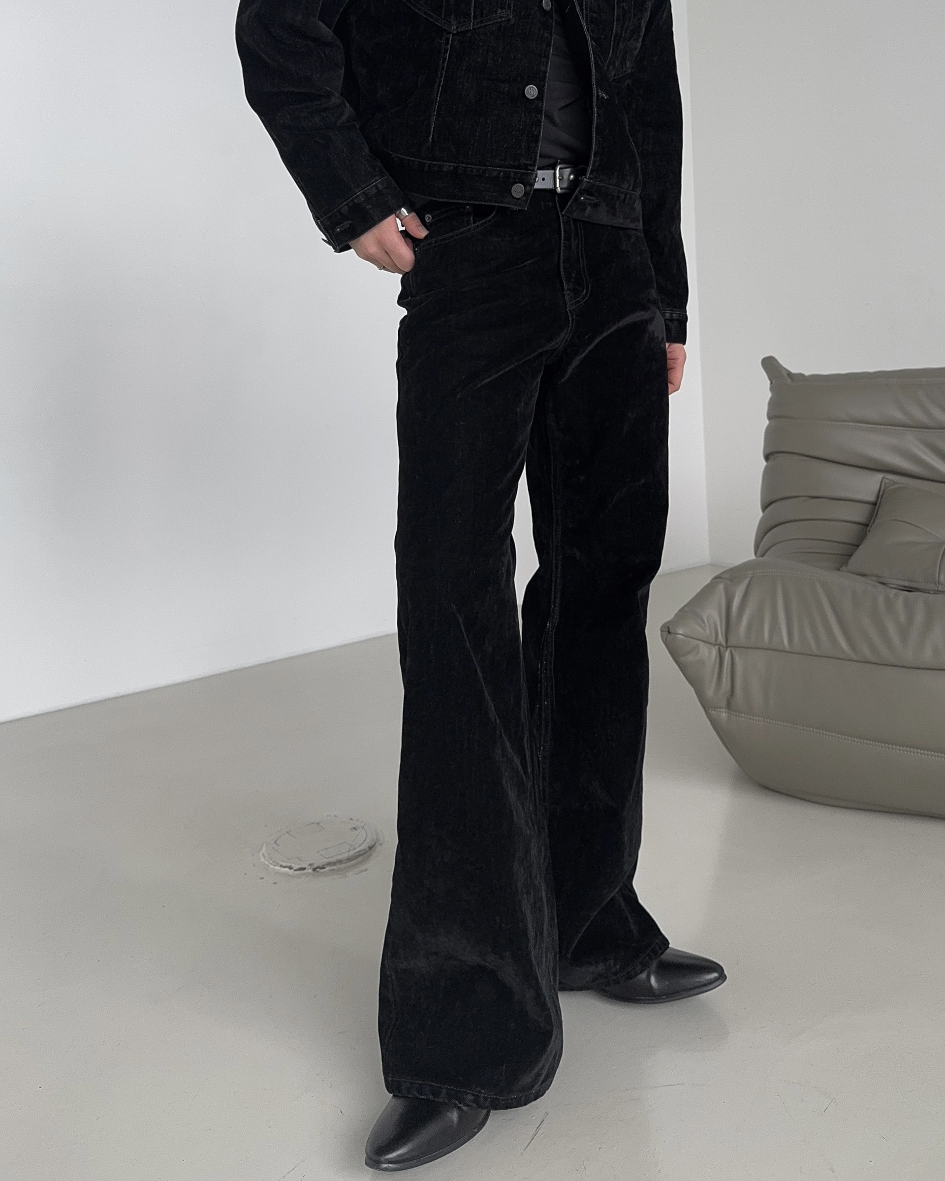 -유니크한 벨벳 텍스처의 팬츠로 하나 소장시 다양한 코디에 어울러지는 무드
