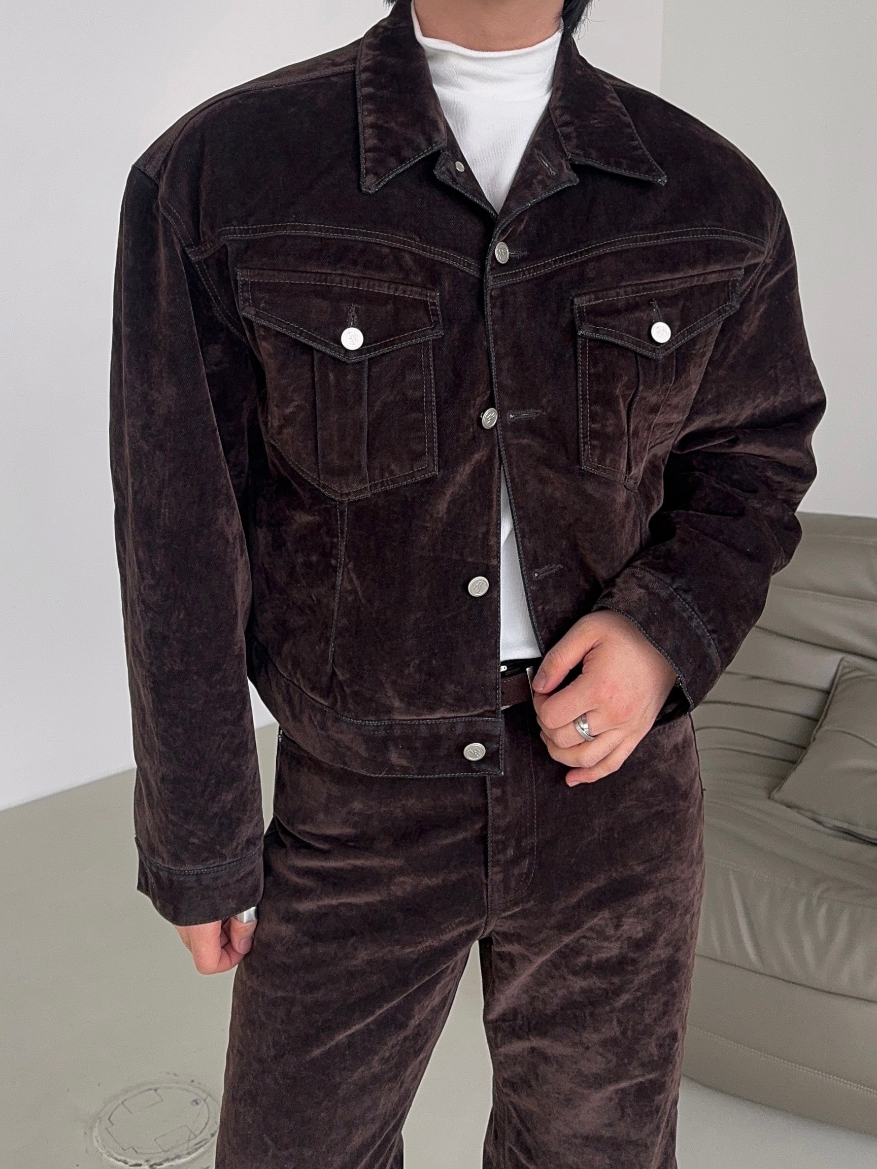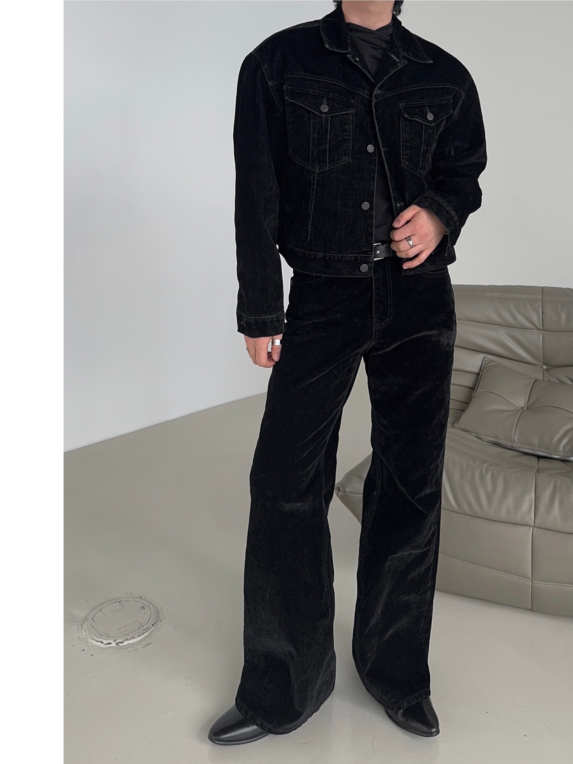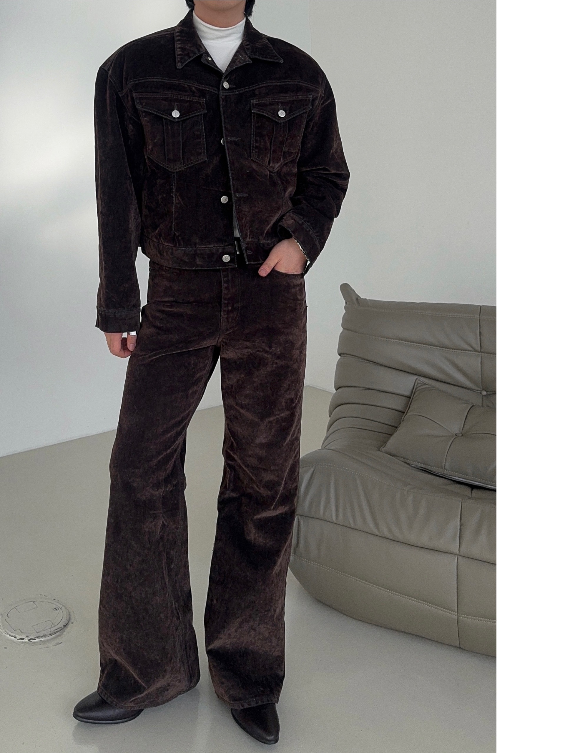 -유니크한 벨벳 텍스처의 팬츠로 하나 소장시 다양한 코디에 어울러지는 무드