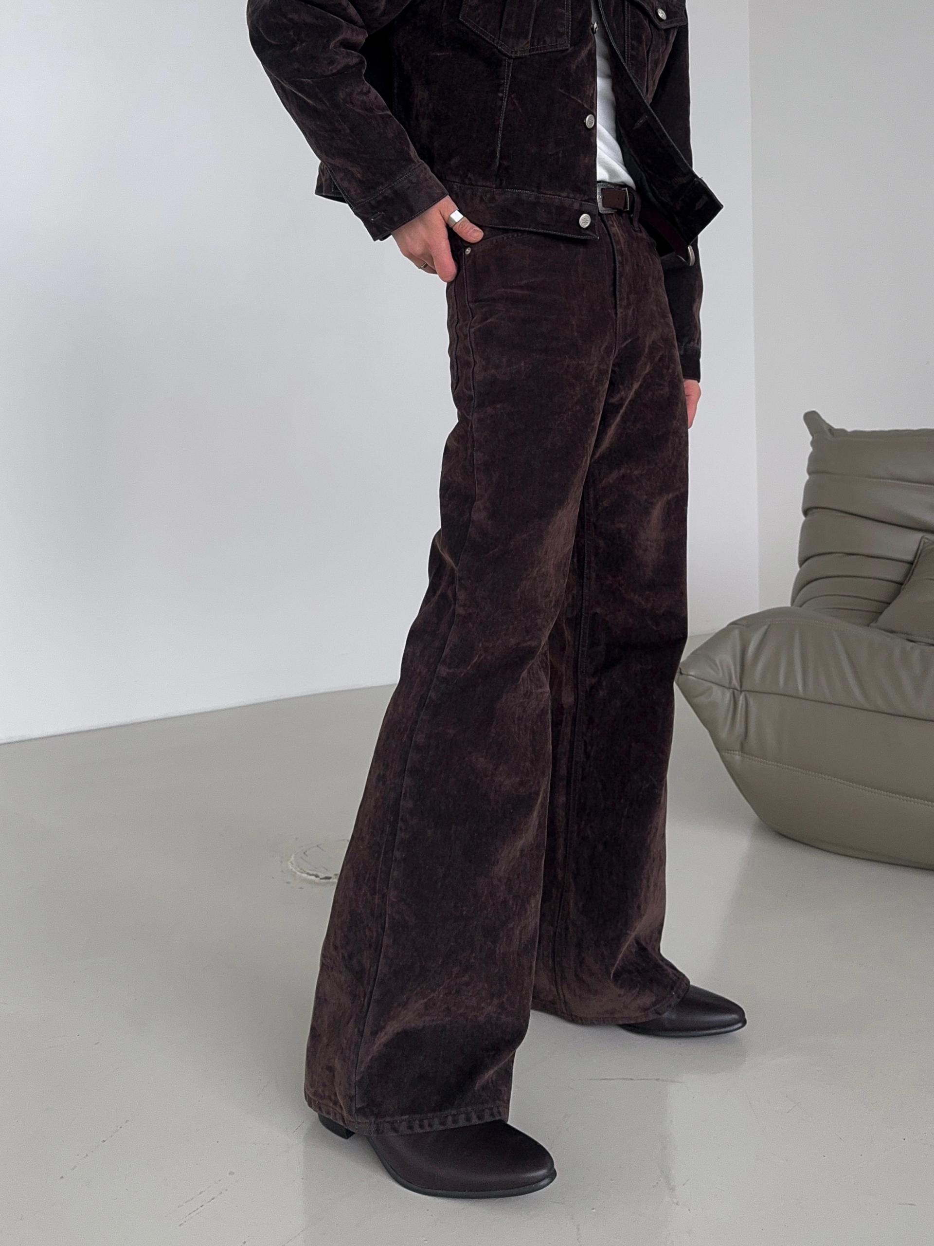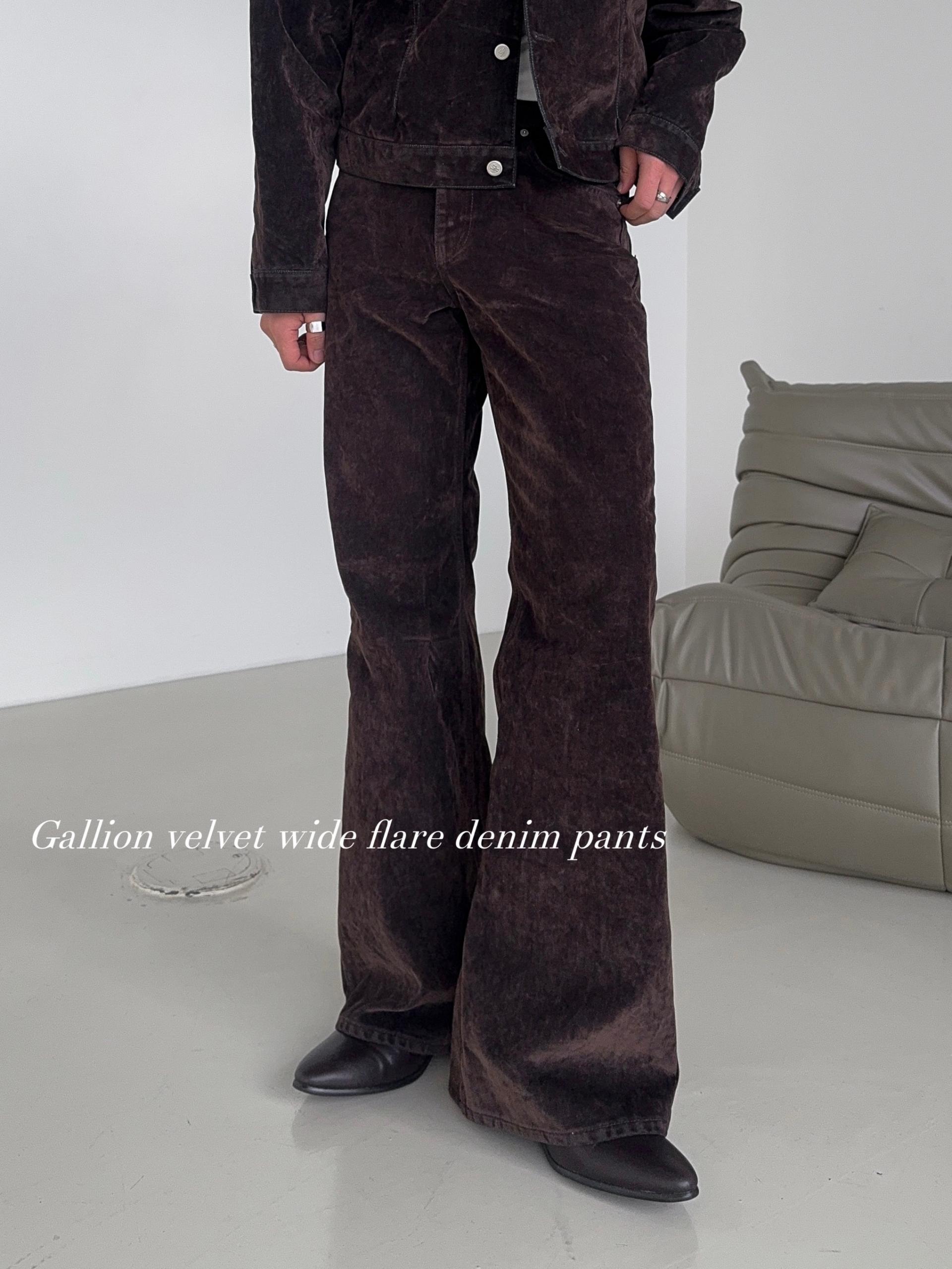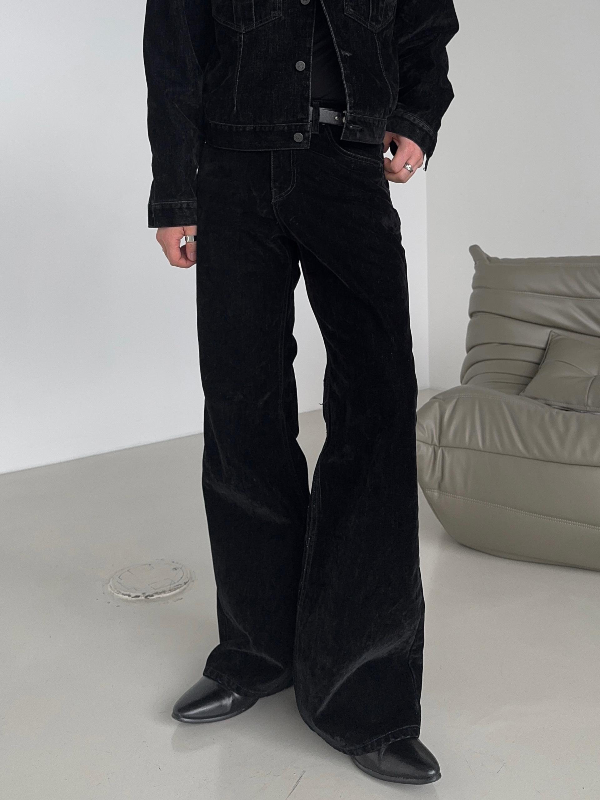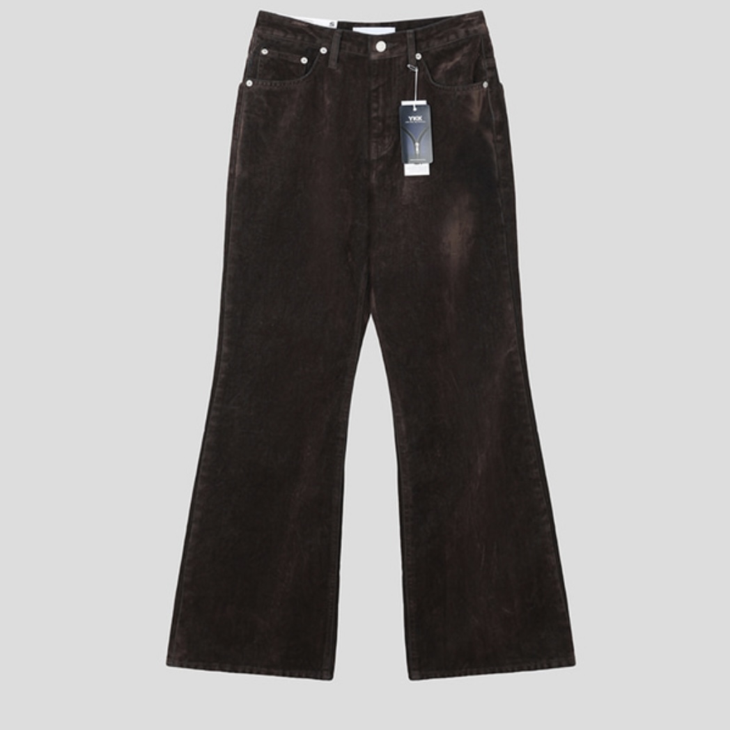 -벨벳 텍스처 데님 소재로 제작된 플레어 팬츠