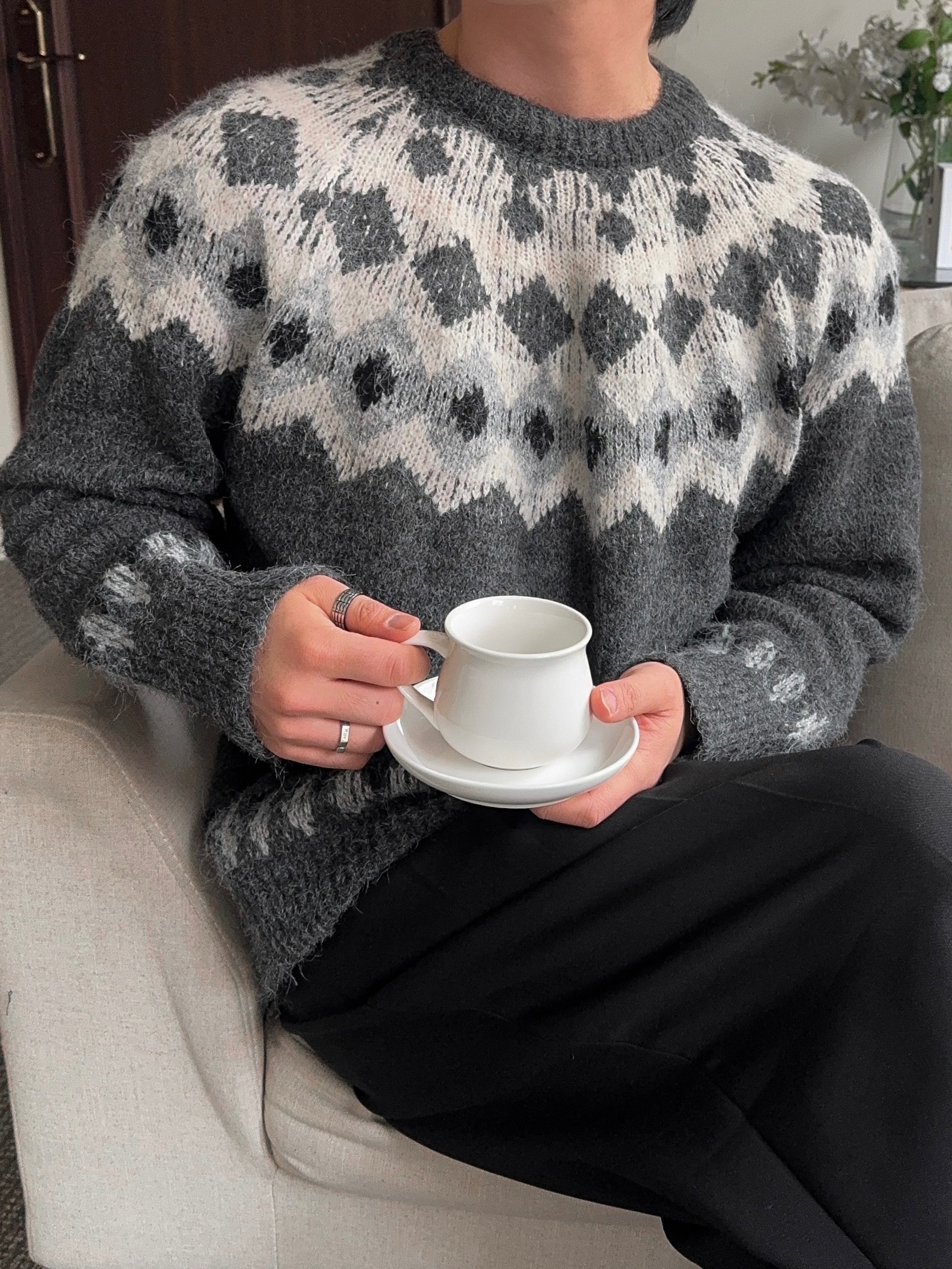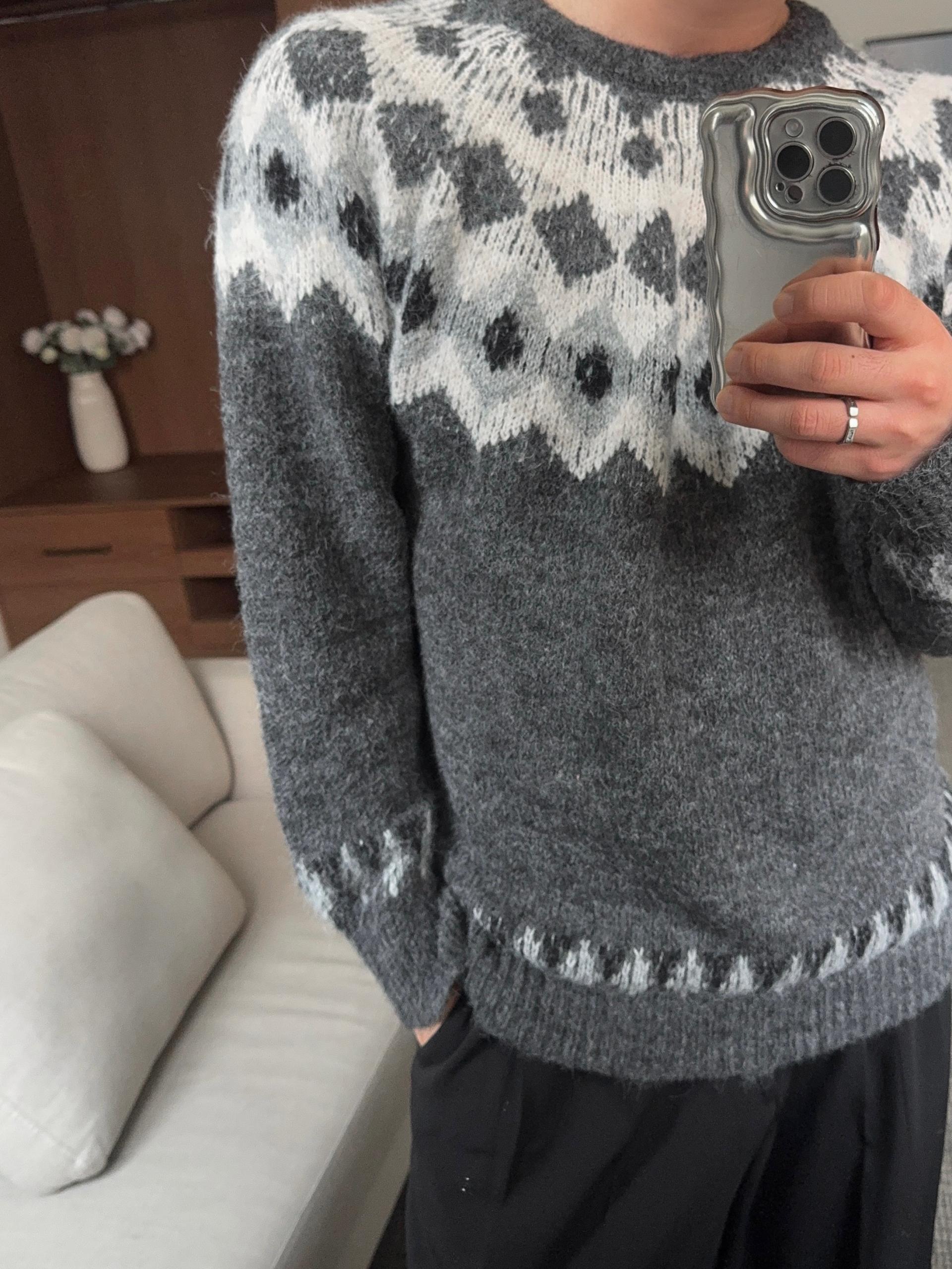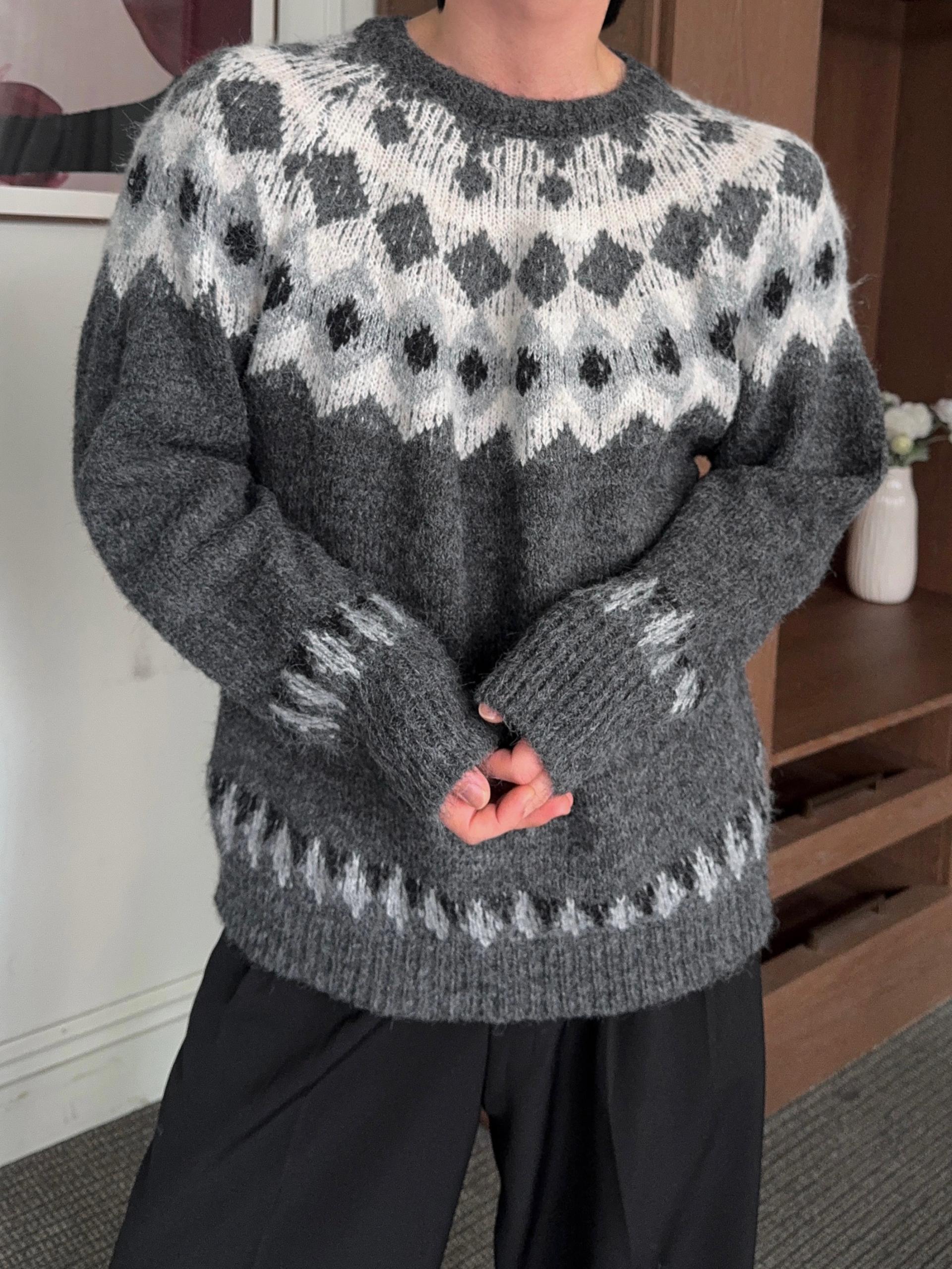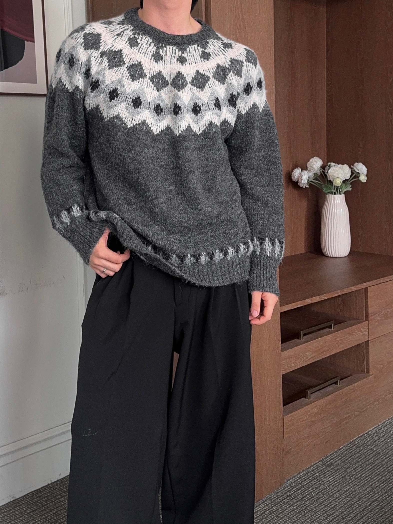 -보온성이 뛰어난 울 함량 원사로 제작된 노르딕 니트