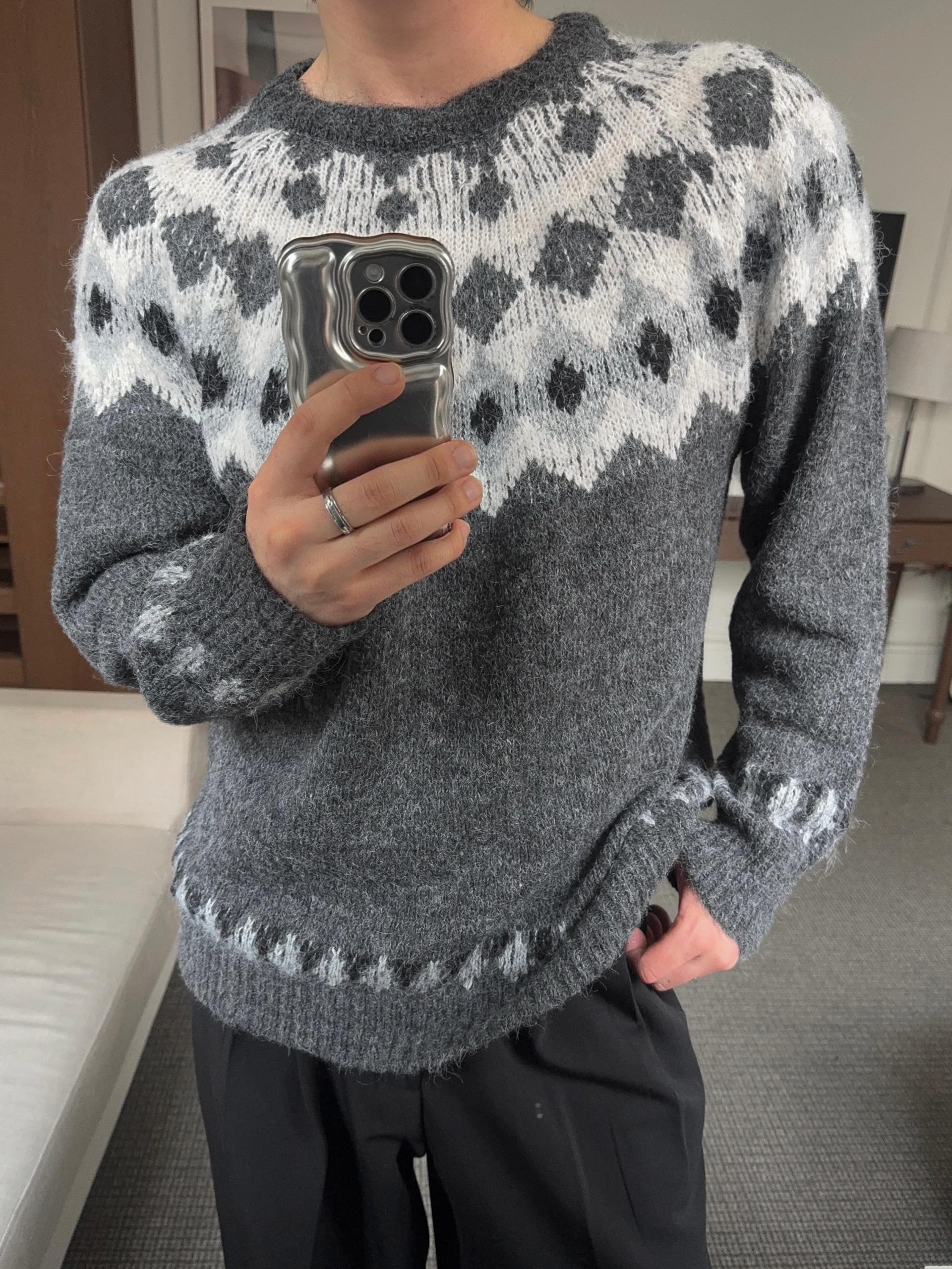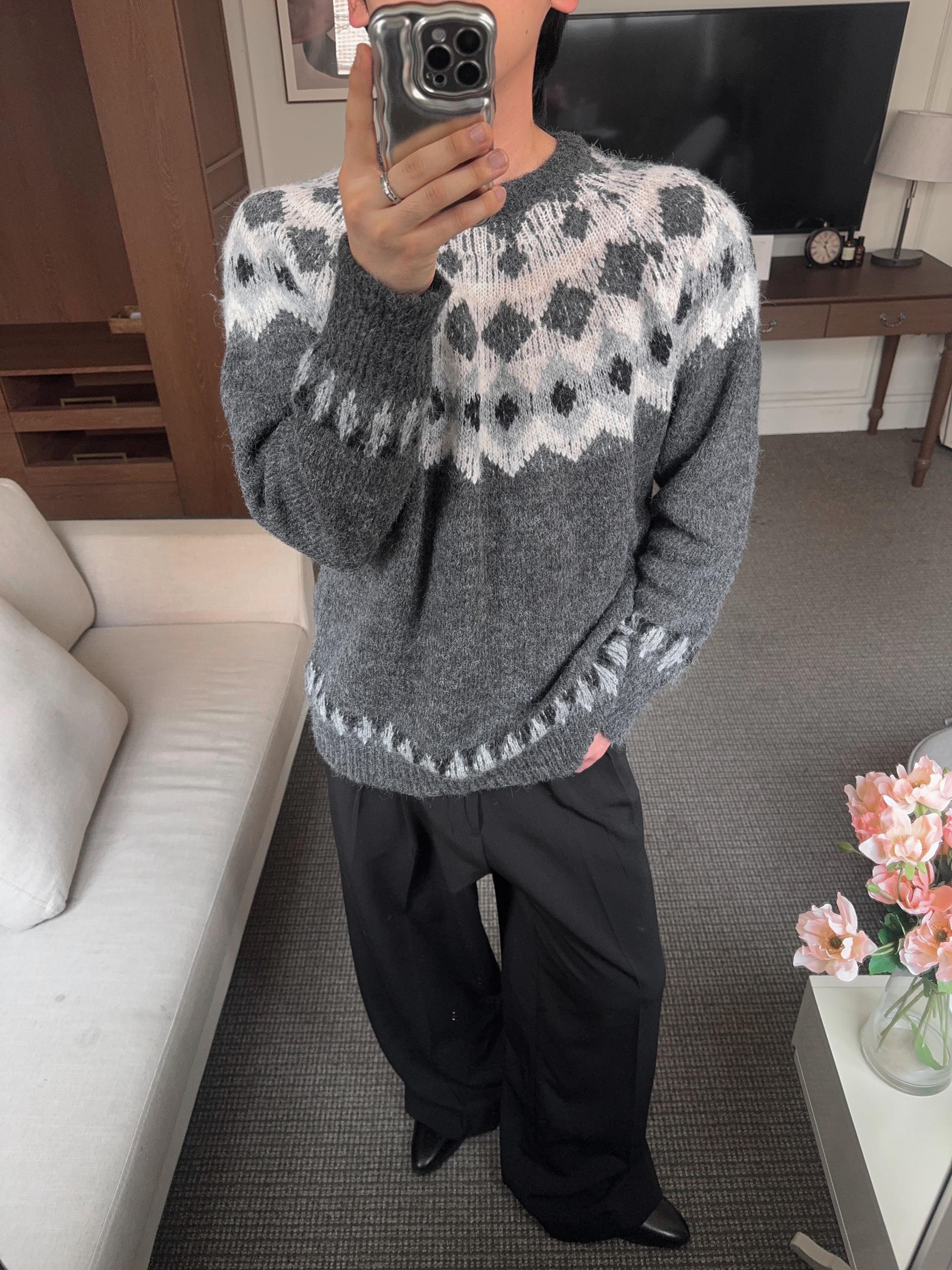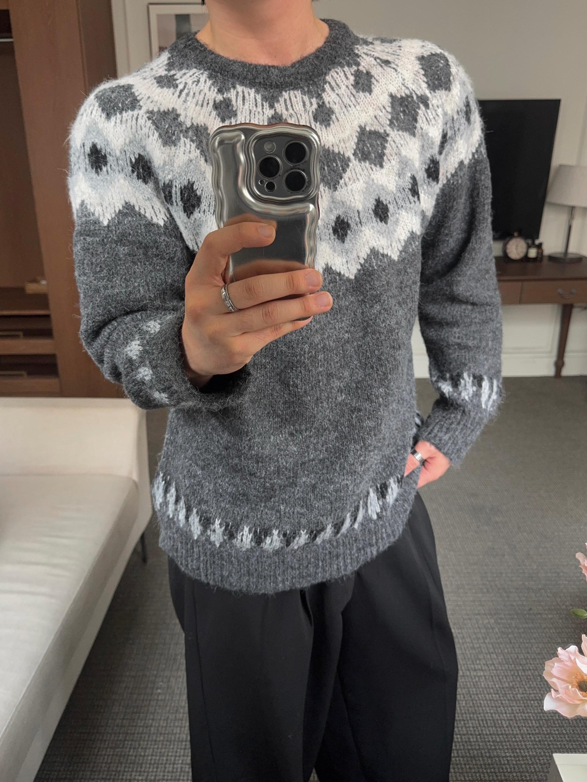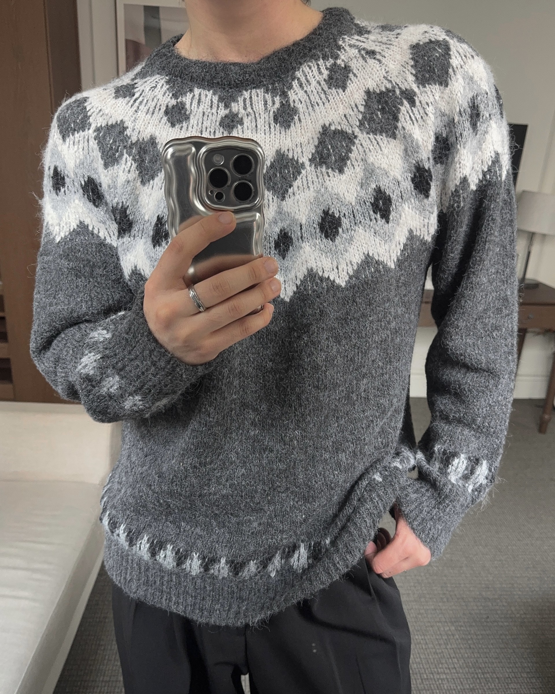 -보온성이 뛰어난 울 함량 원사로 제작된 노르딕 니트