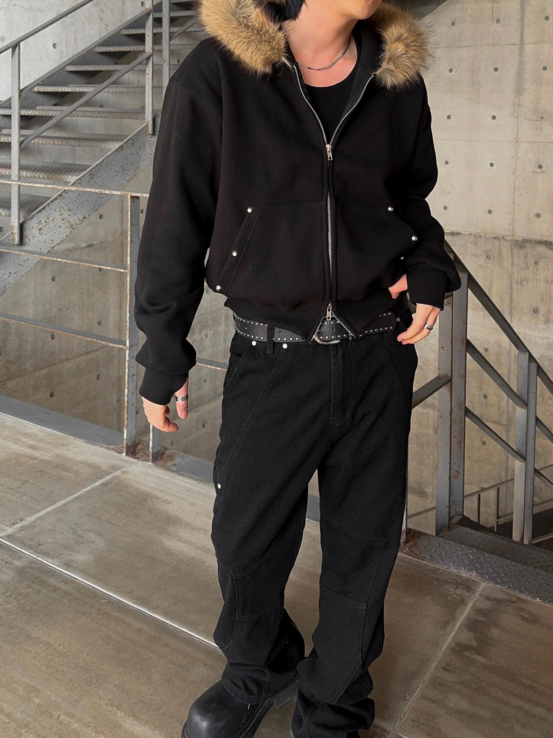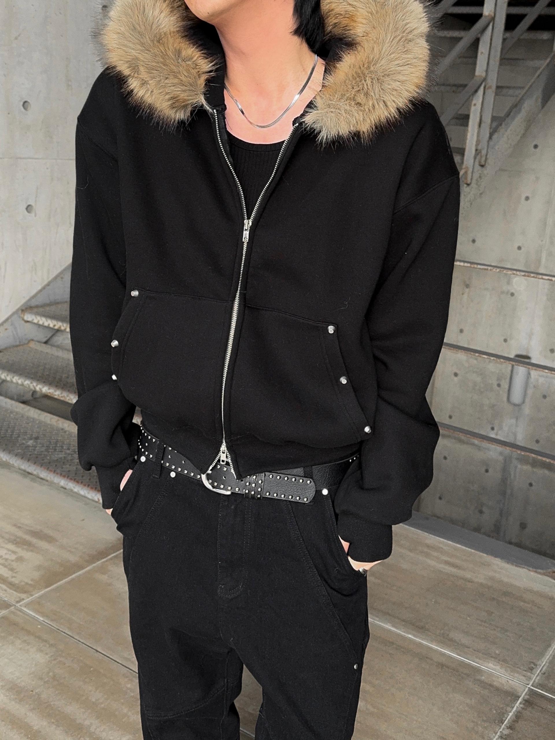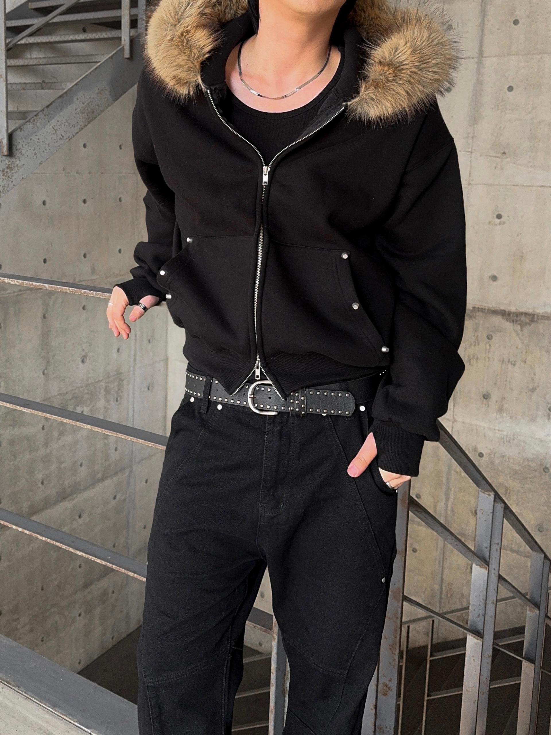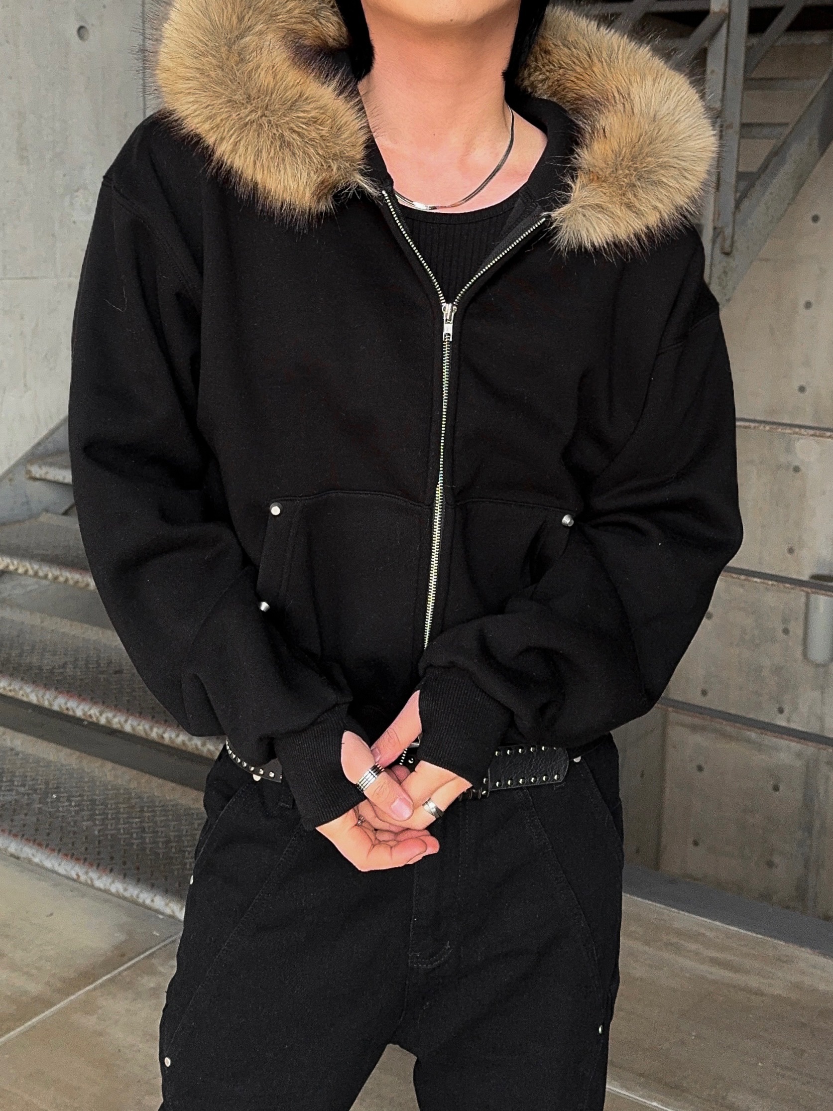 -고밀도 덴타덤블 양기모 원단으로 제작된 라쿤 후드 집업
