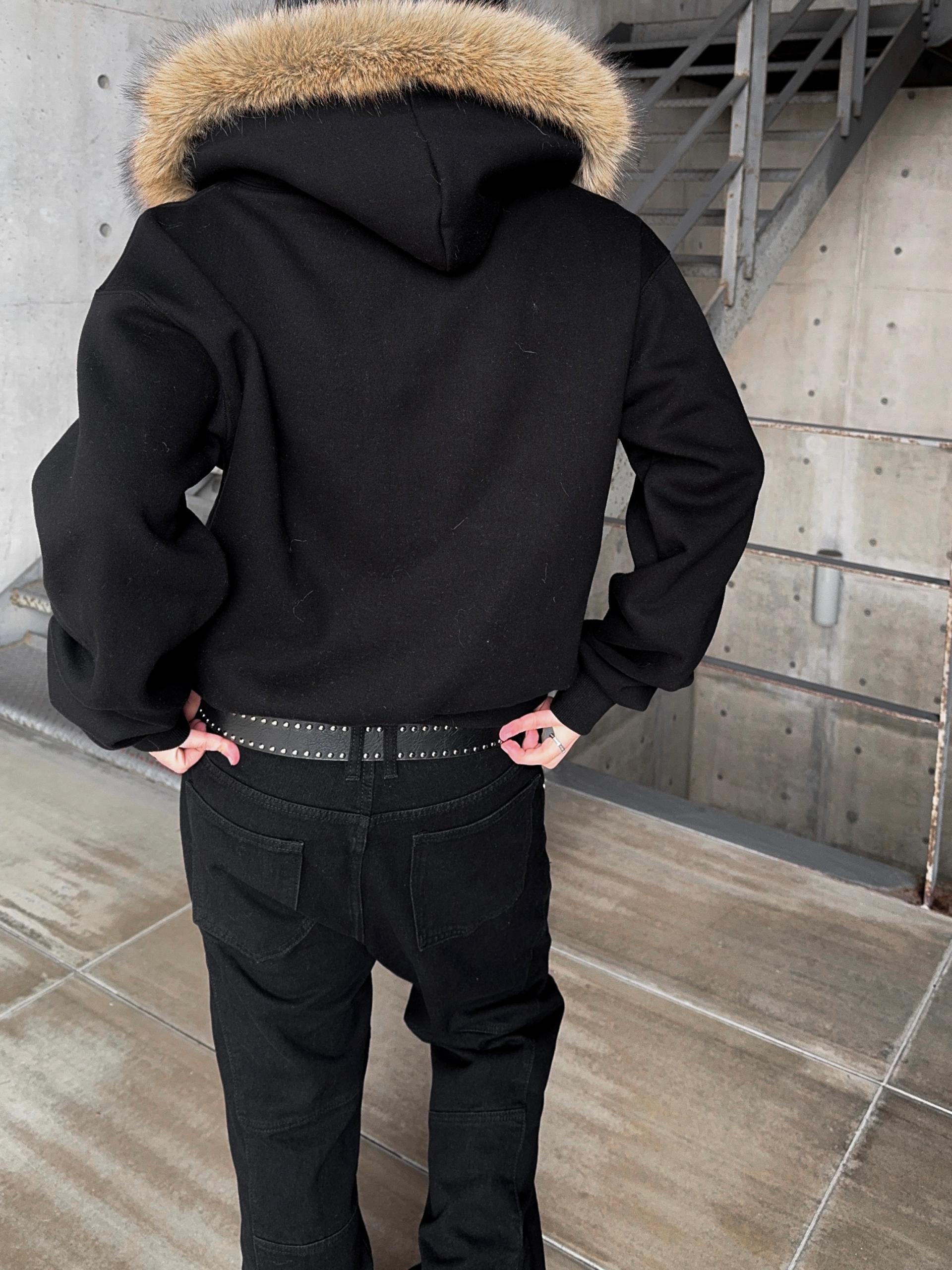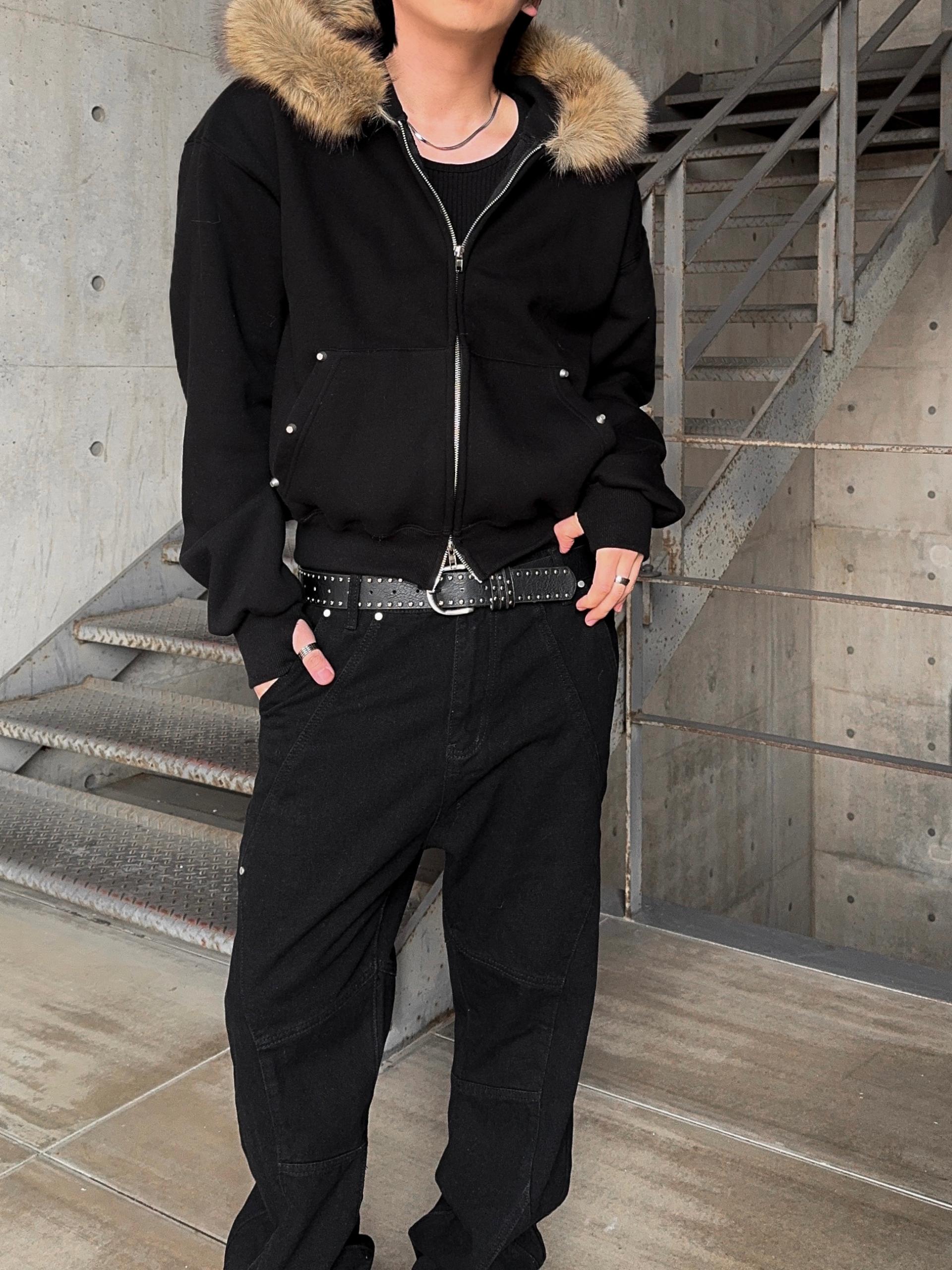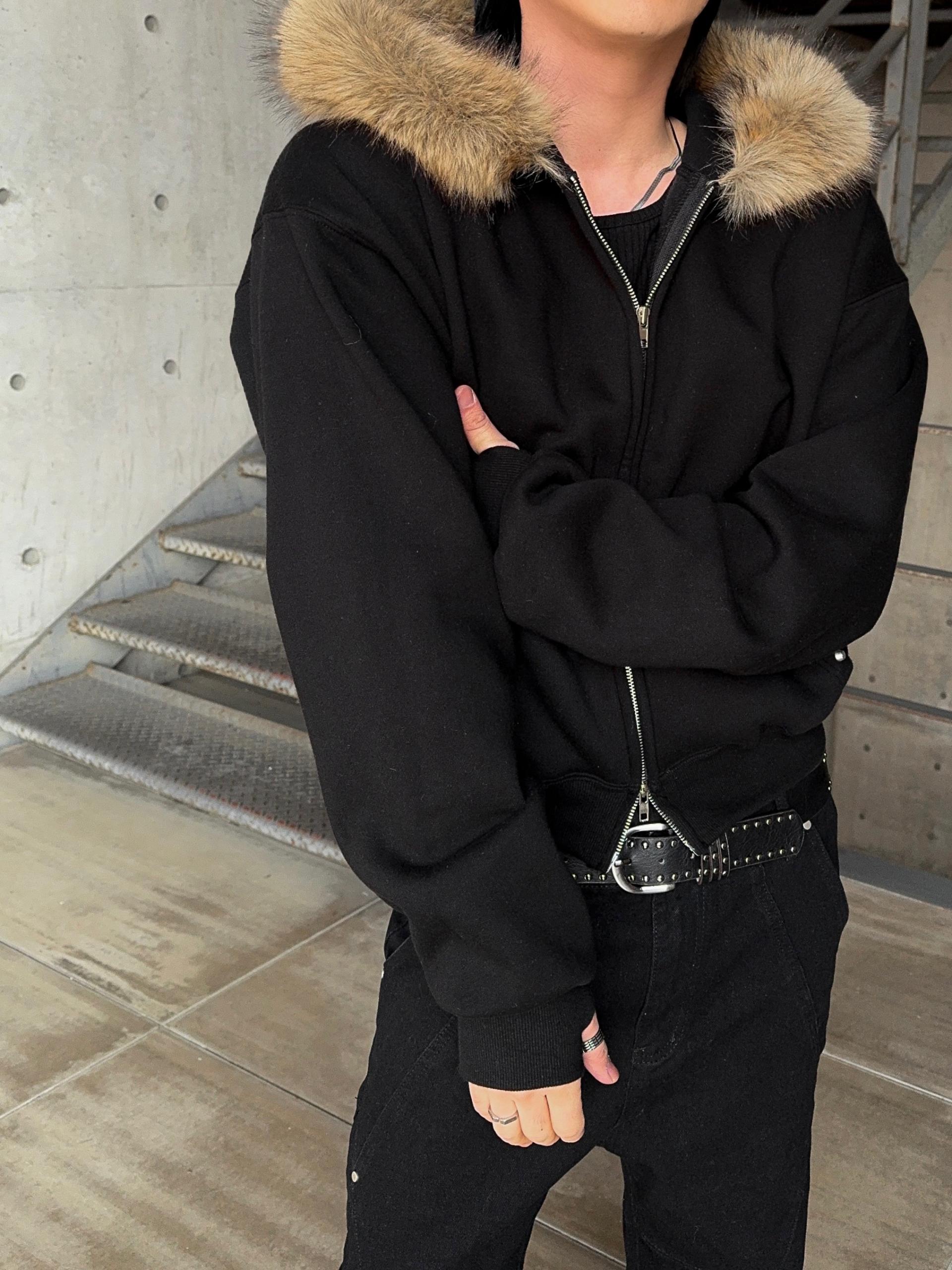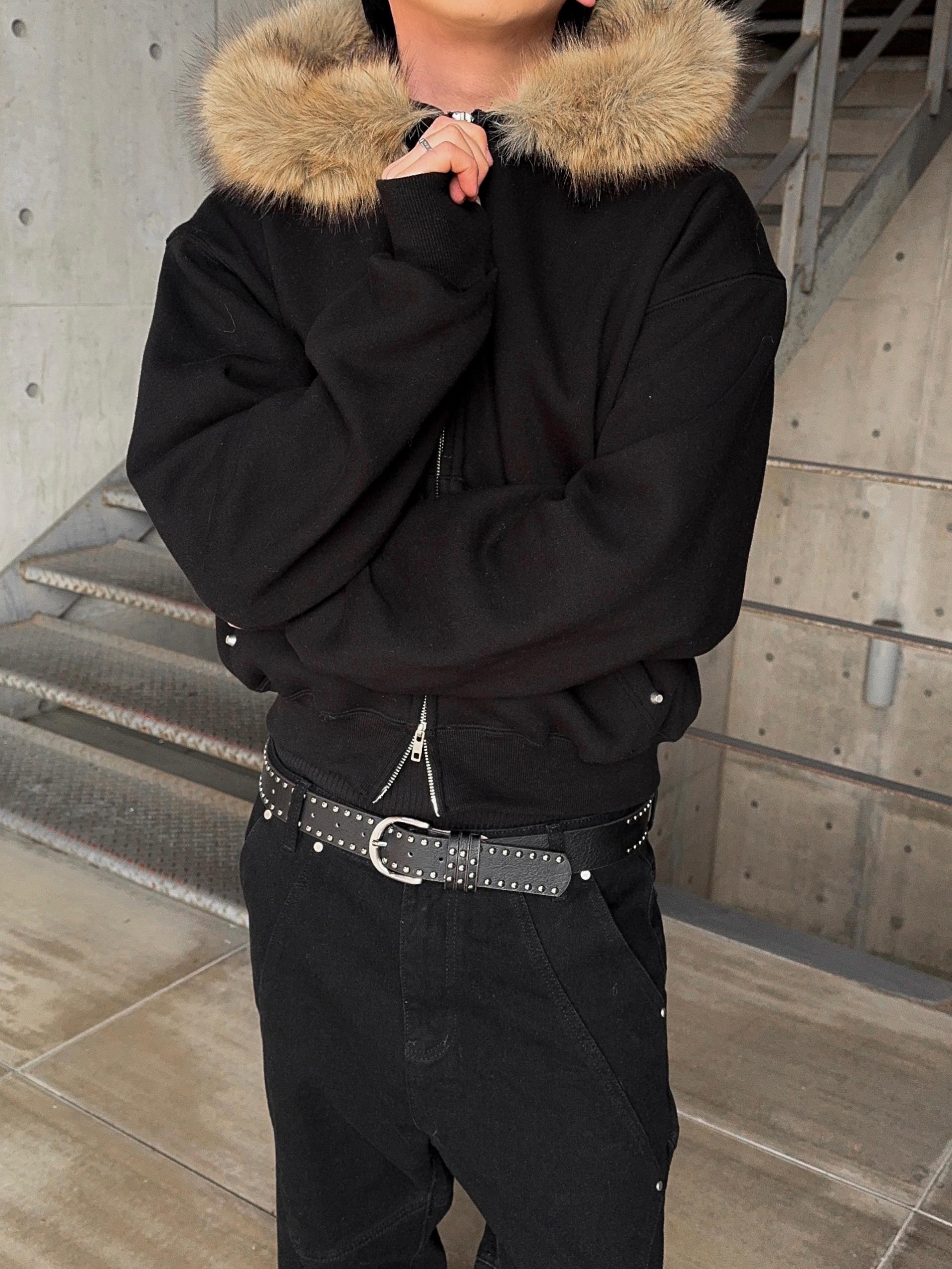 -고밀도 덴타덤블 양기모 원단으로 제작된 라쿤 후드 집업