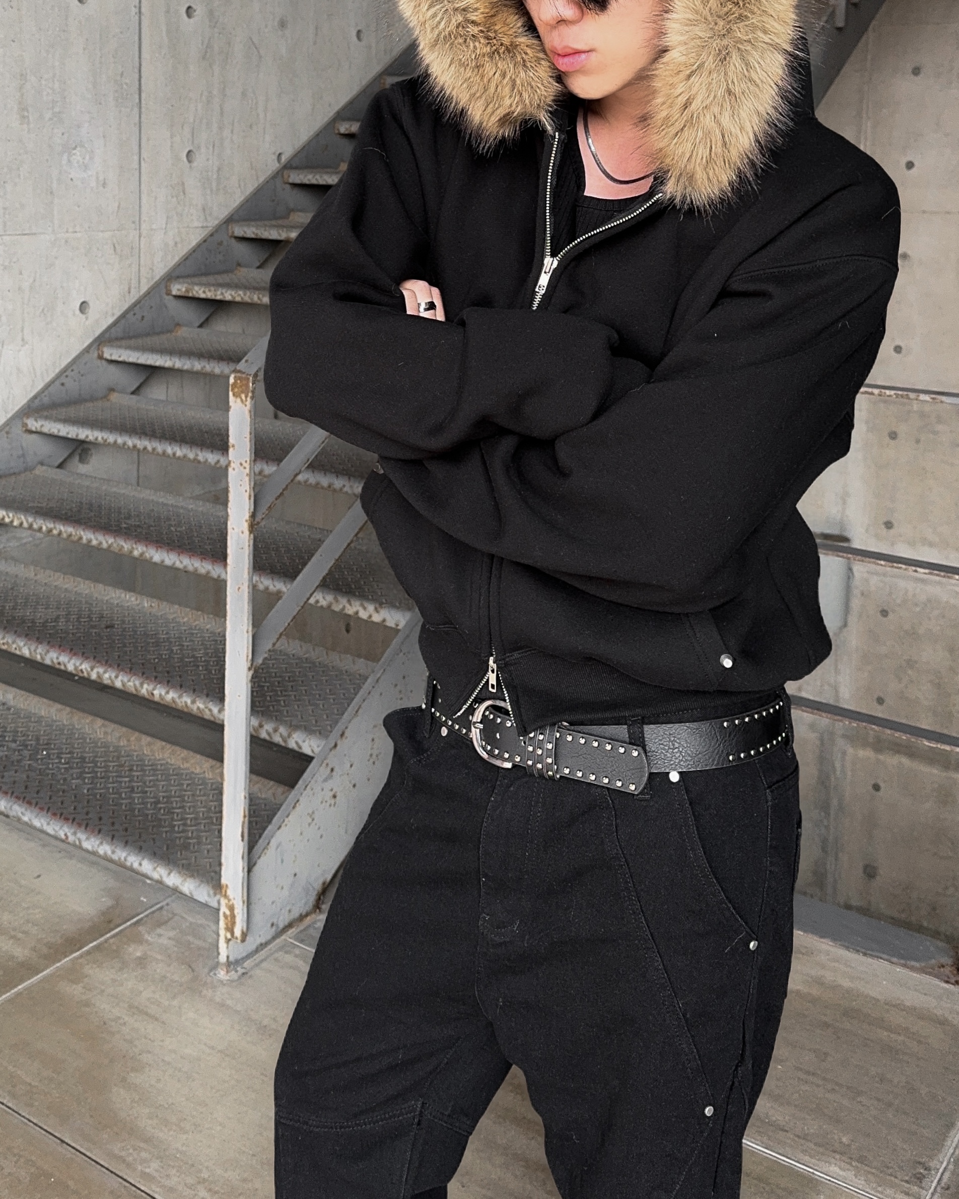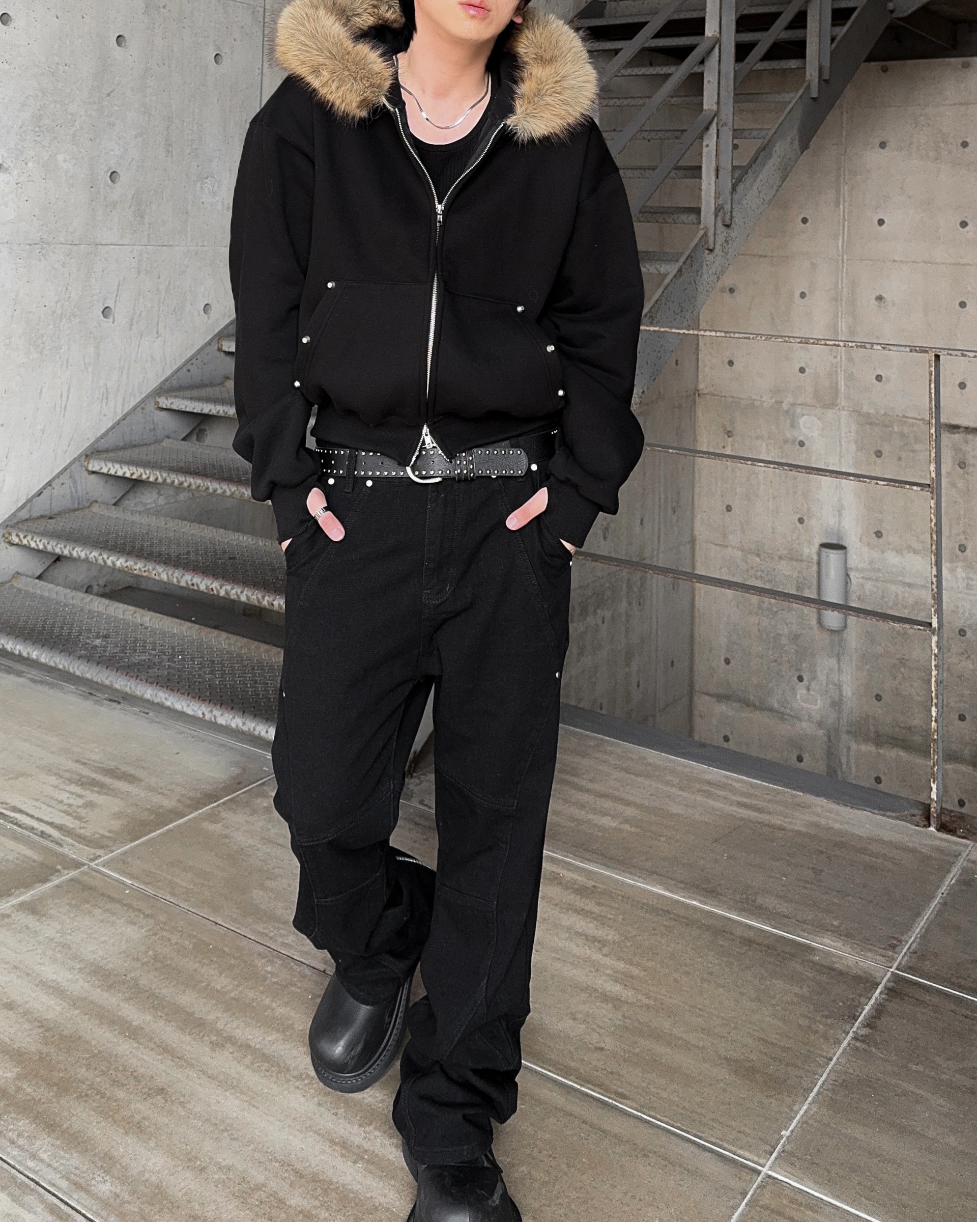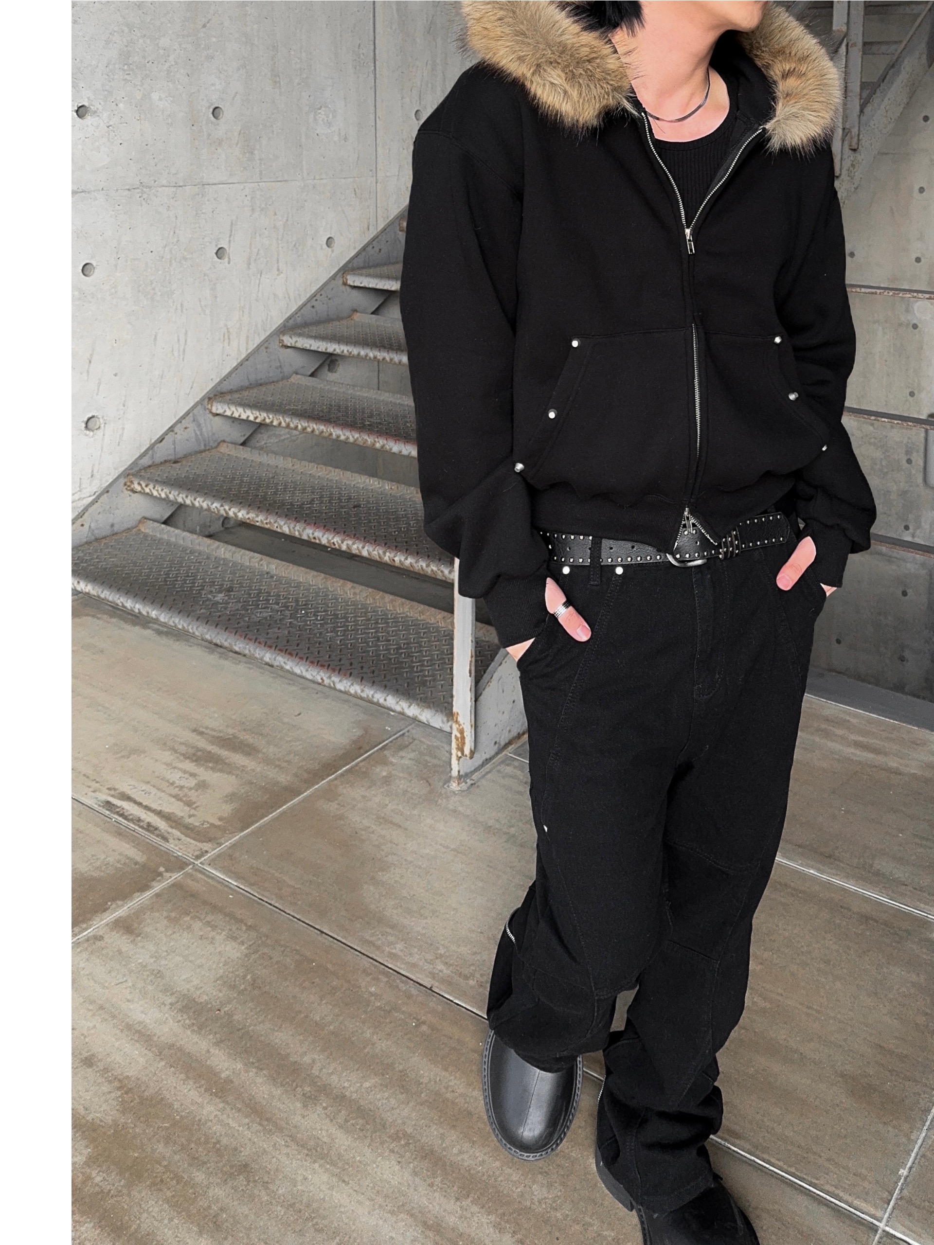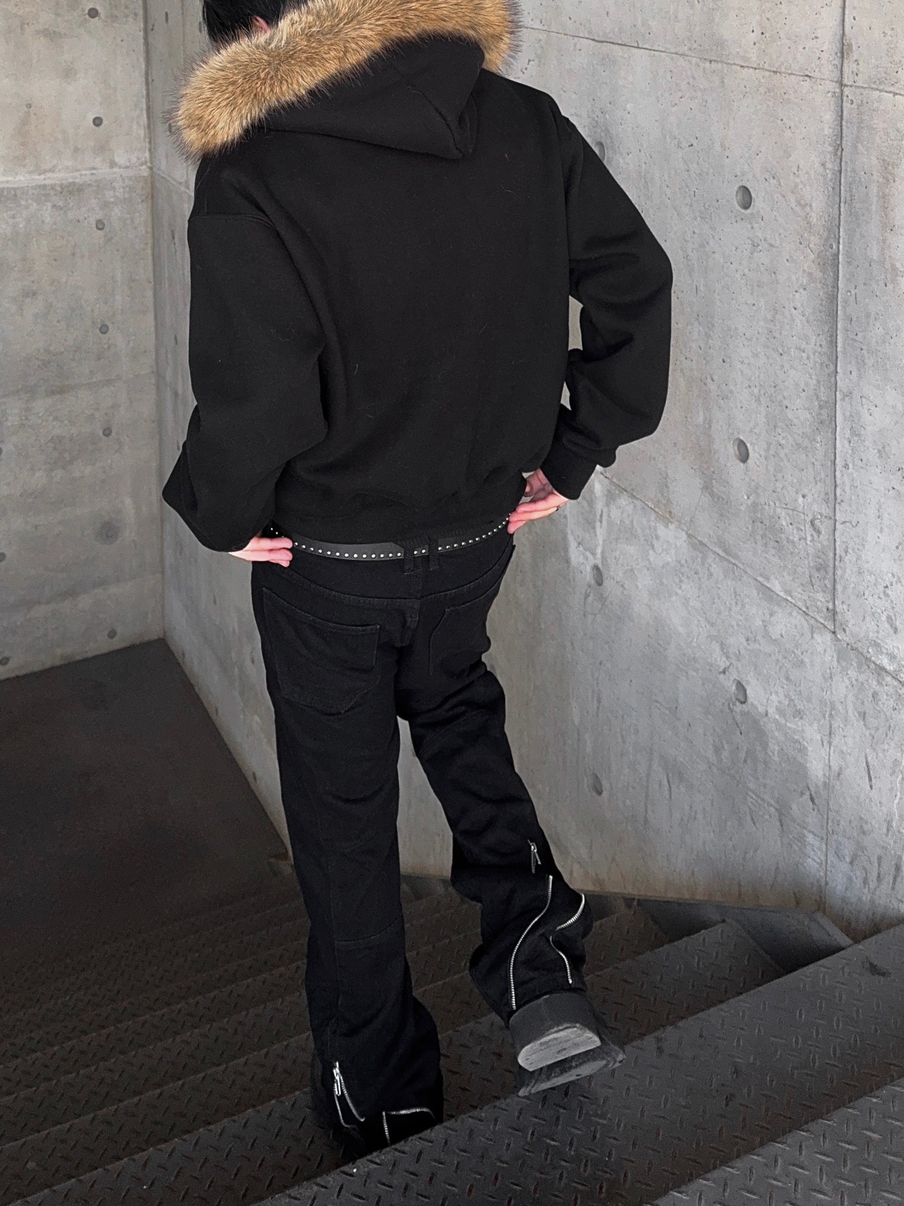 -고밀도 덴타덤블 양기모 원단으로 제작된 라쿤 후드 집업