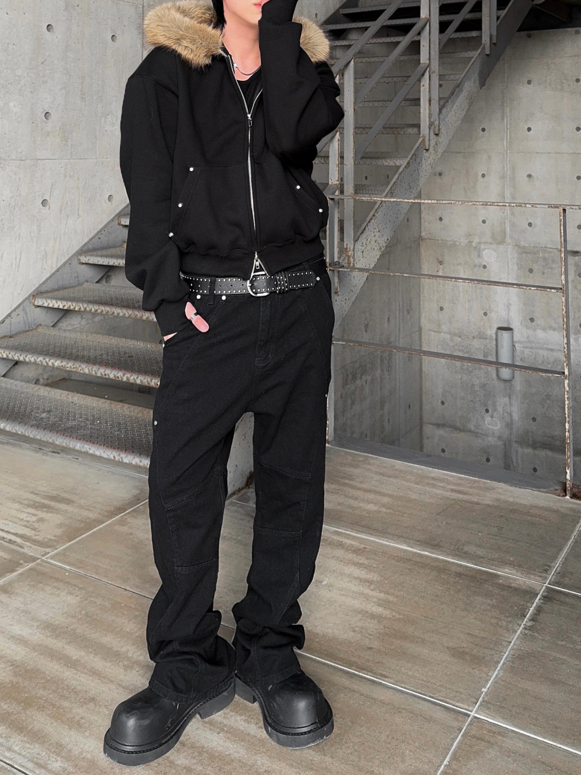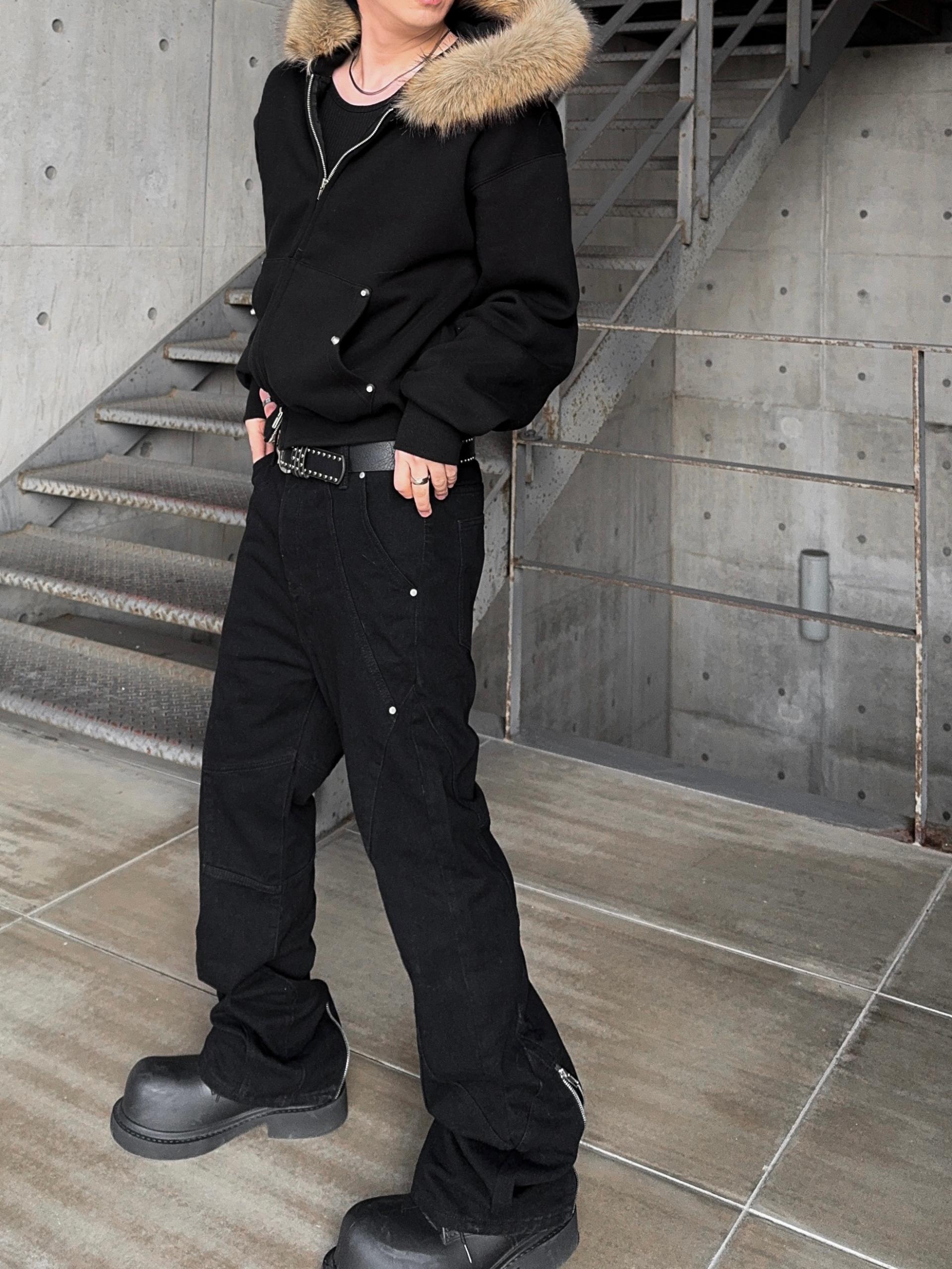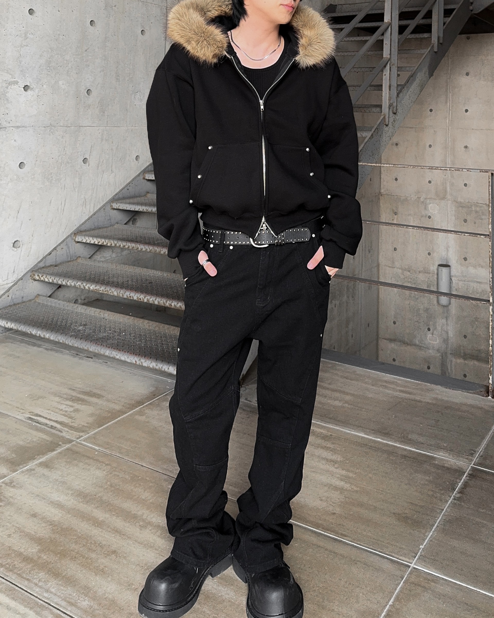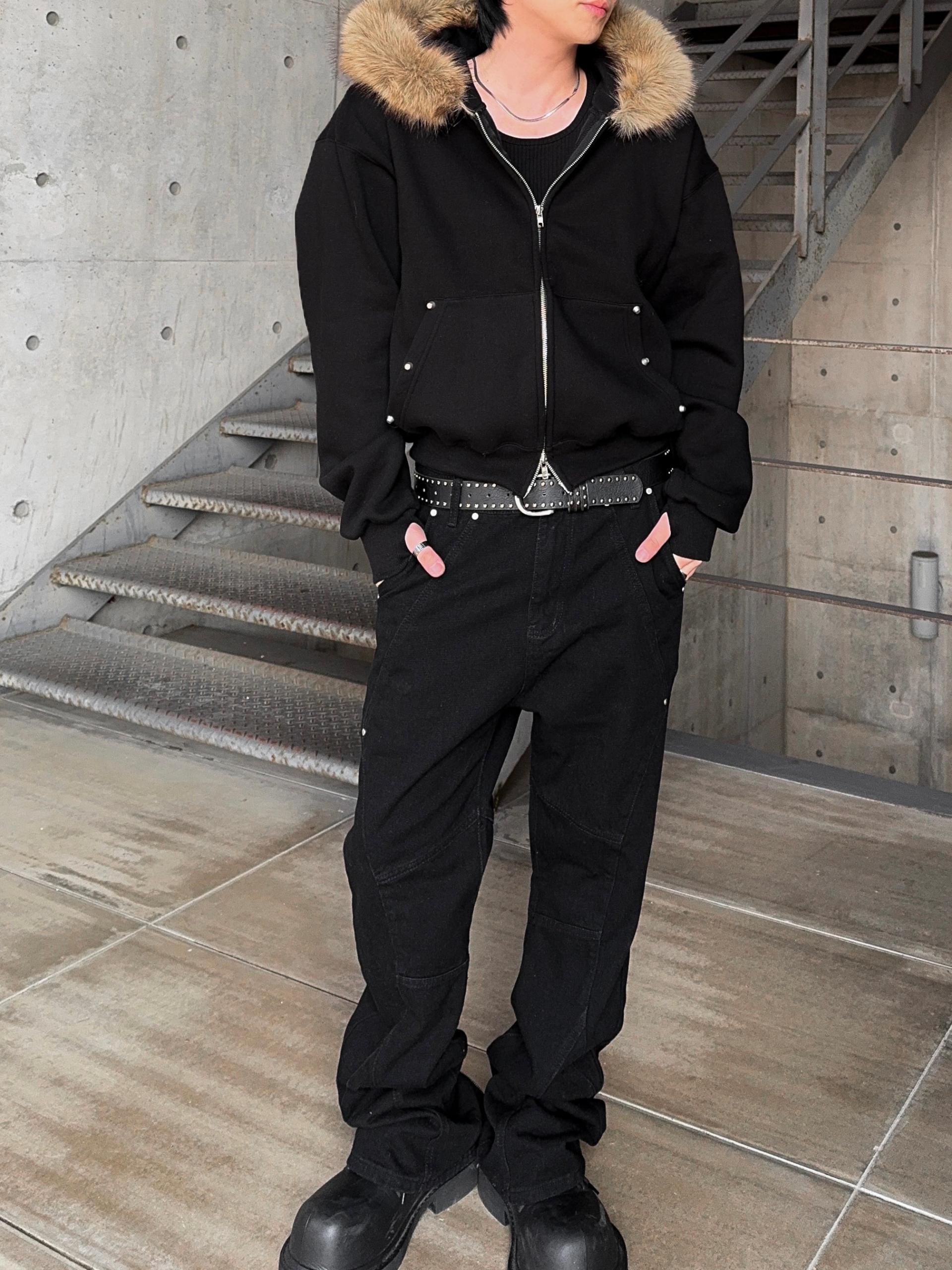 -고밀도 덴타덤블 양기모 원단으로 제작된 라쿤 후드 집업