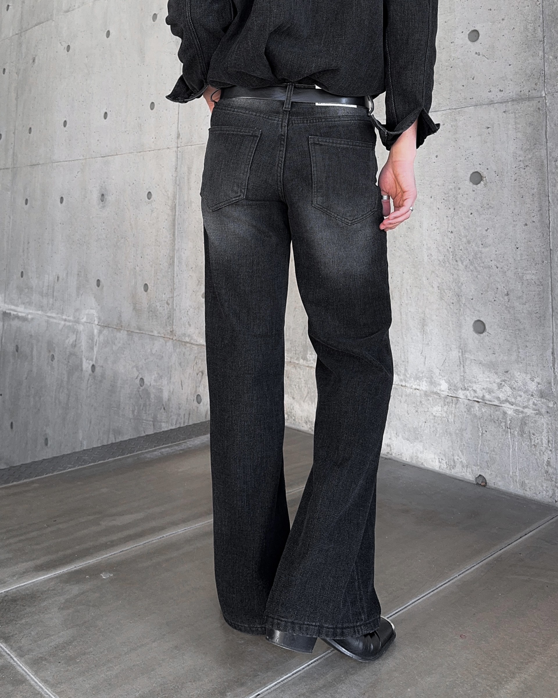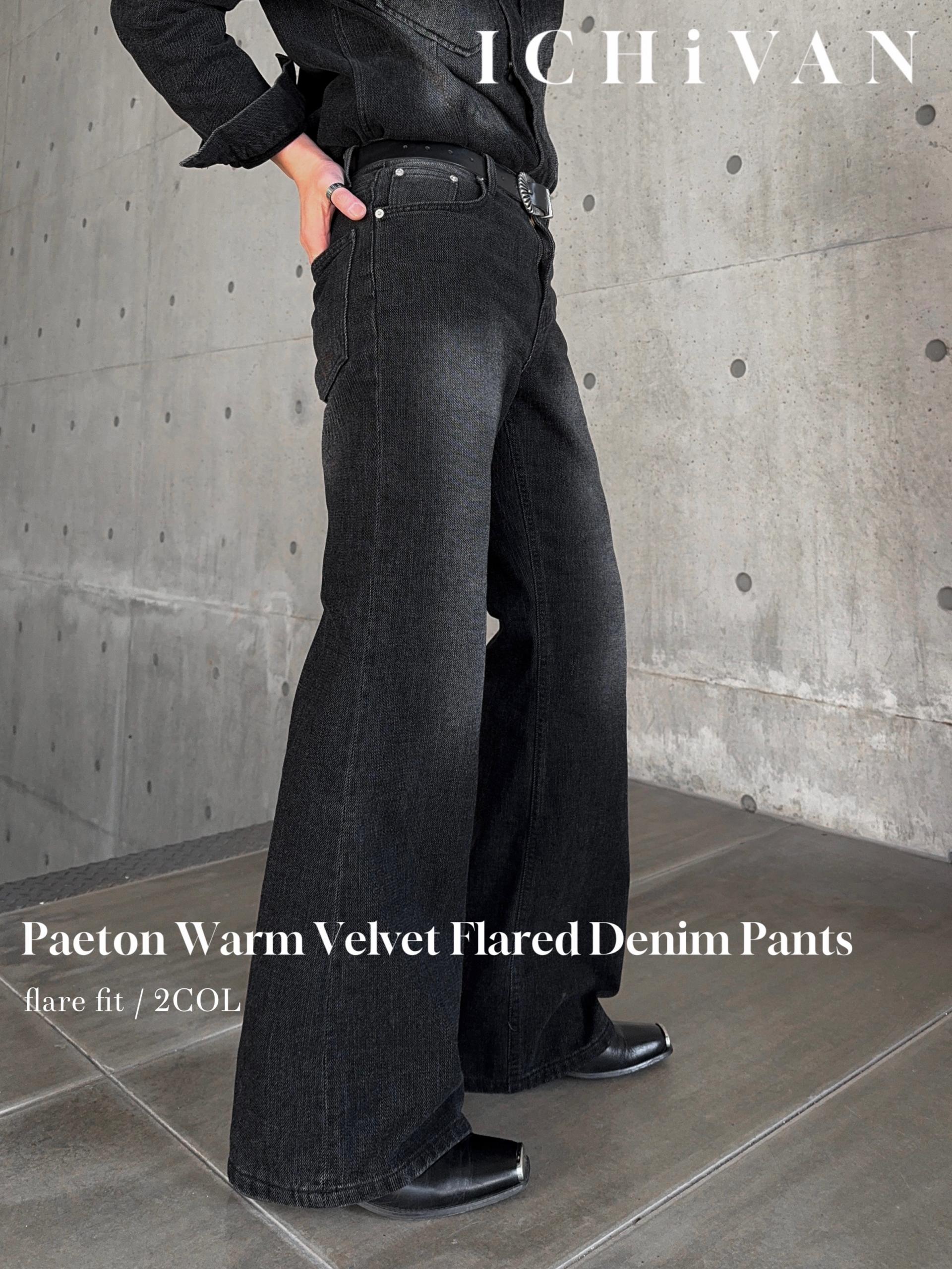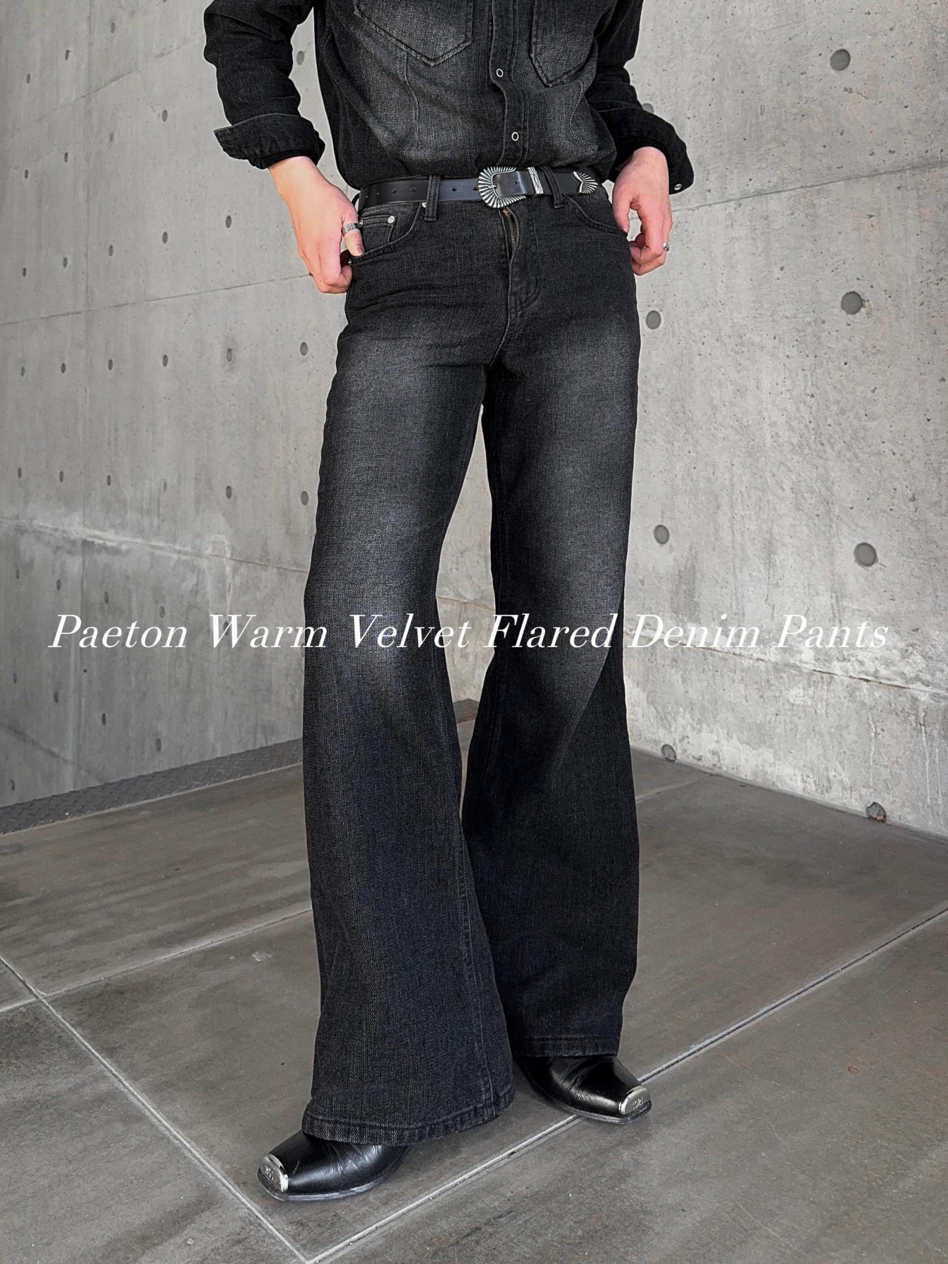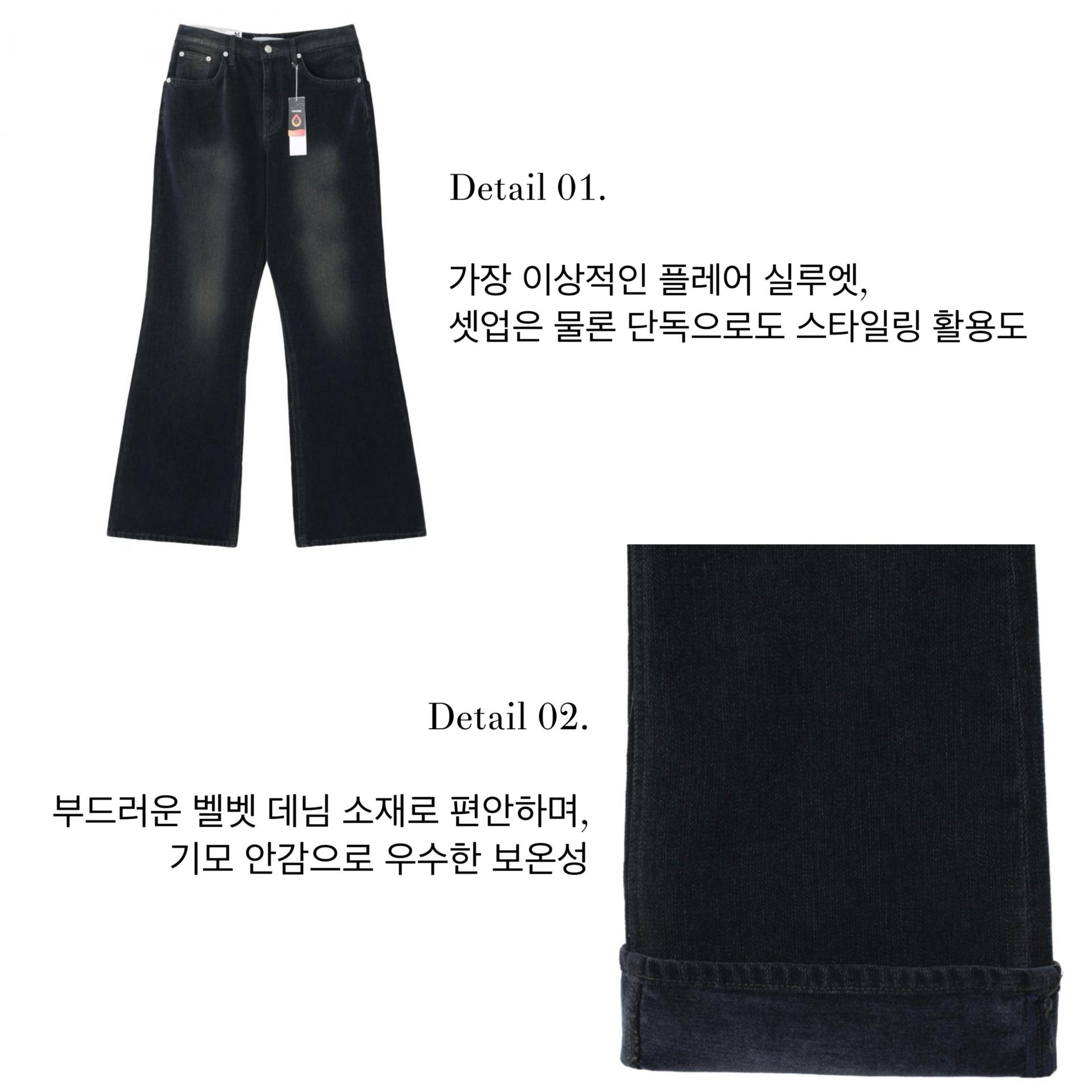 -부드러운 벨벳 텍스처가 가미된 플레어 데님 팬츠