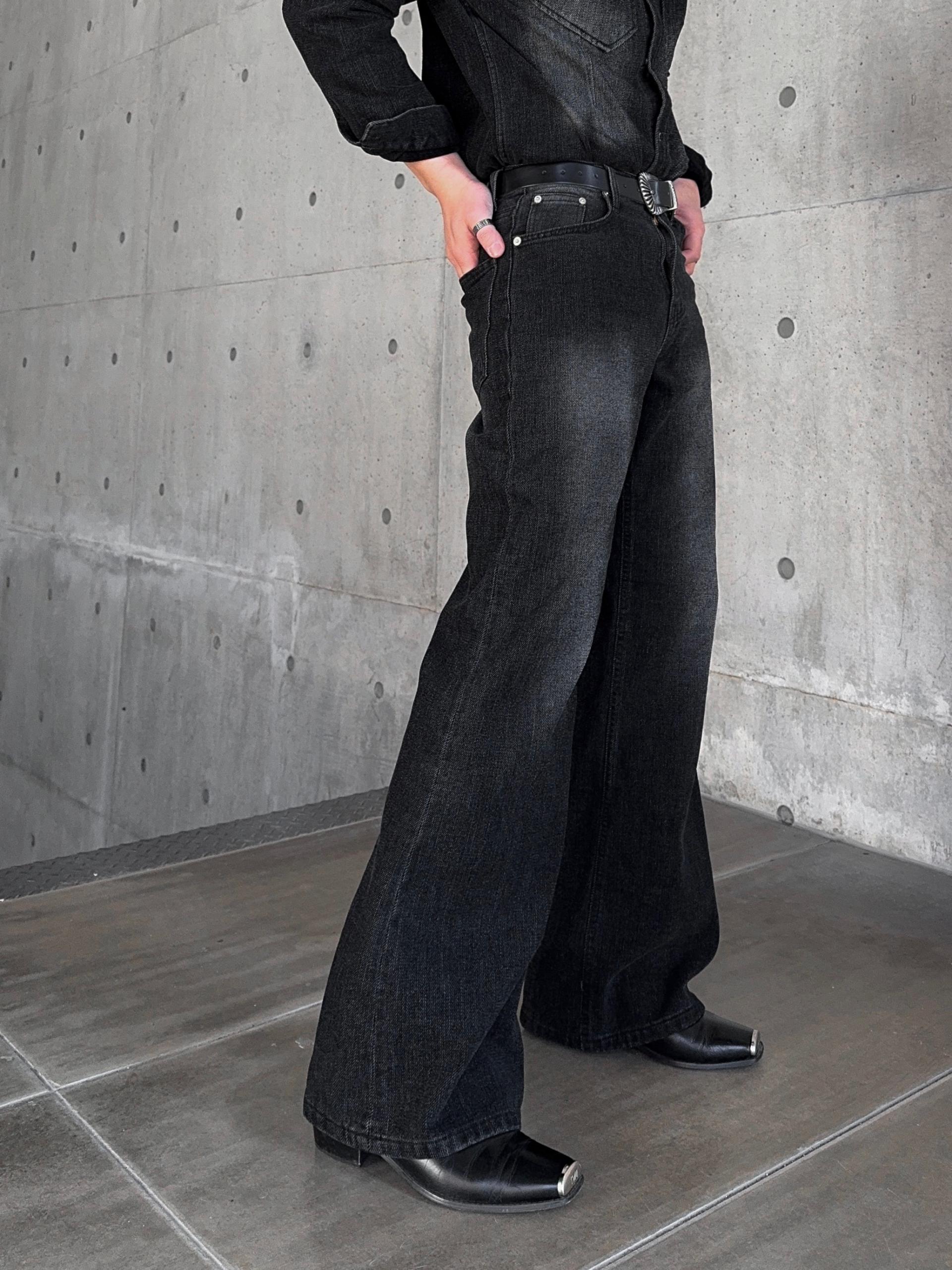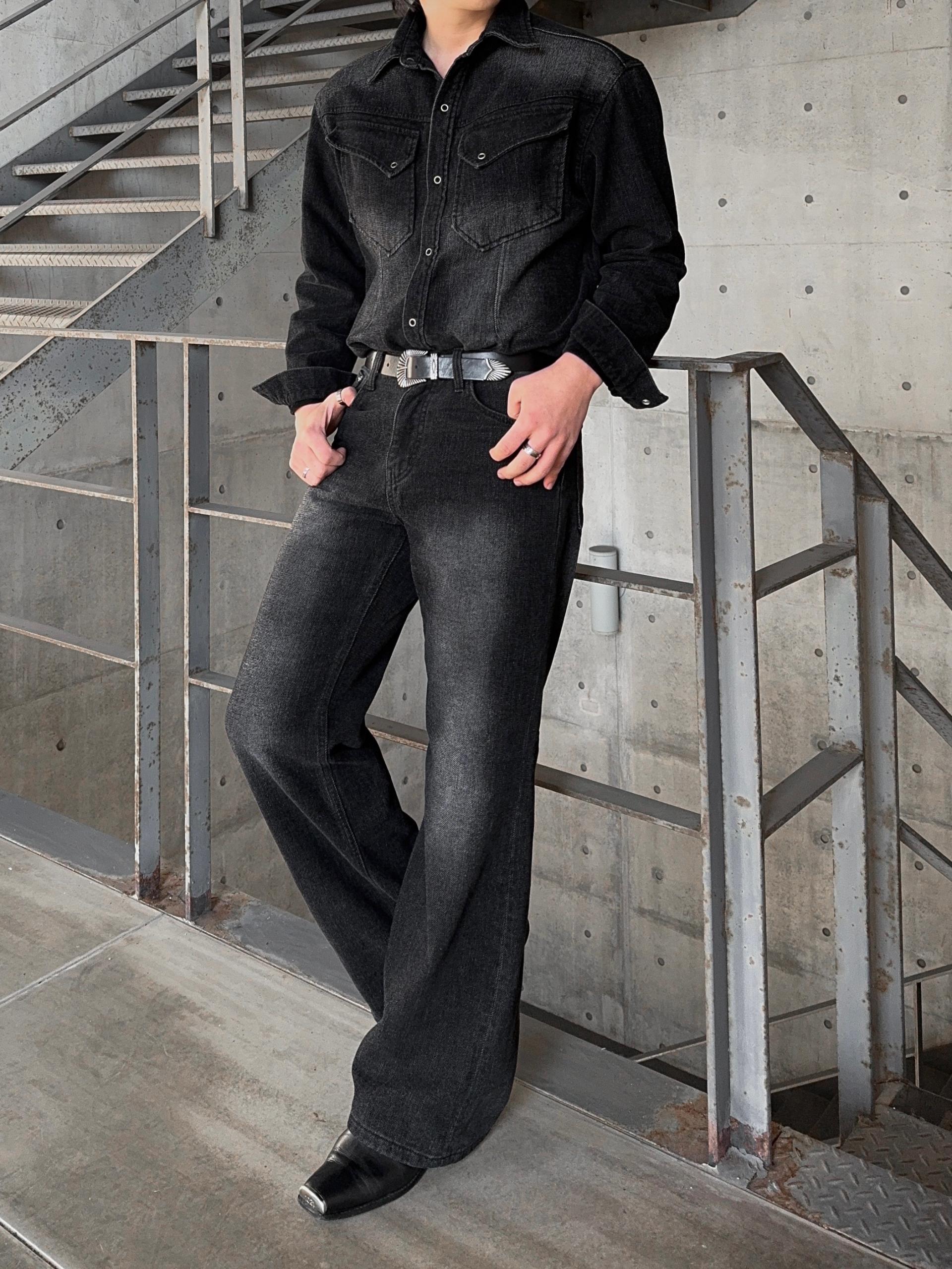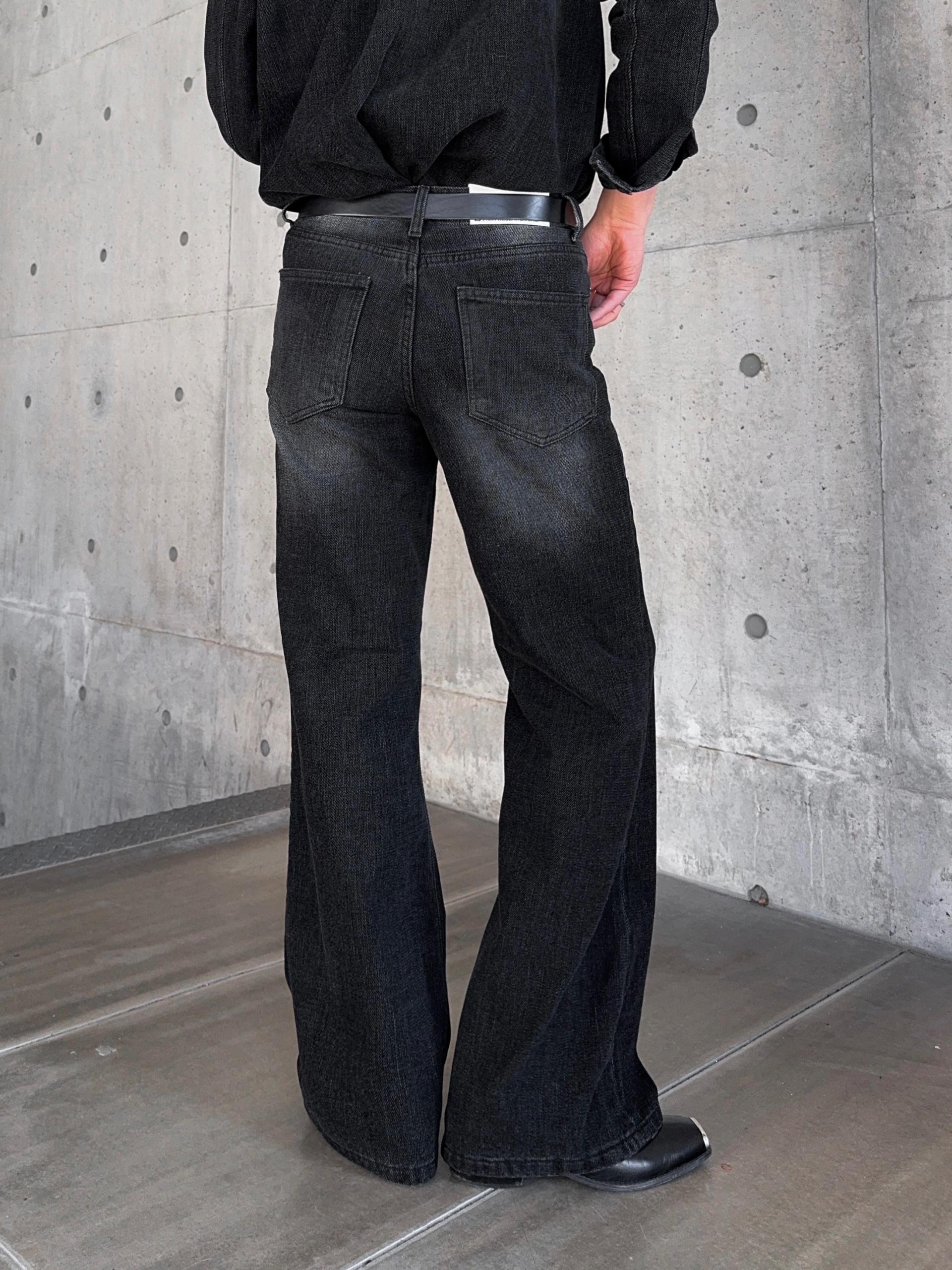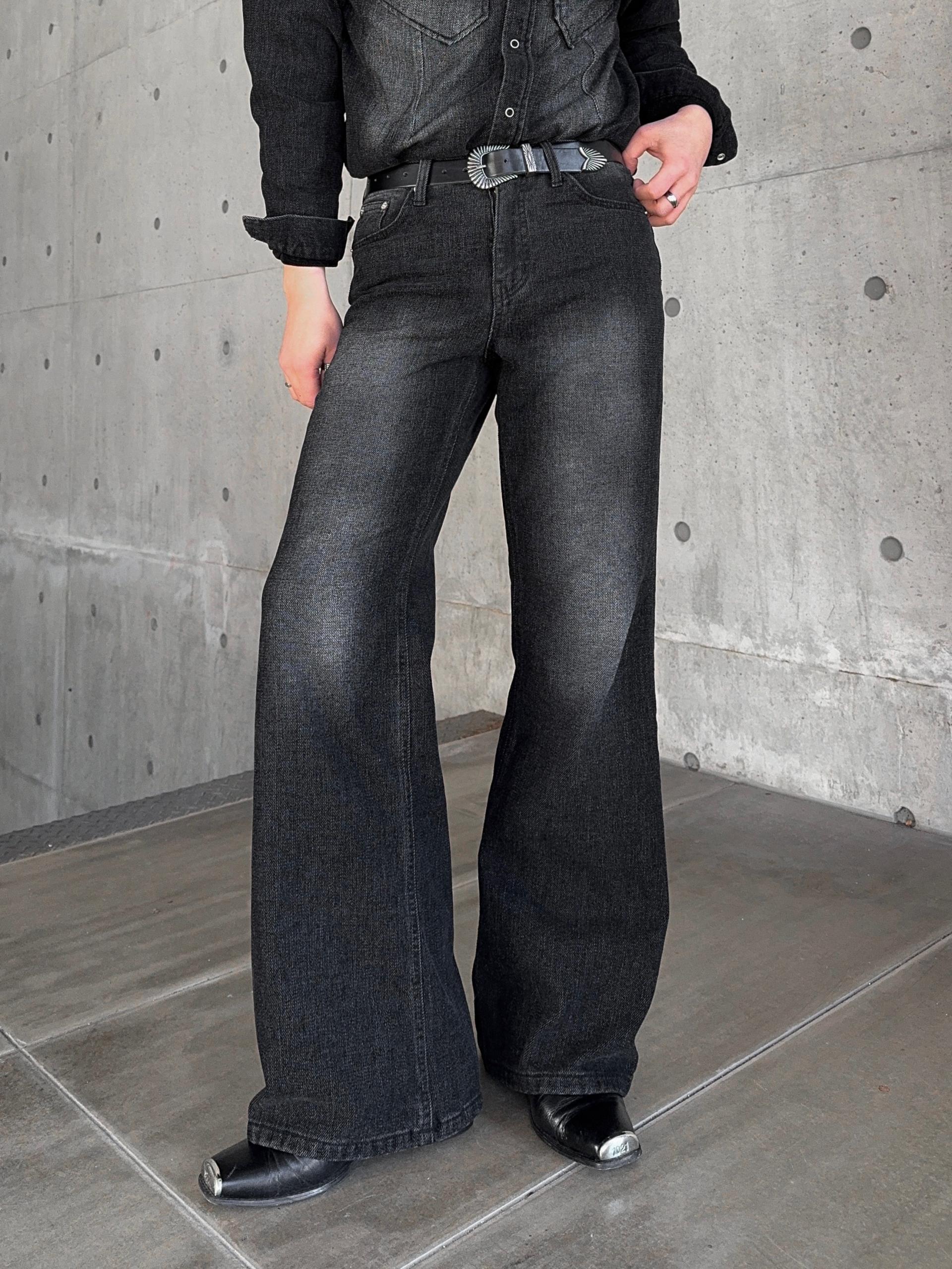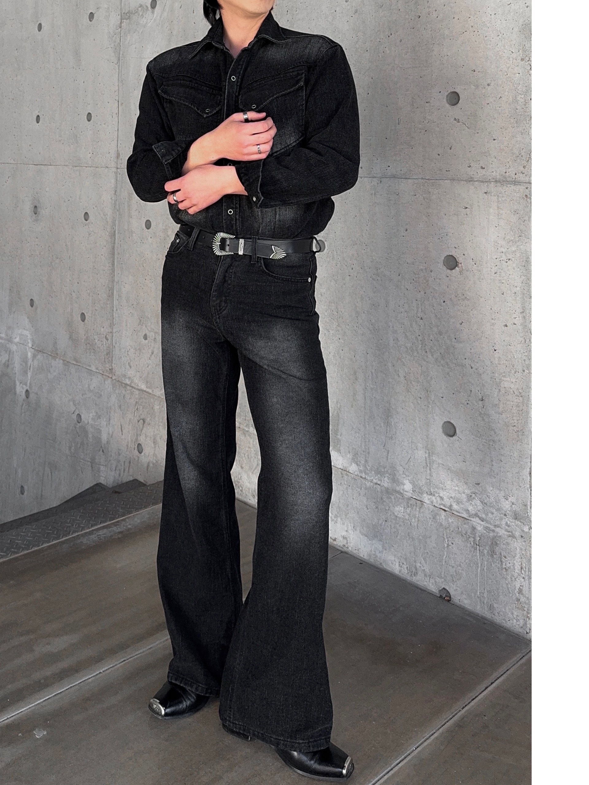 -부드러운 벨벳 텍스처가 가미된 플레어 데님 팬츠