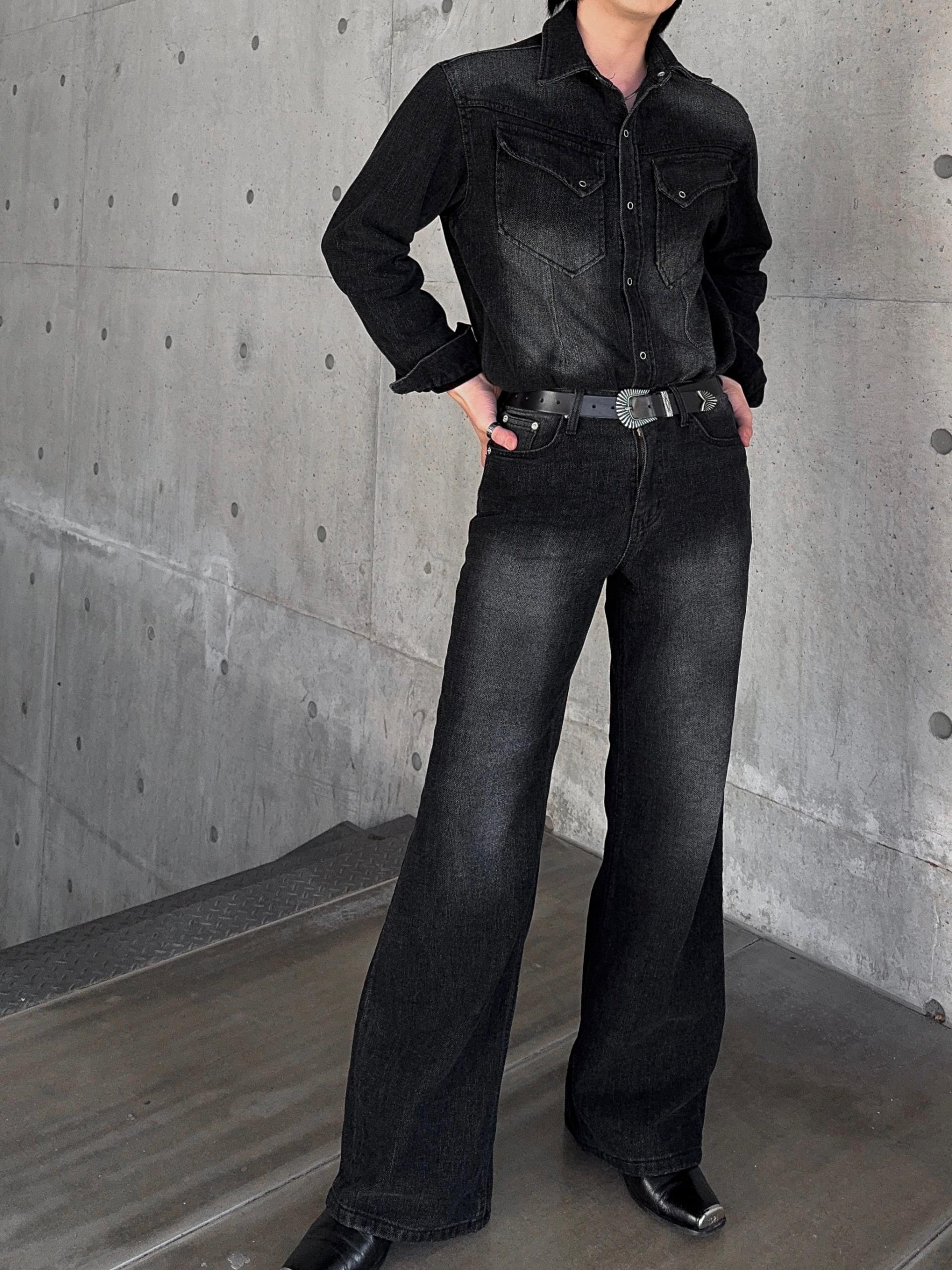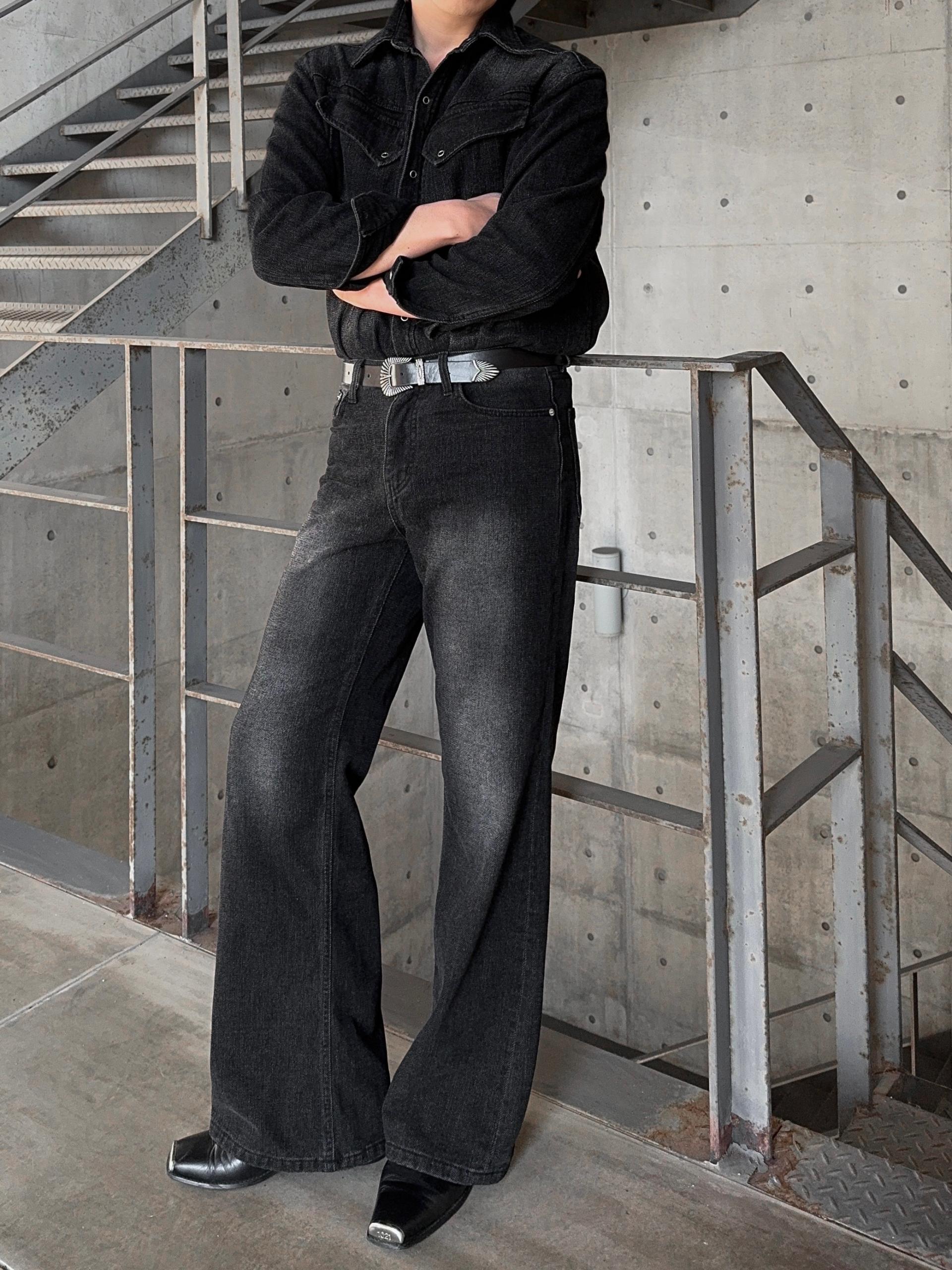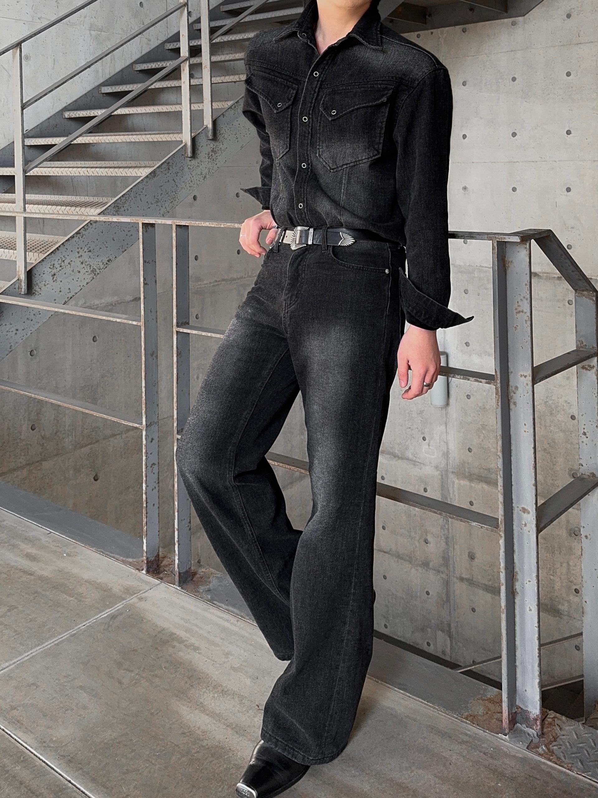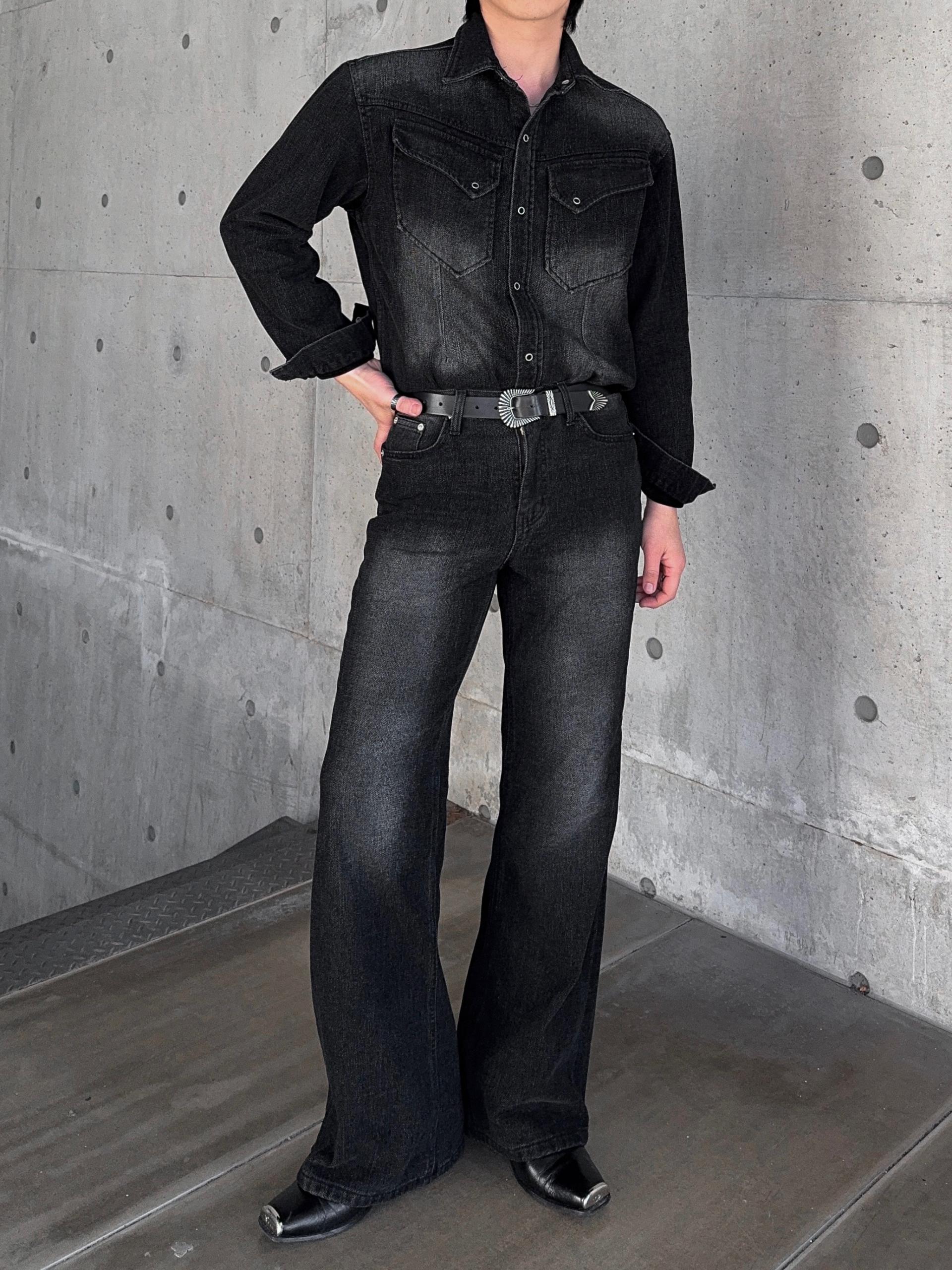 -부드러운 벨벳 텍스처가 가미된 플레어 데님 팬츠
