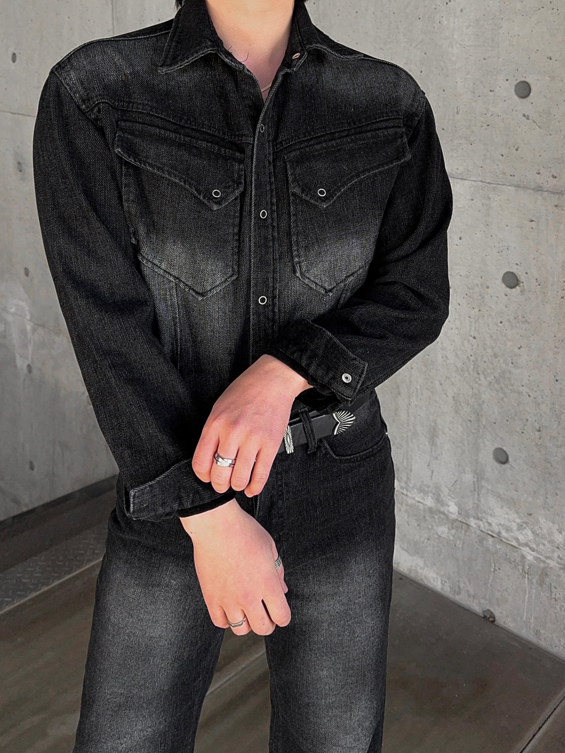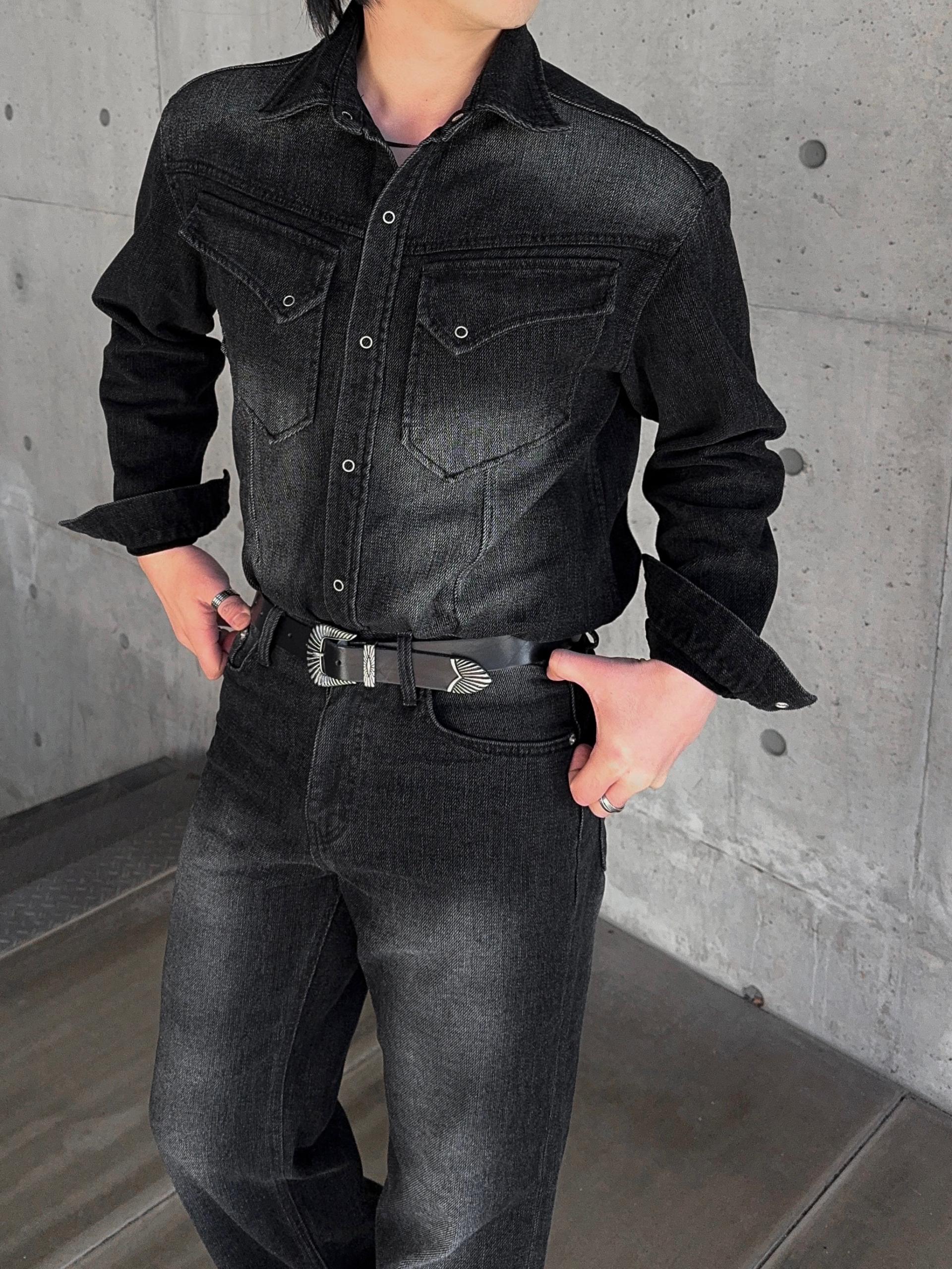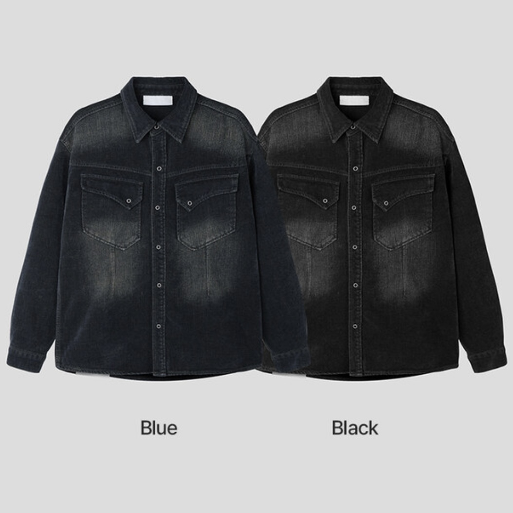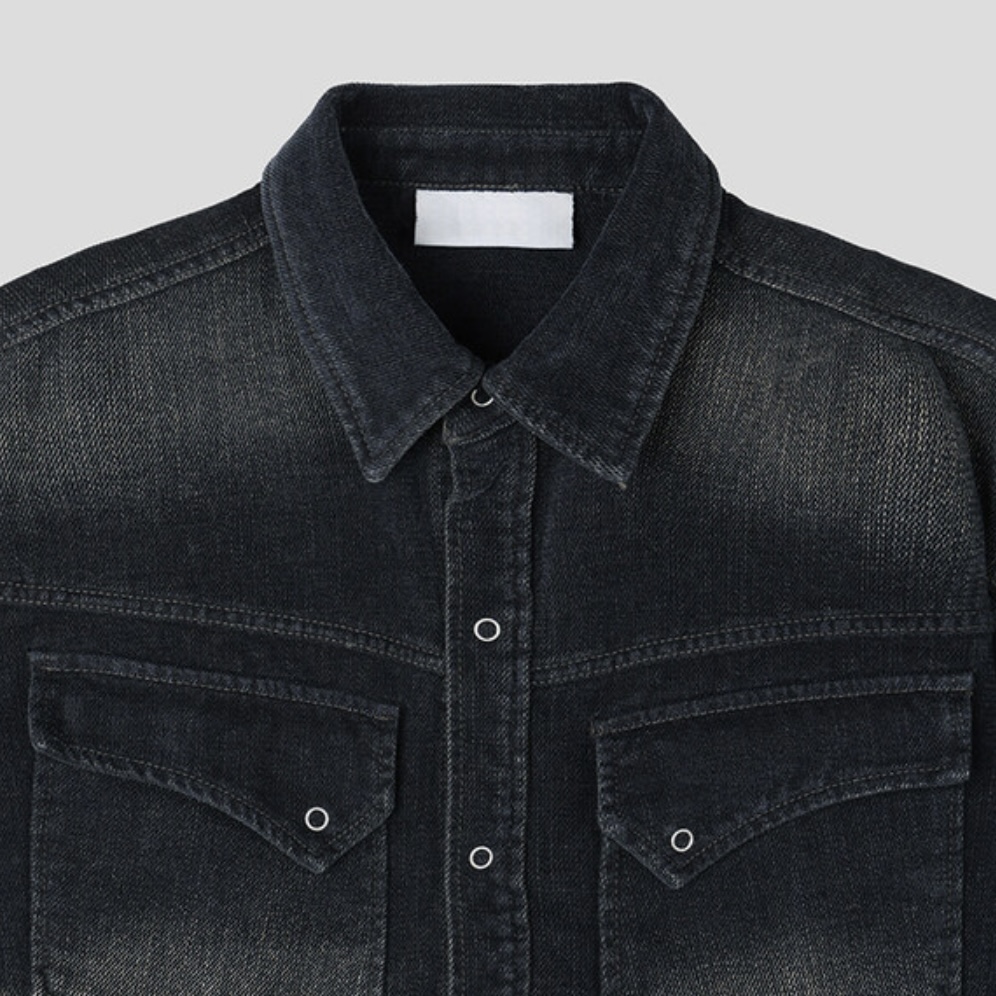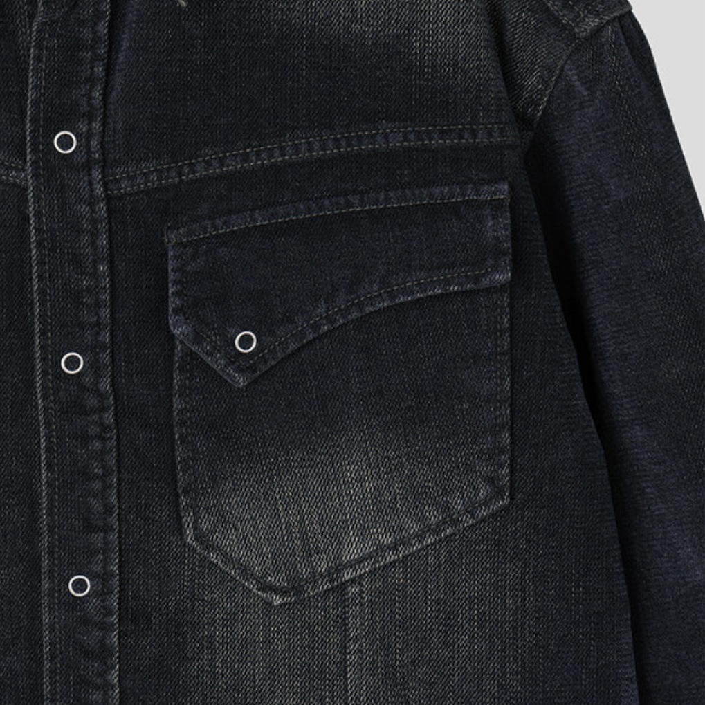 -부드러운 벨벳 텍스처가 가미된 데님 셔츠