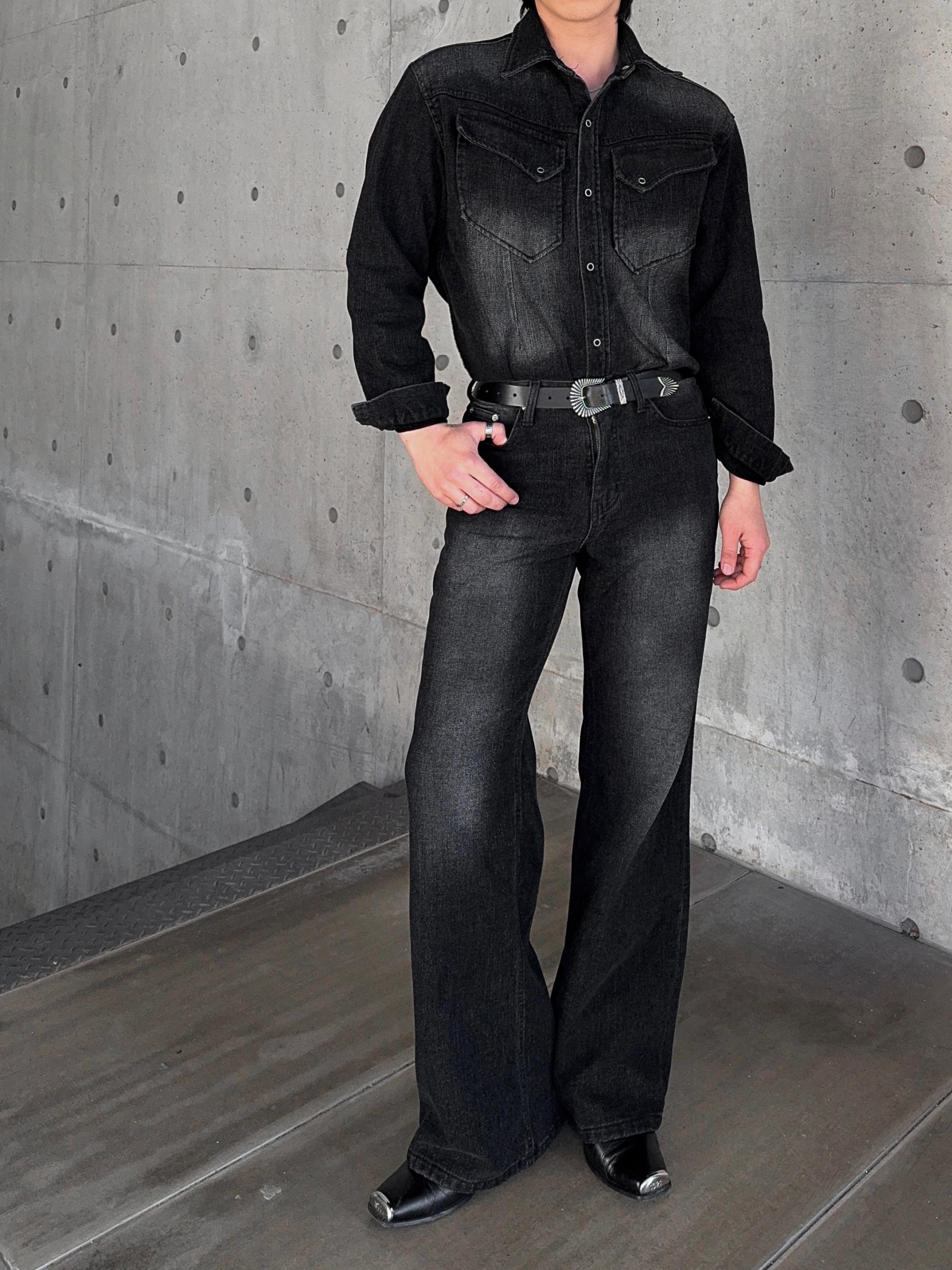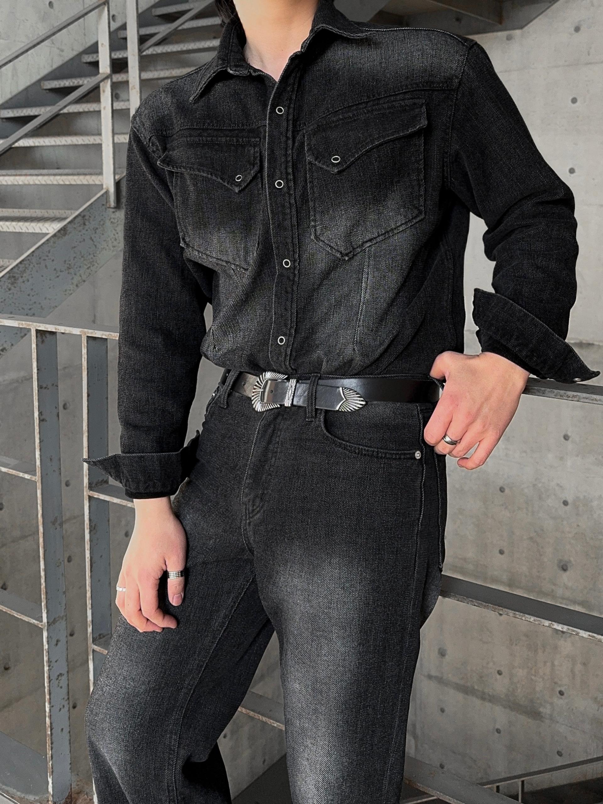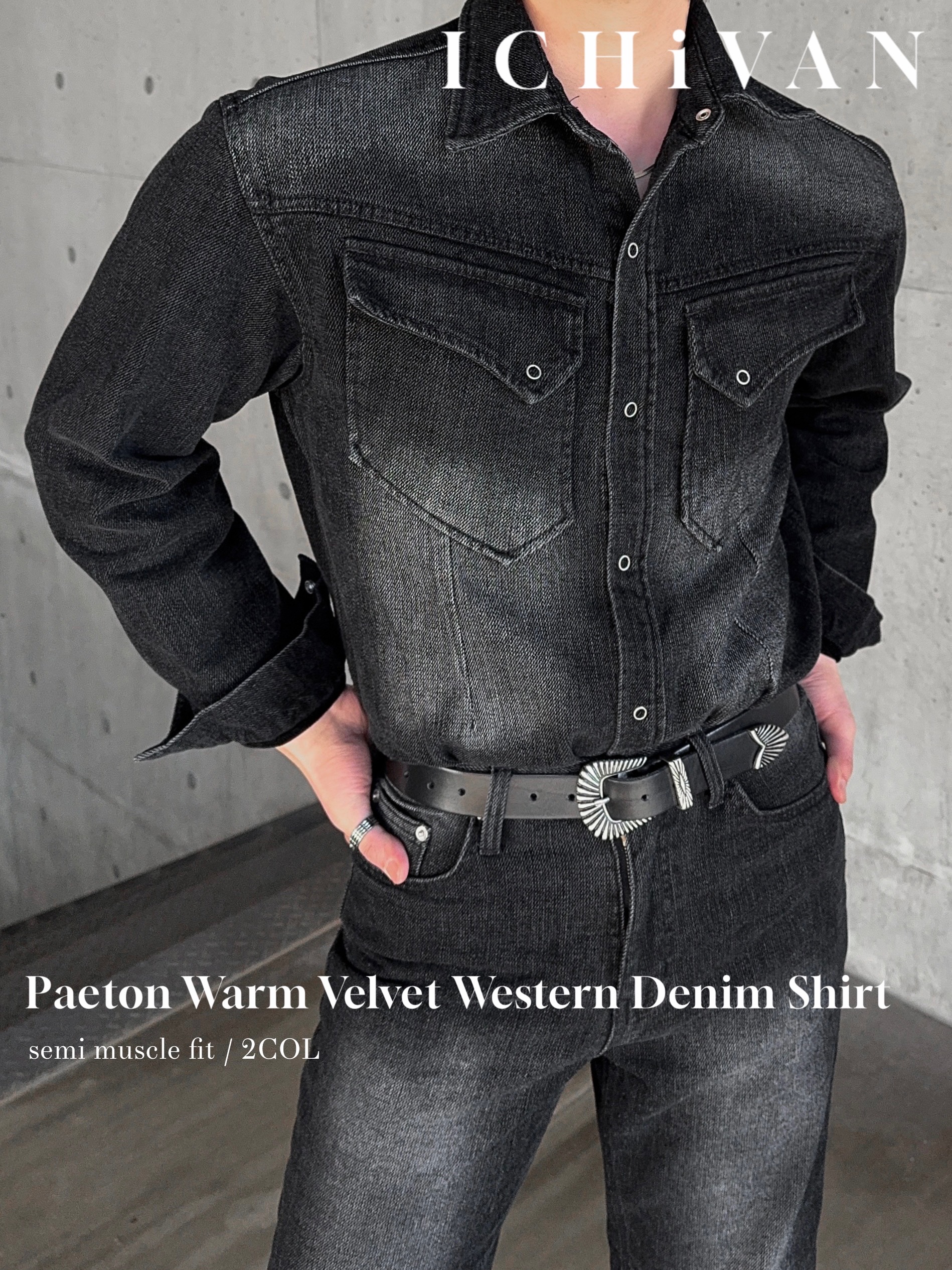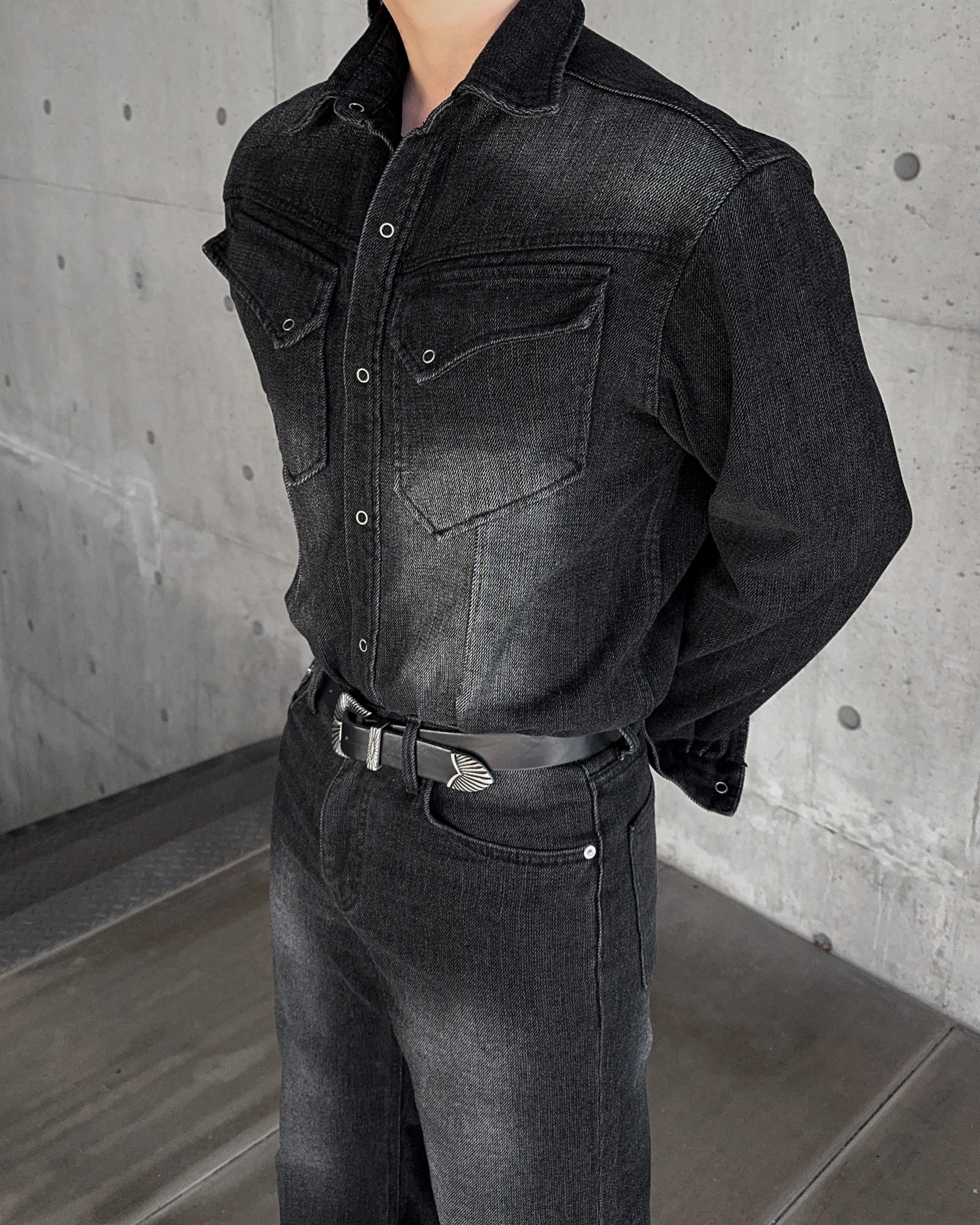 -부드러운 벨벳 텍스처가 가미된 데님 셔츠