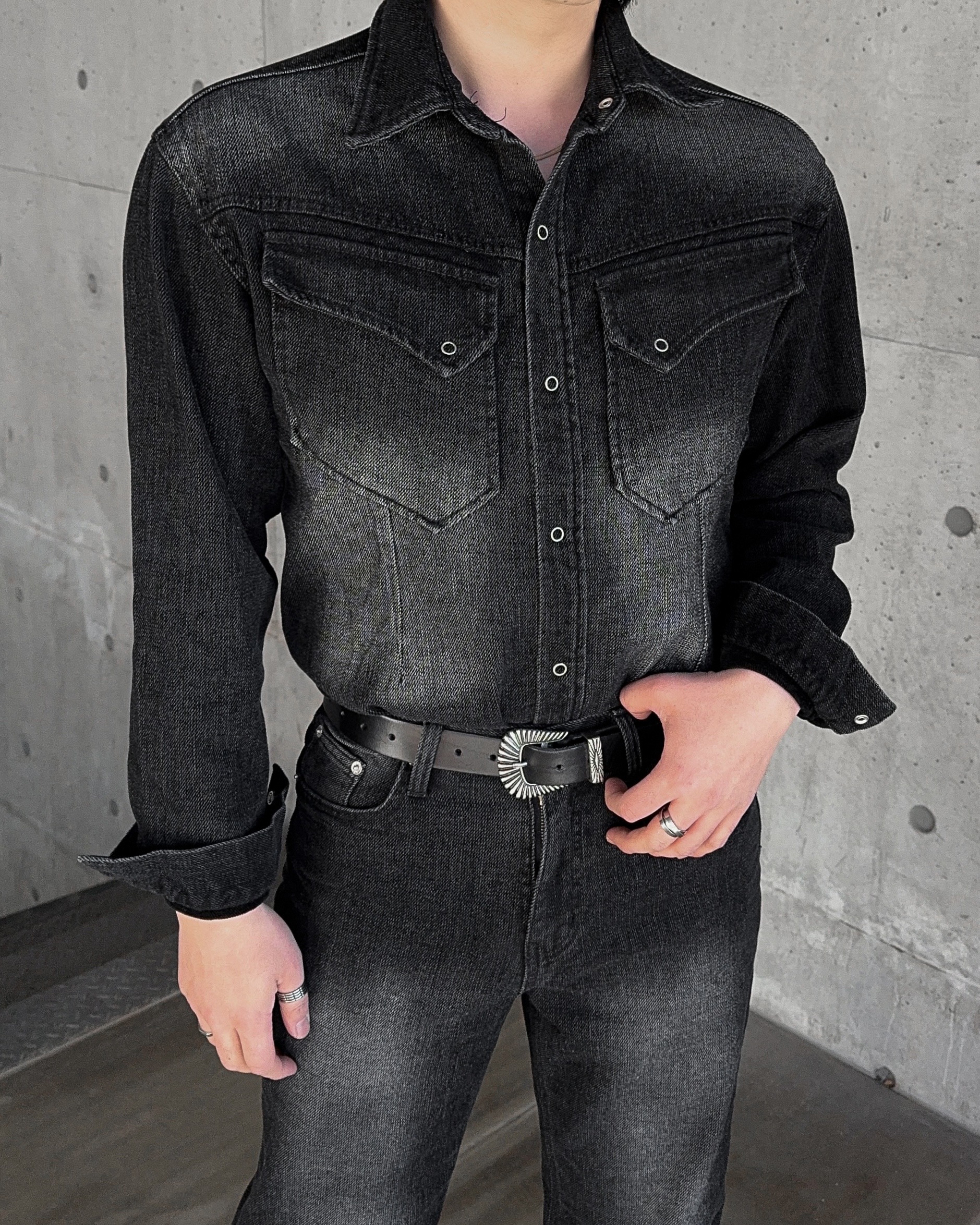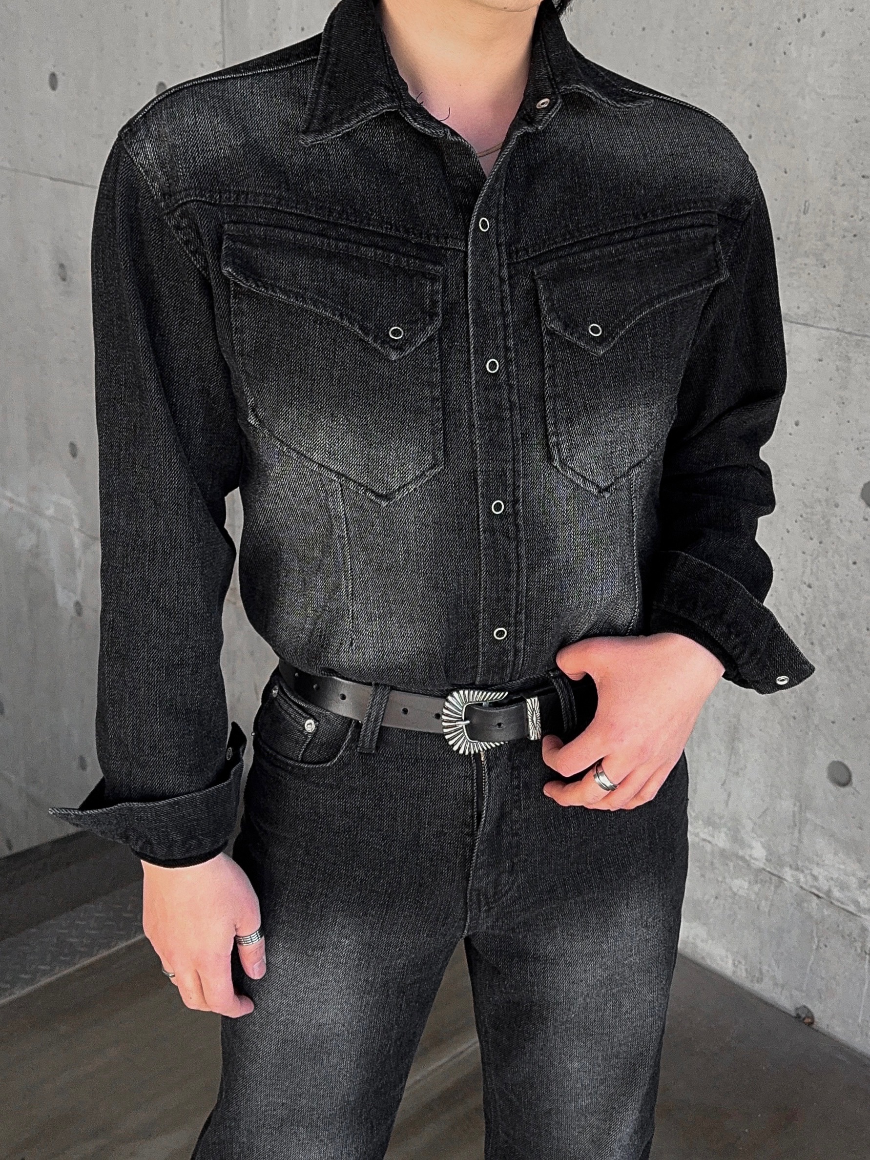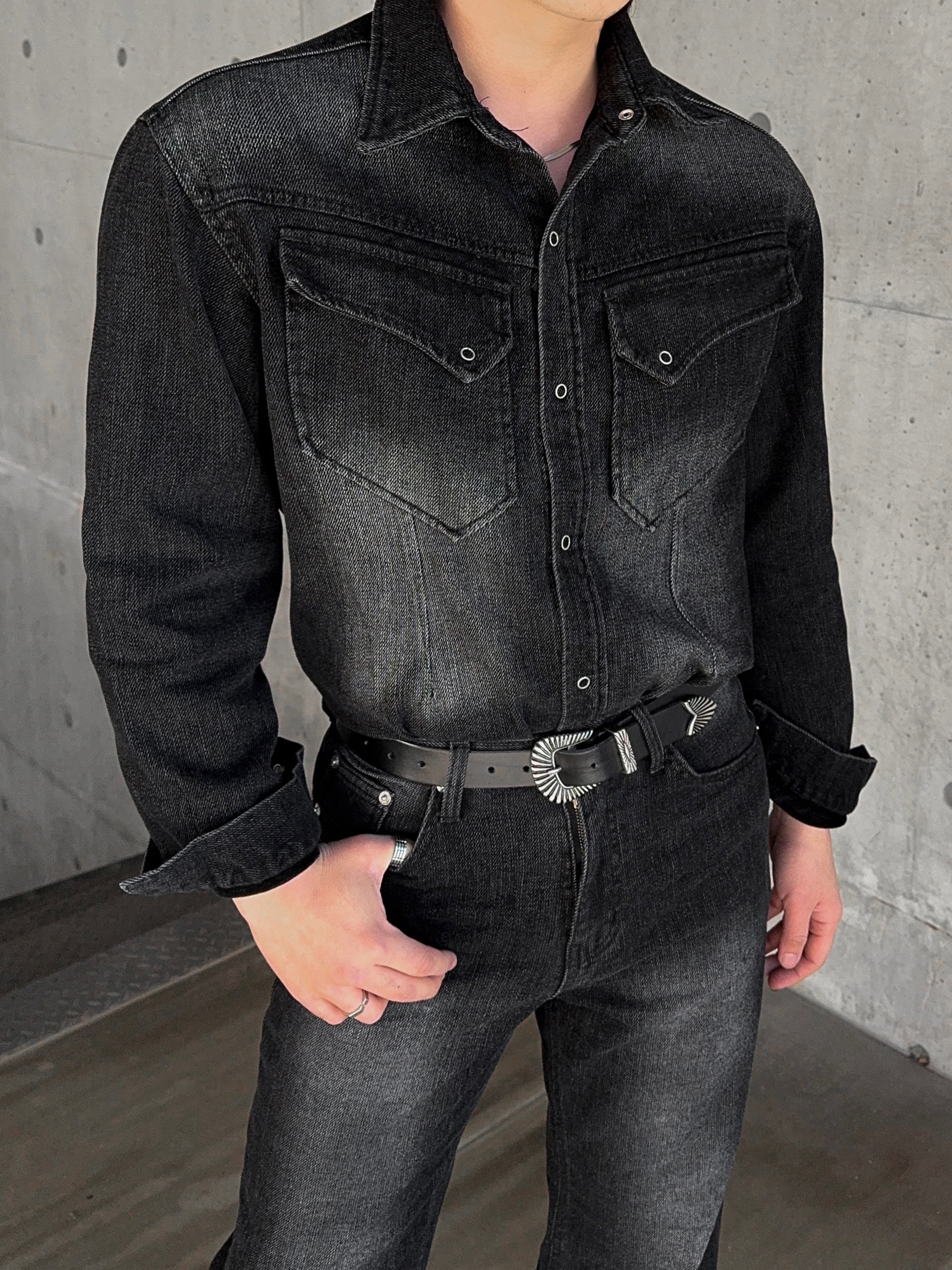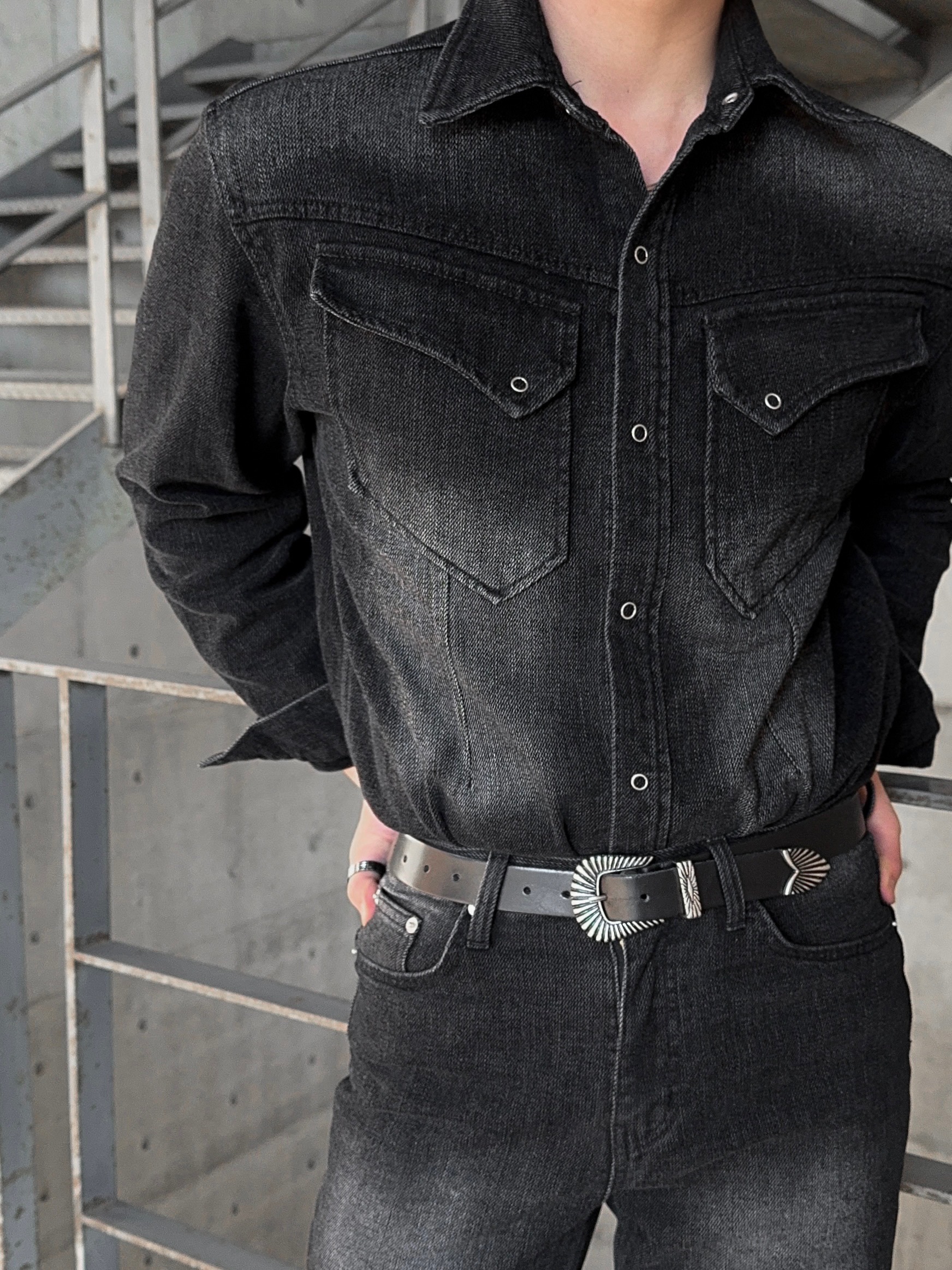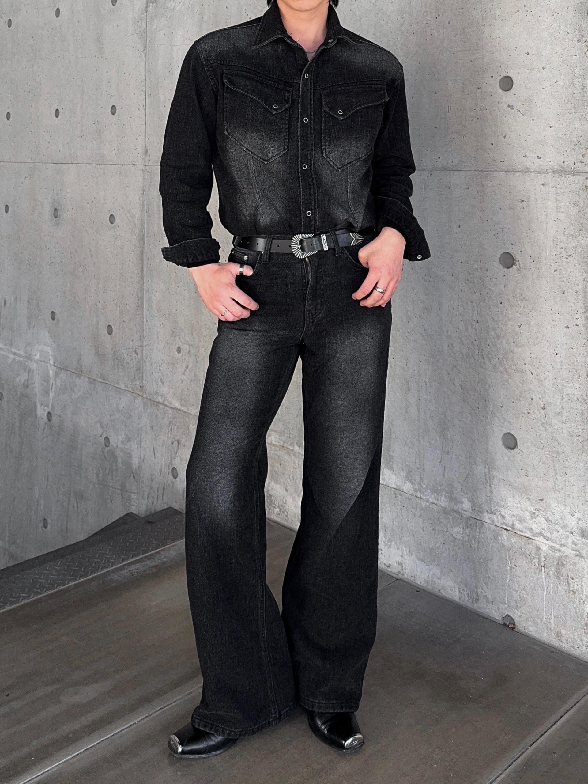 -부드러운 벨벳 텍스처가 가미된 데님 셔츠