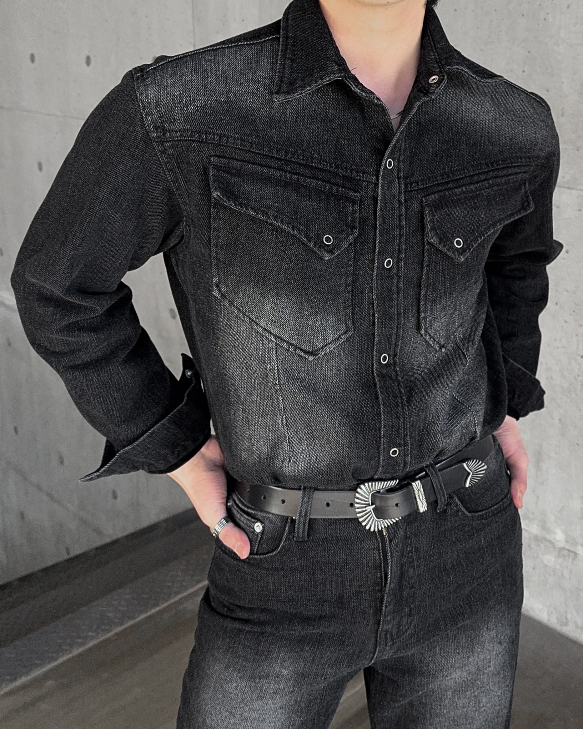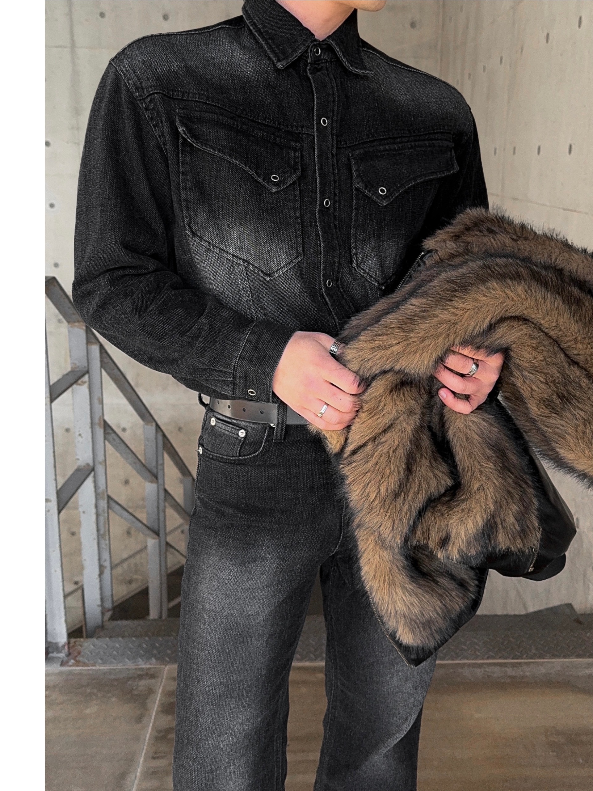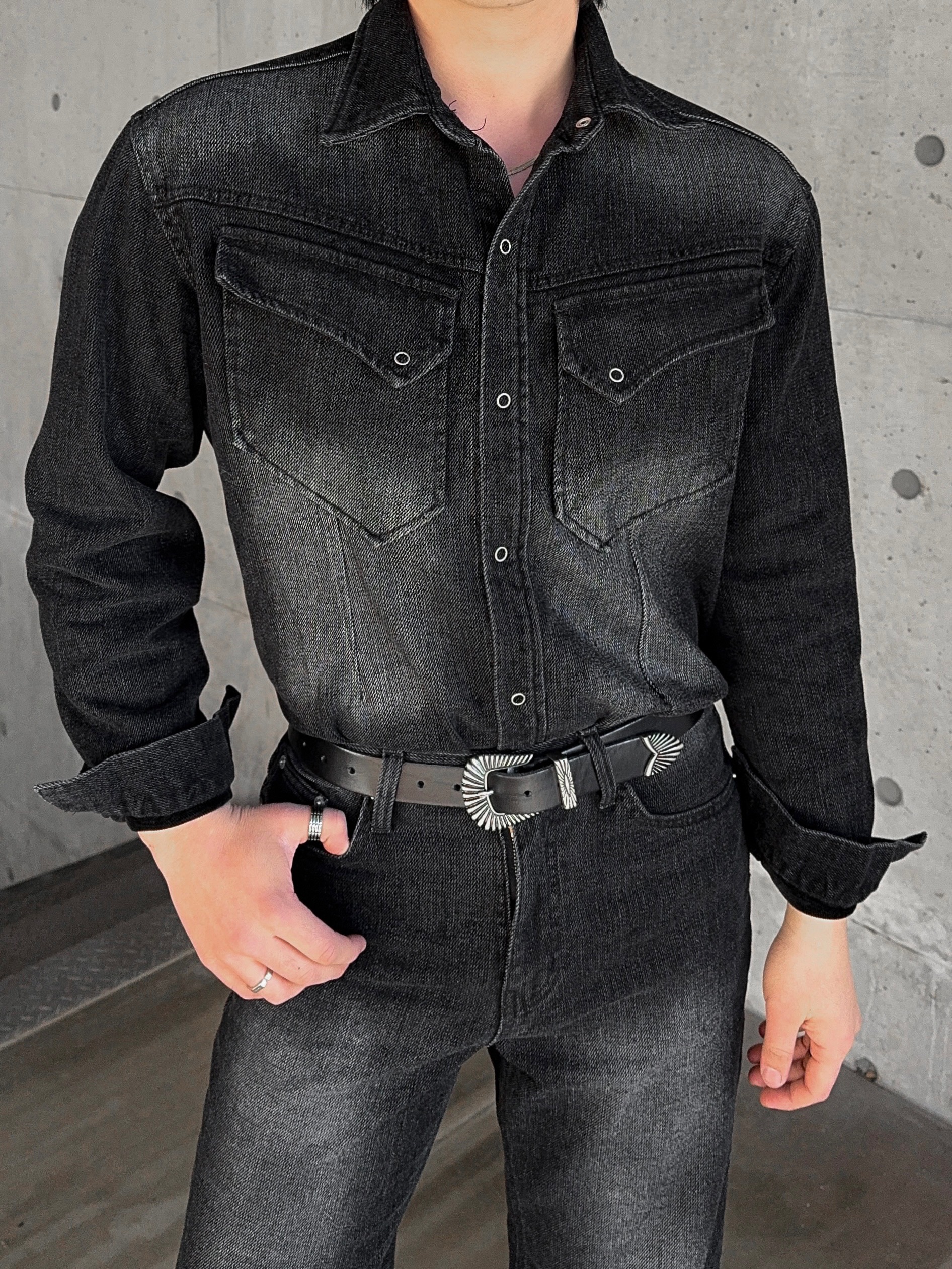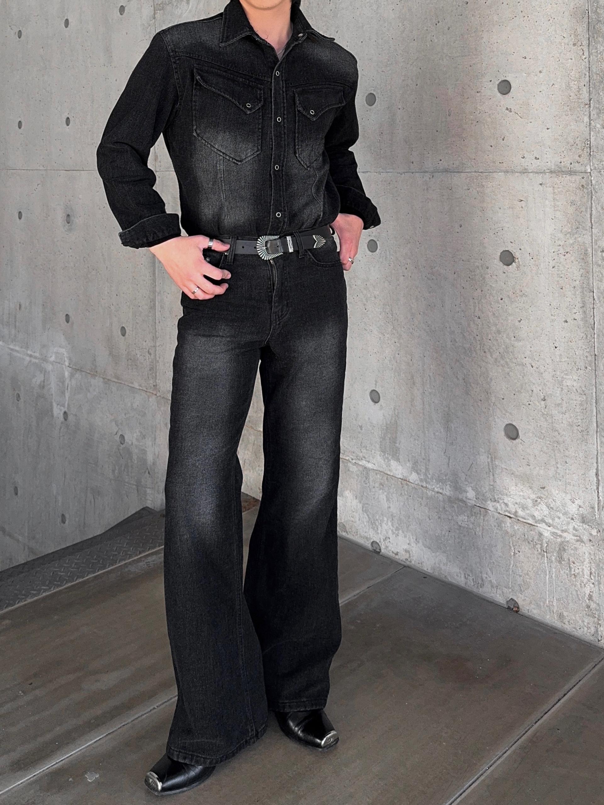 -부드러운 벨벳 텍스처가 가미된 데님 셔츠