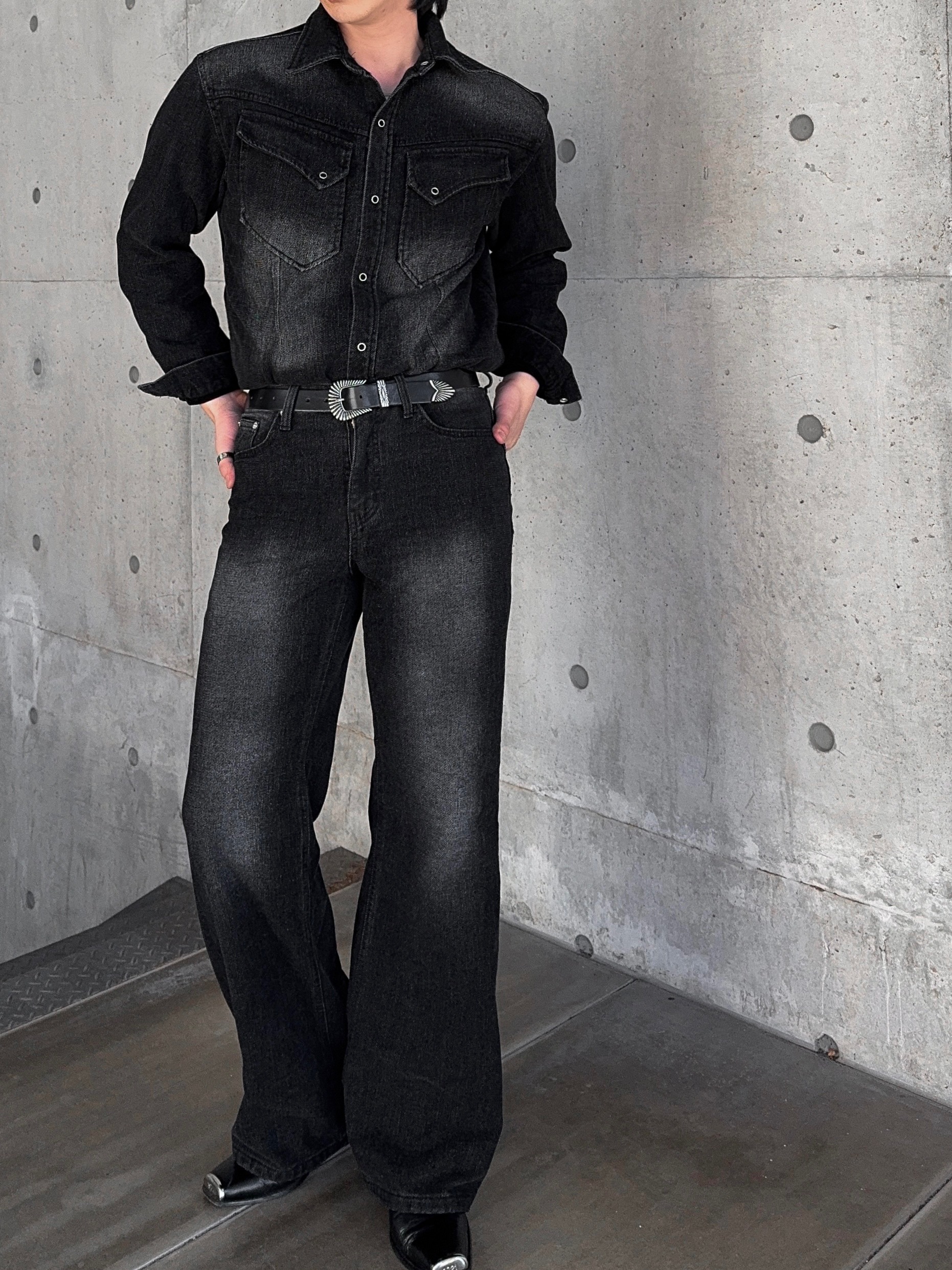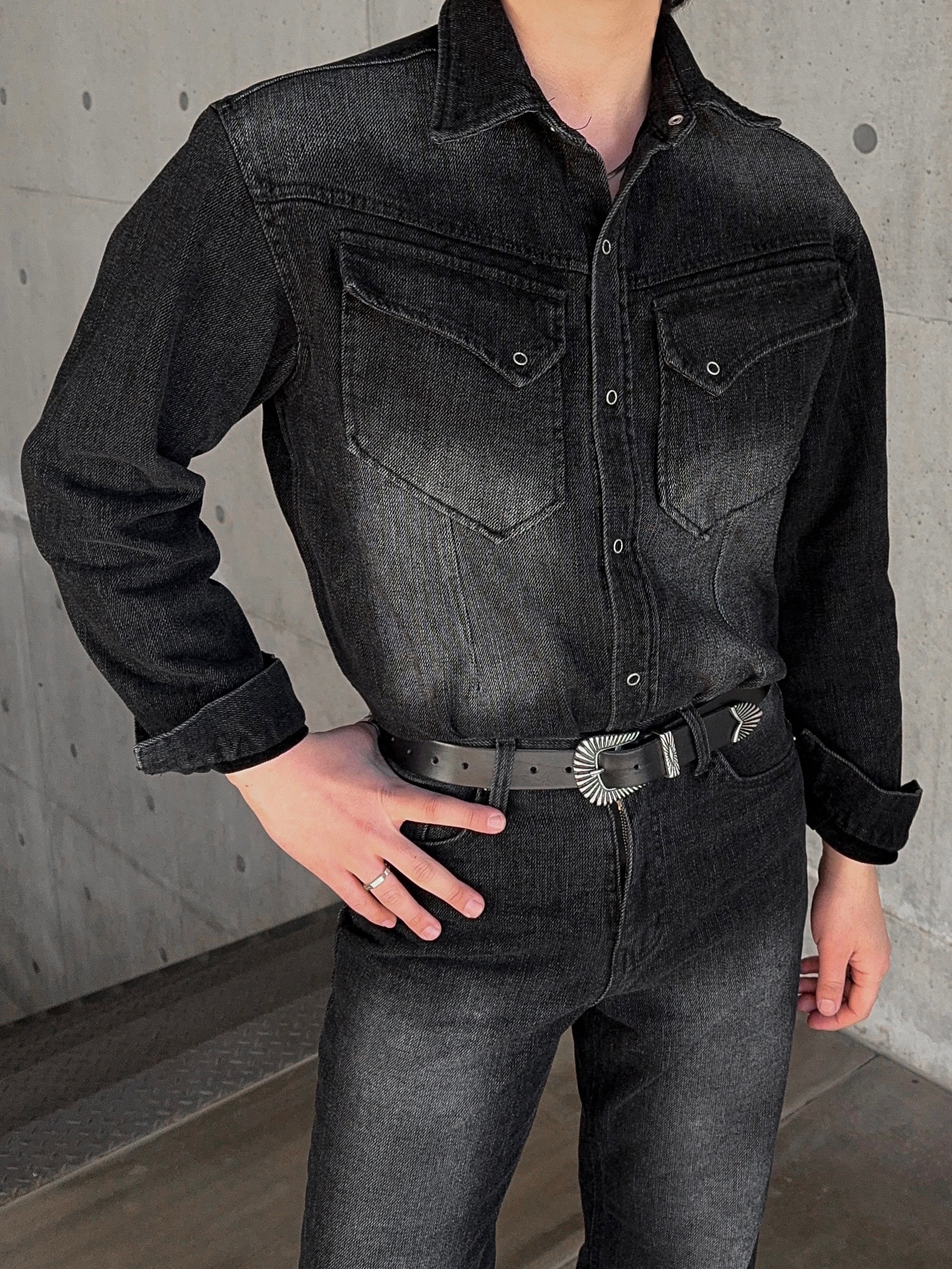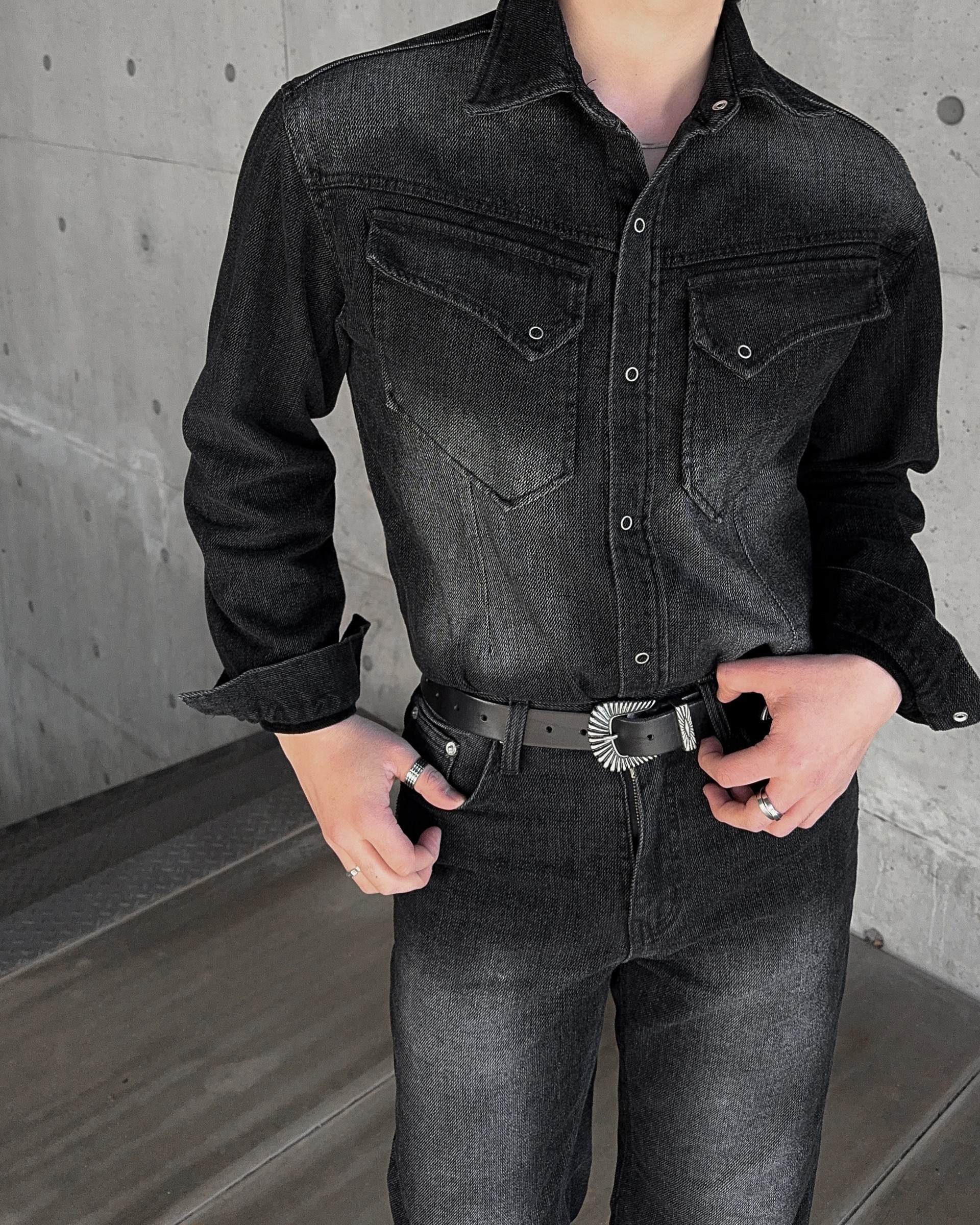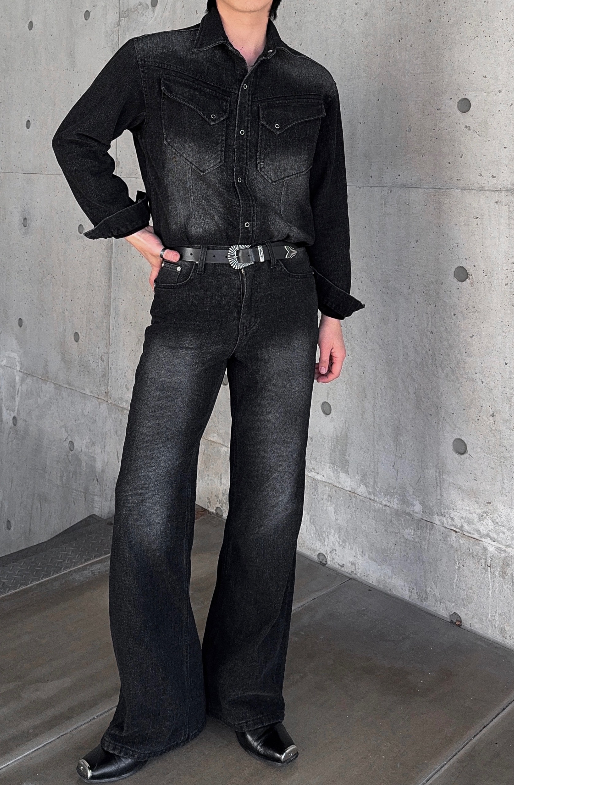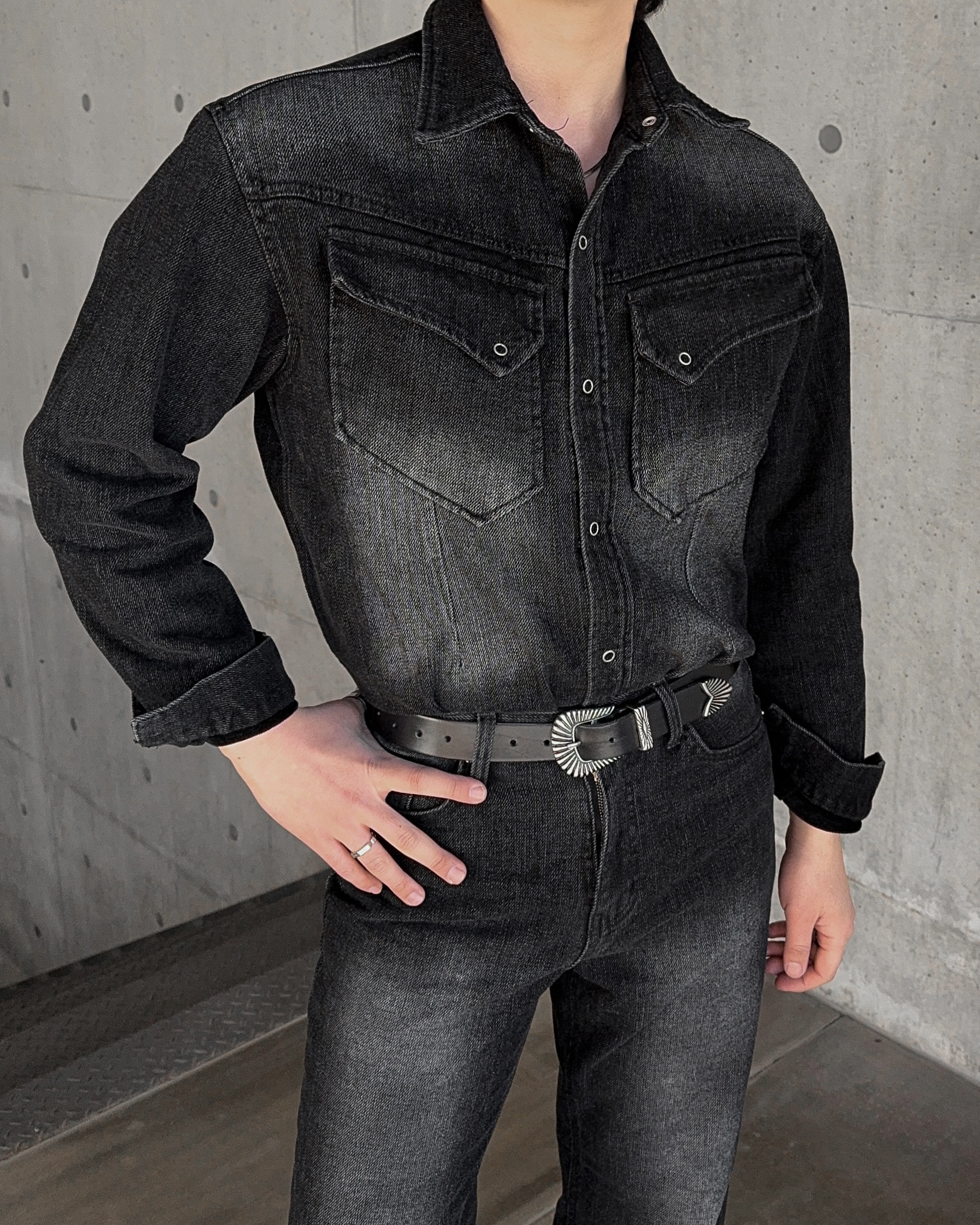 -부드러운 벨벳 텍스처가 가미된 데님 셔츠