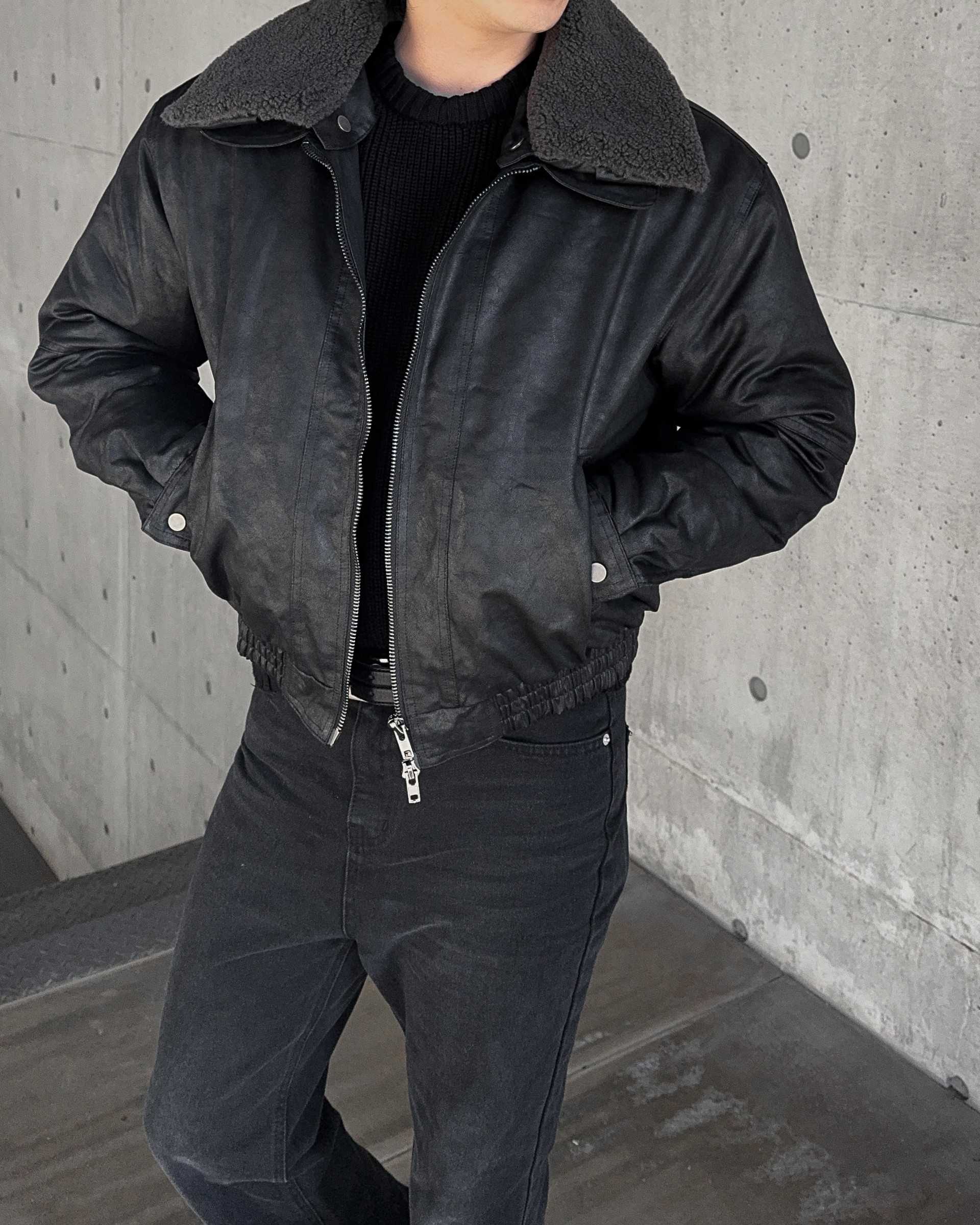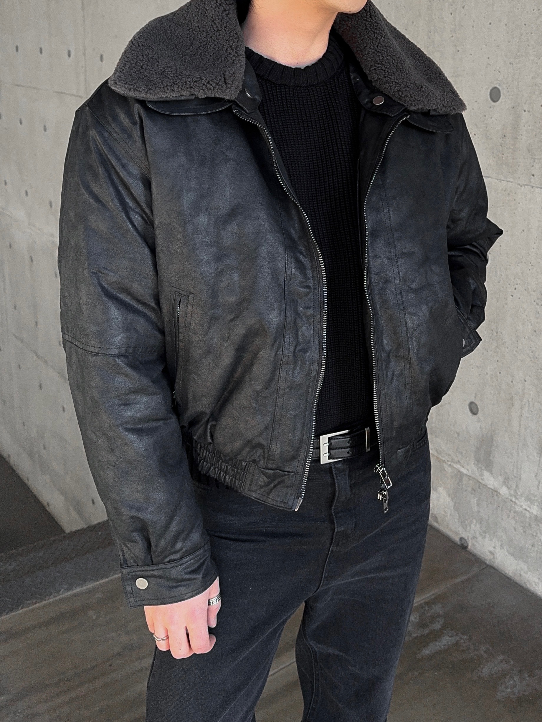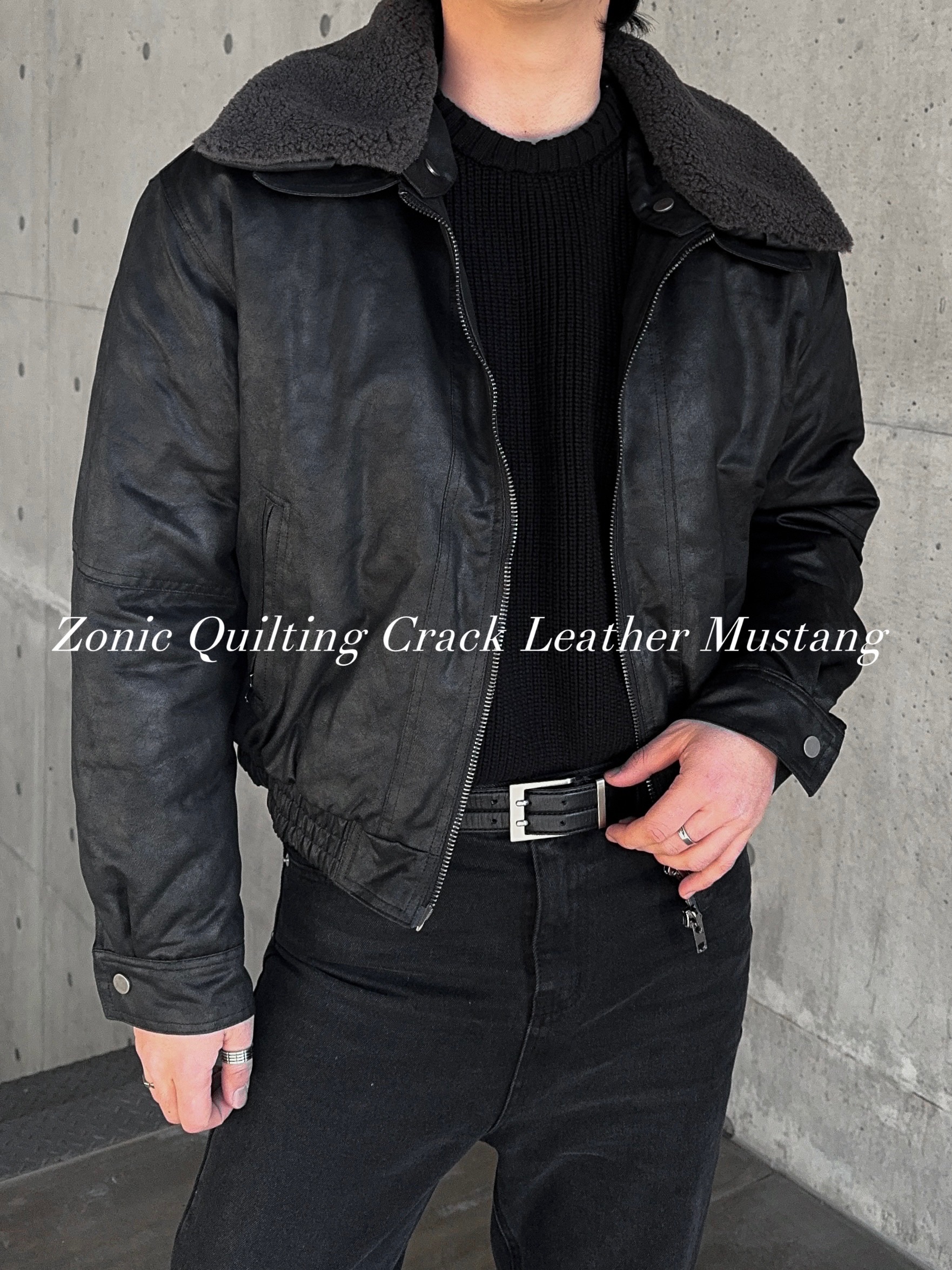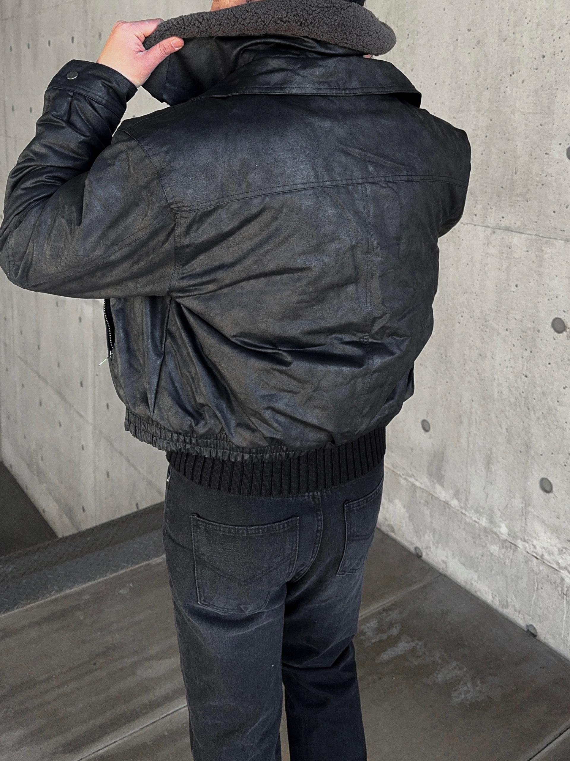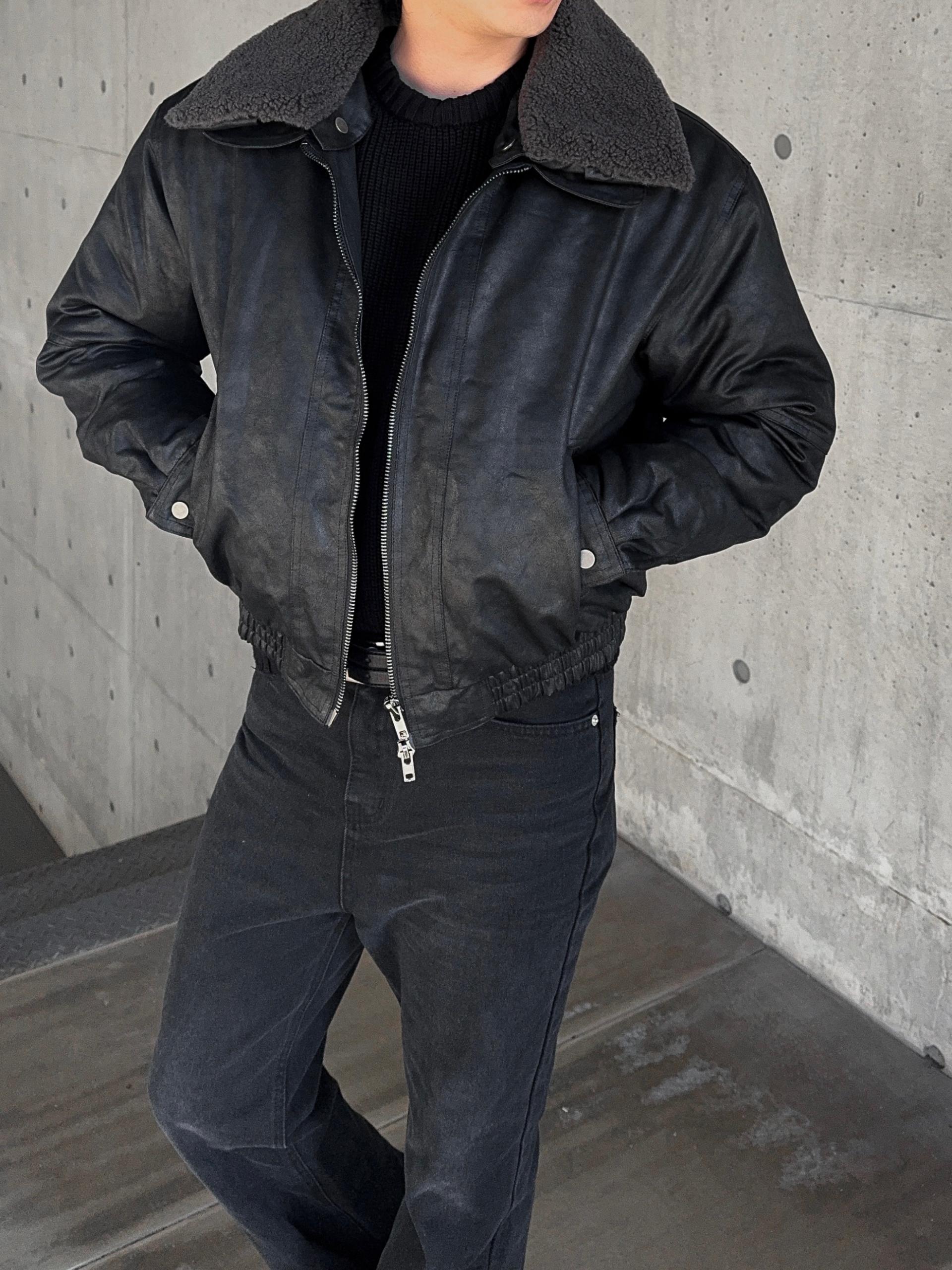 -크랙 워싱감의 레더로 제작된 무스탕