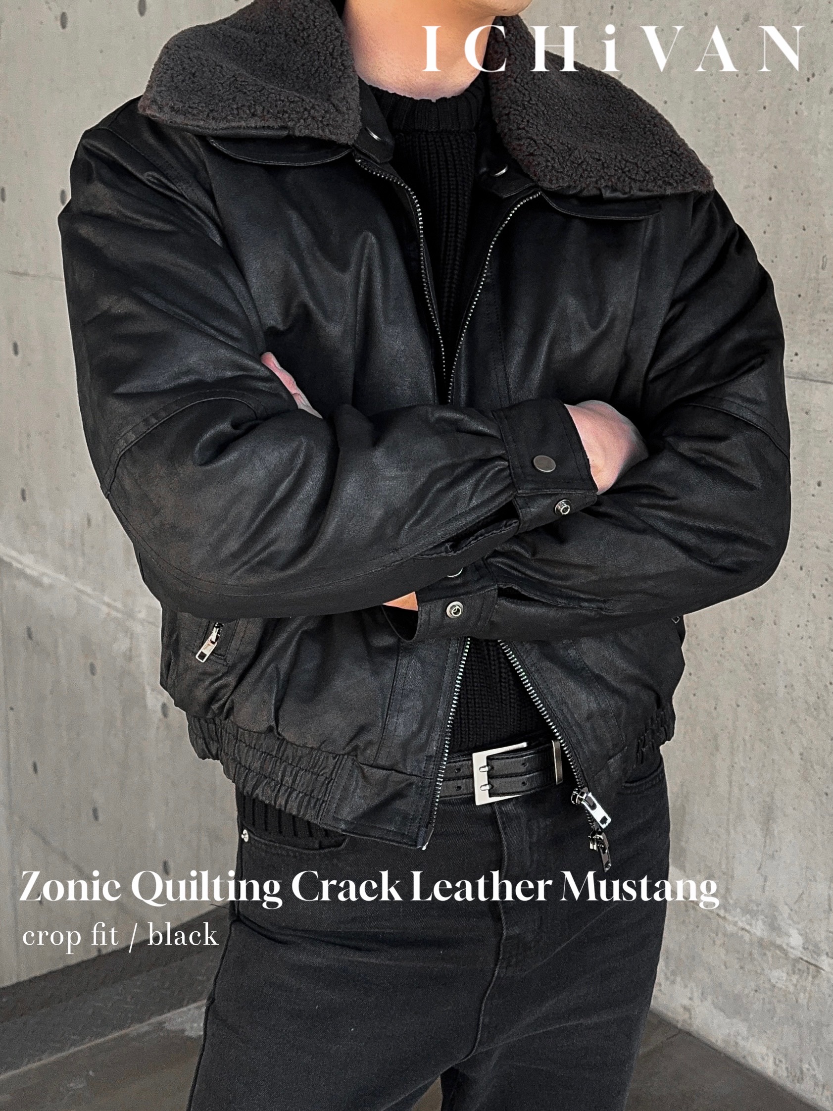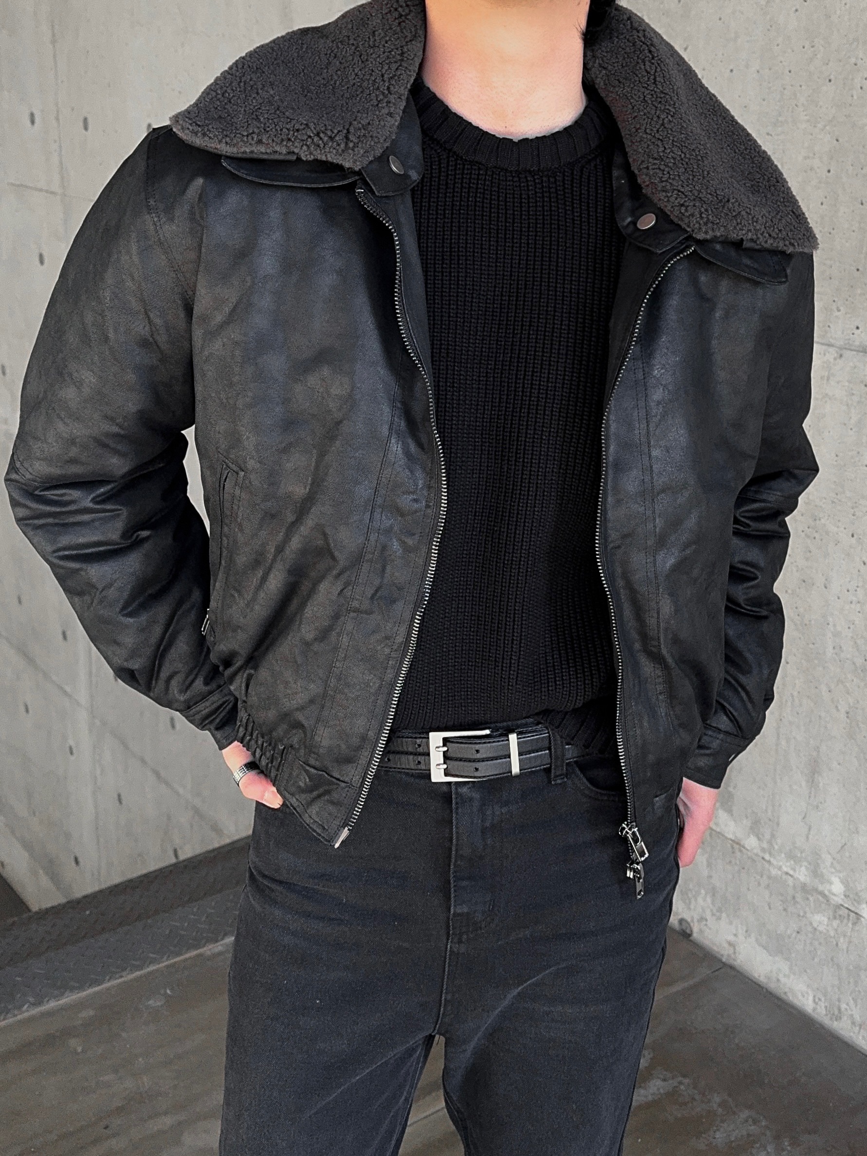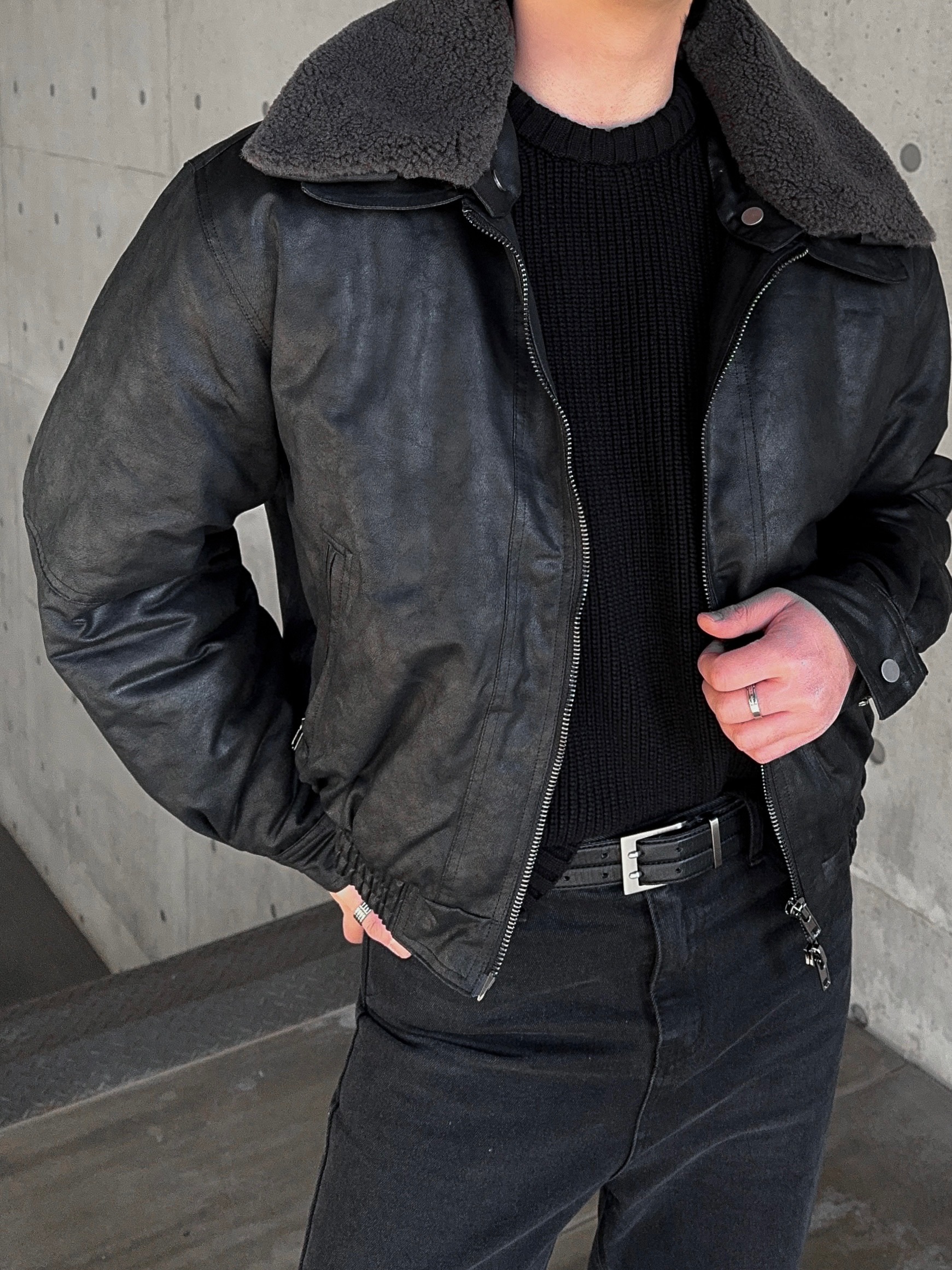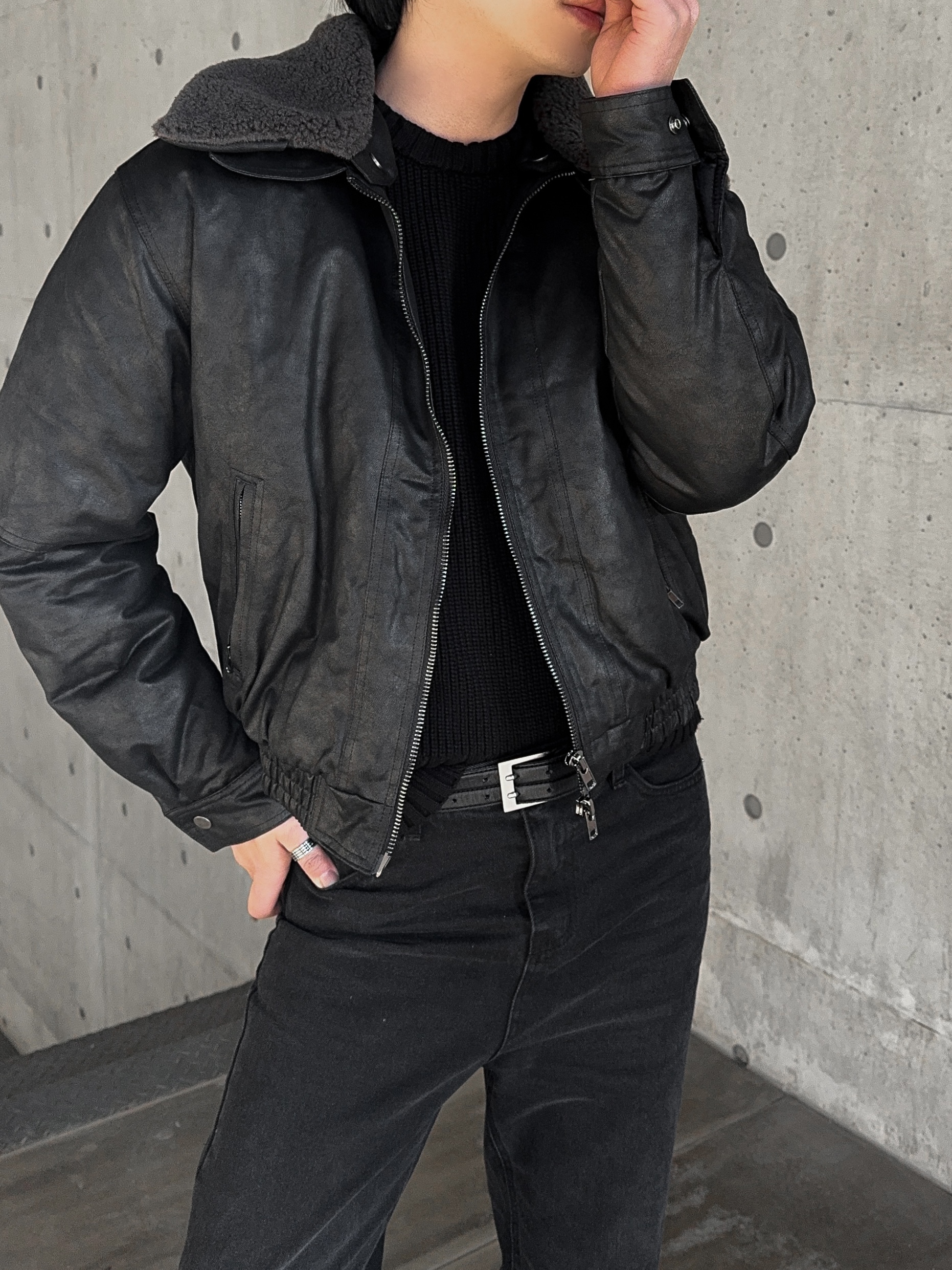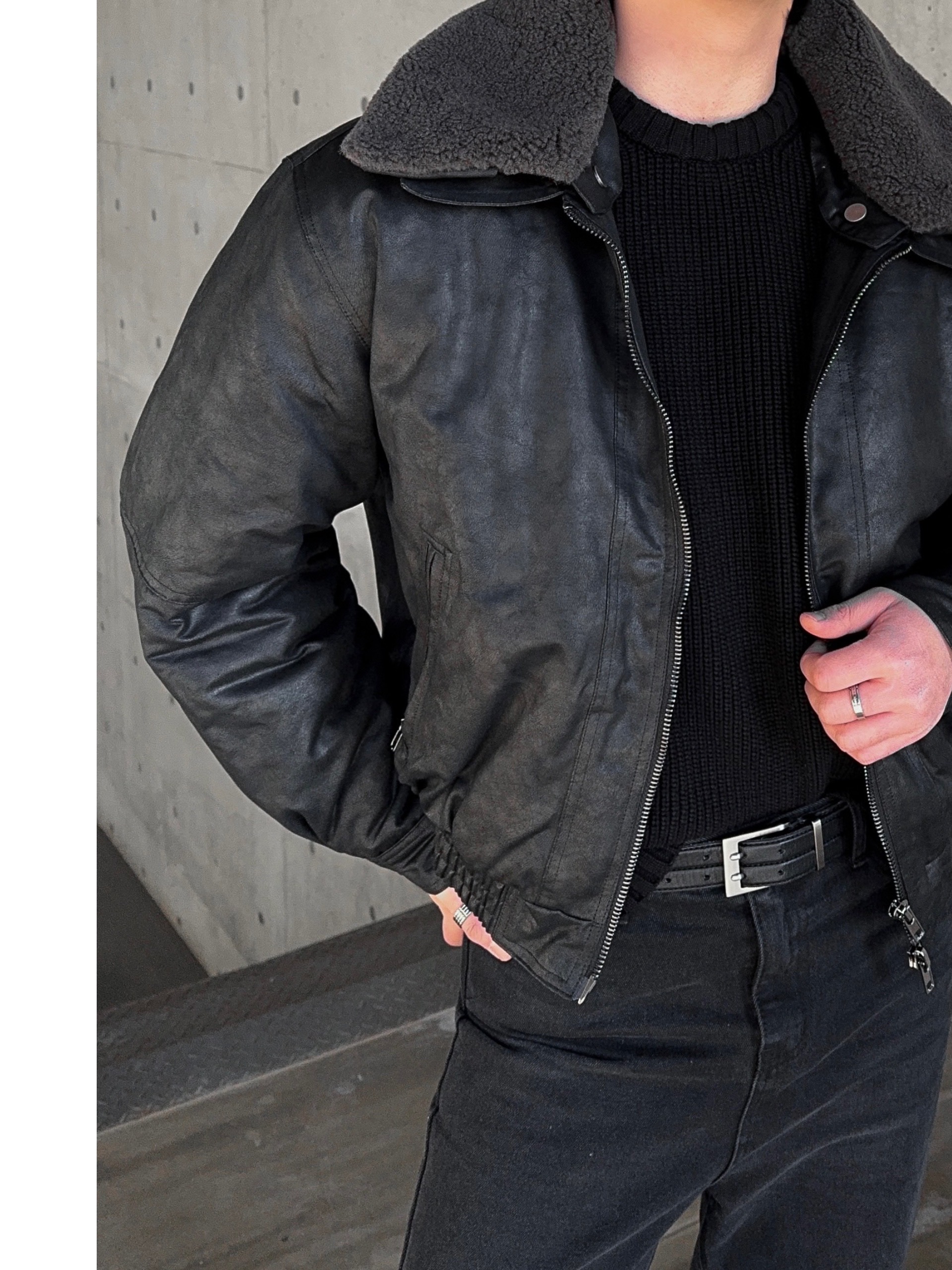 -크랙 워싱감의 레더로 제작된 무스탕