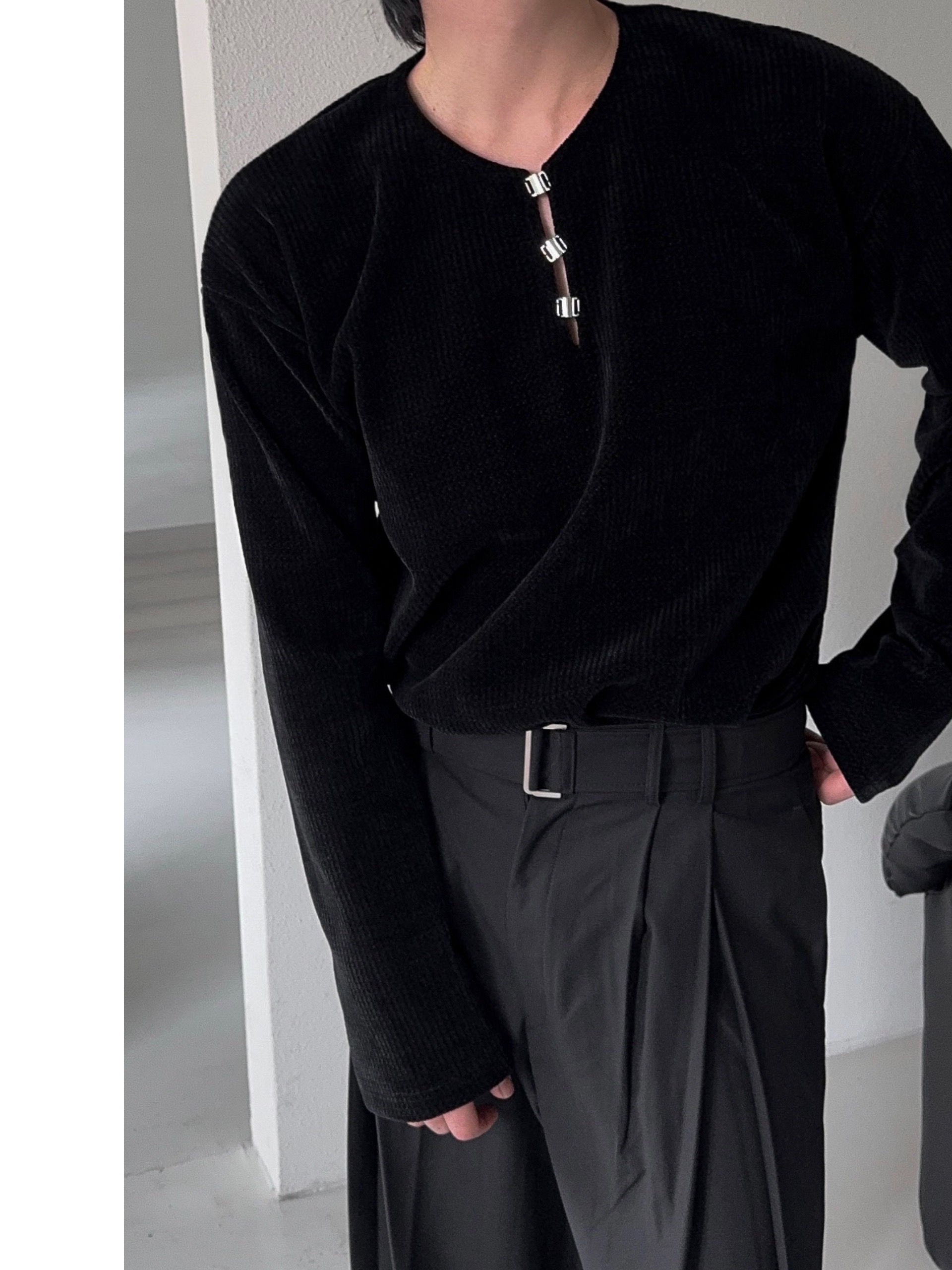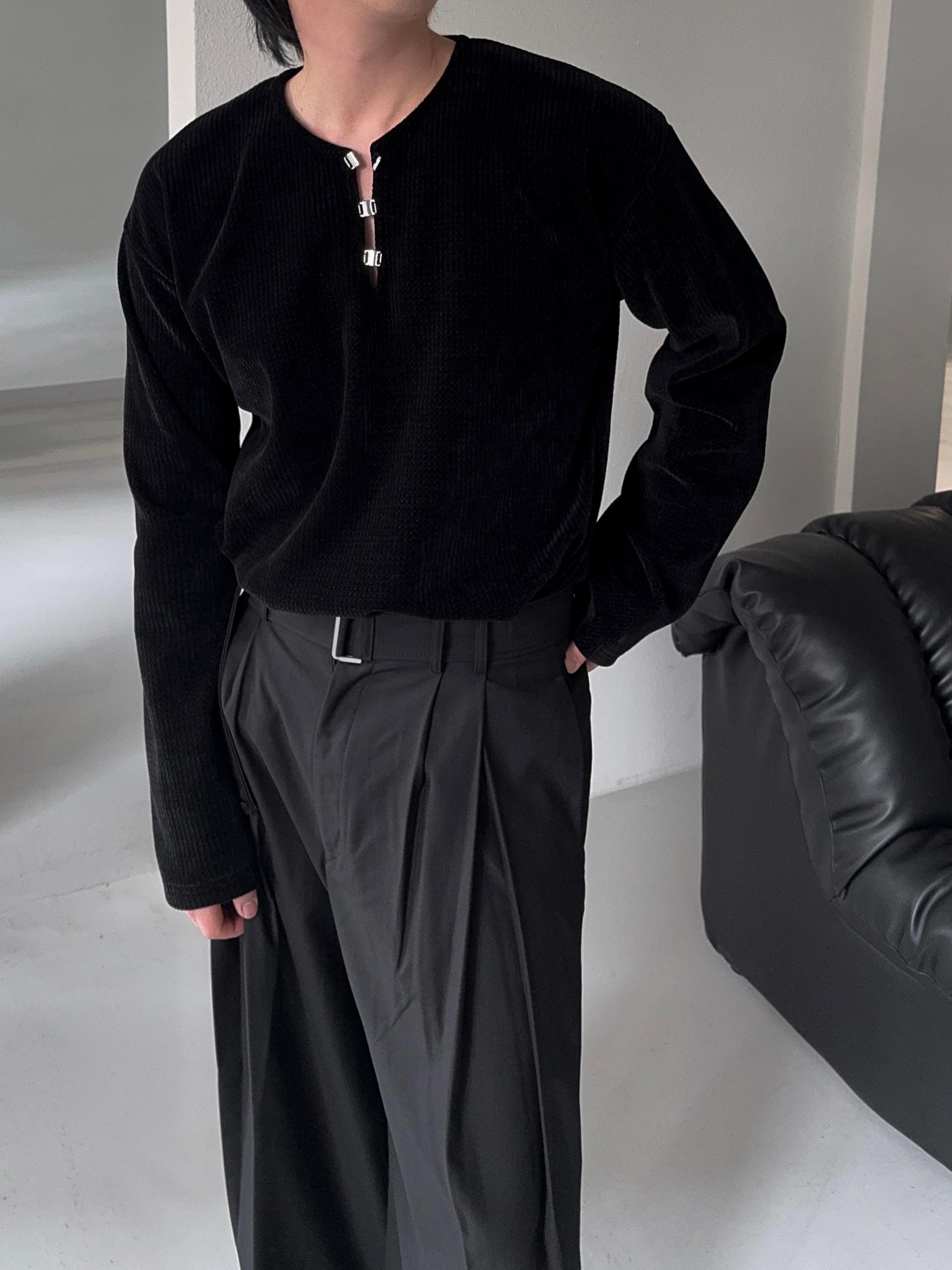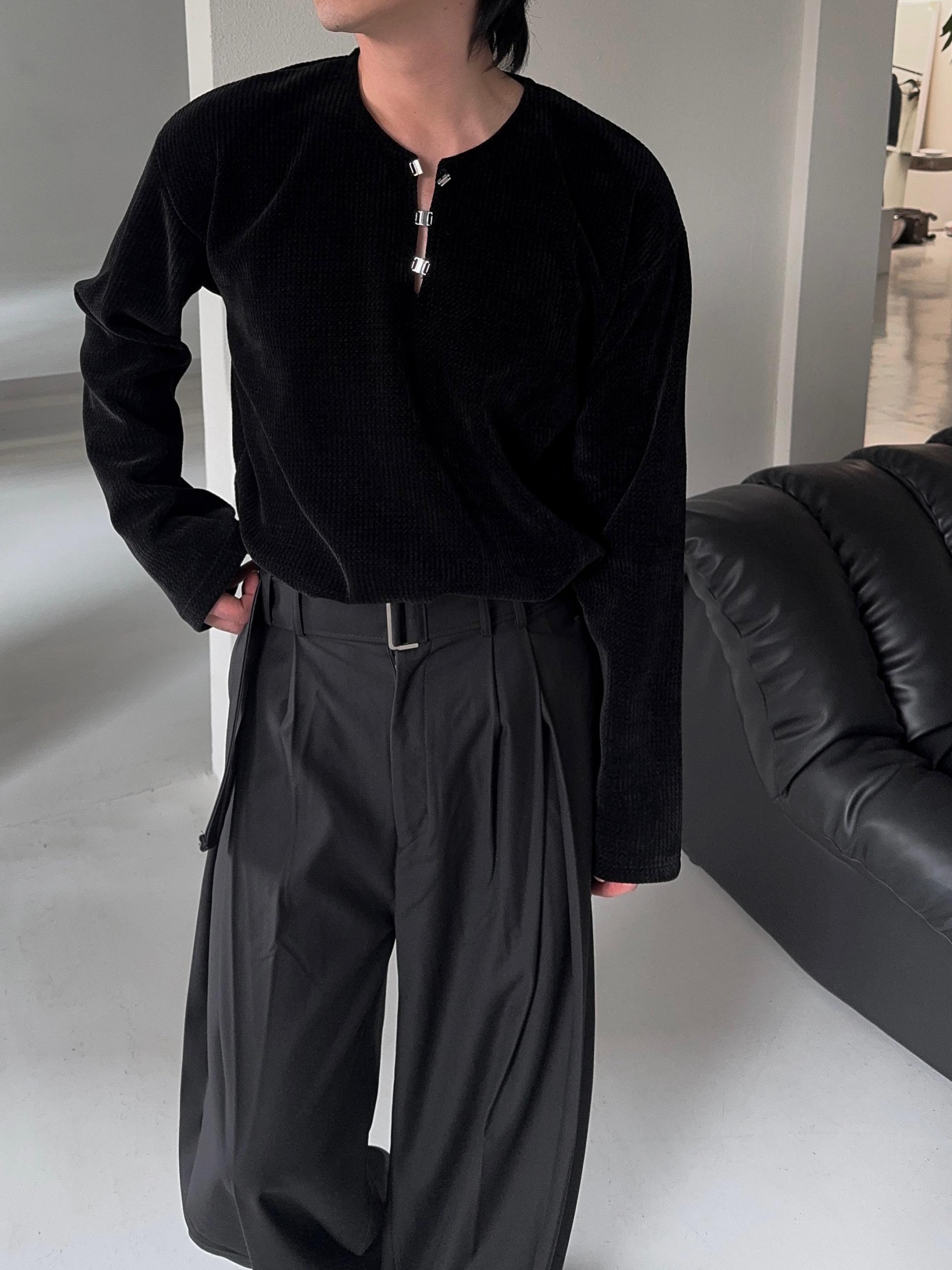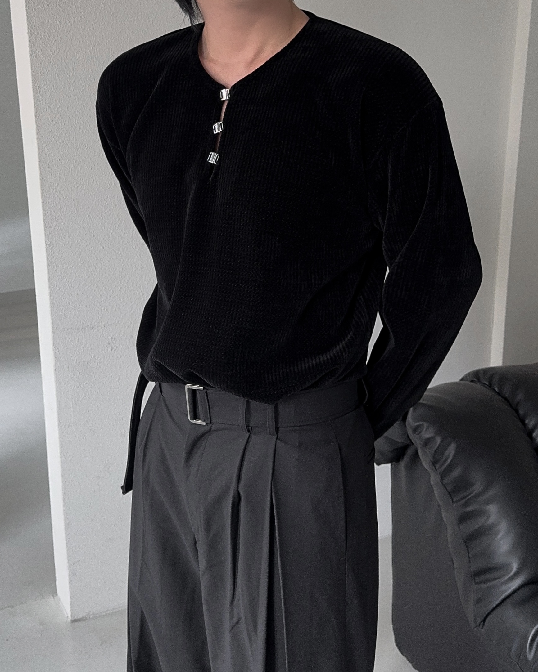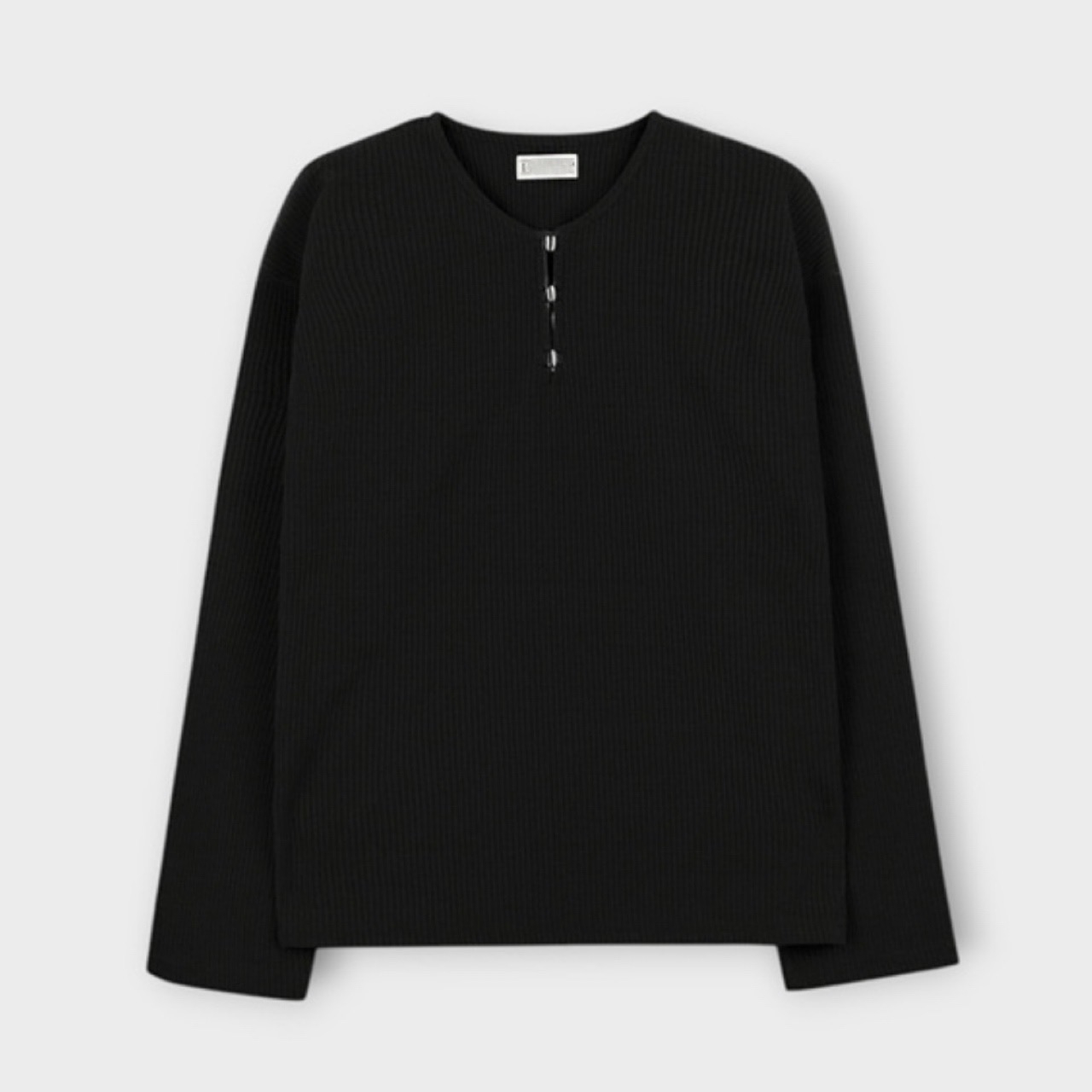 -부드러운 벨로아 소재로 제작된 후크 헨리넥 티셔츠