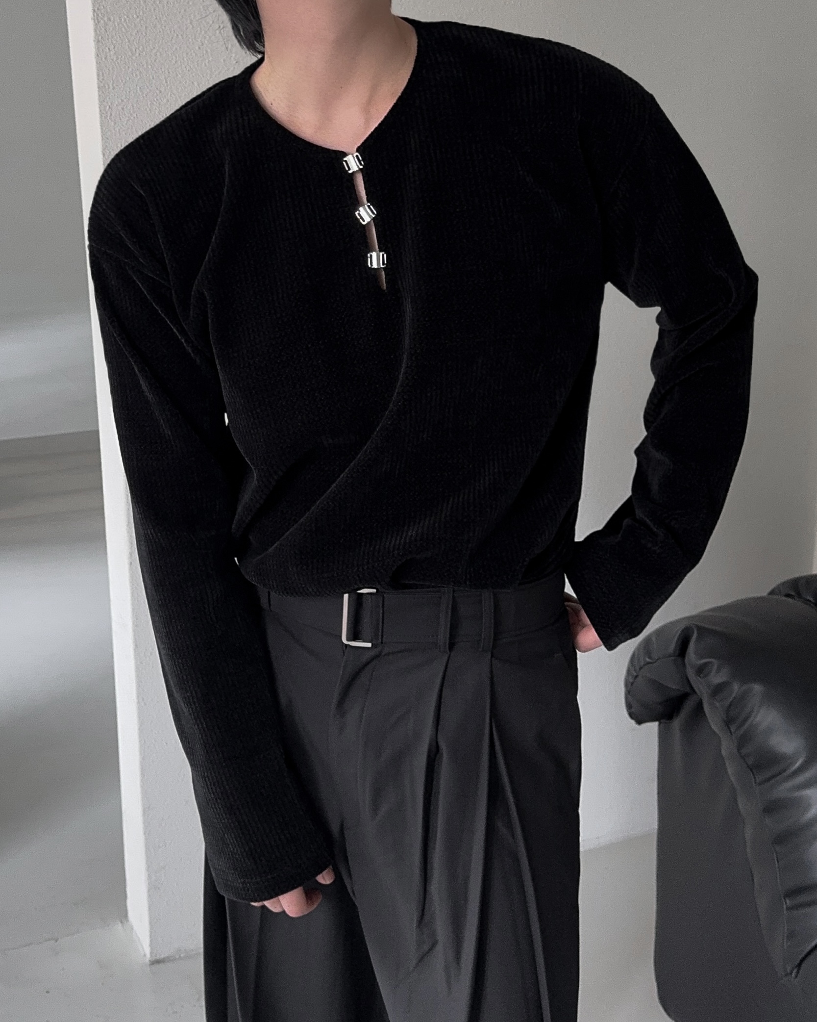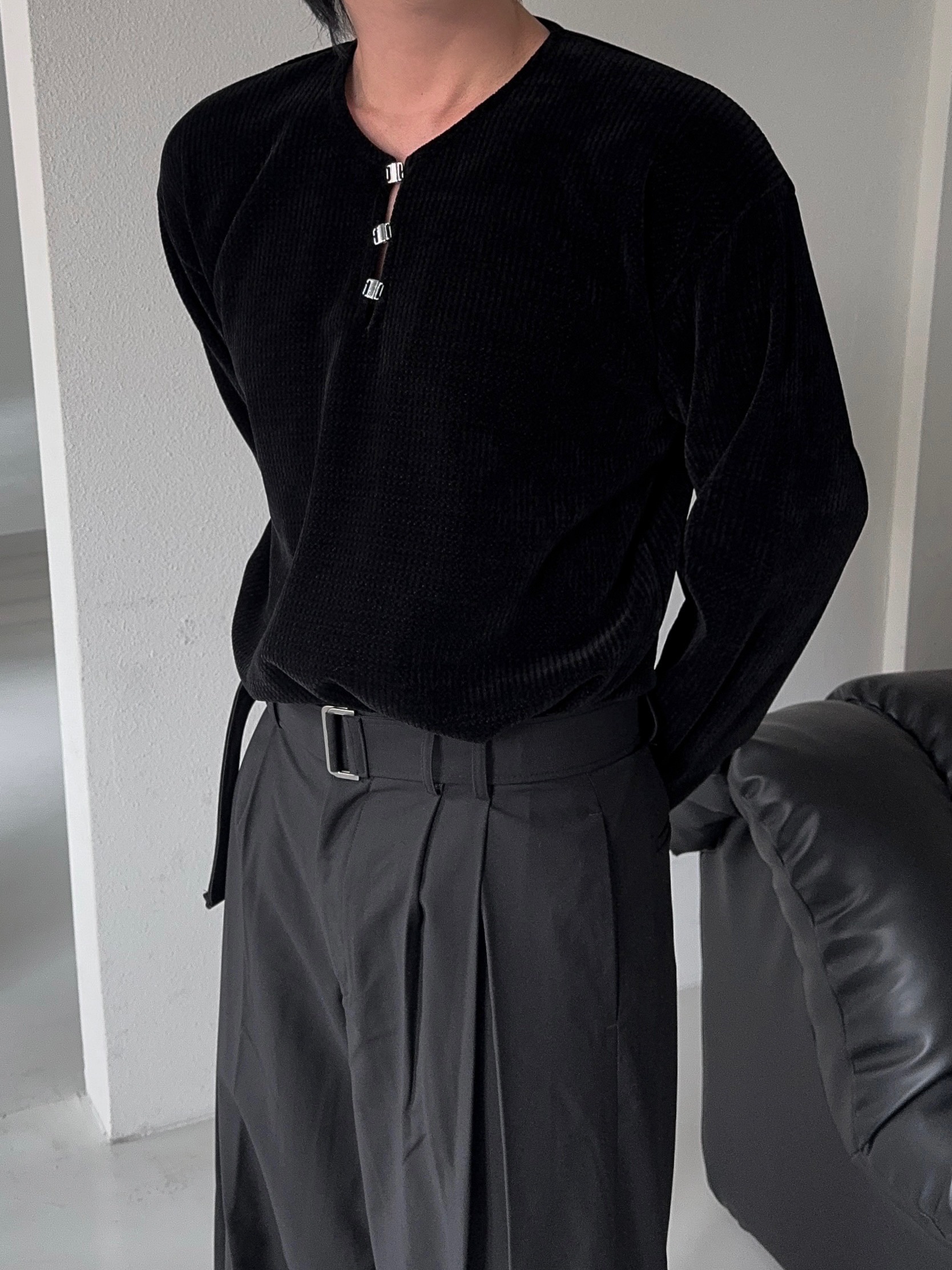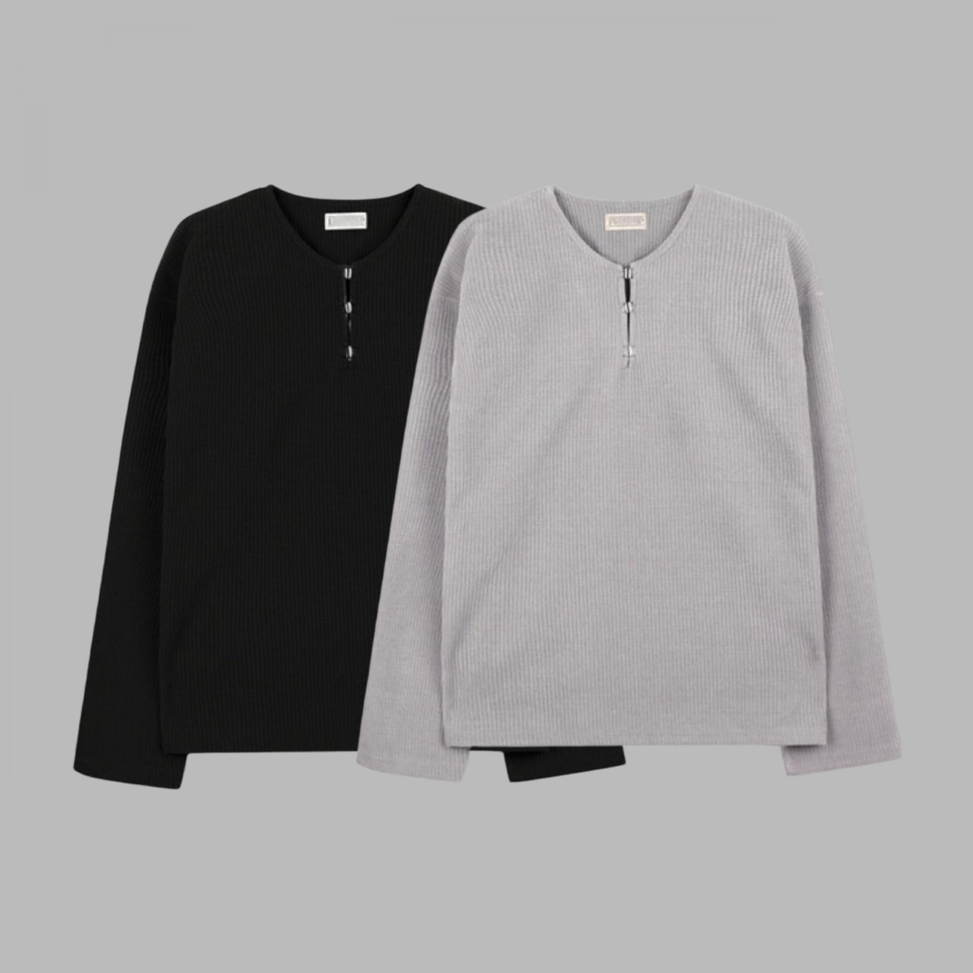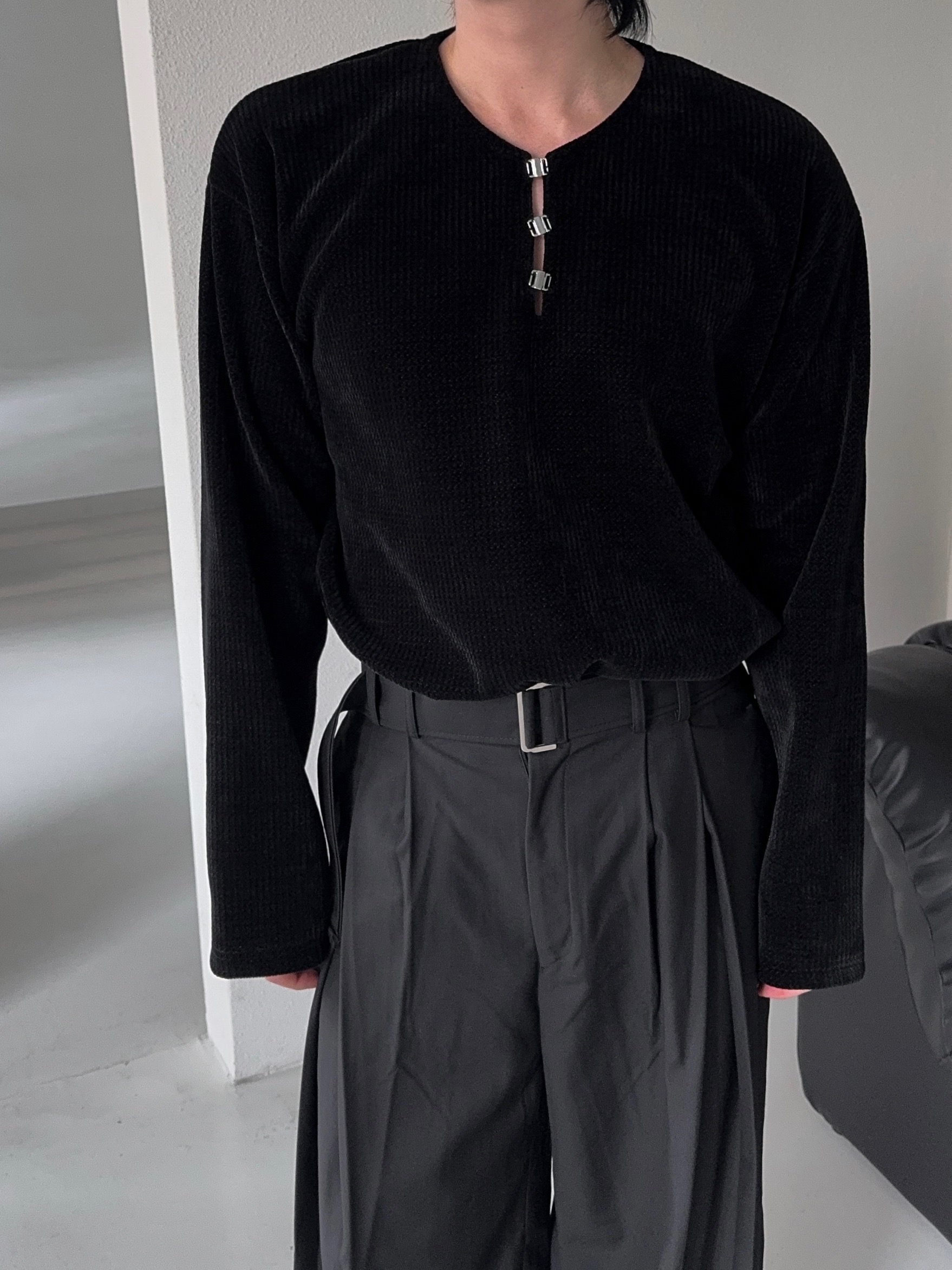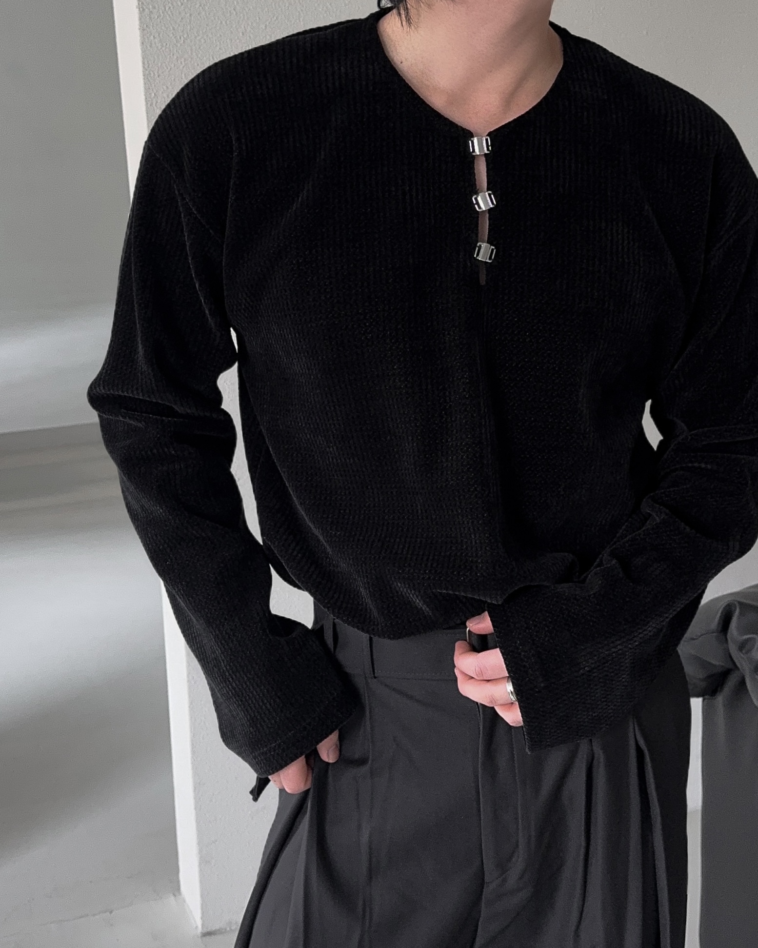 -부드러운 벨로아 소재로 제작된 후크 헨리넥 티셔츠