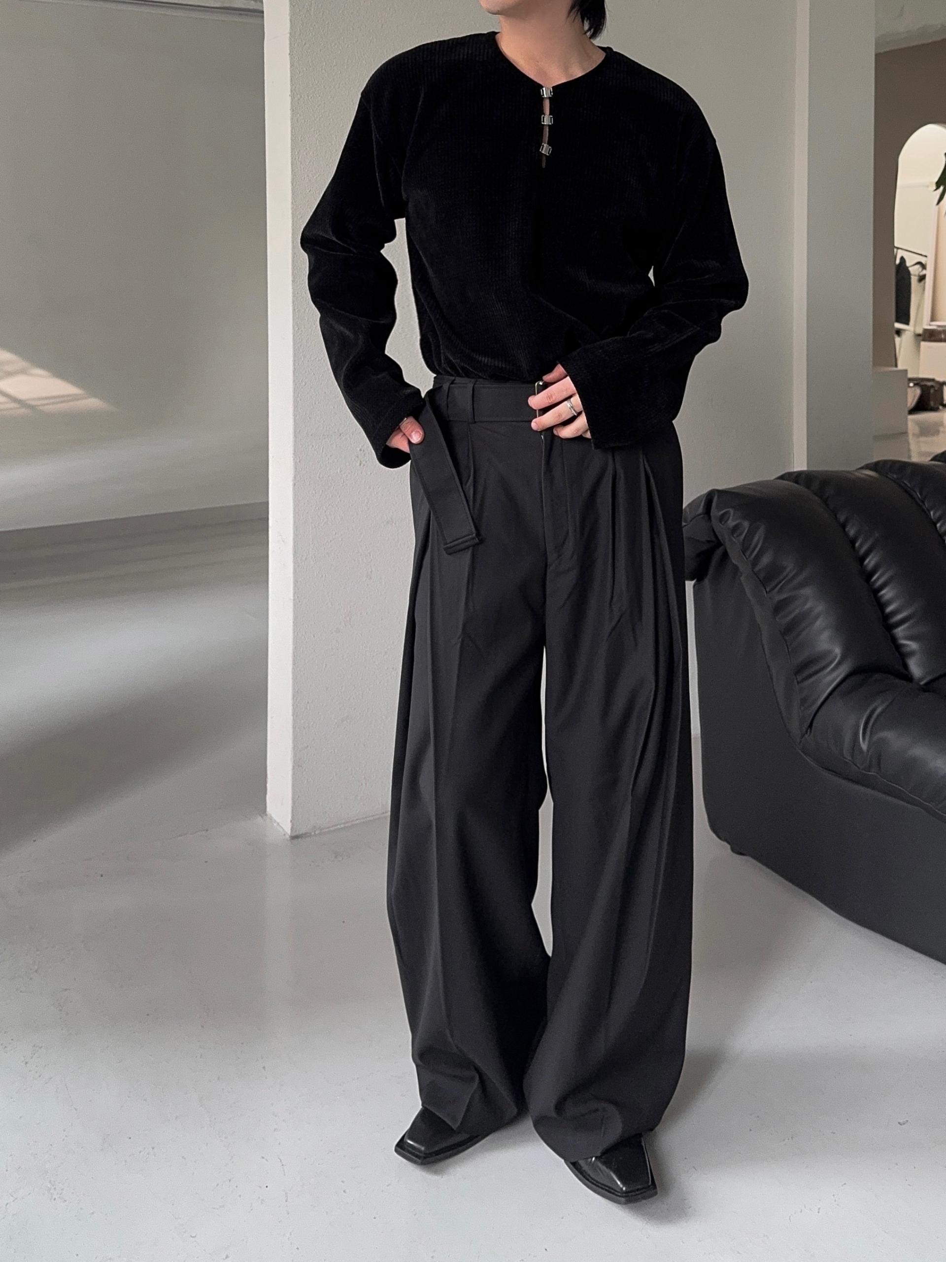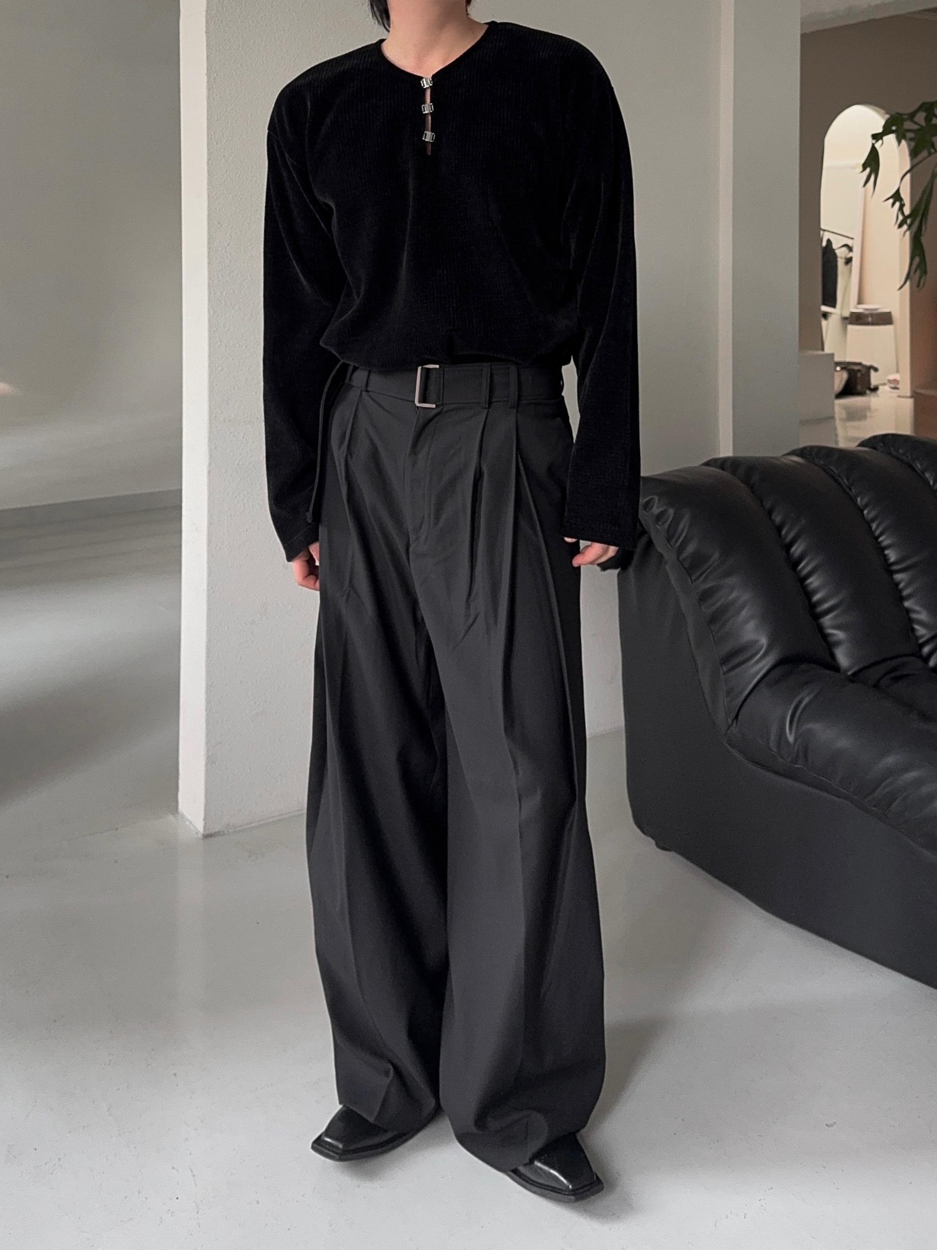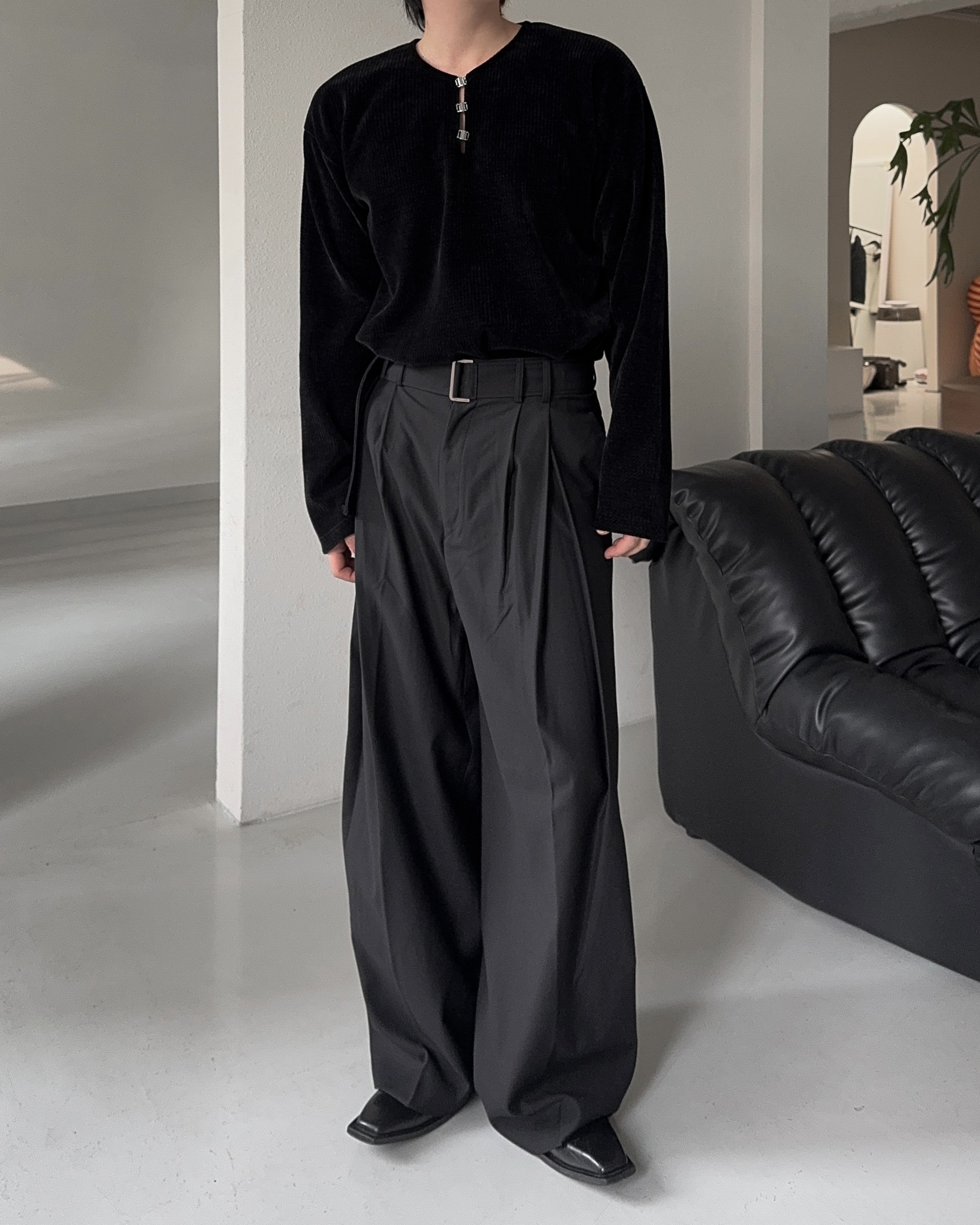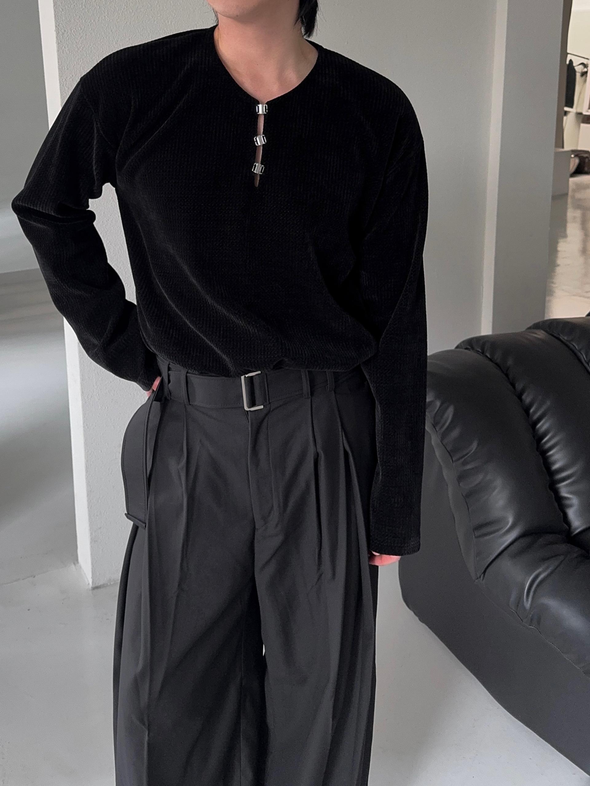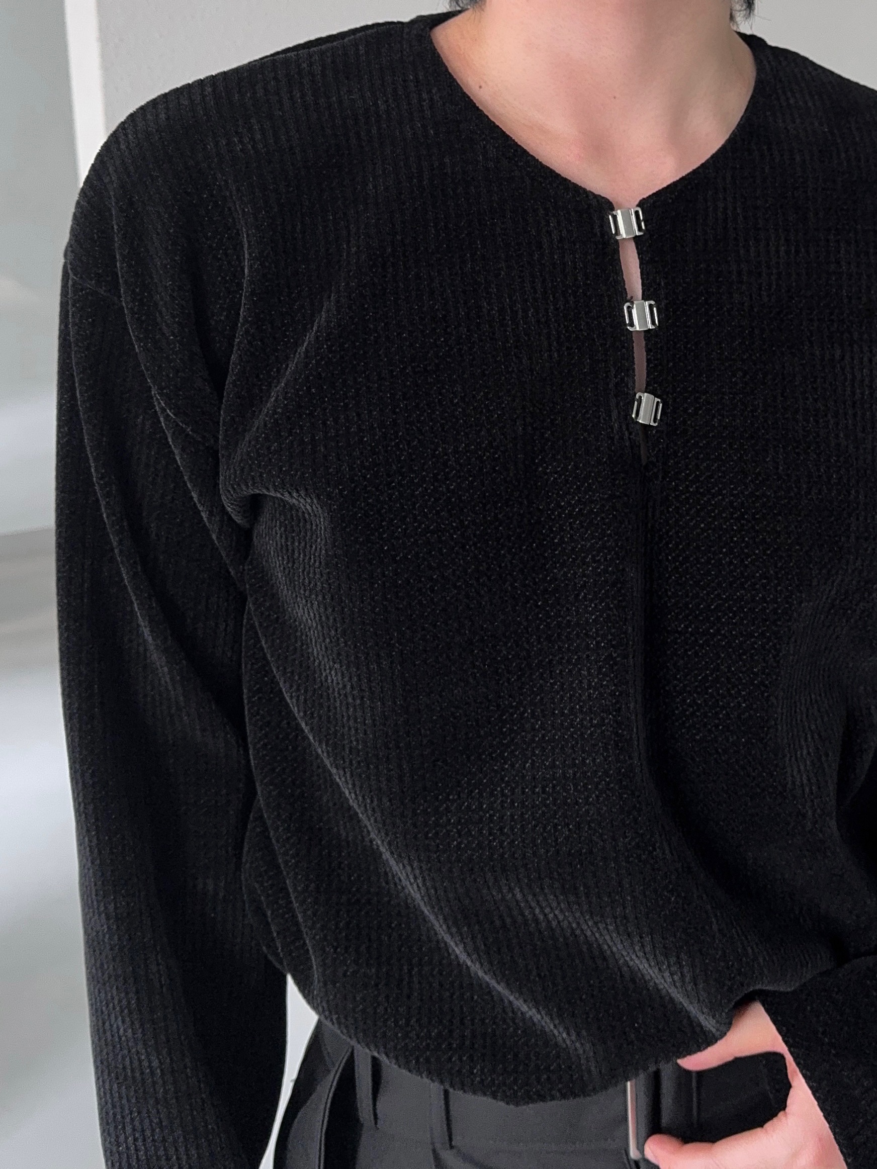 -부드러운 벨로아 소재로 제작된 후크 헨리넥 티셔츠