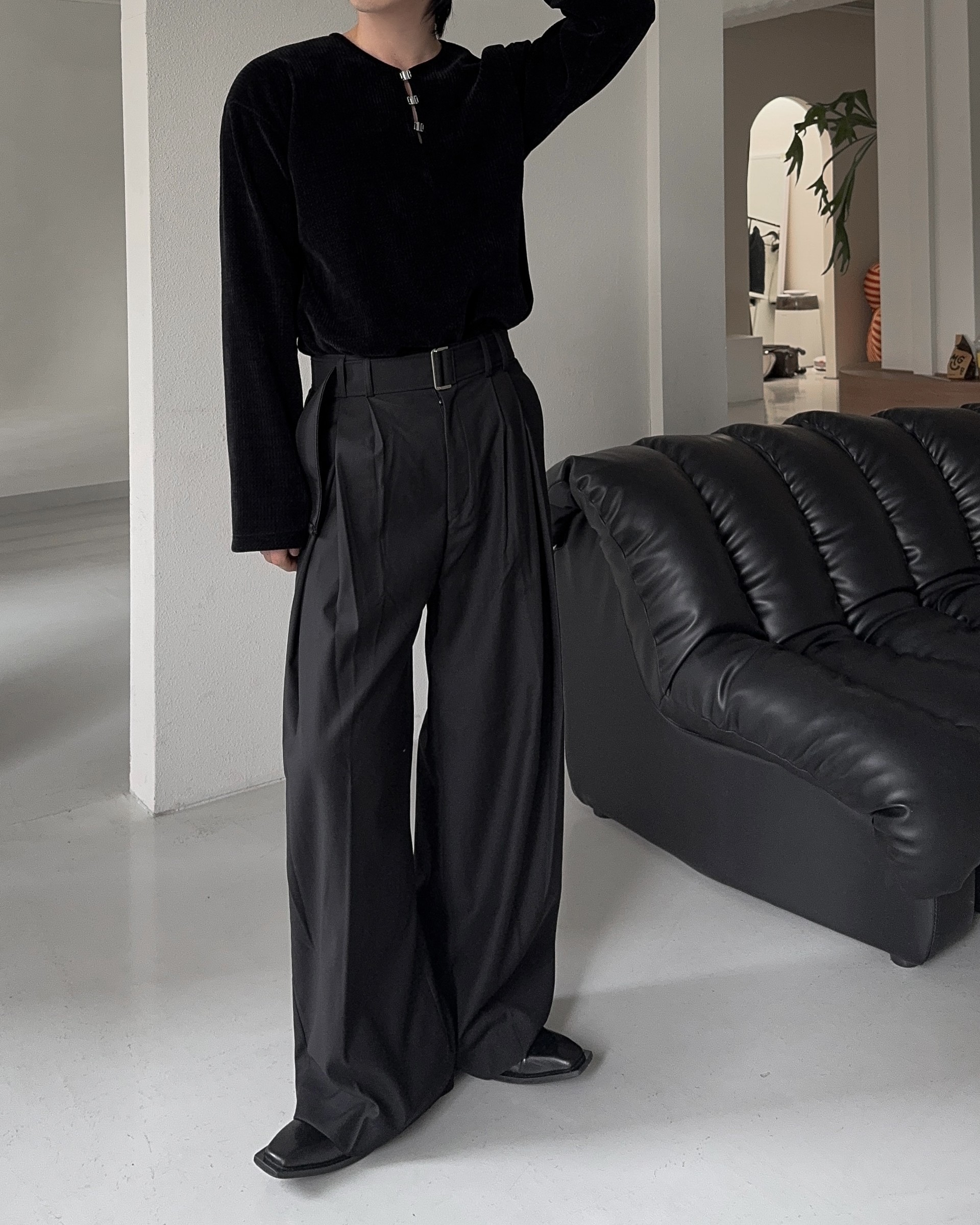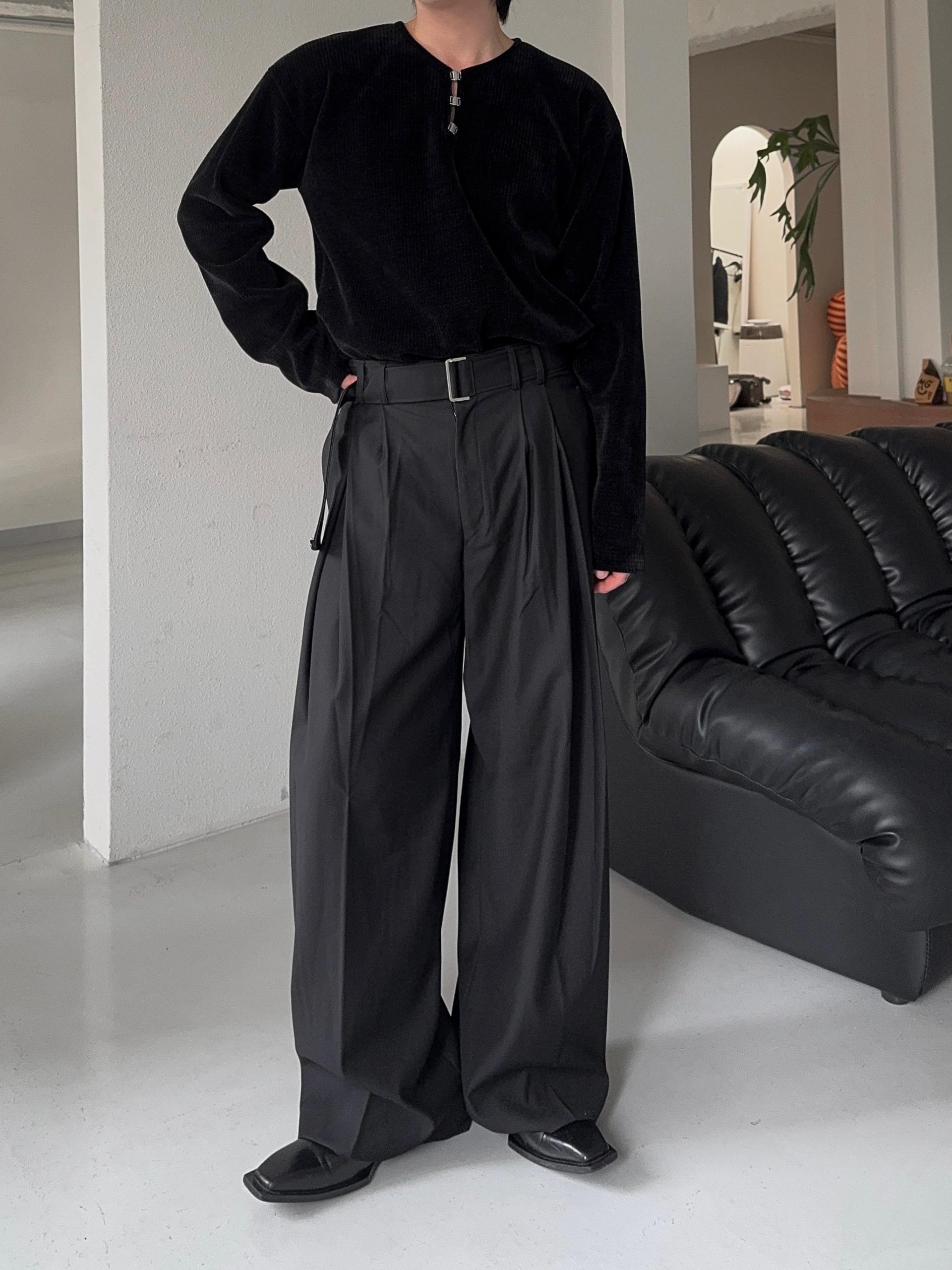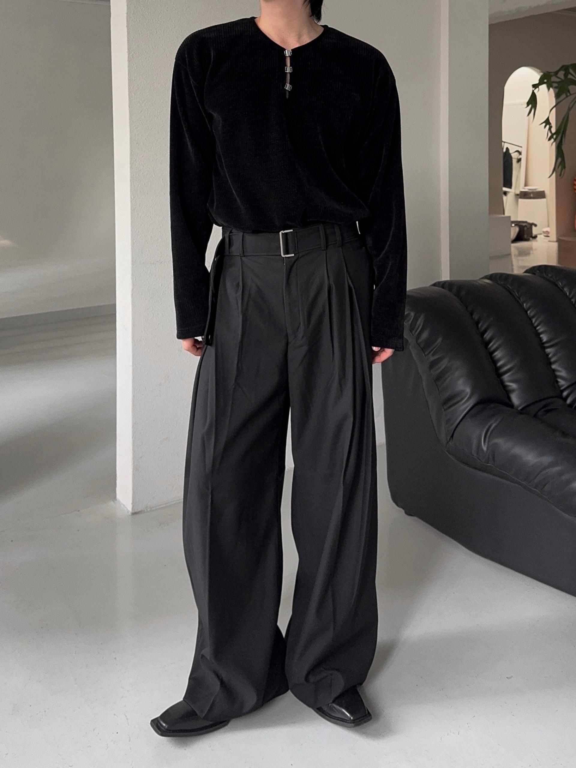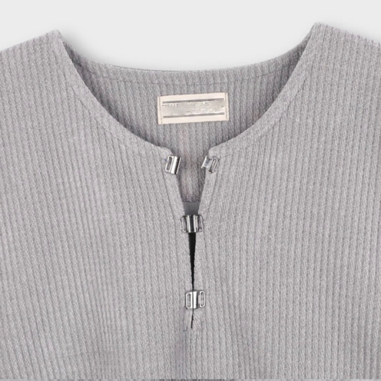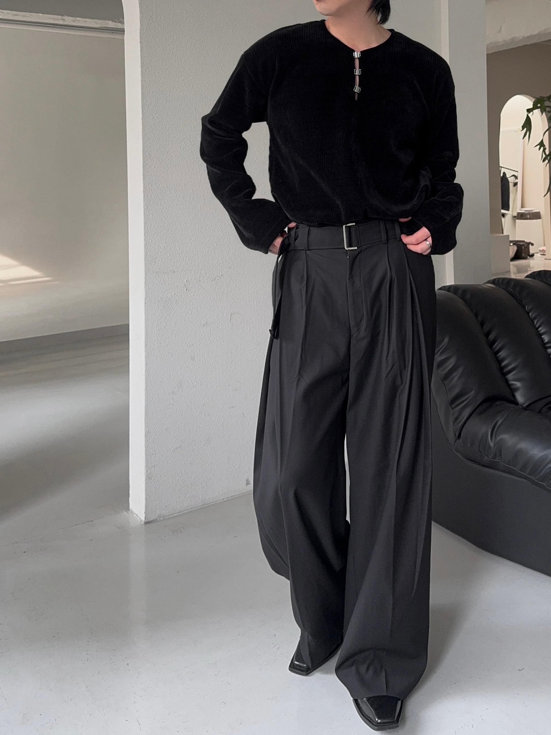 -부드러운 벨로아 소재로 제작된 후크 헨리넥 티셔츠