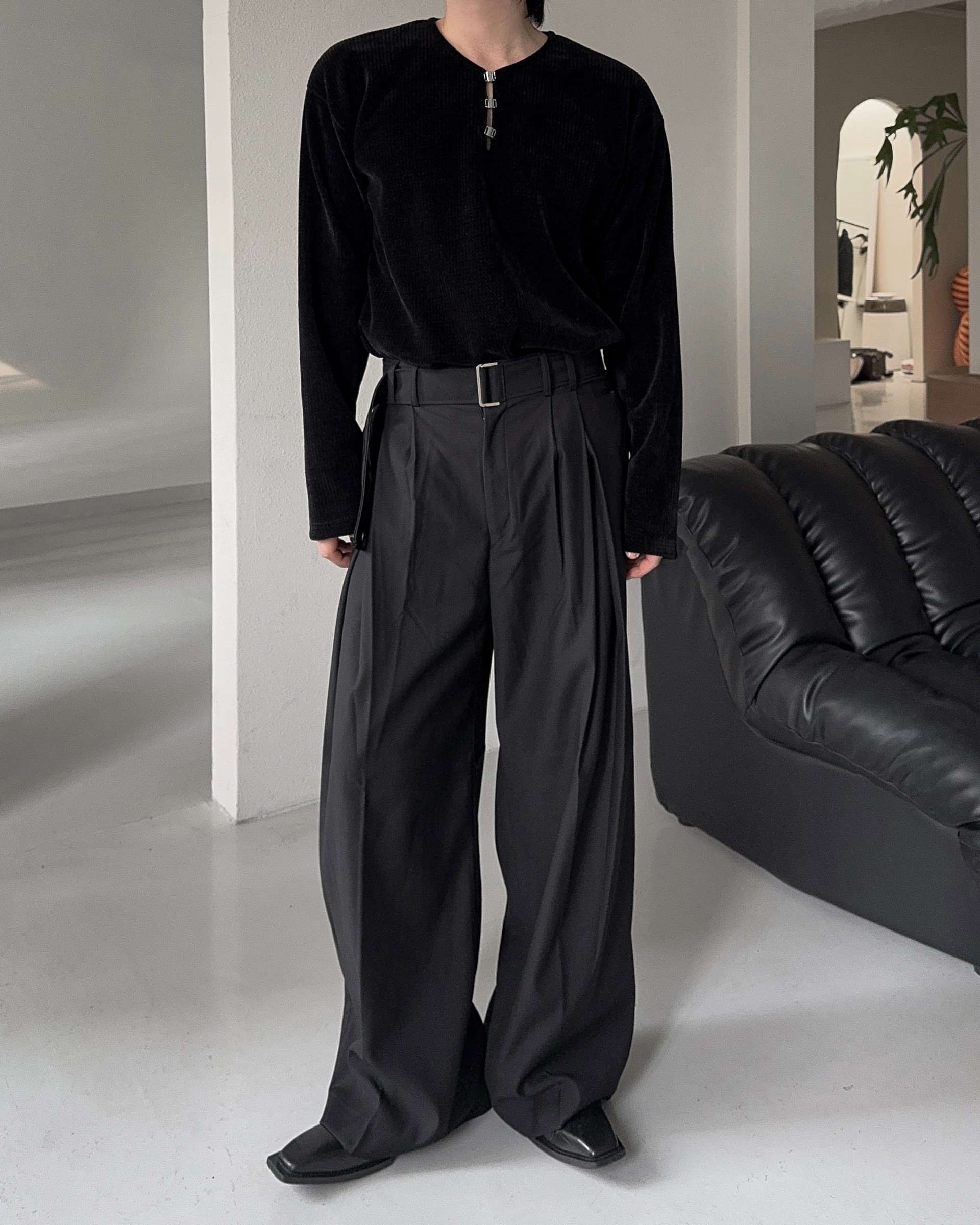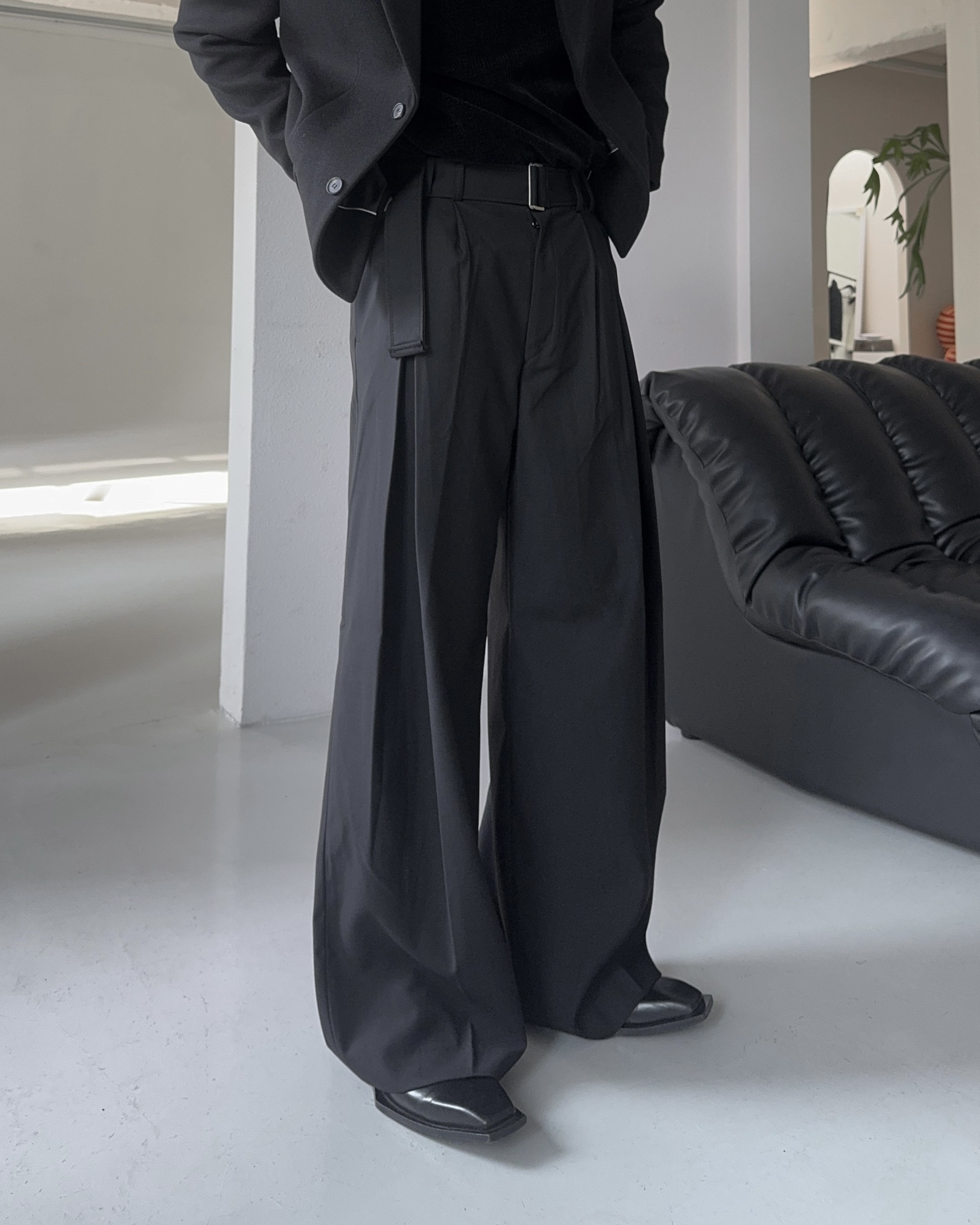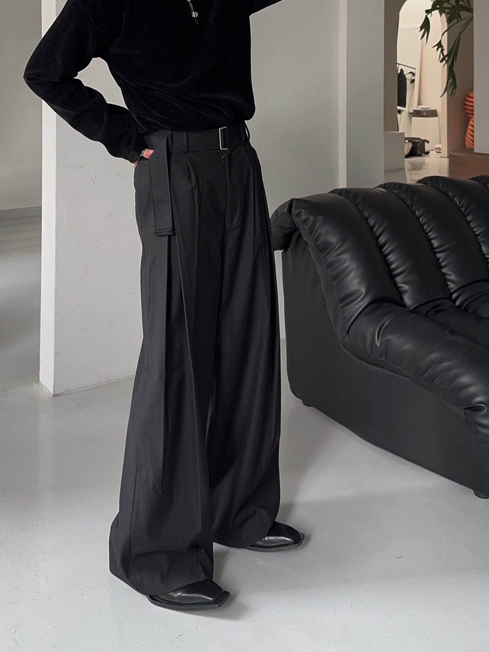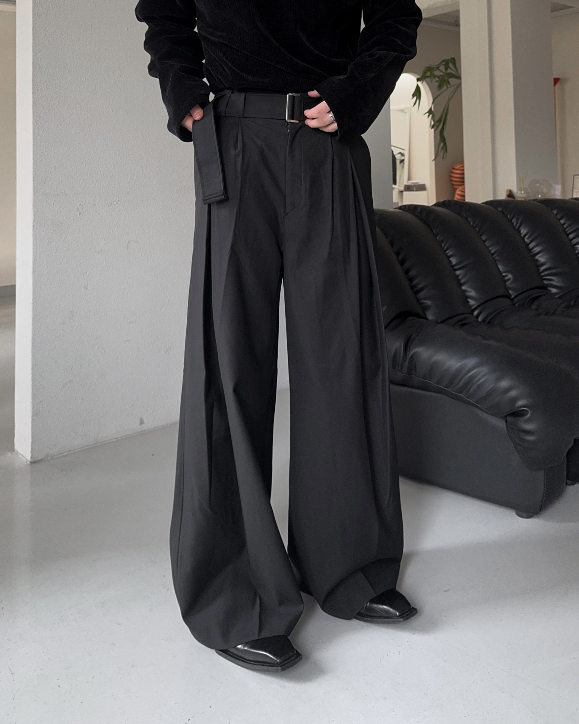 -웨이스트 트윈 턱 디테일로 유니크한 디자인