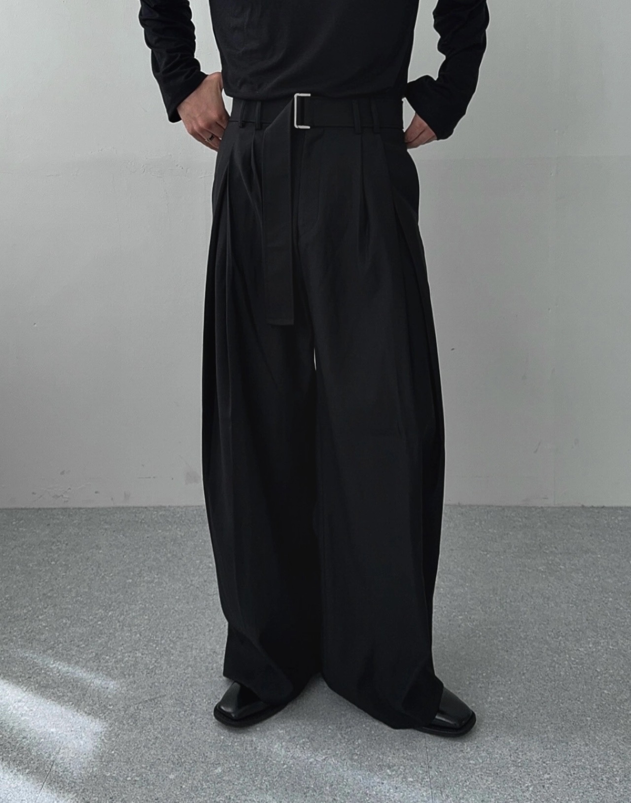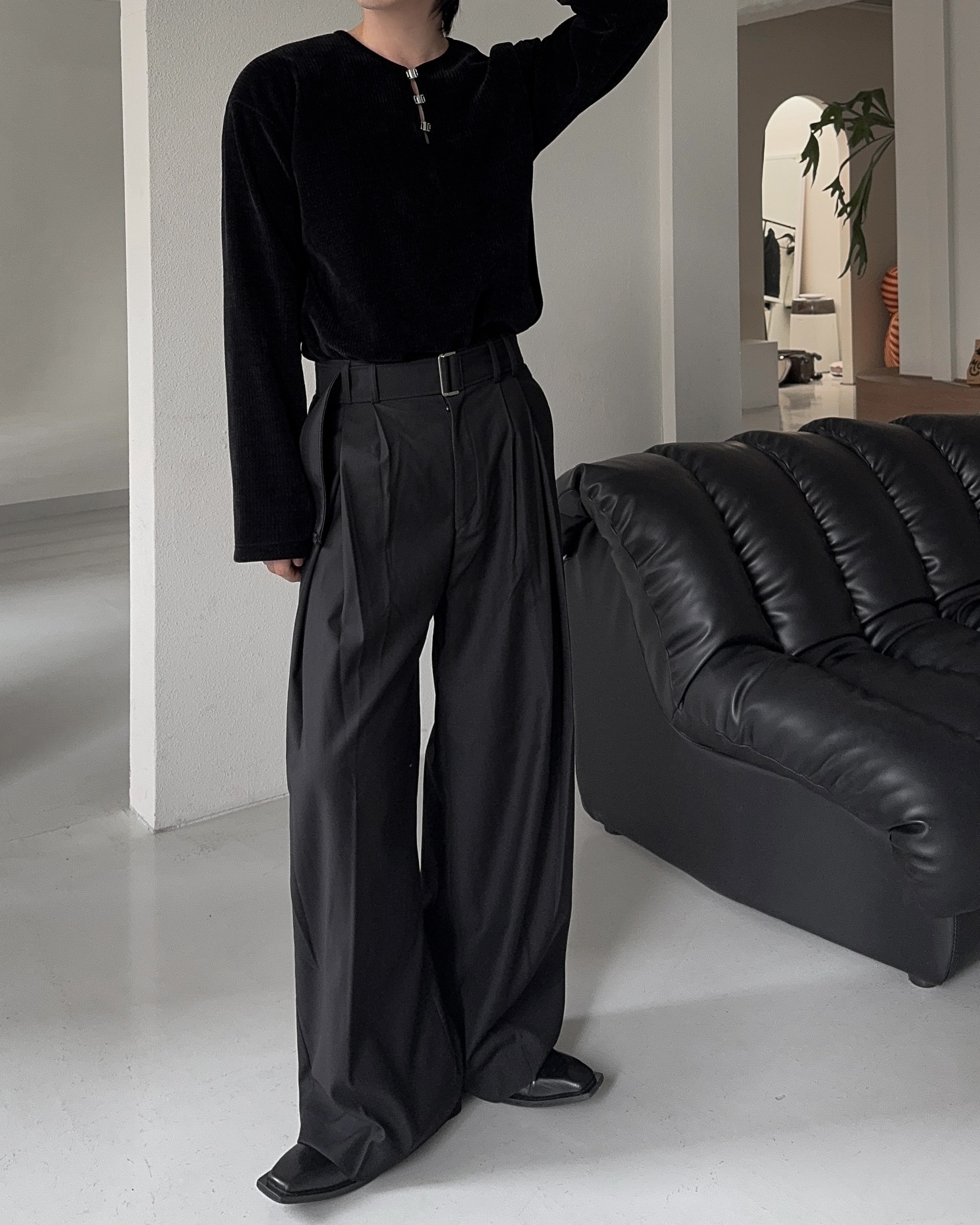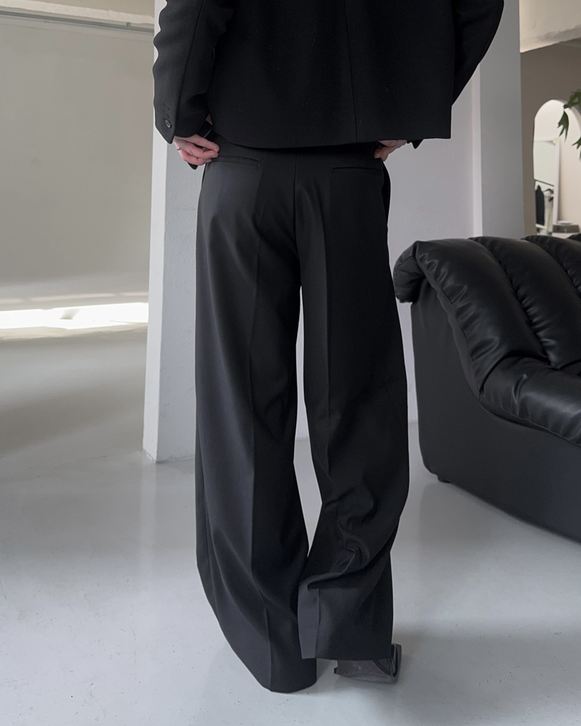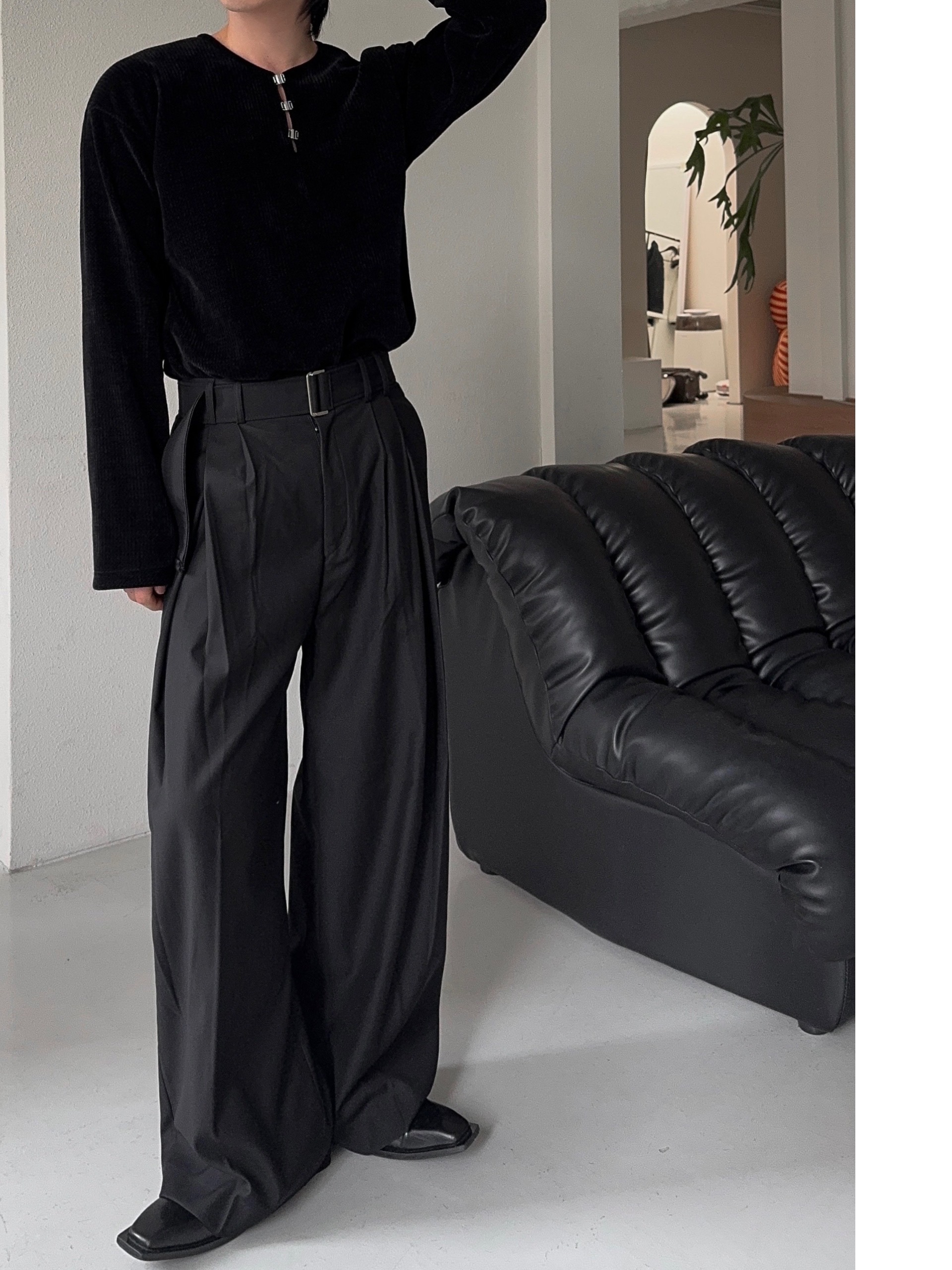 -웨이스트 트윈 턱 디테일로 유니크한 디자인