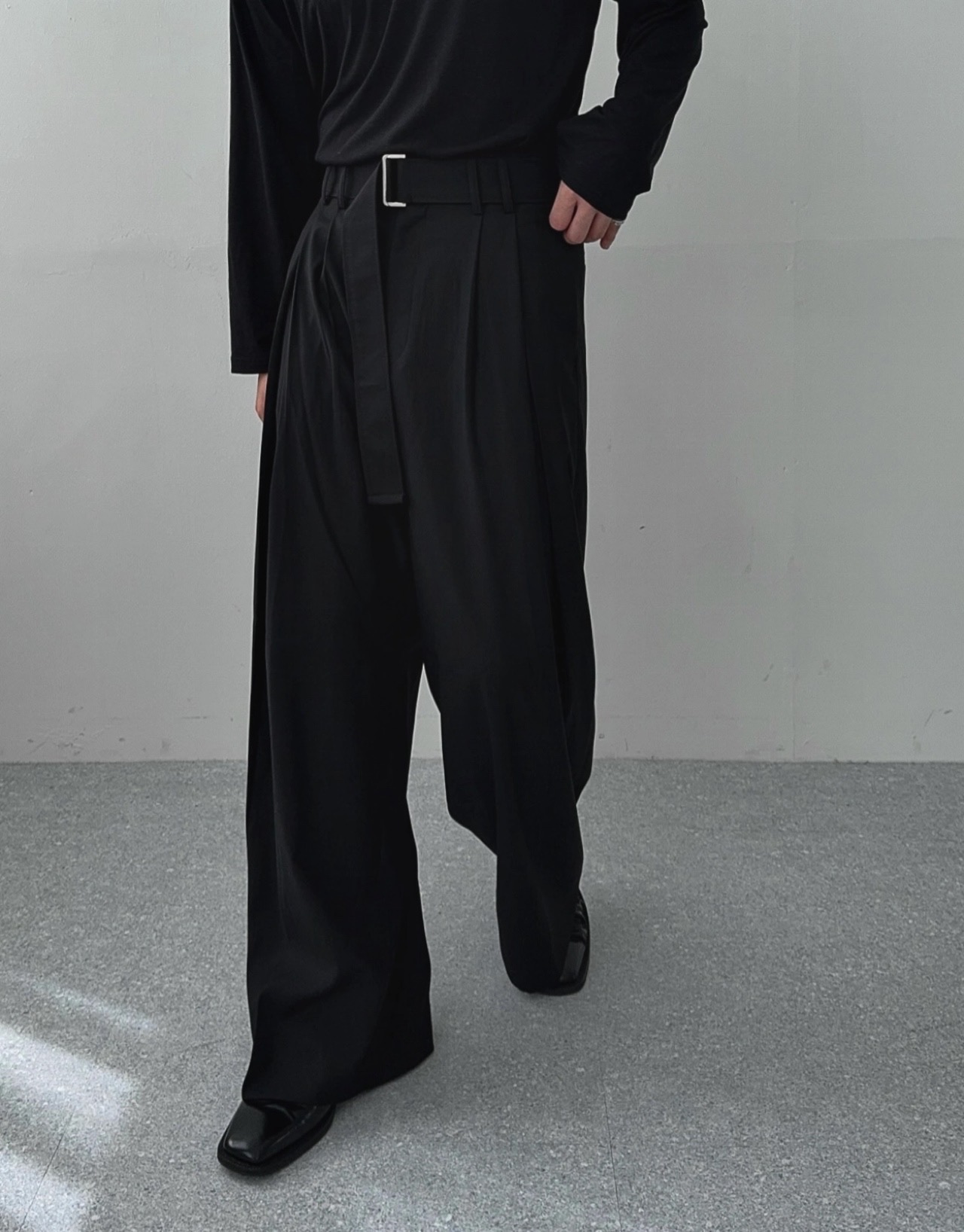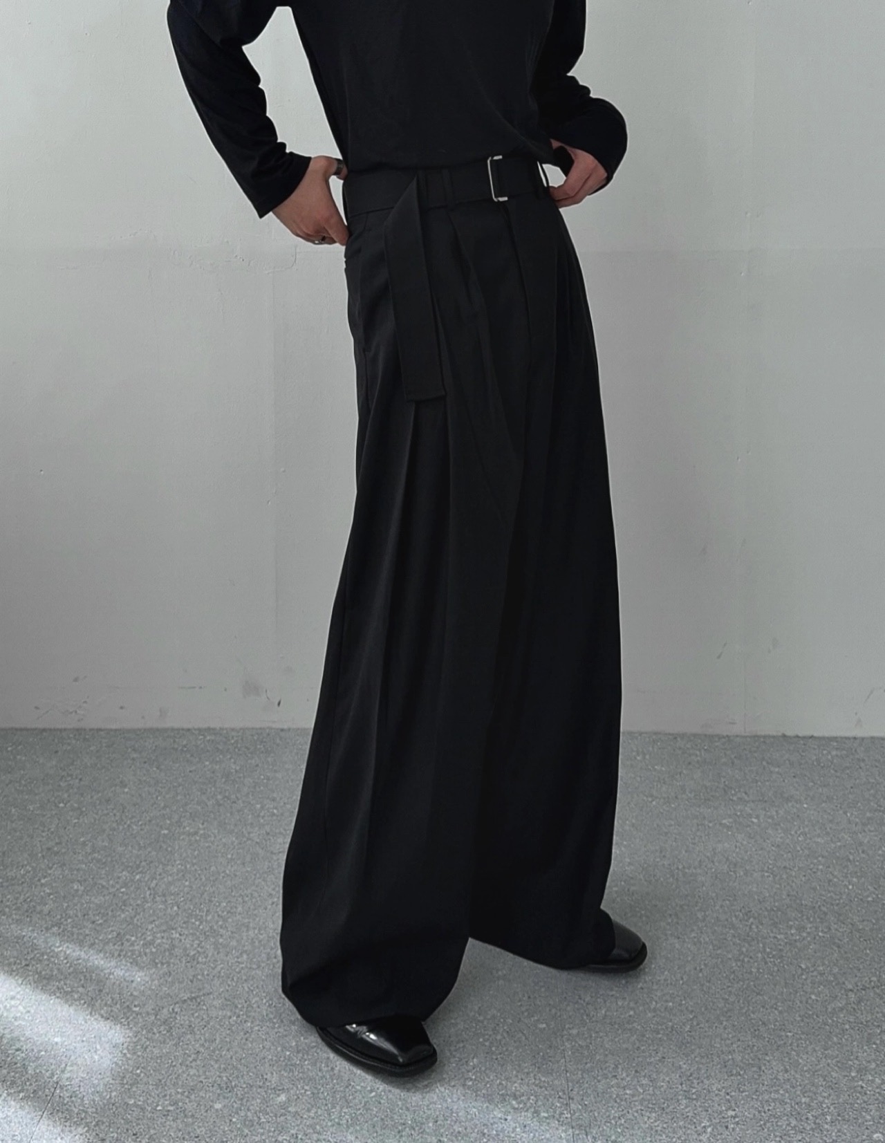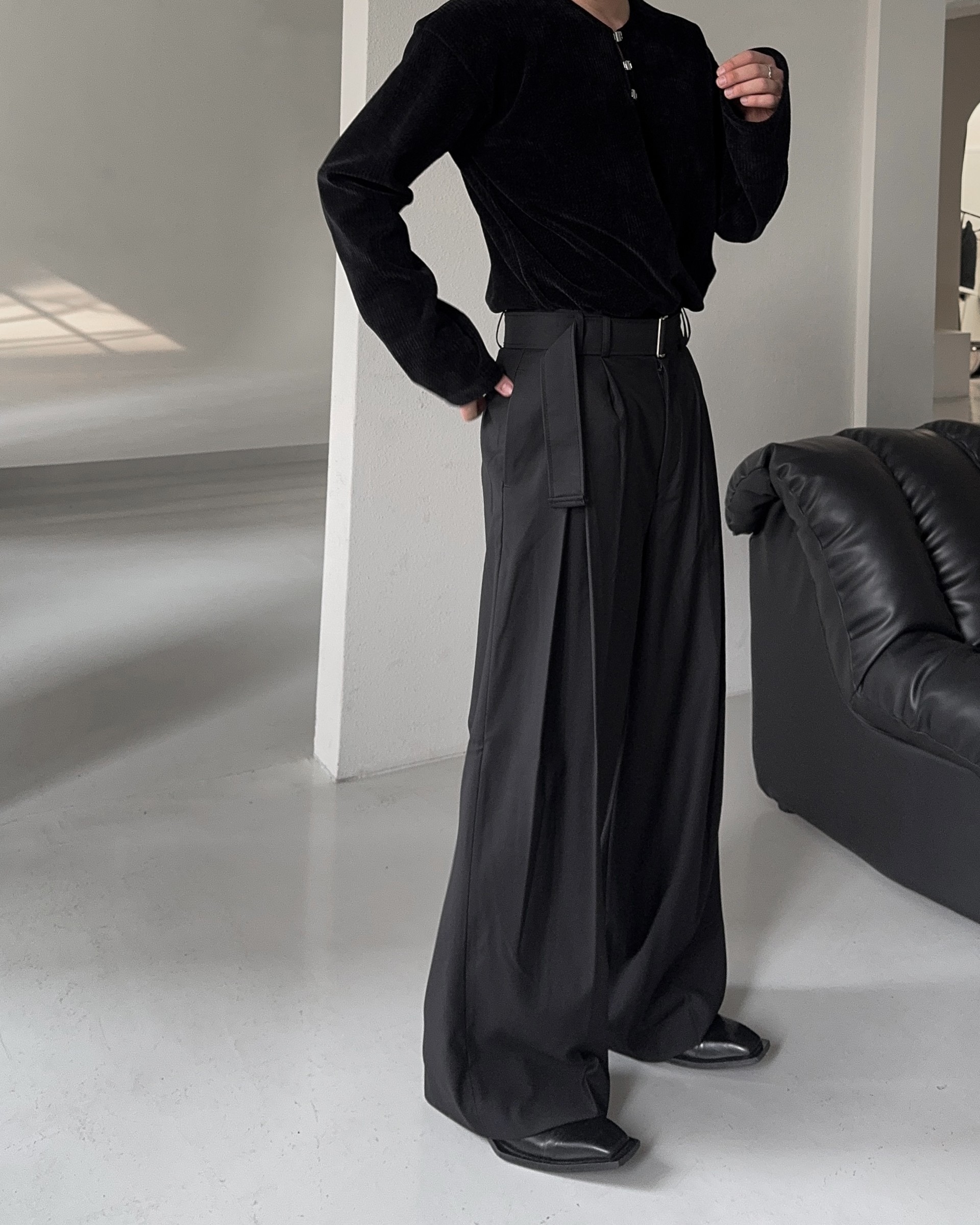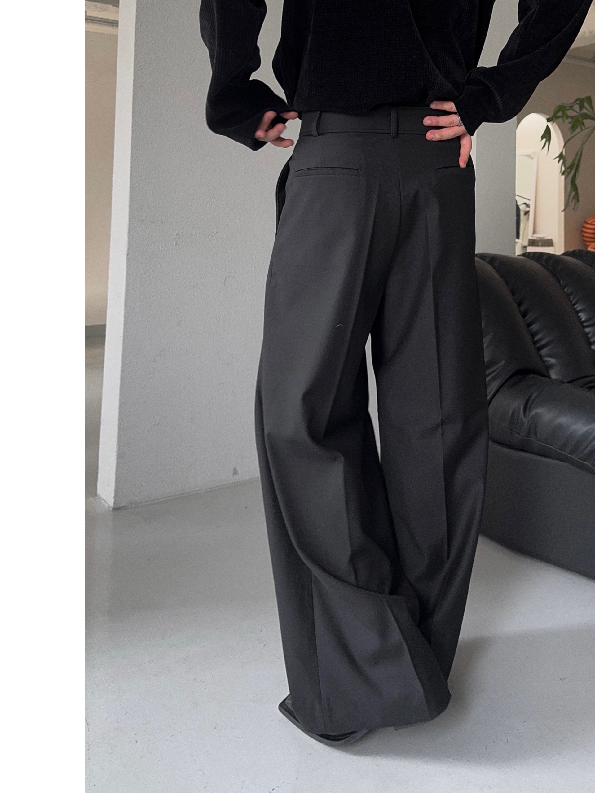 -웨이스트 트윈 턱 디테일로 유니크한 디자인