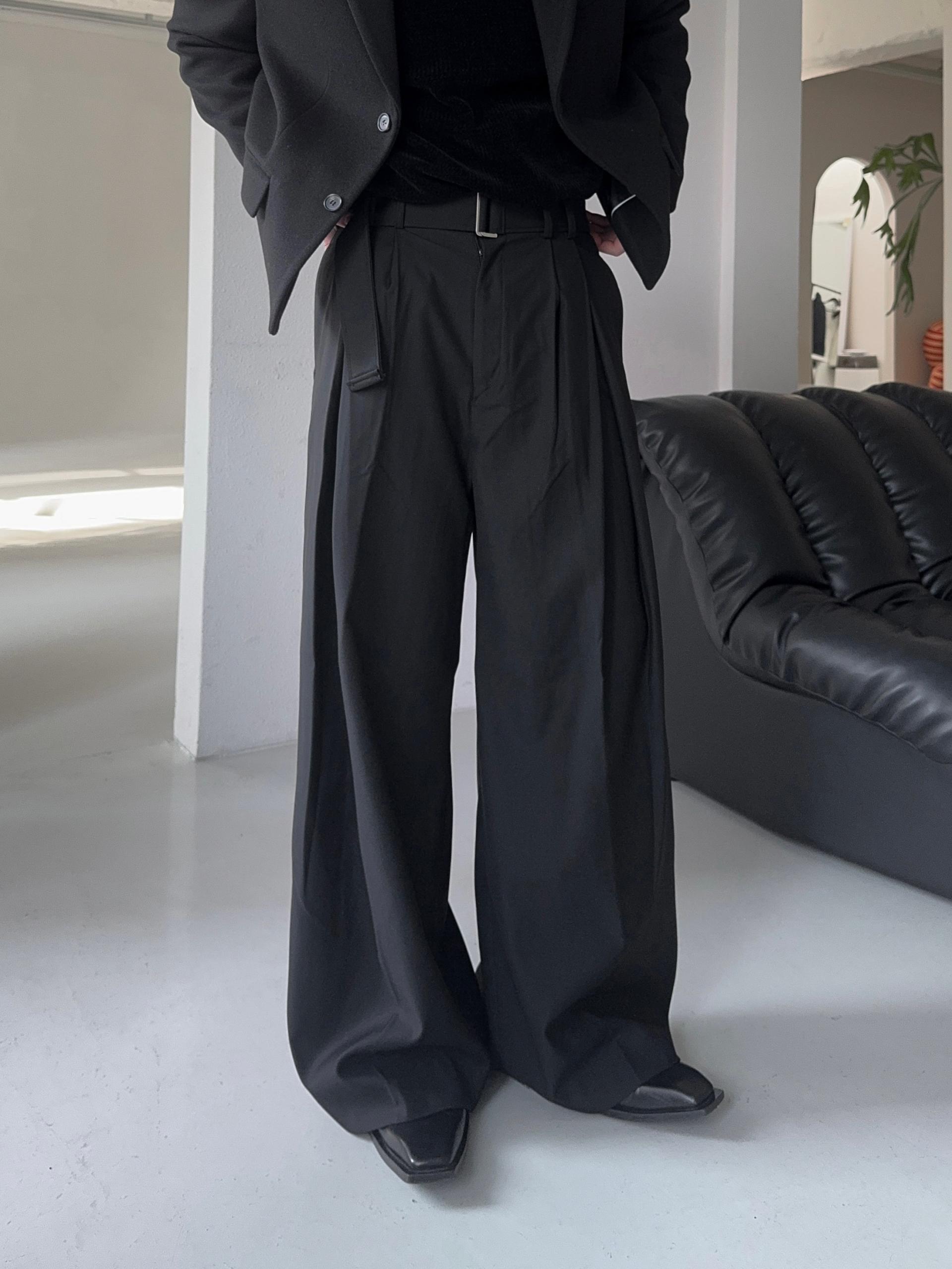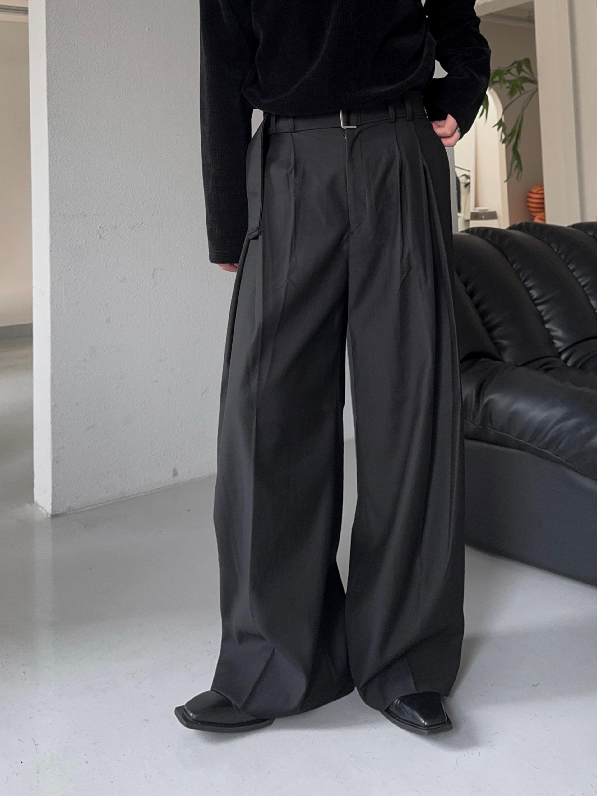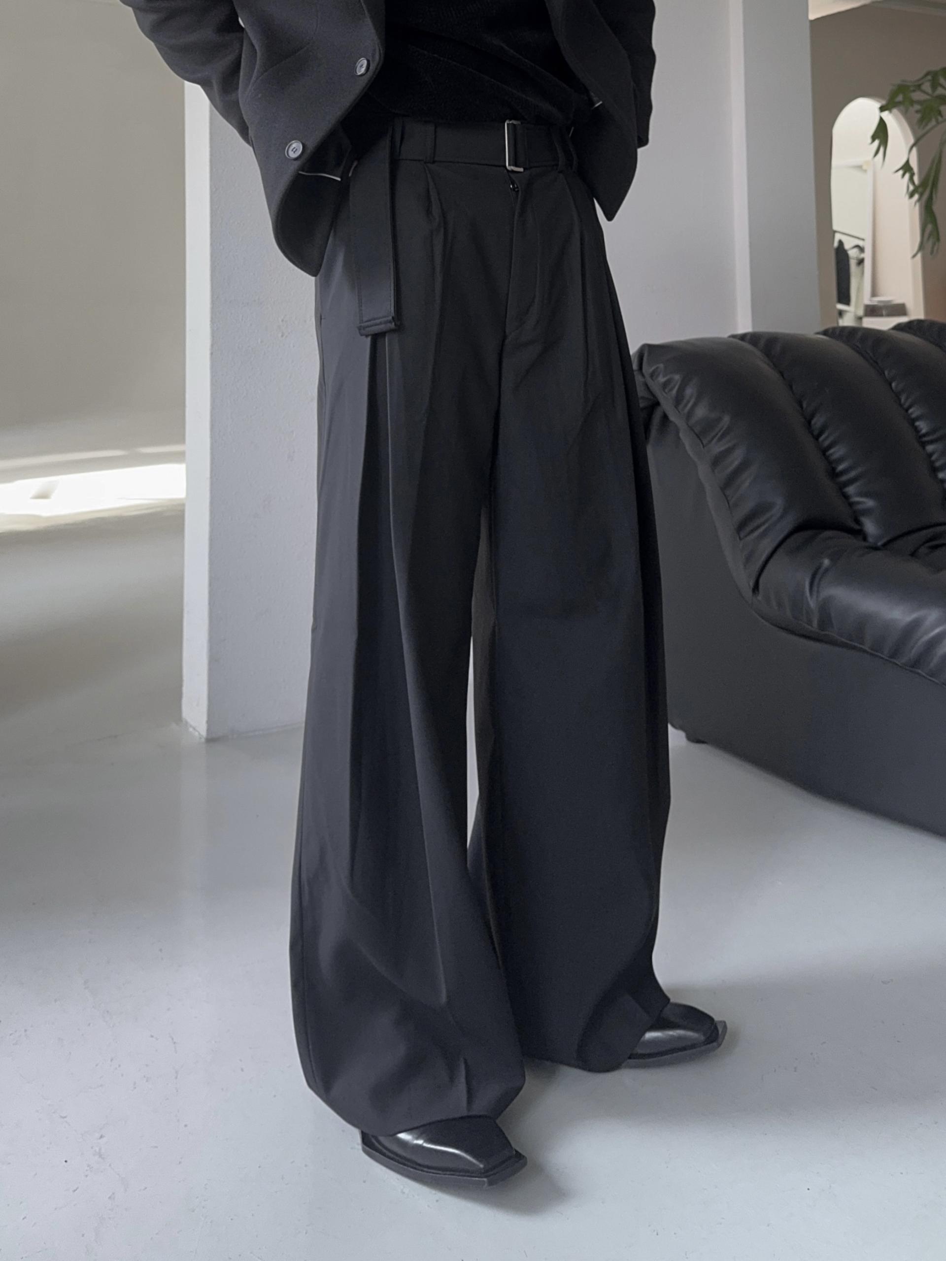 -폴리 , 레이온 혼방으로 탄탄하고 고급스러운 소재로 제작된 와이드 슬랙스