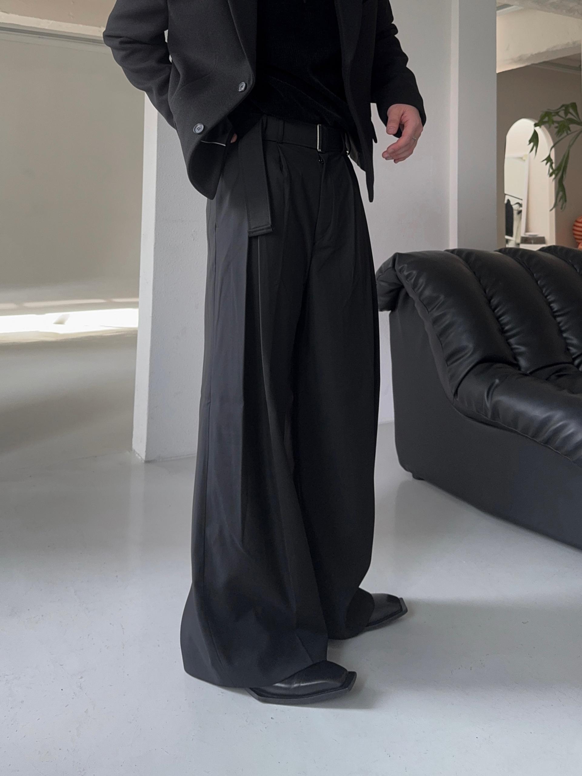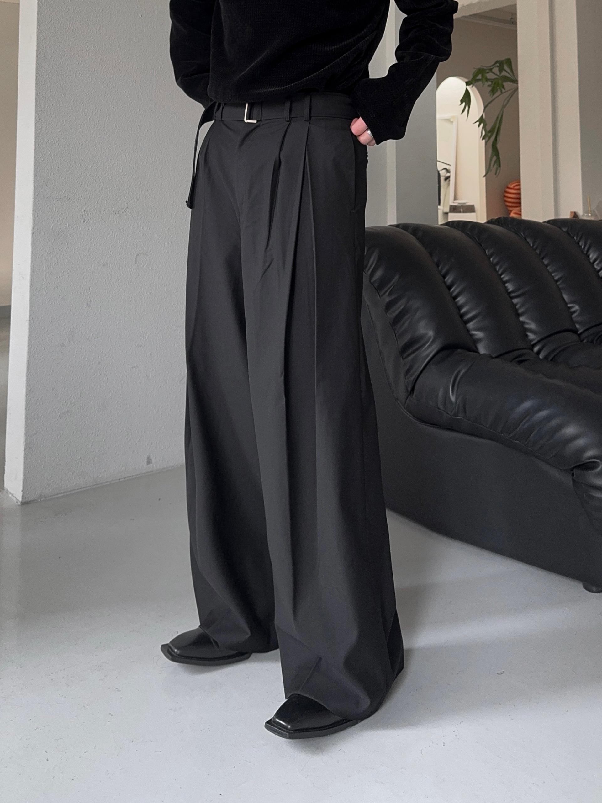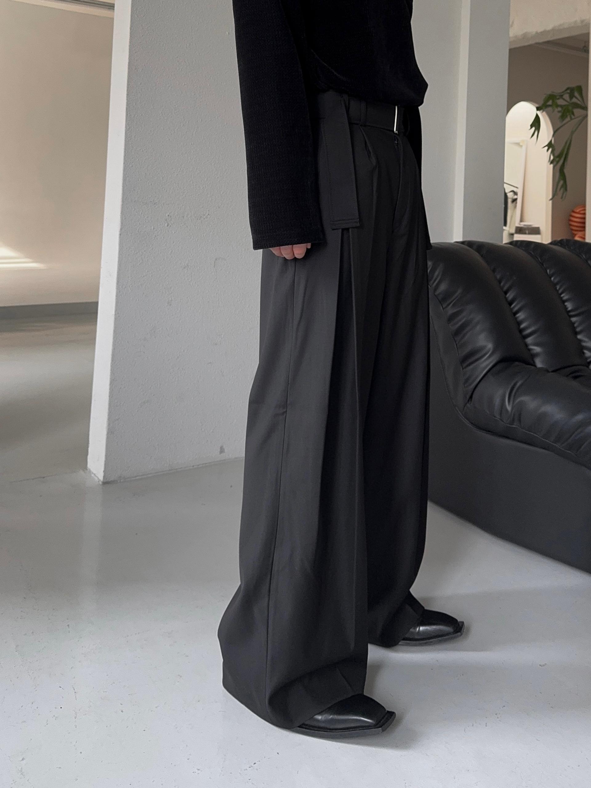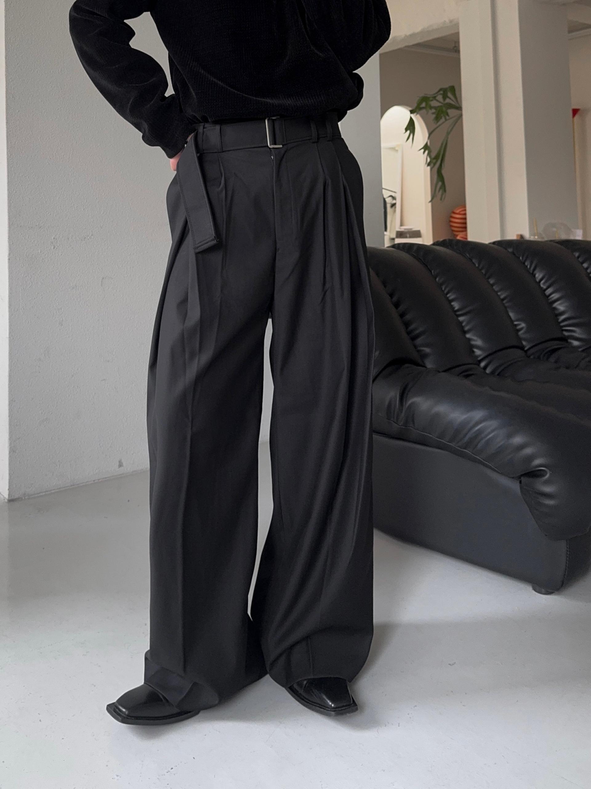 -폴리 , 레이온 혼방으로 탄탄하고 고급스러운 소재로 제작된 와이드 슬랙스