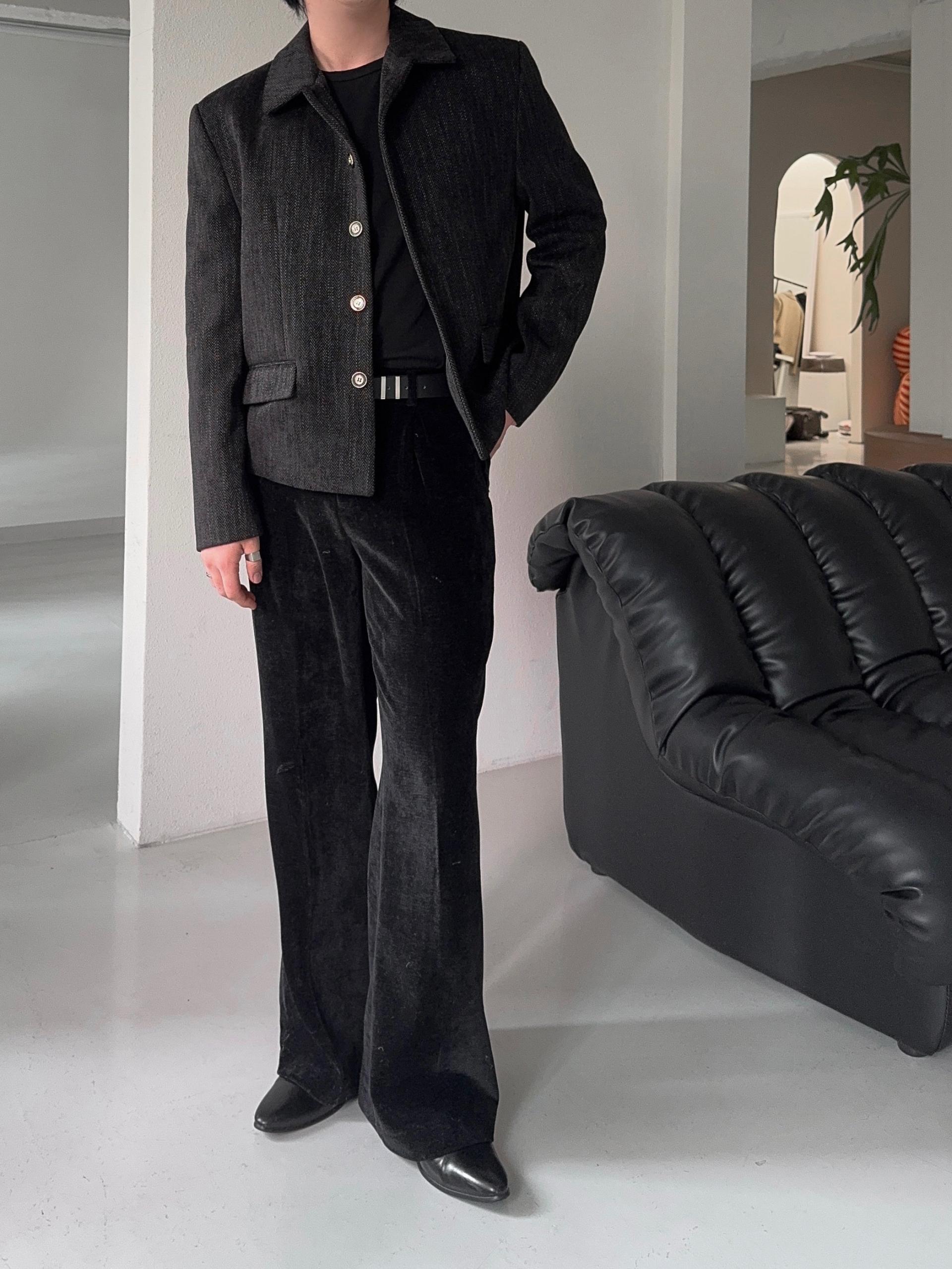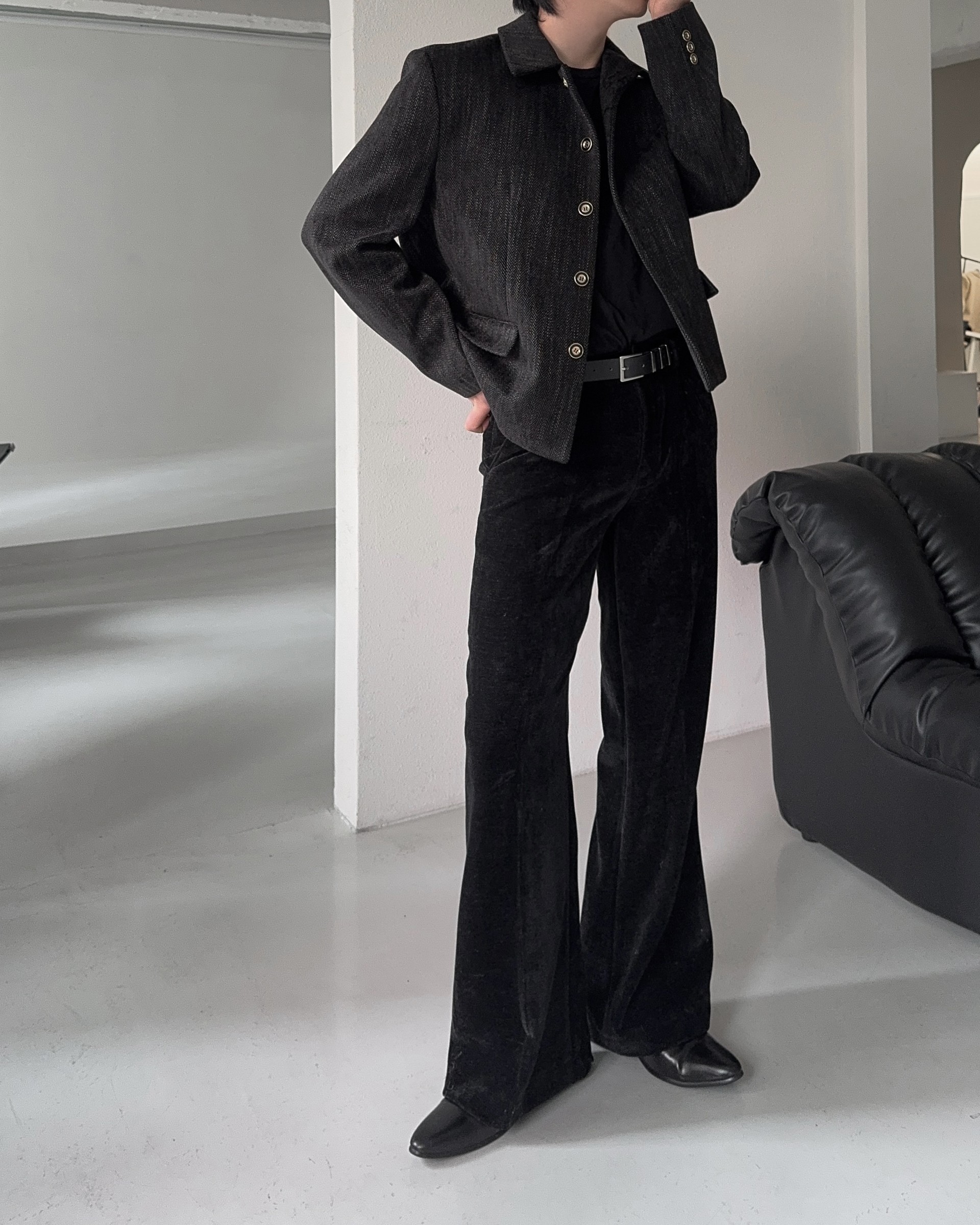 -스탠다드한 핏감과 크롭 기장감으로 트랜디한 실루엣