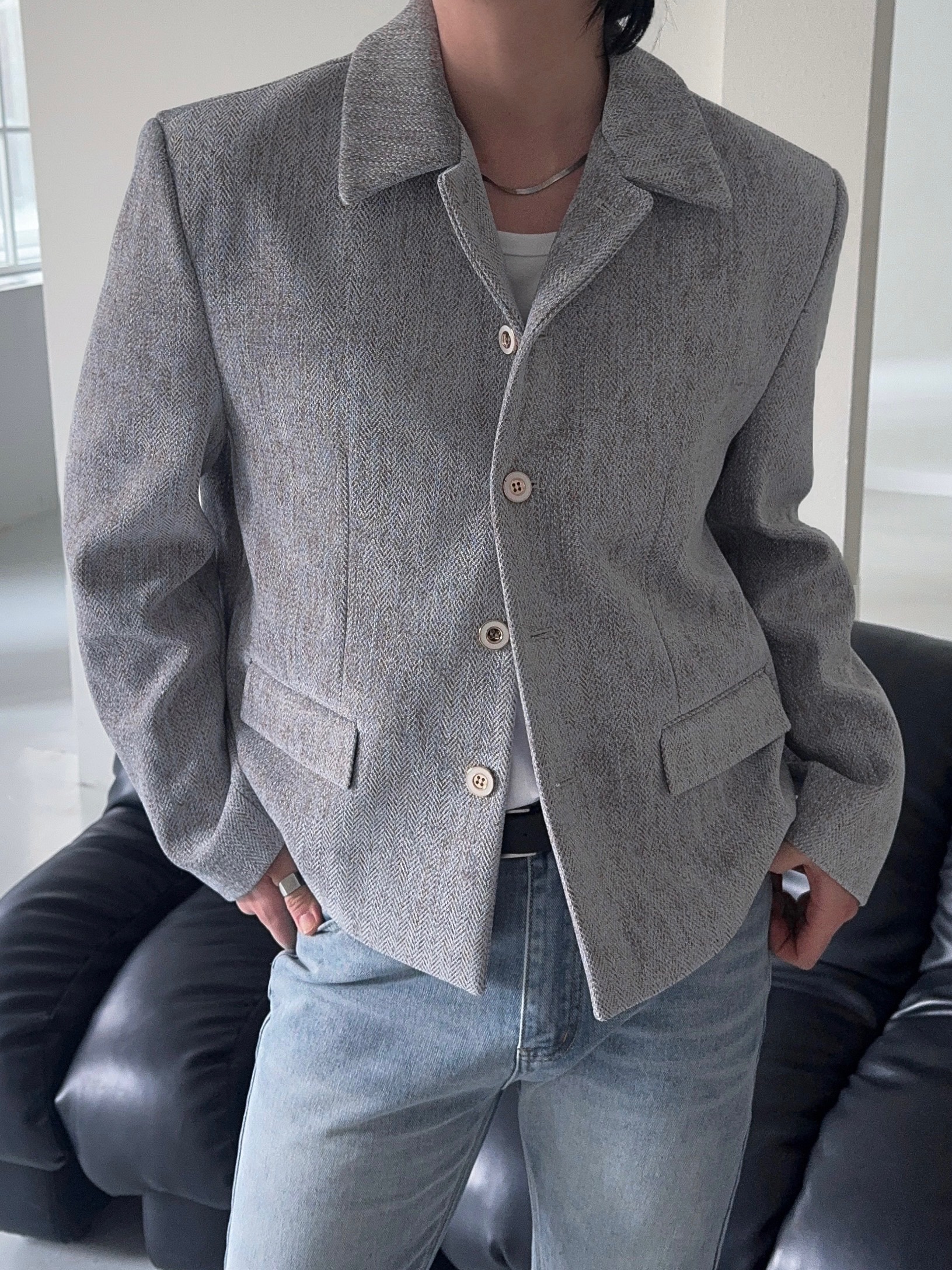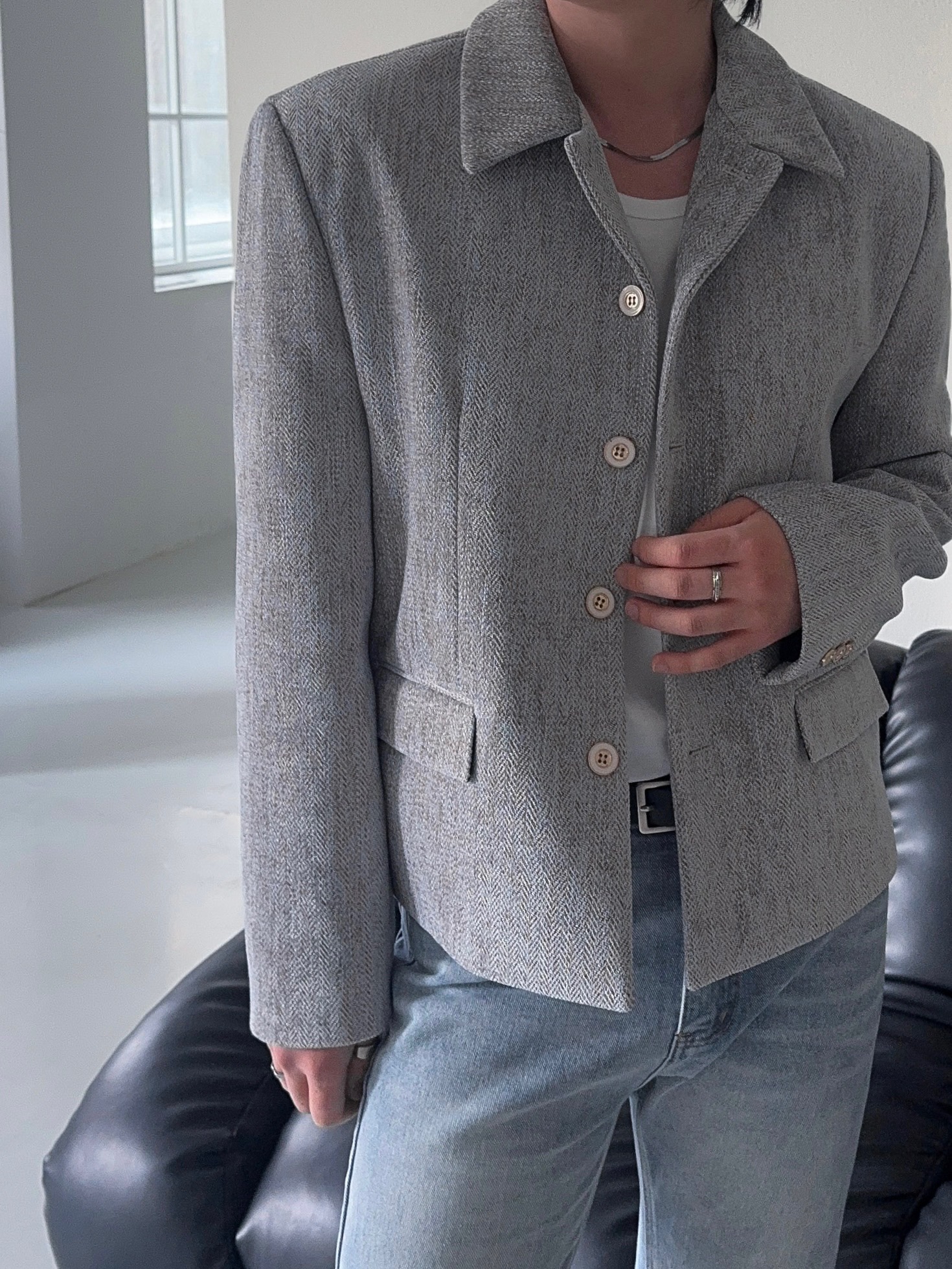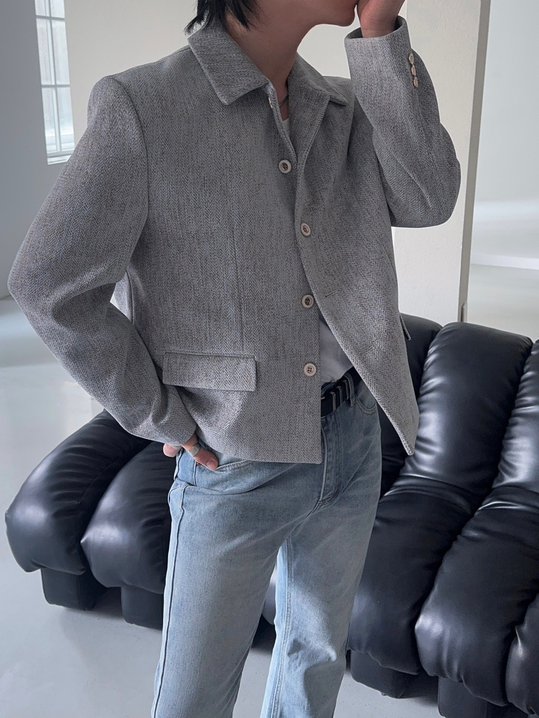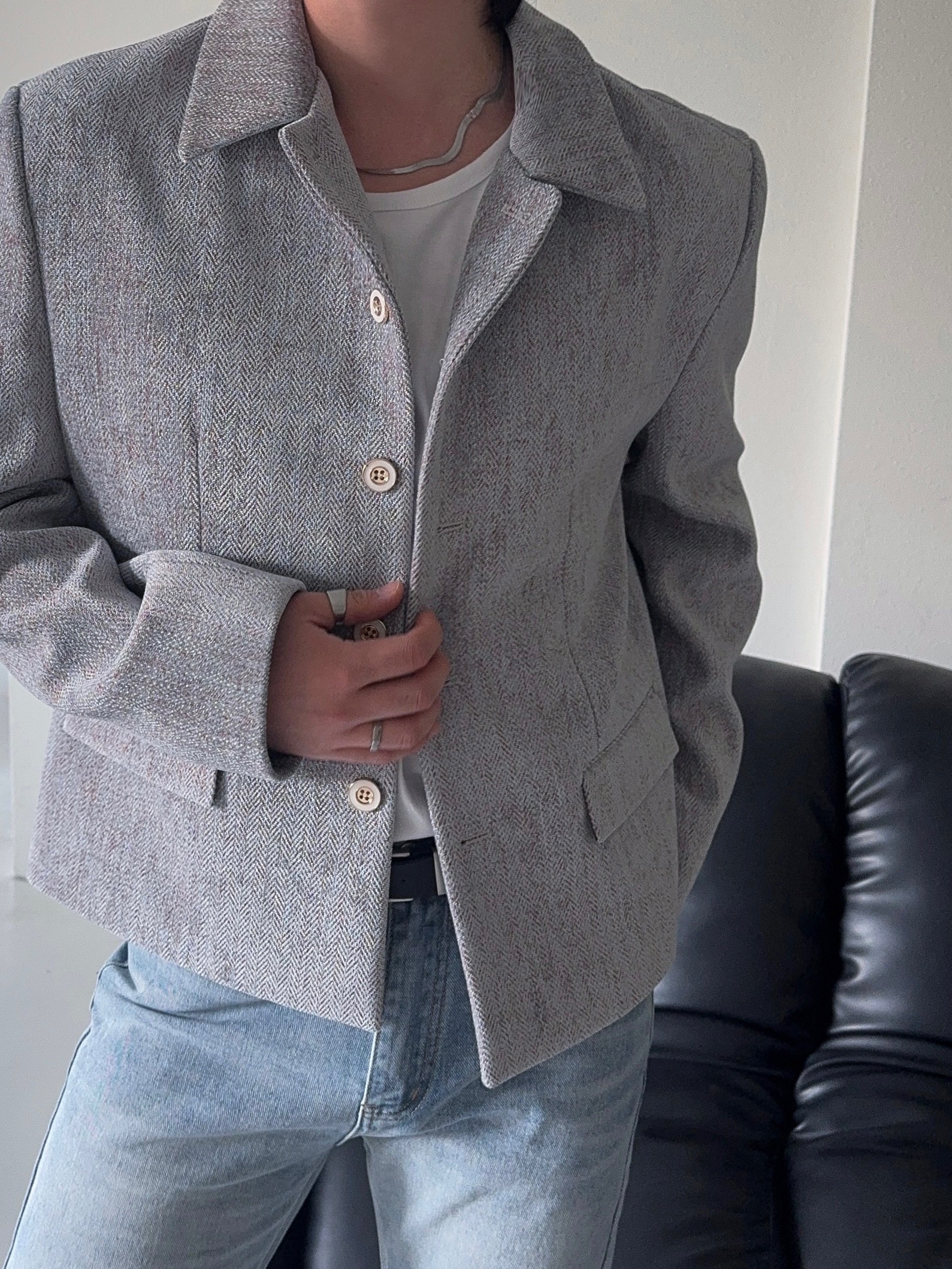 -부드러운 울 트위드 소재로 제작된 크롭 자켓