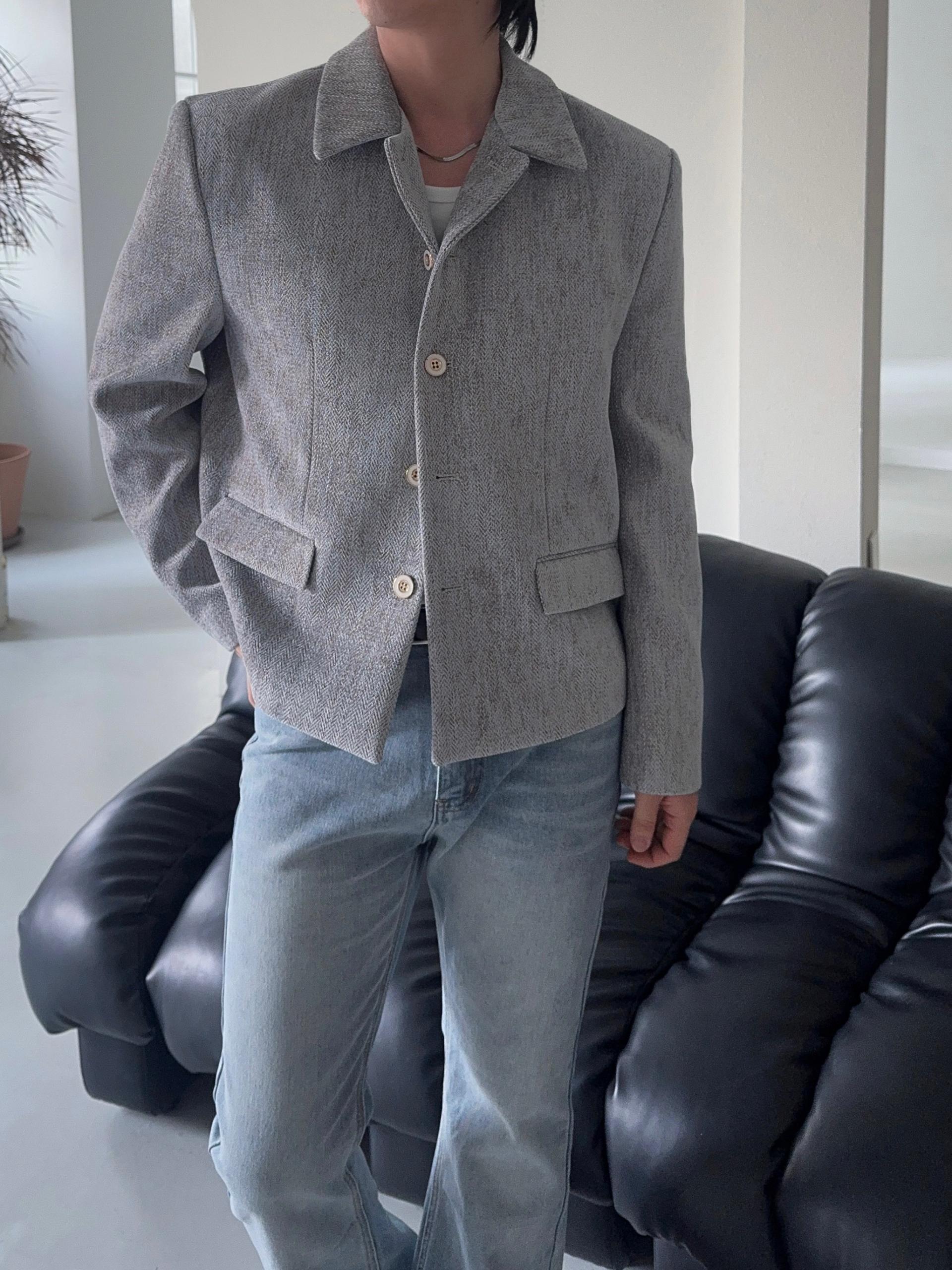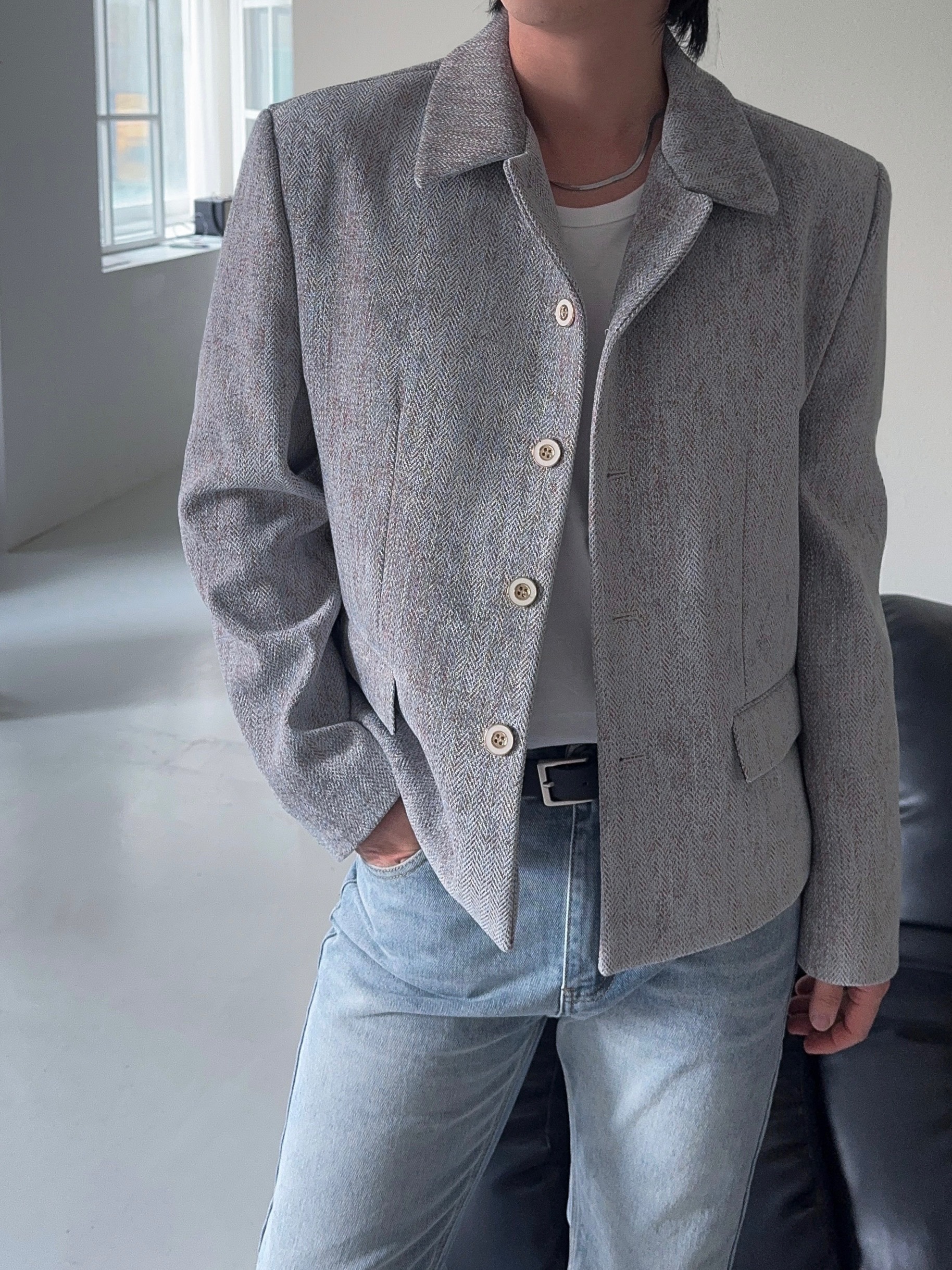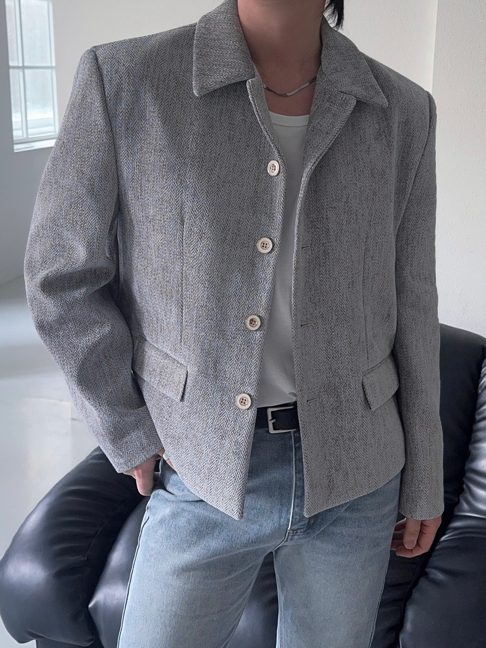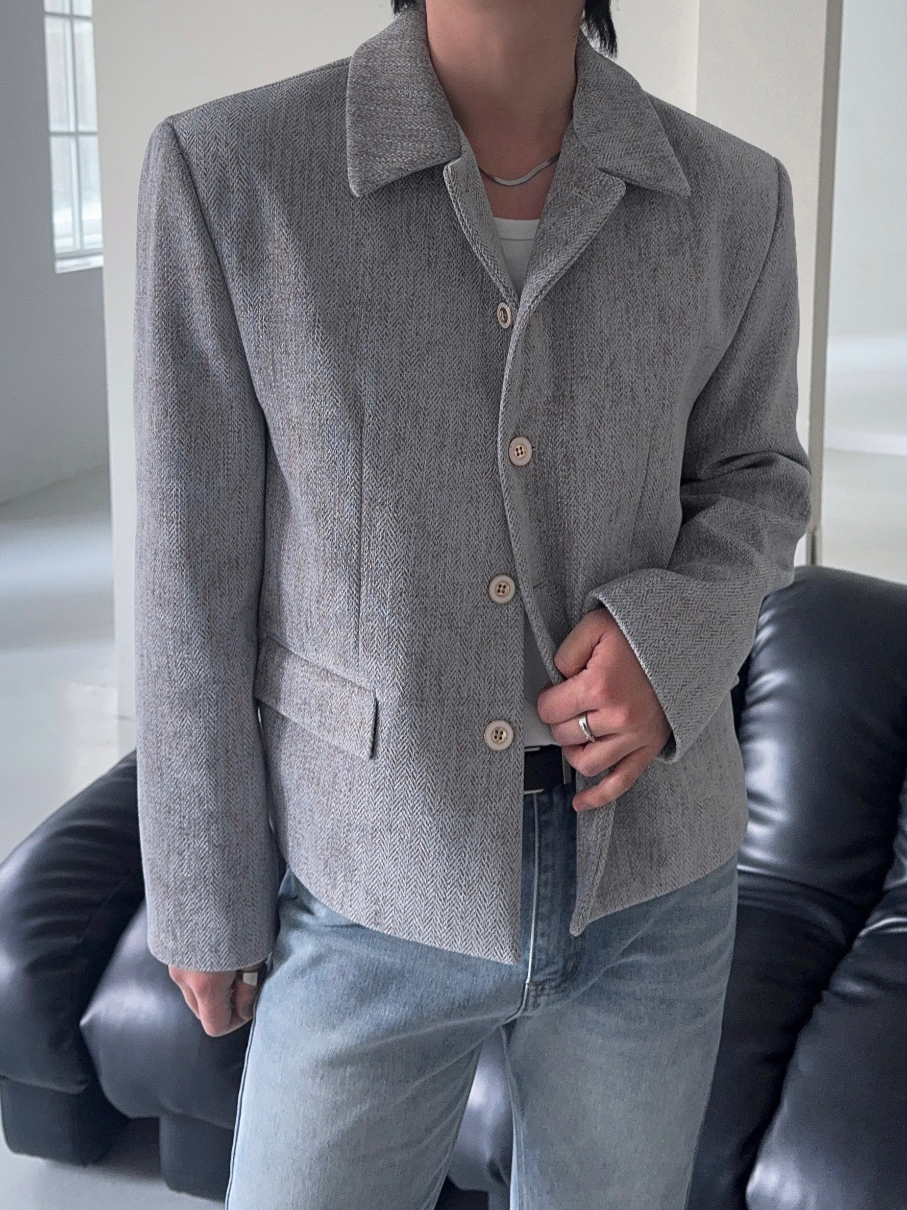 -부드러운 울 트위드 소재로 제작된 크롭 자켓