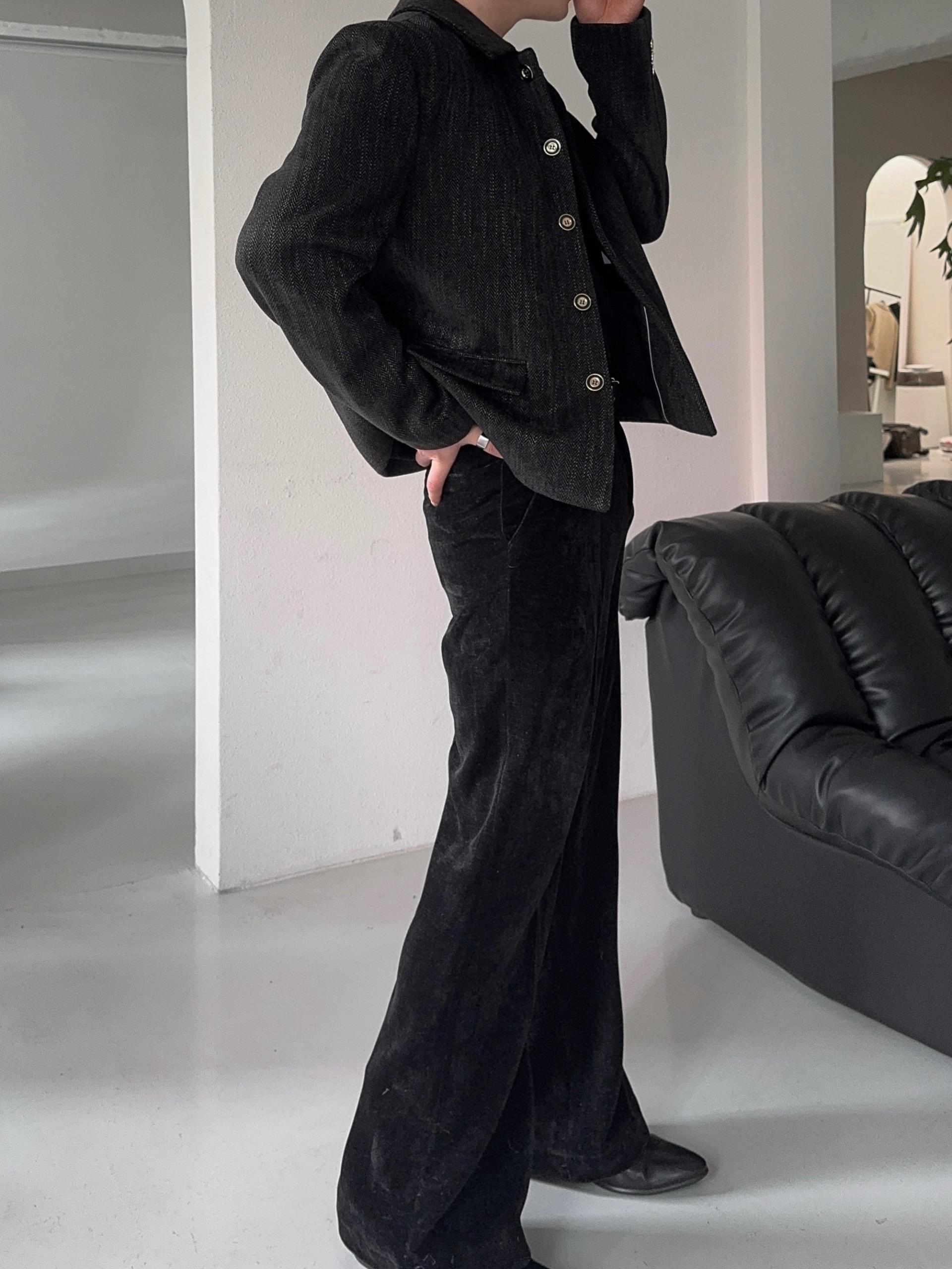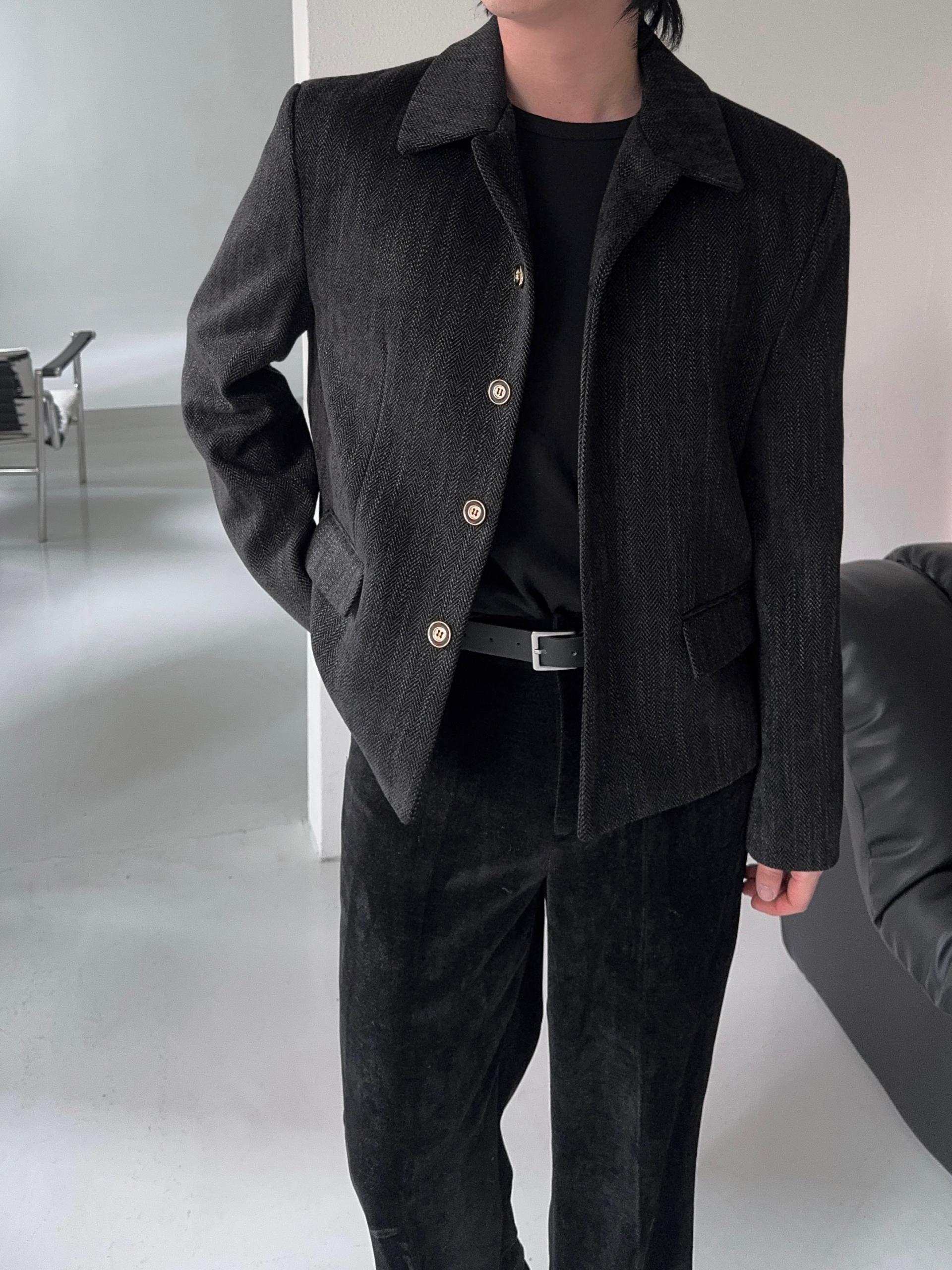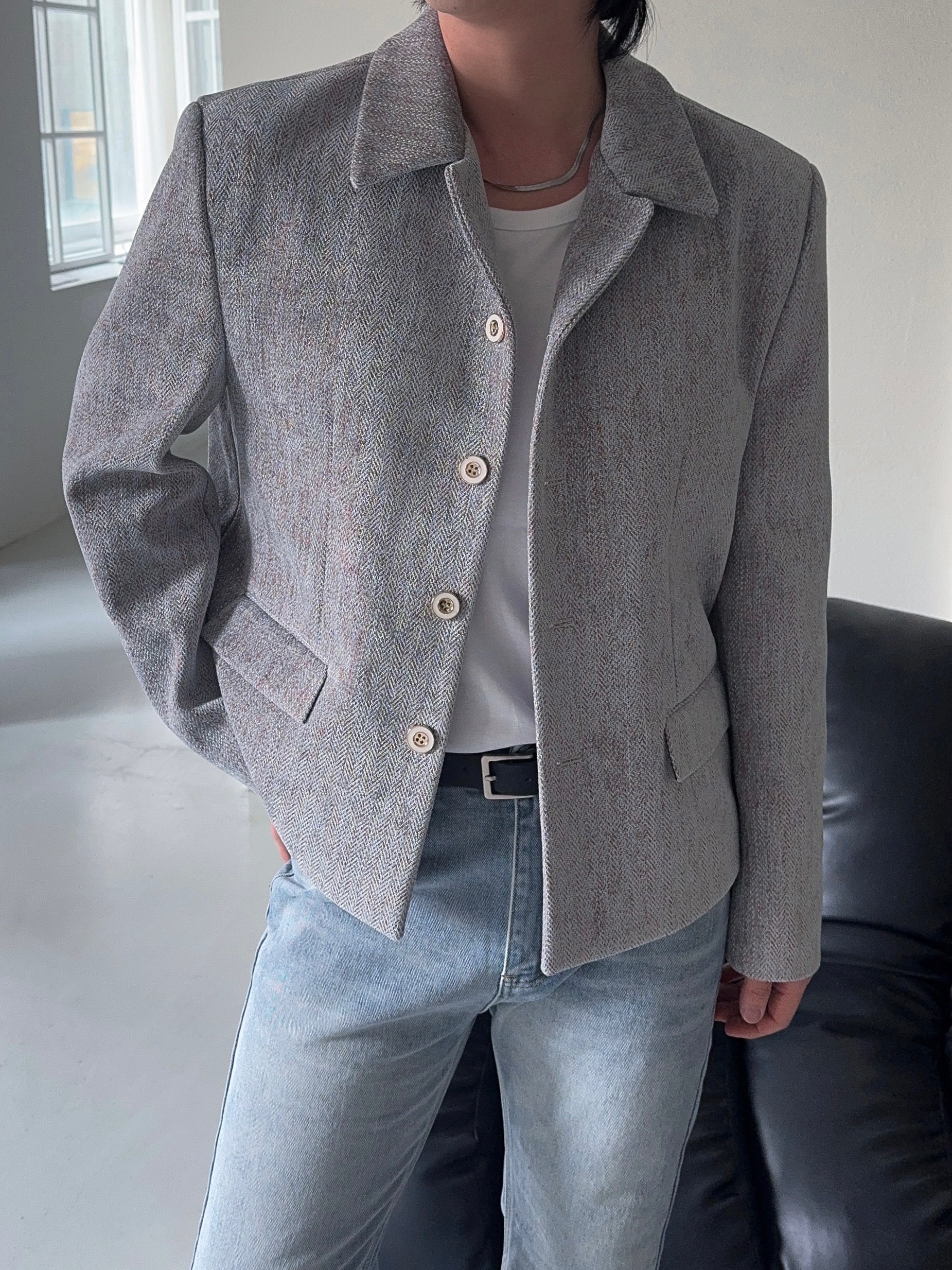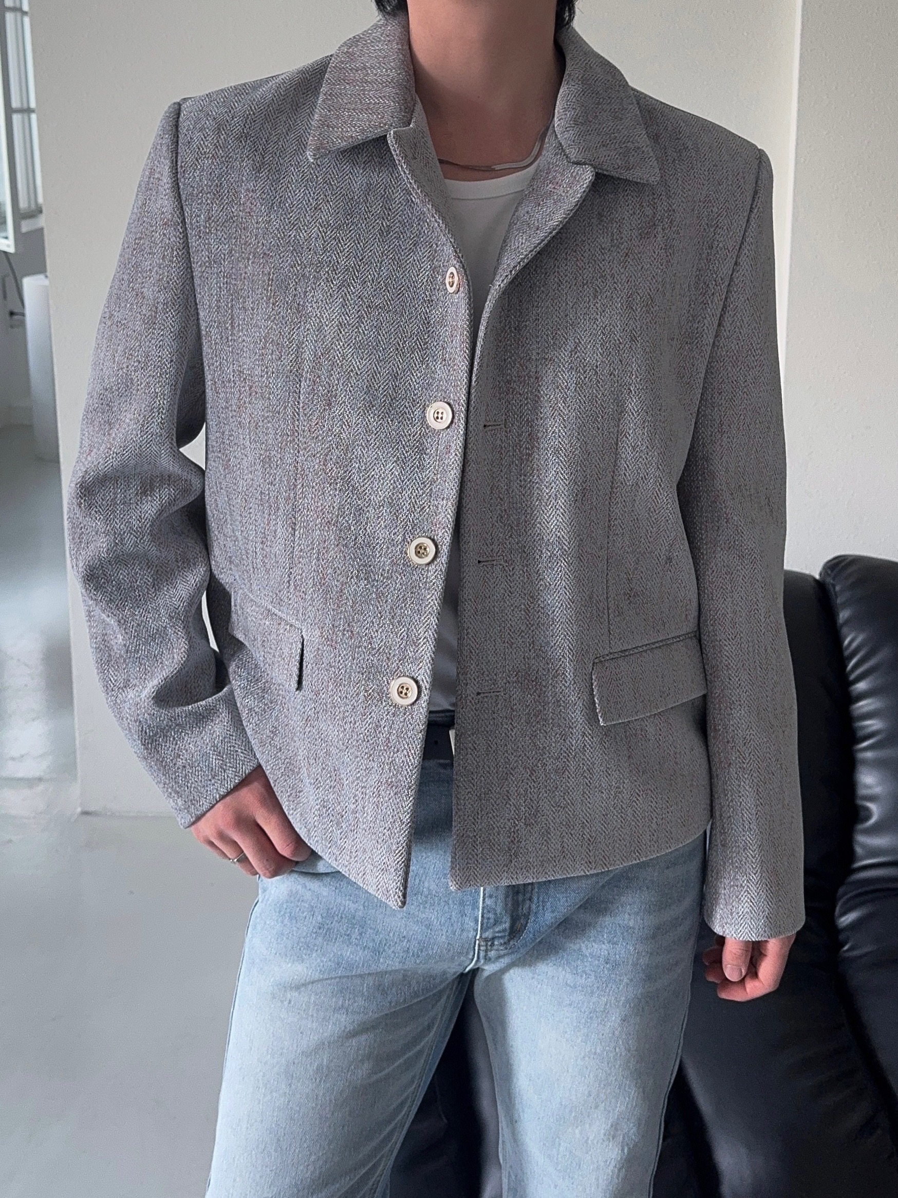 -부드러운 울 트위드 소재로 제작된 크롭 자켓