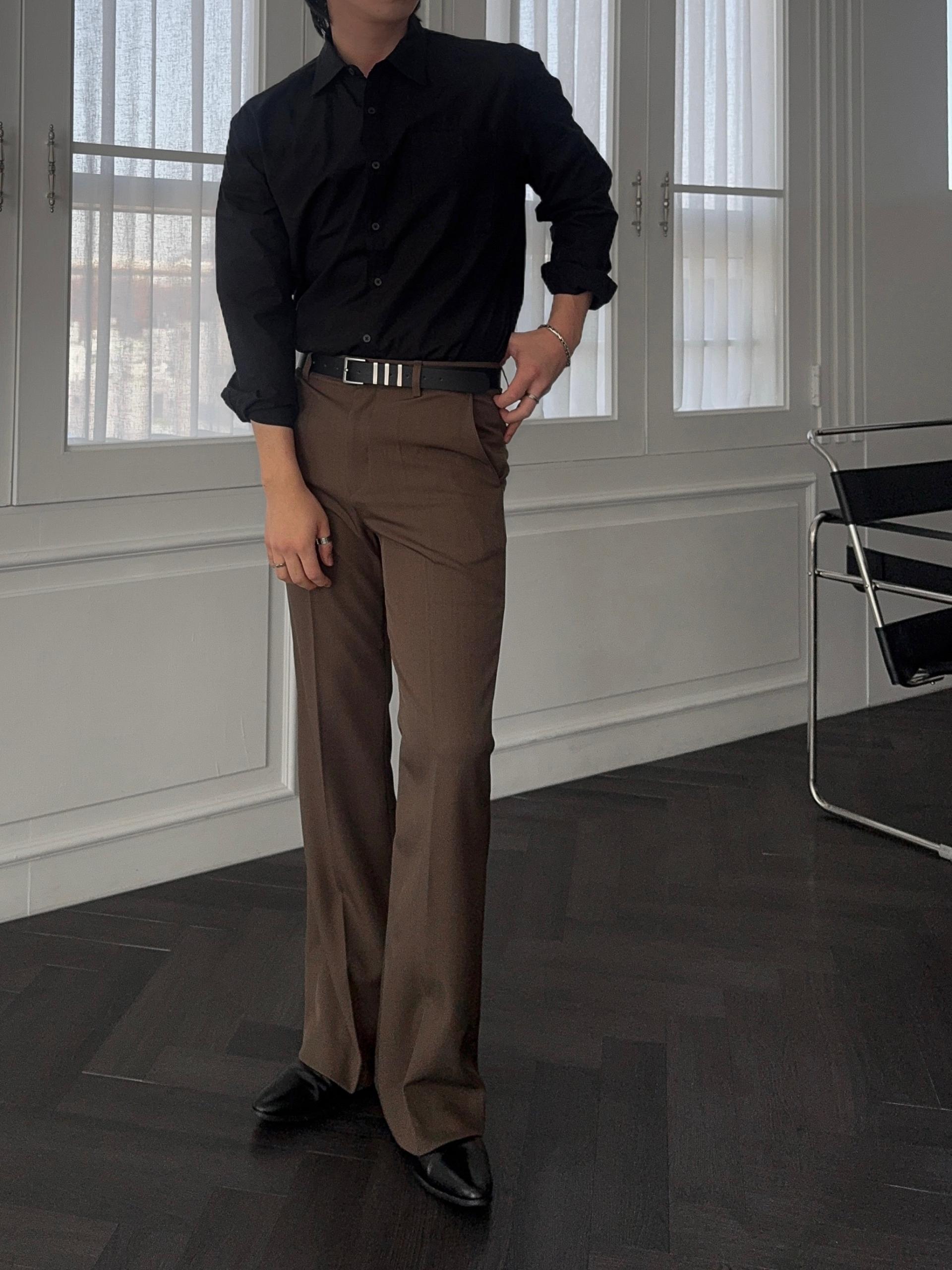 -텐슬감이 좋은 소재로 제작된 플레어 슬랙스