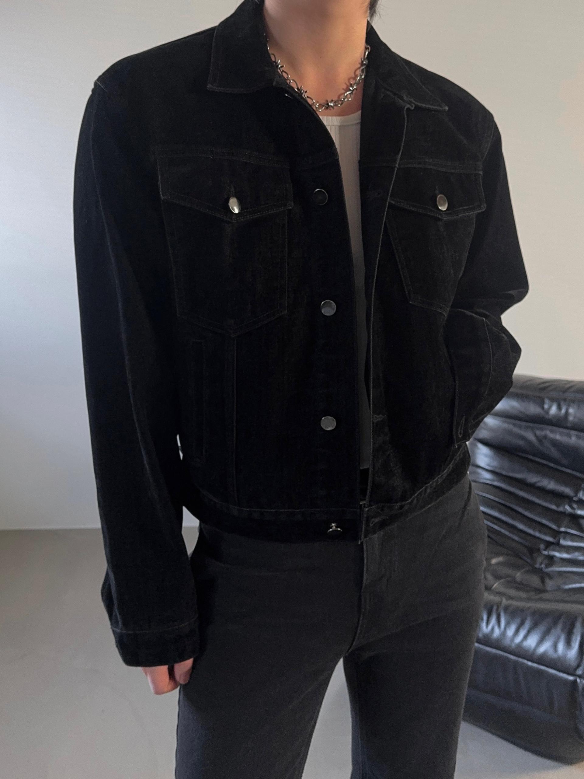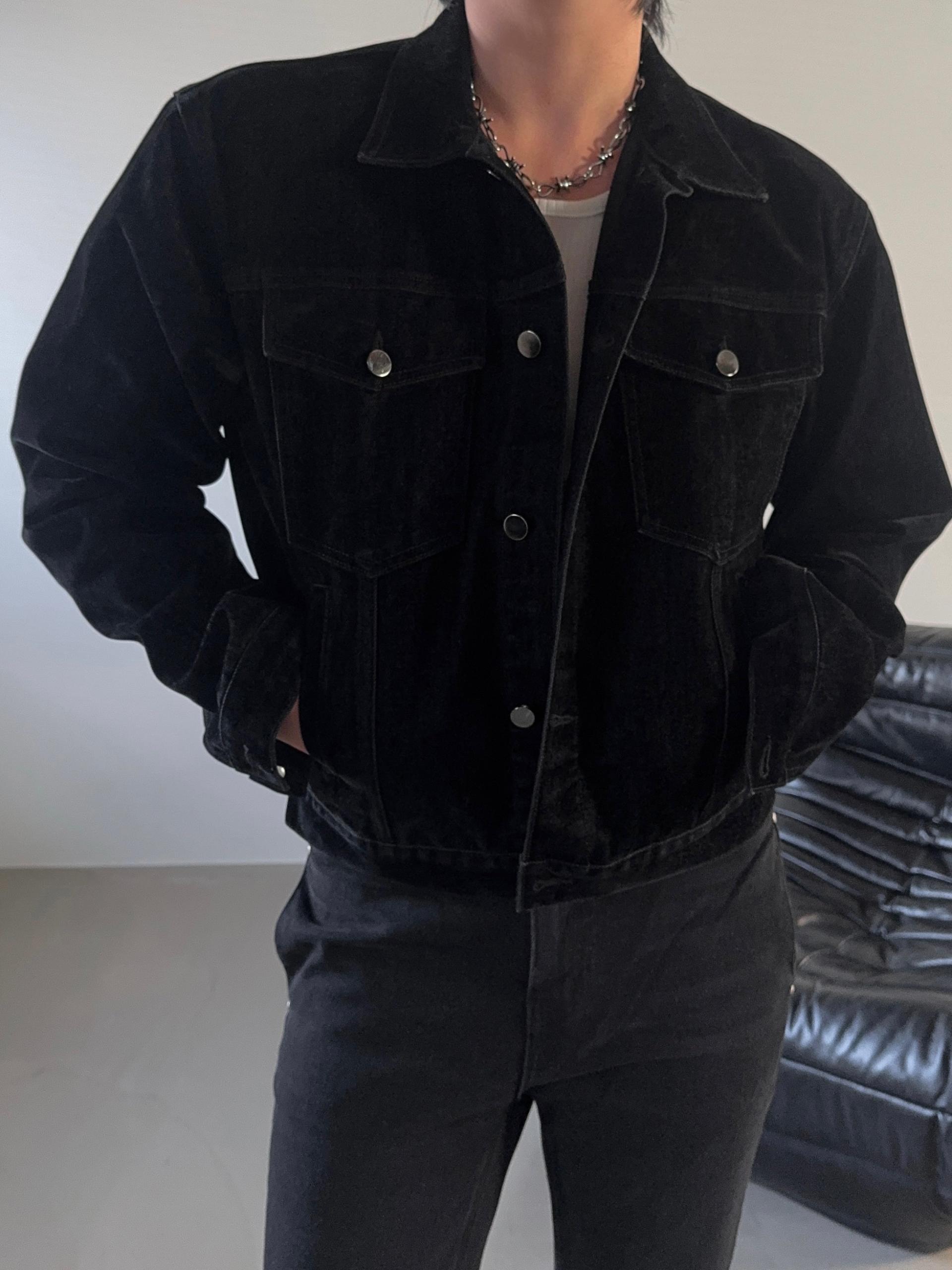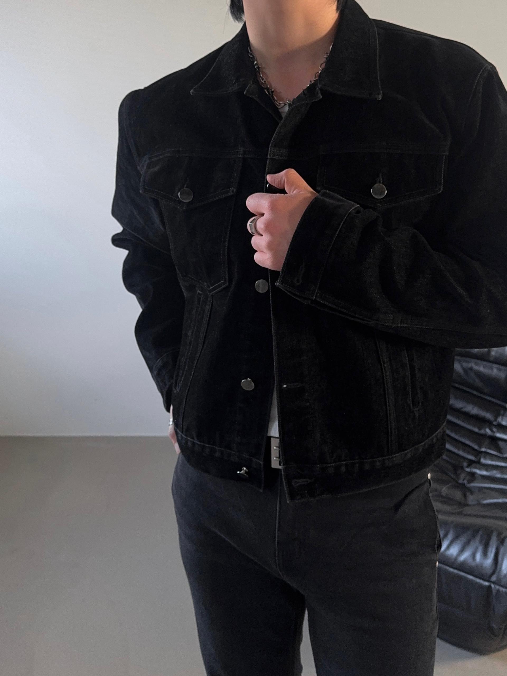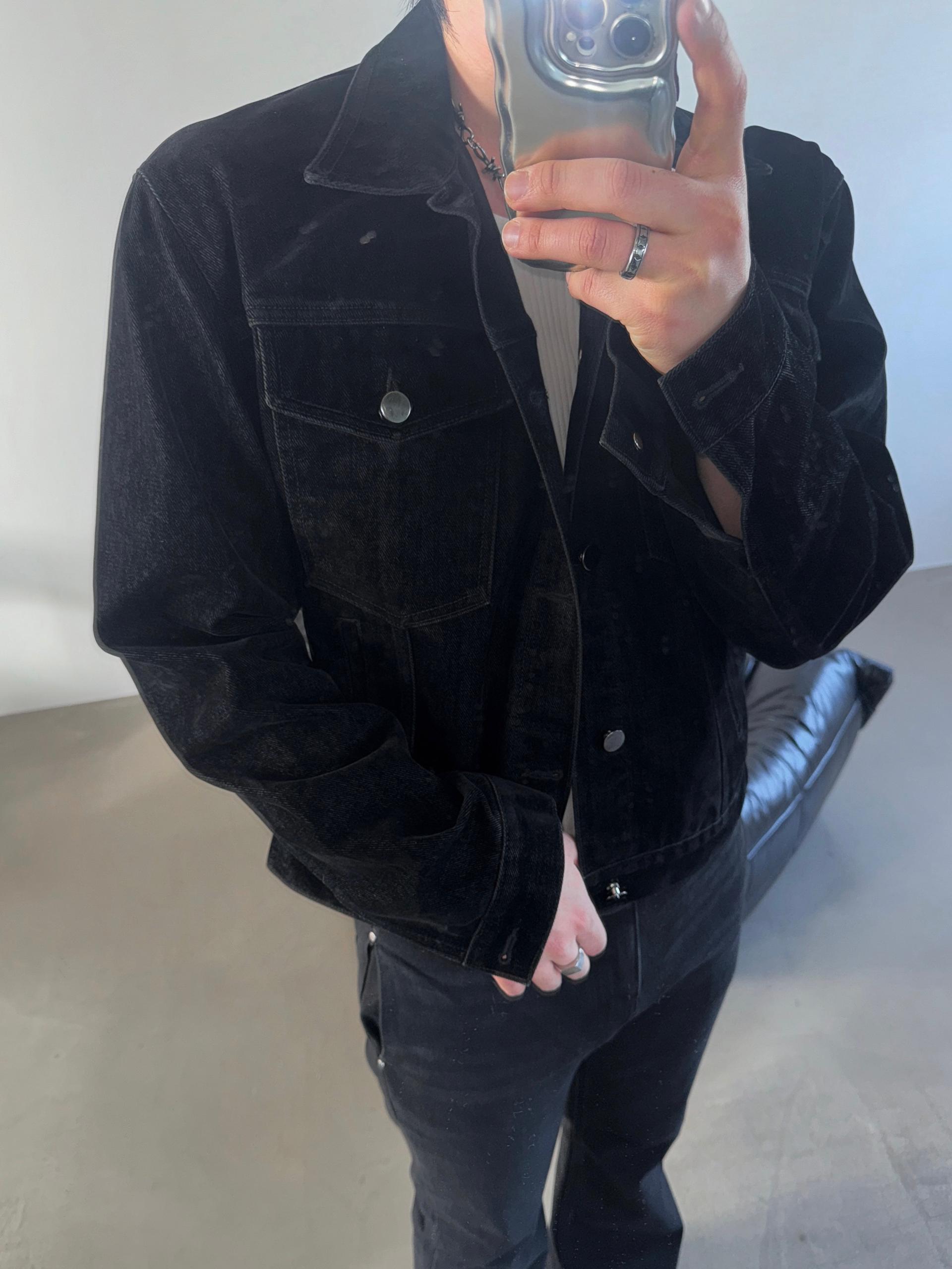 -고급스러운 벨벳 텍스처로 제작된 데님 자켓