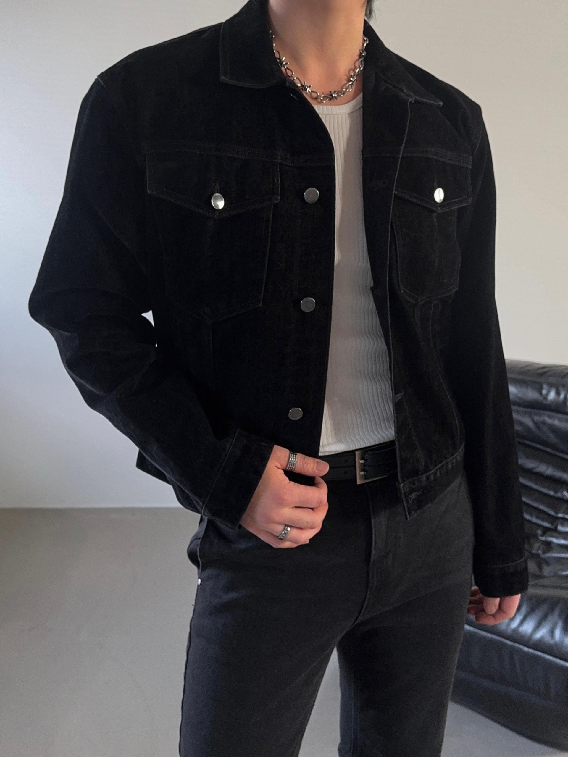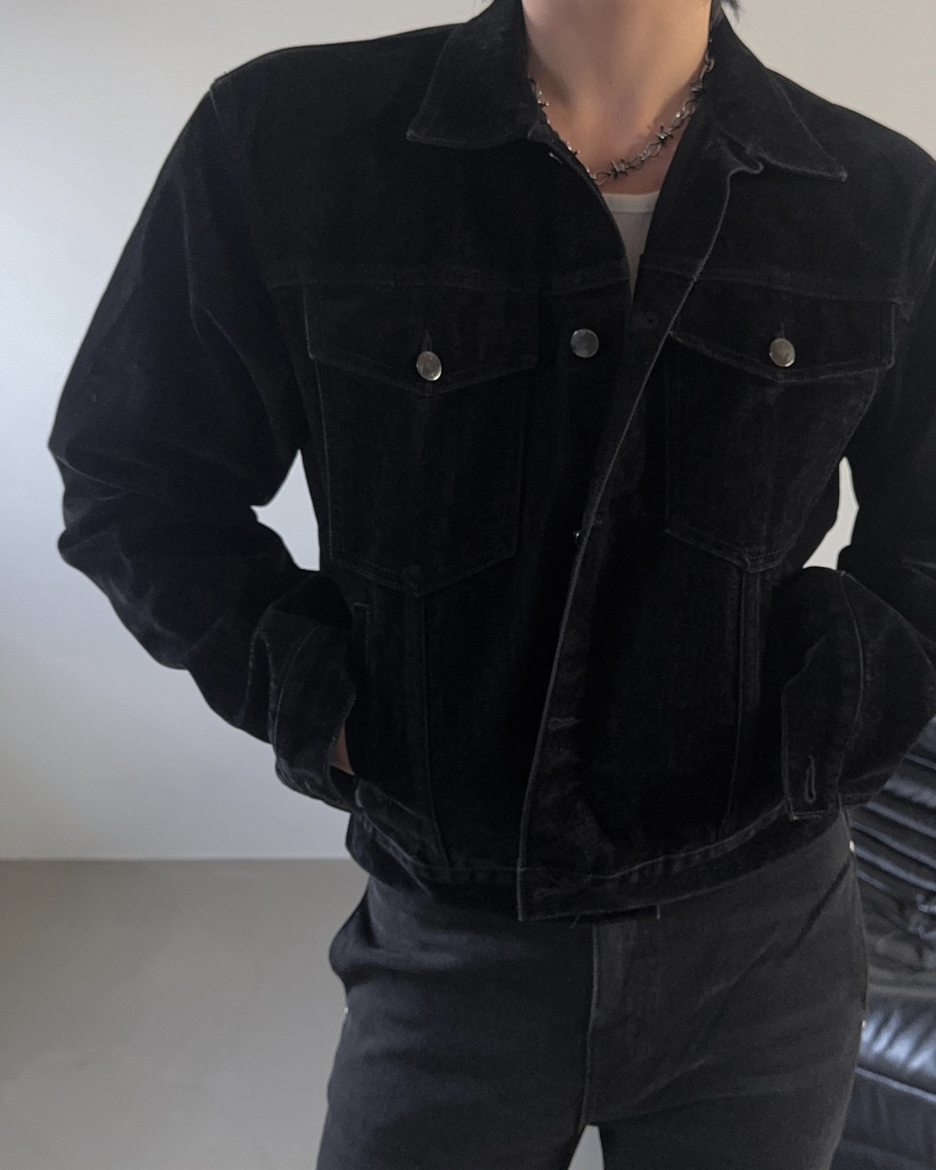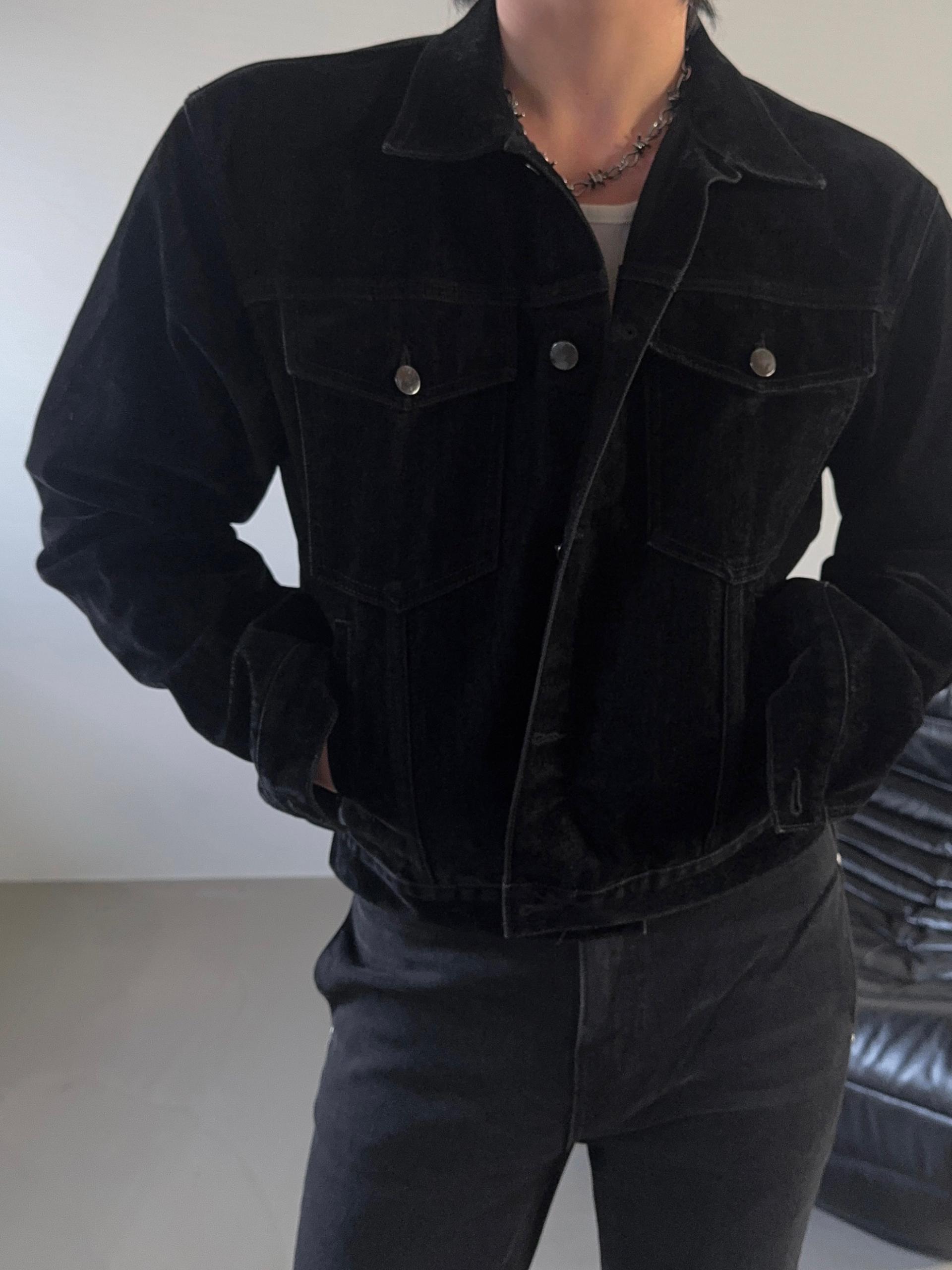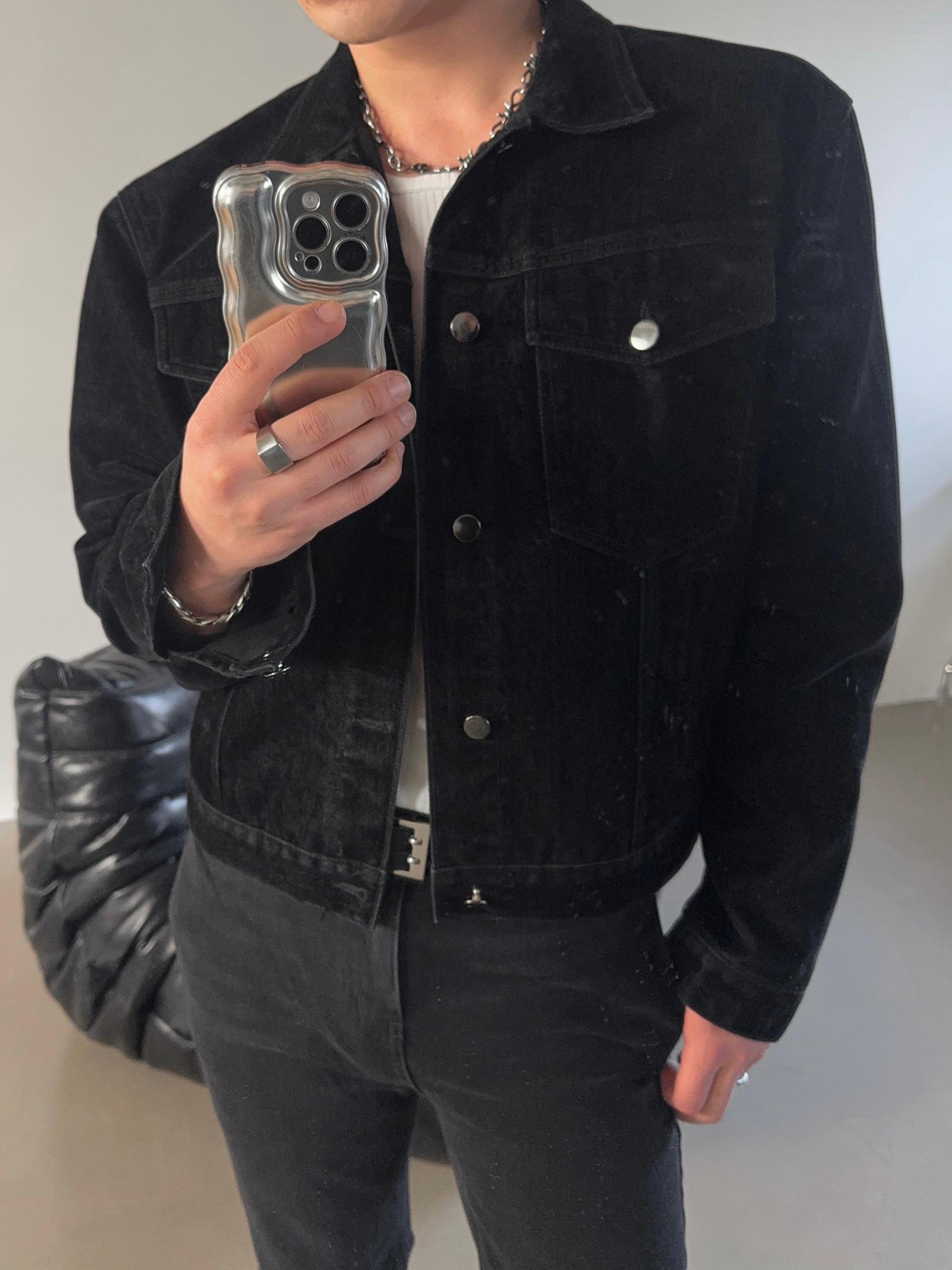 -고급스러운 벨벳 텍스처로 제작된 데님 자켓