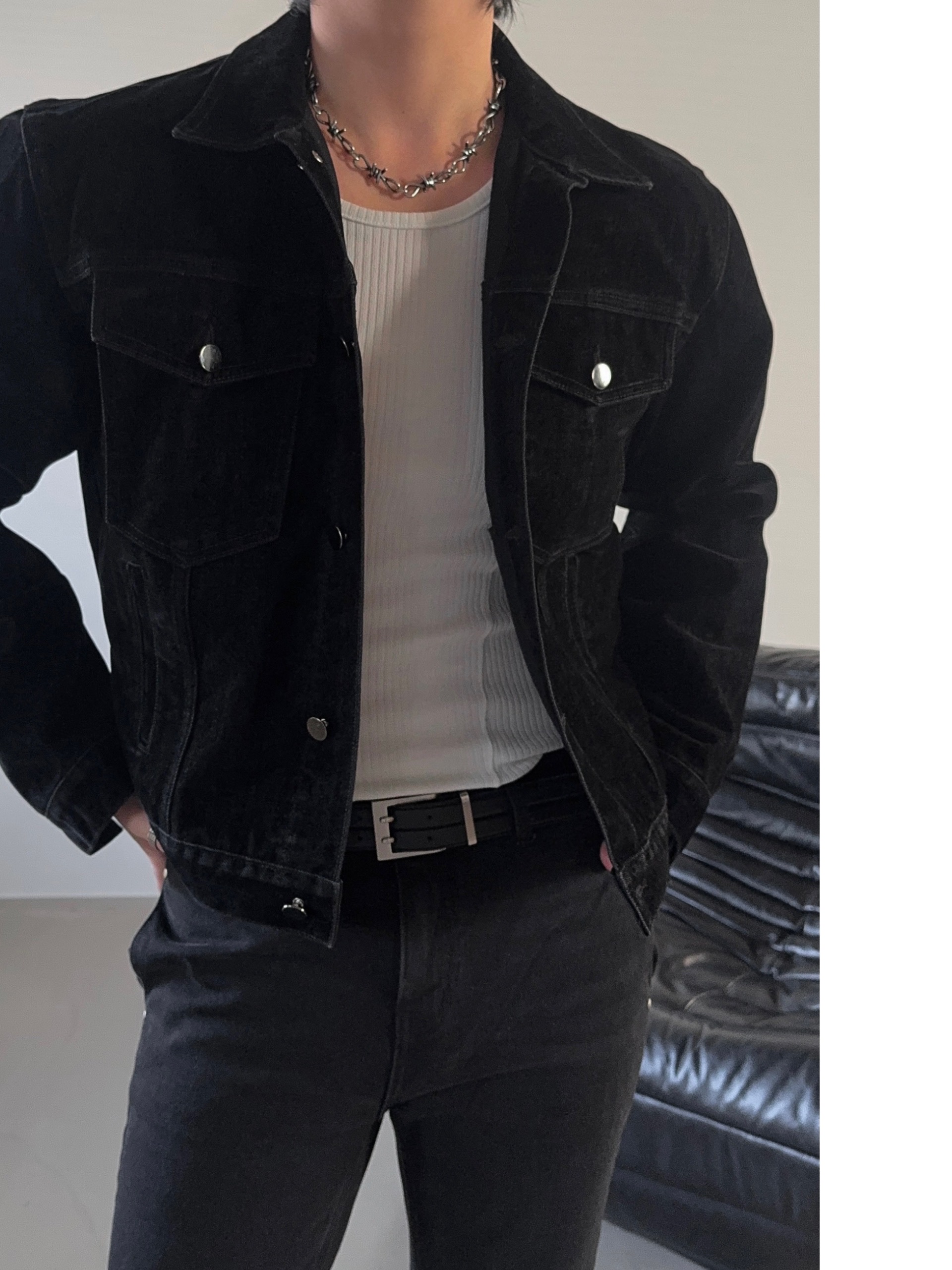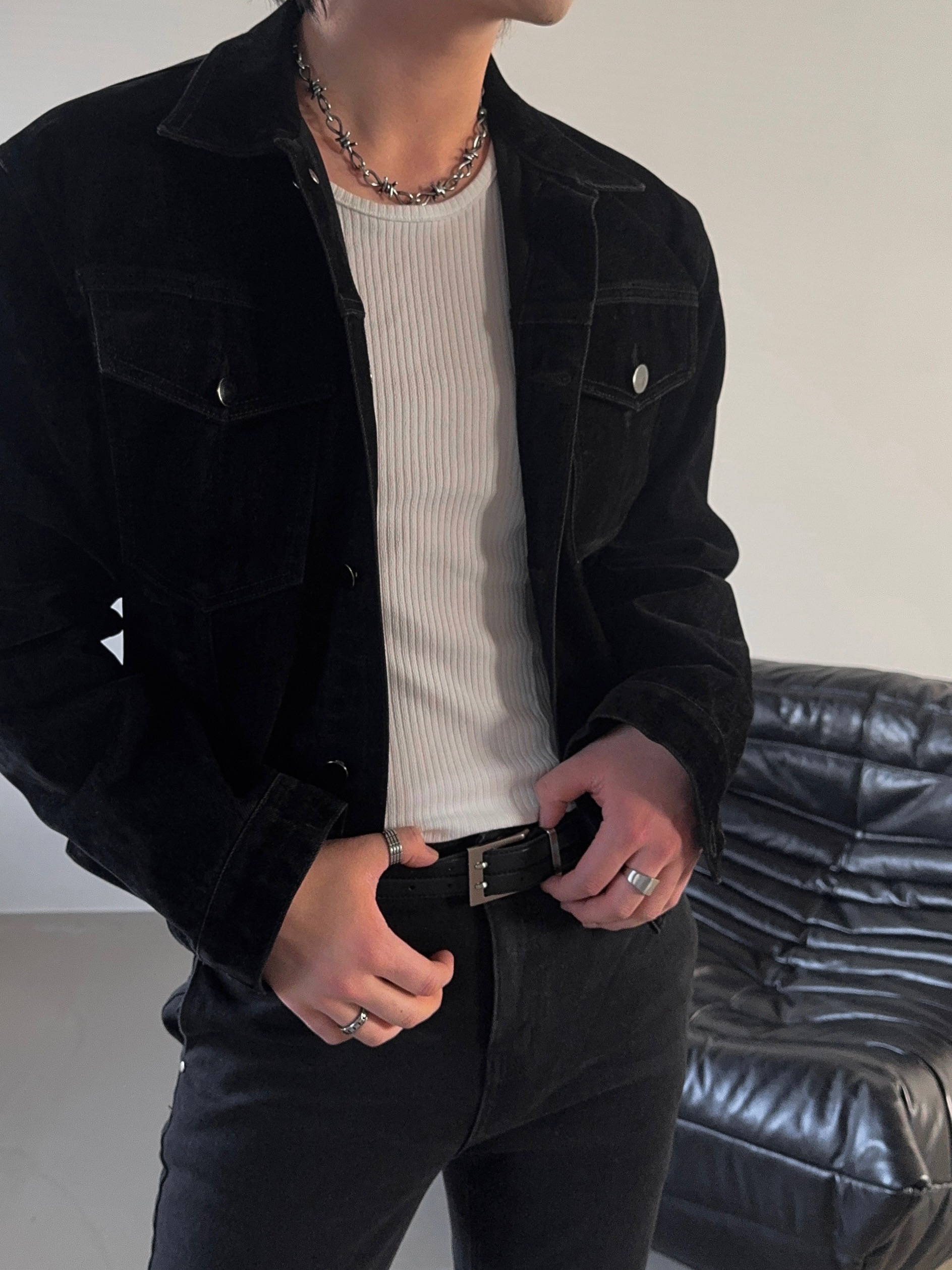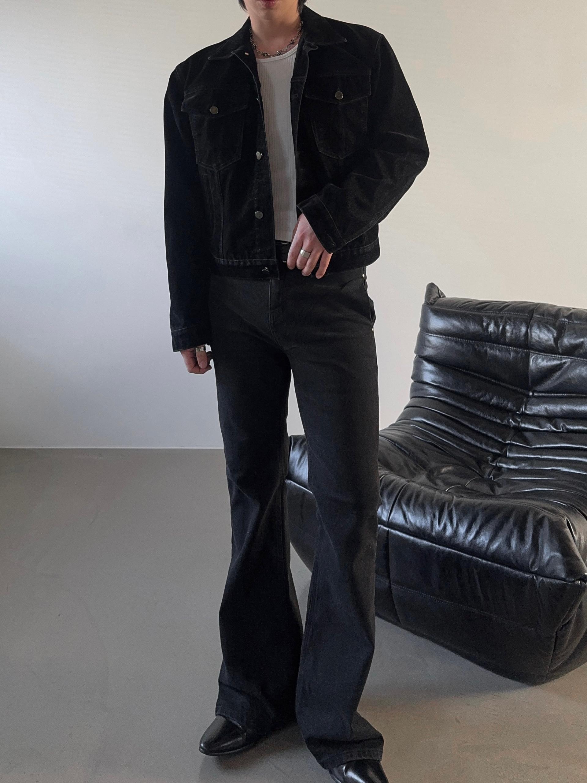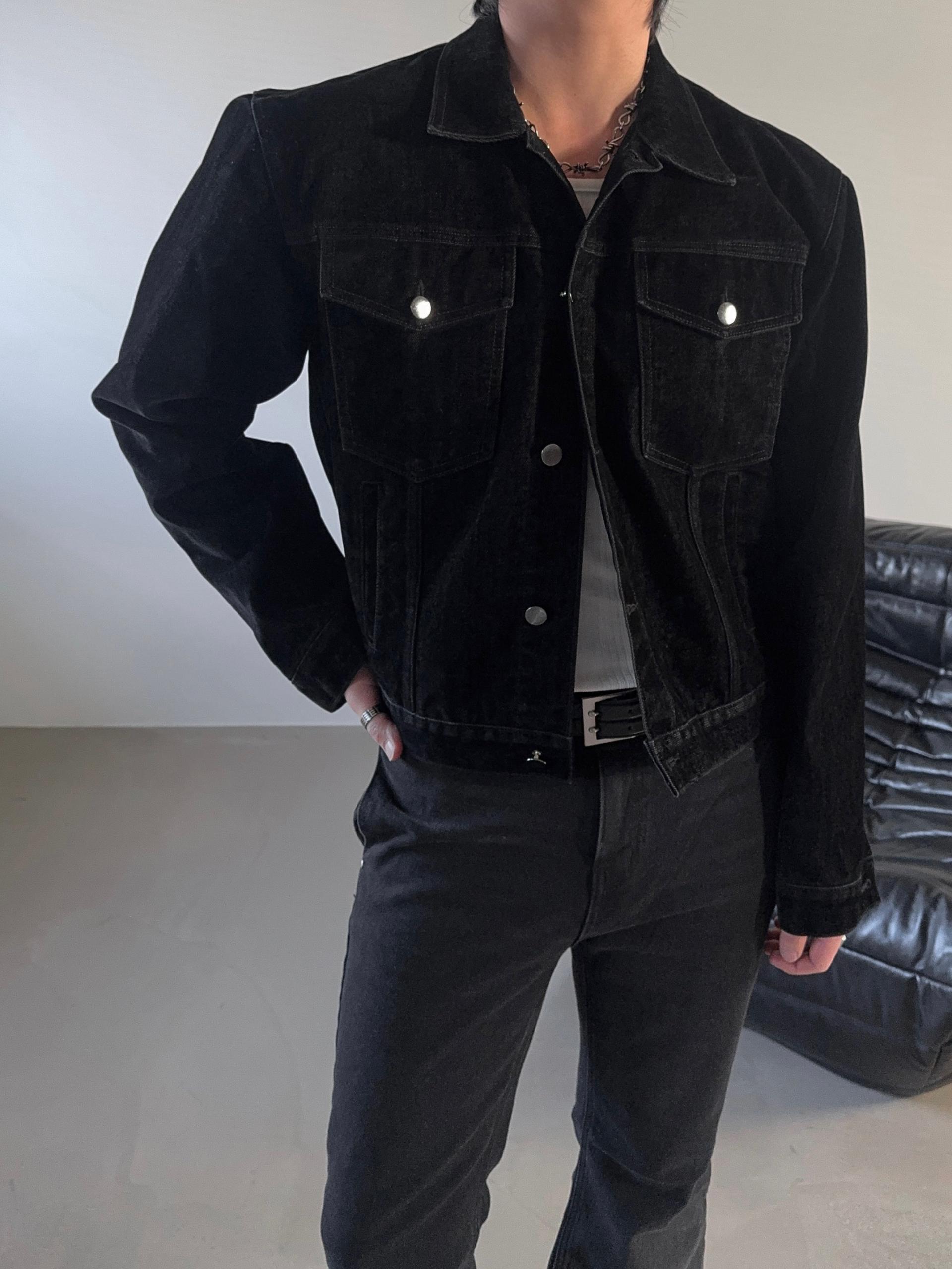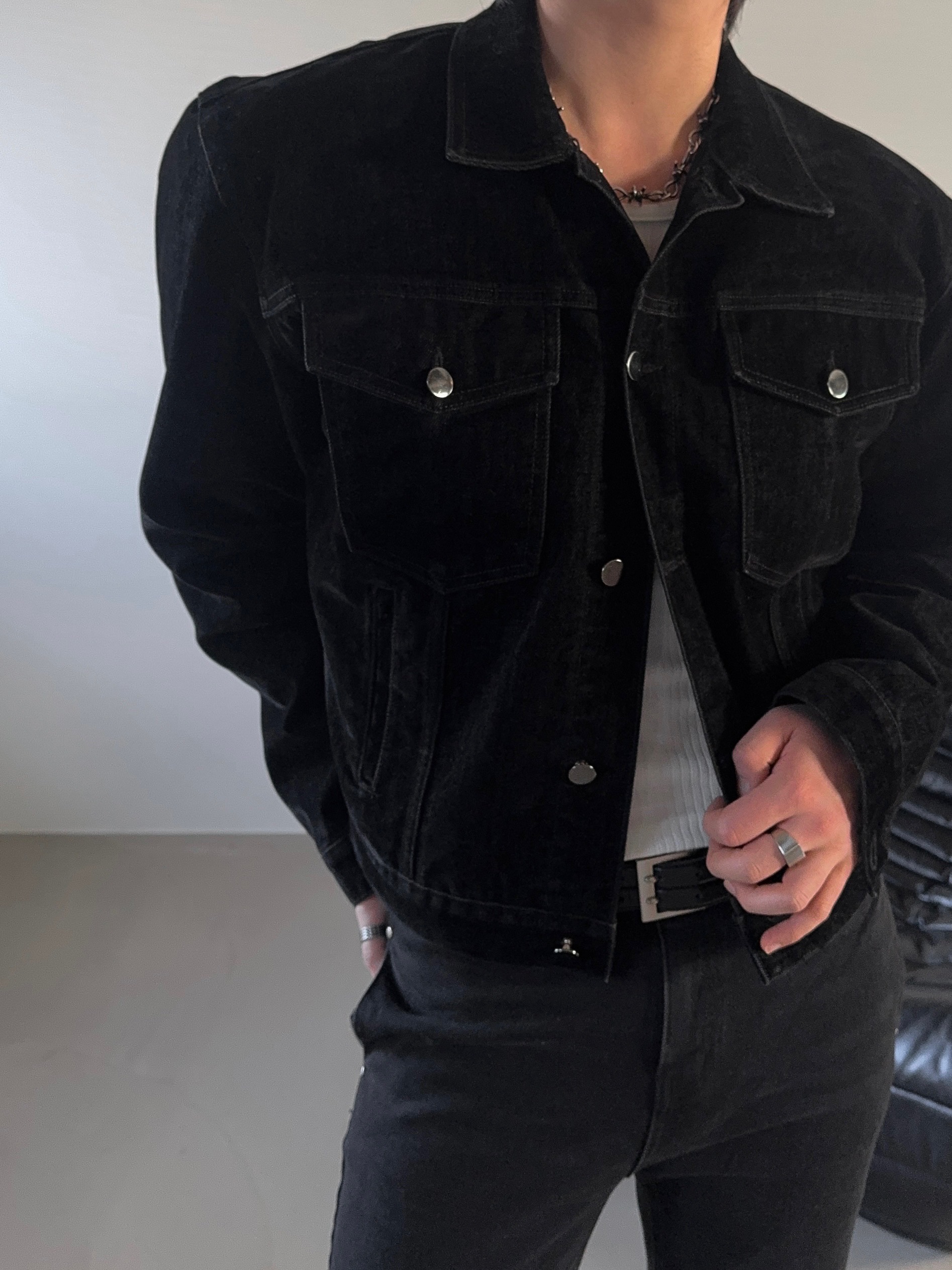 -고급스러운 벨벳 텍스처로 제작된 데님 자켓
