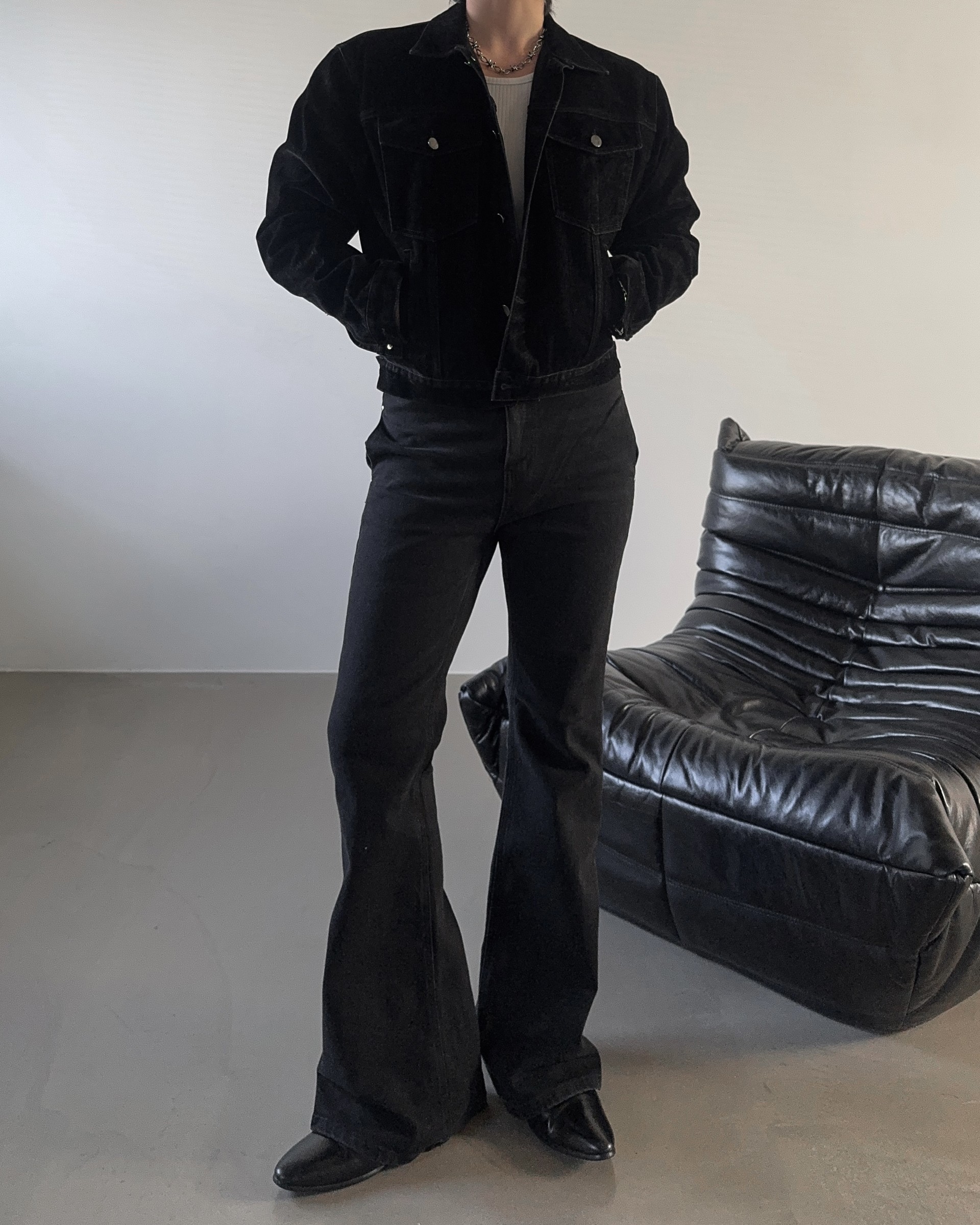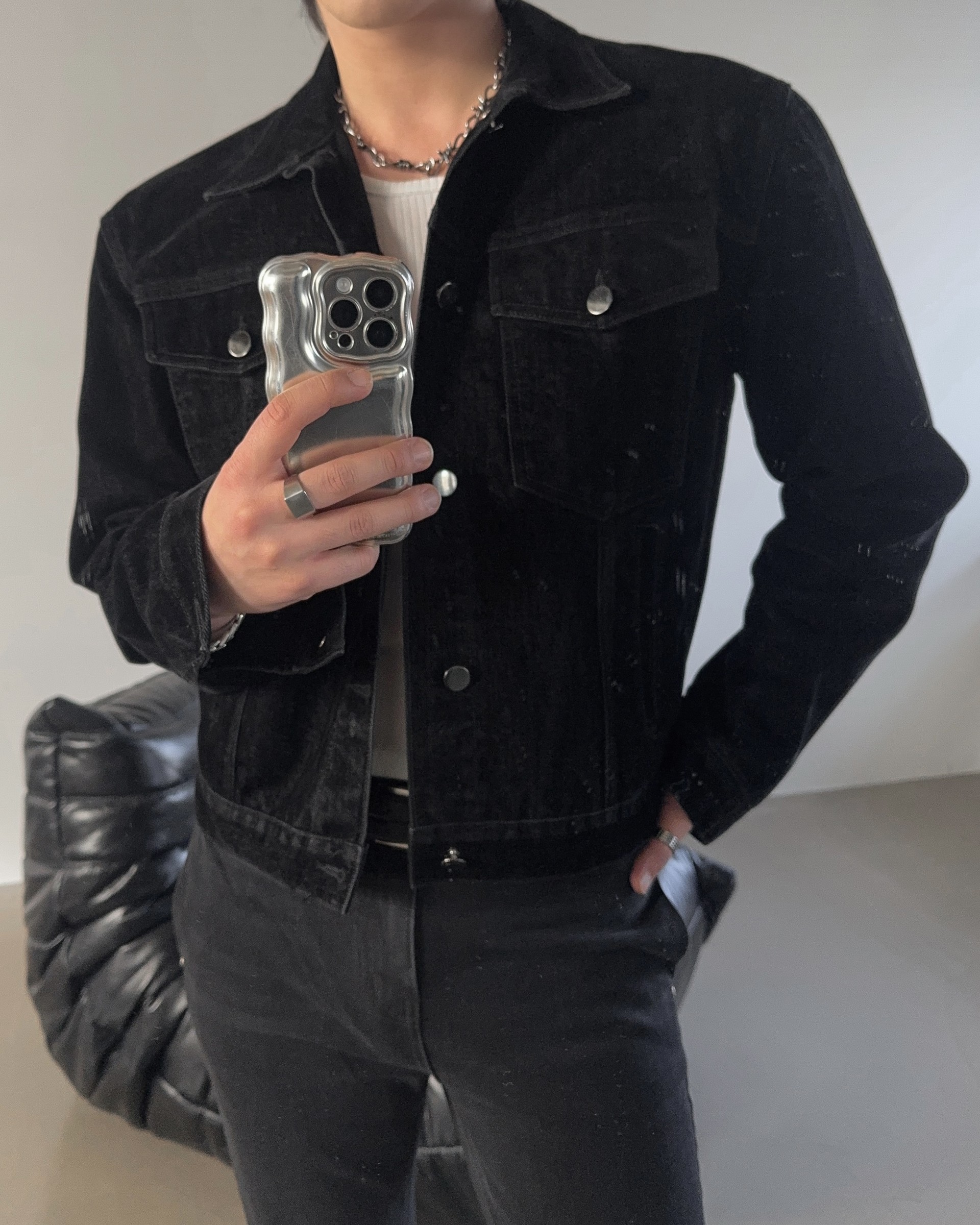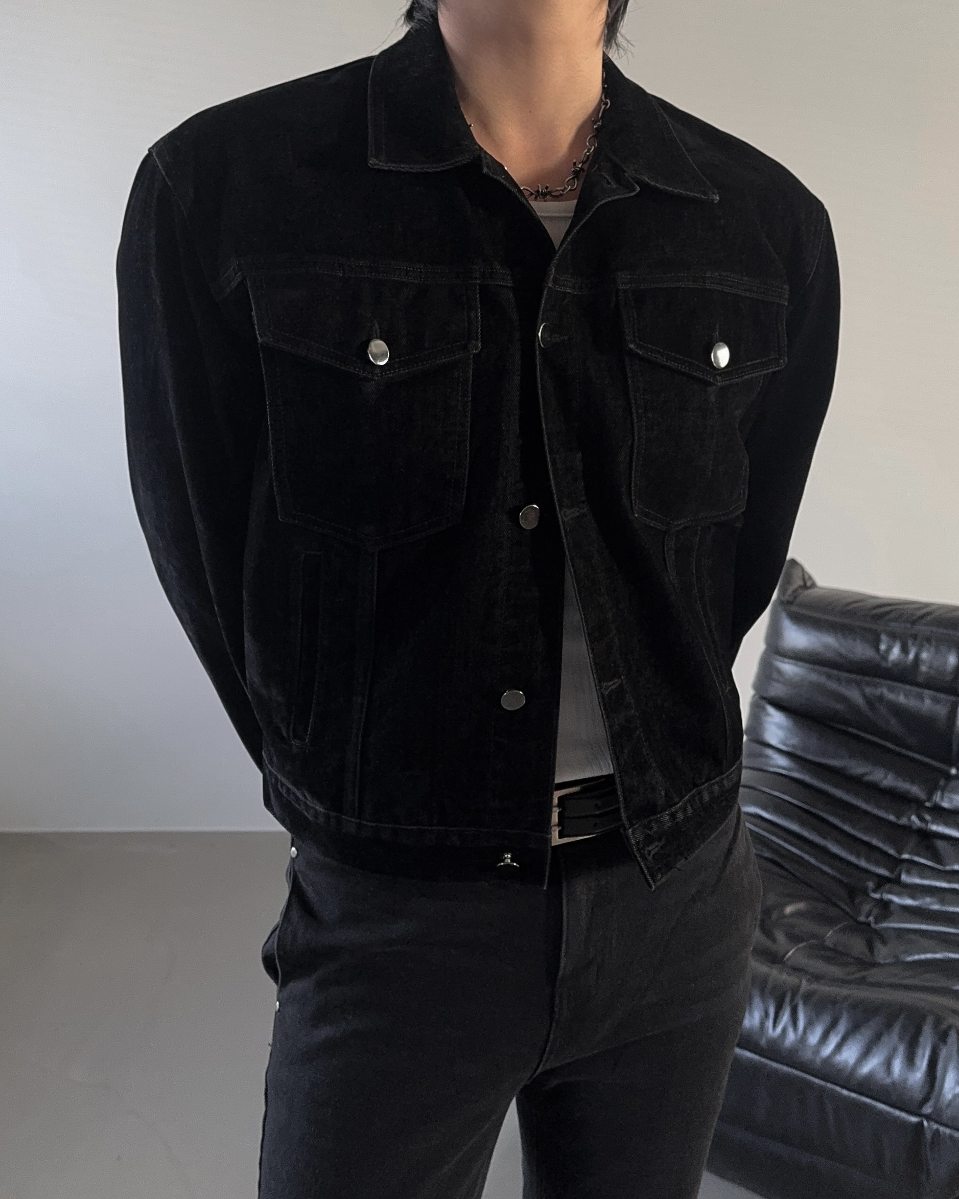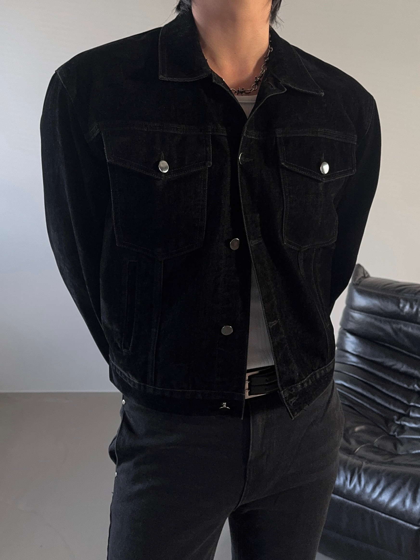 -고급스러운 벨벳 텍스처로 제작된 데님 자켓