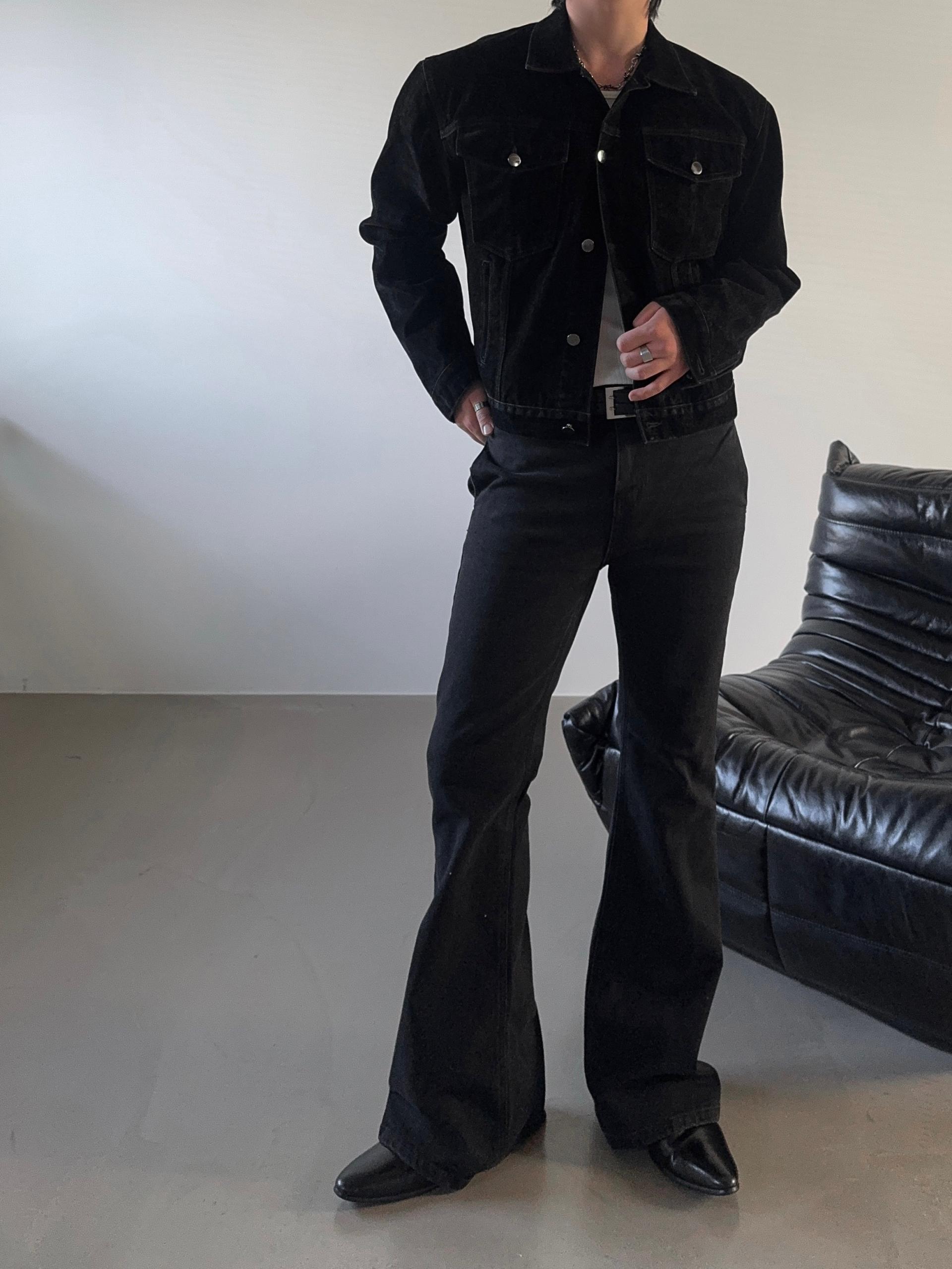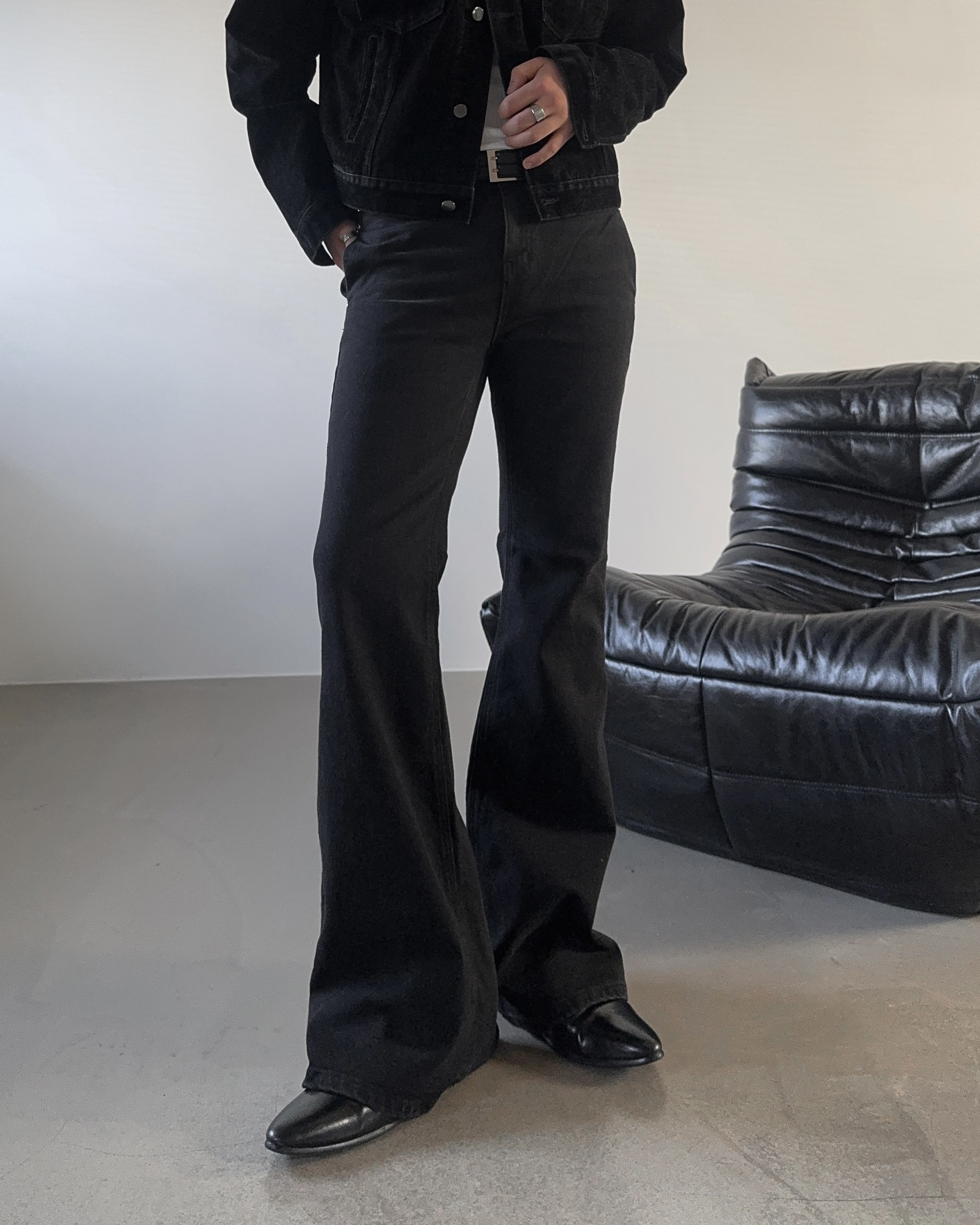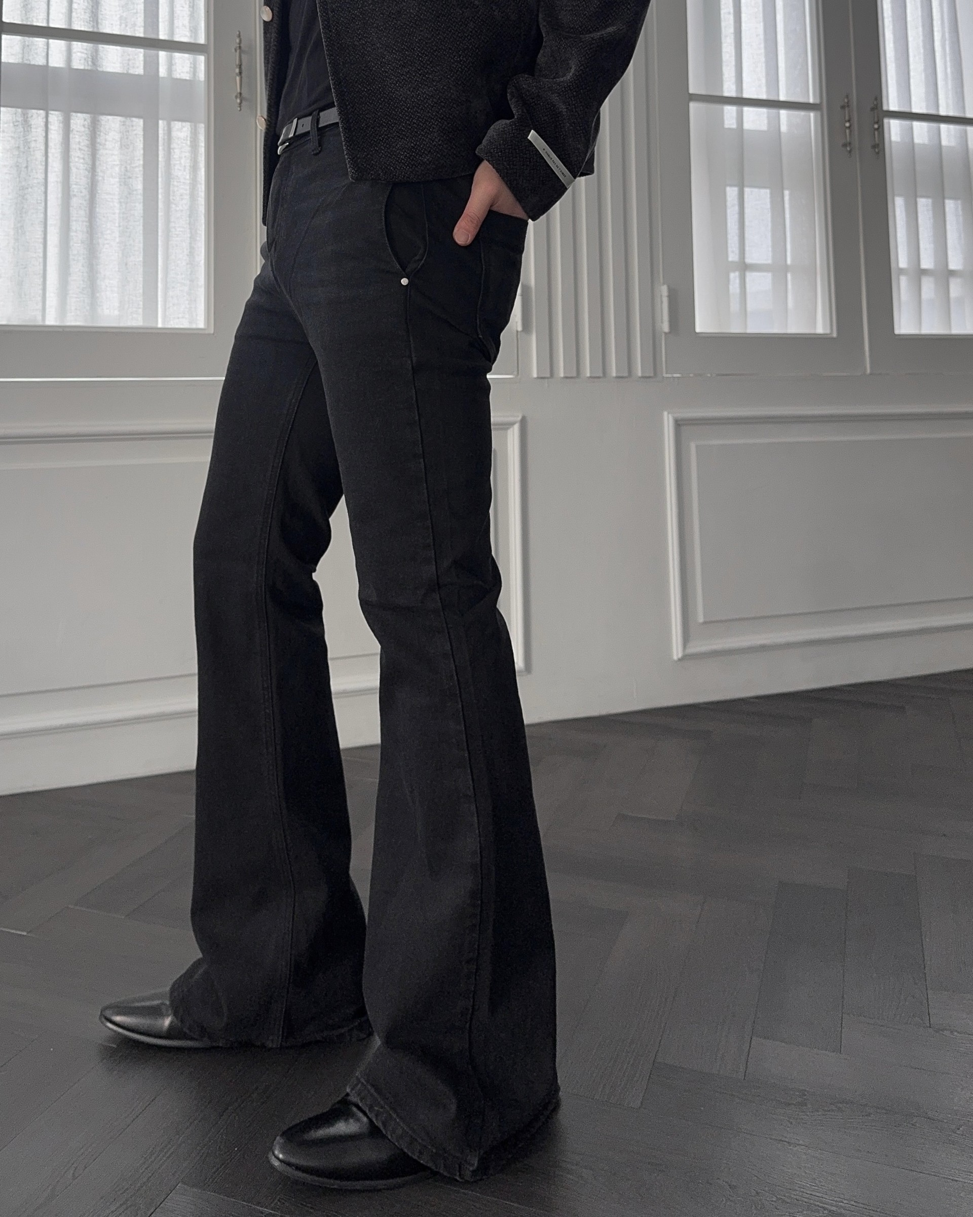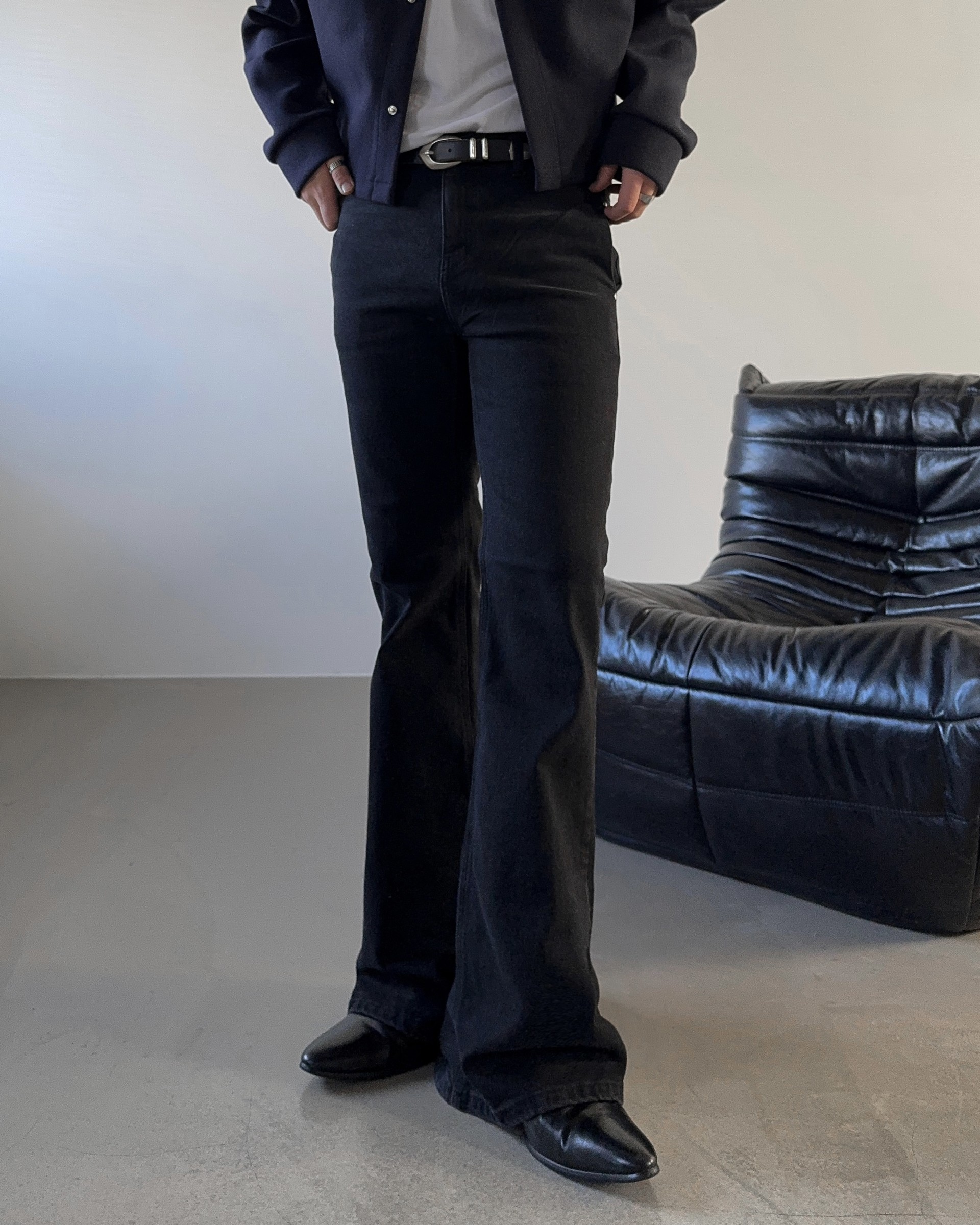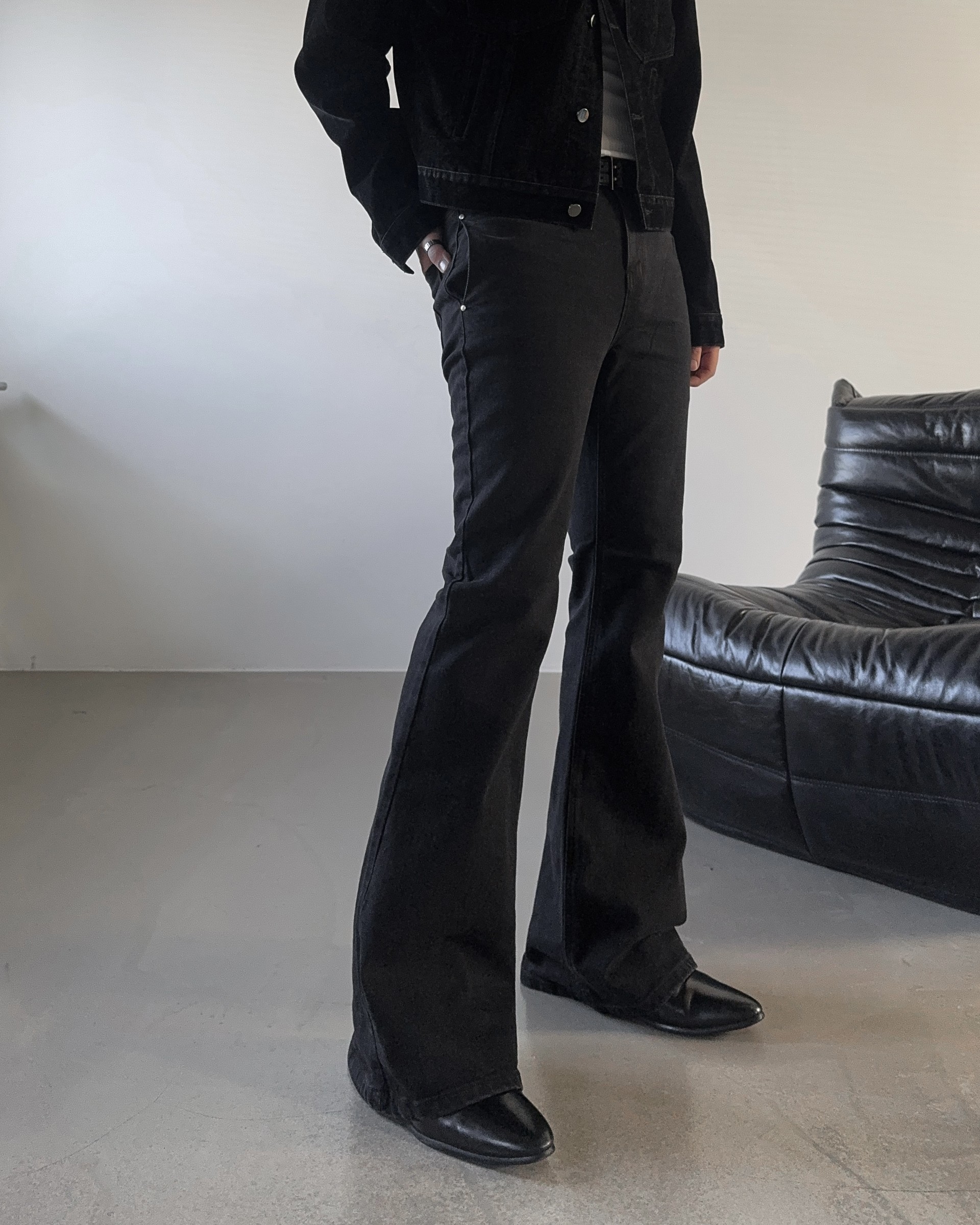 -탄탄한 코튼 소재로 제작된 플레어 데님 팬츠