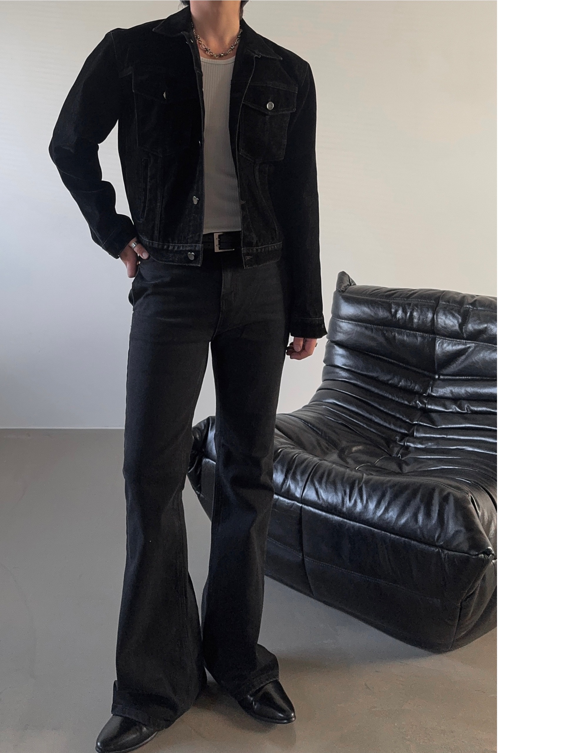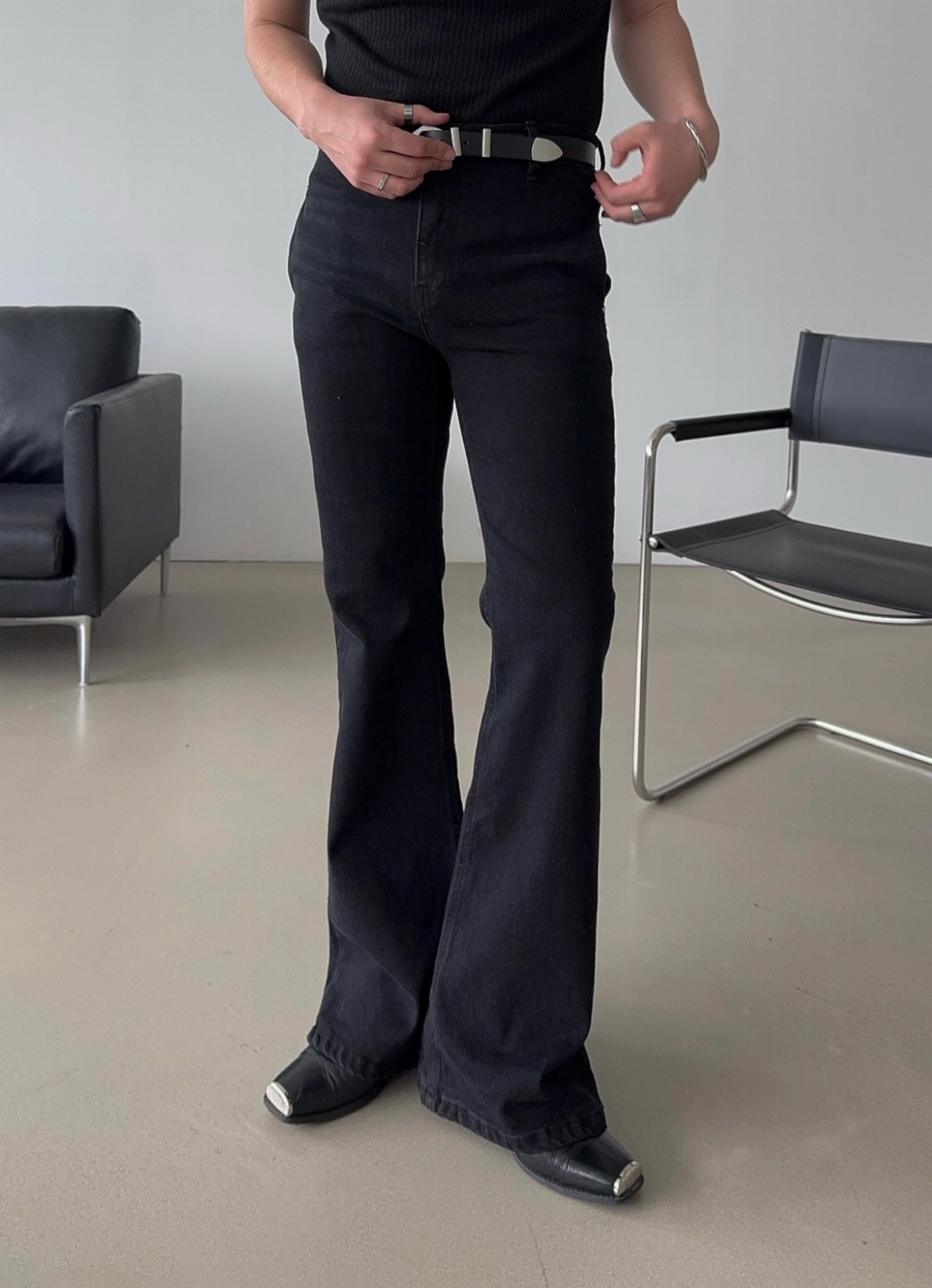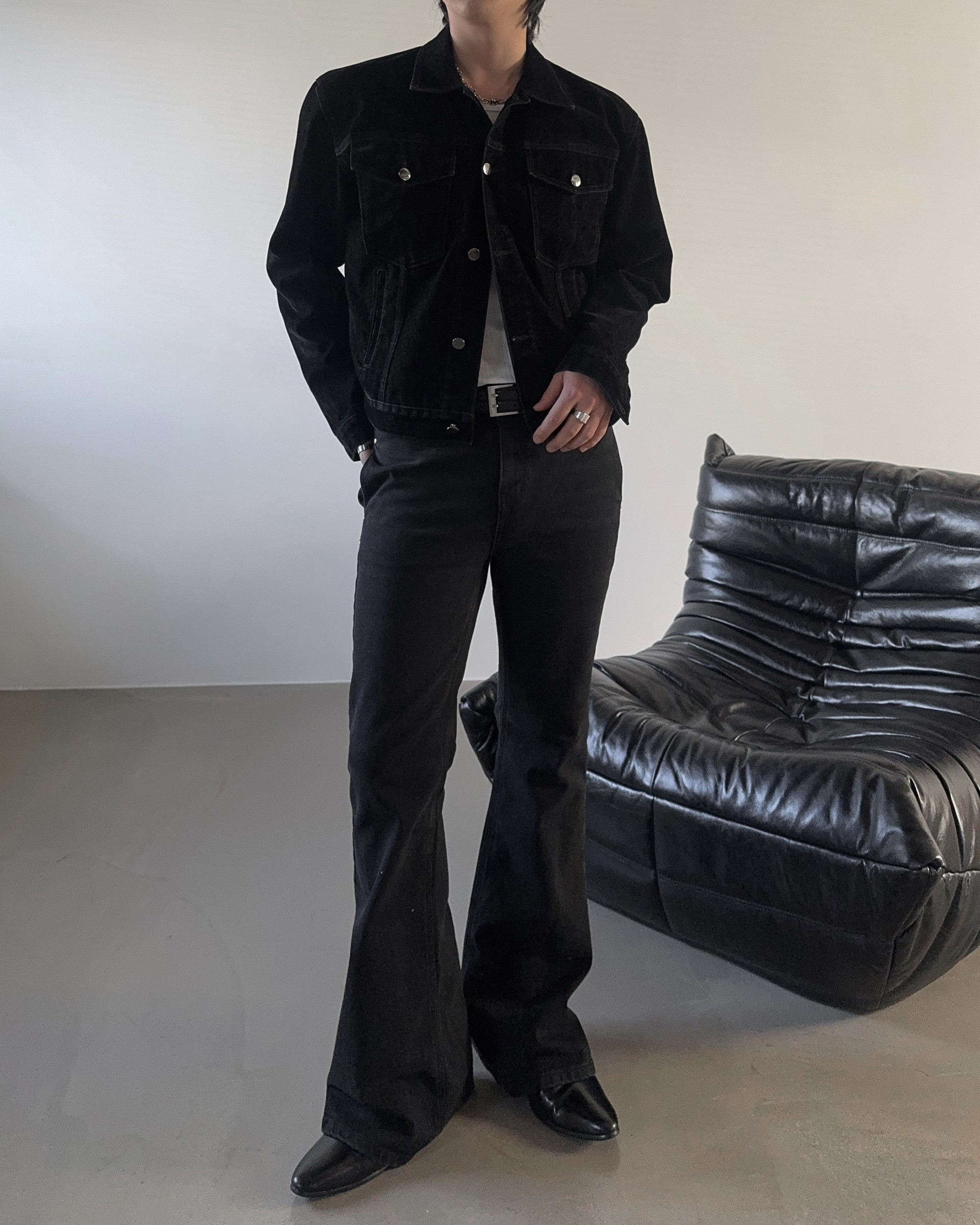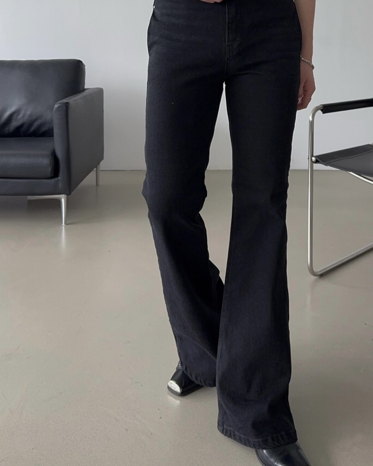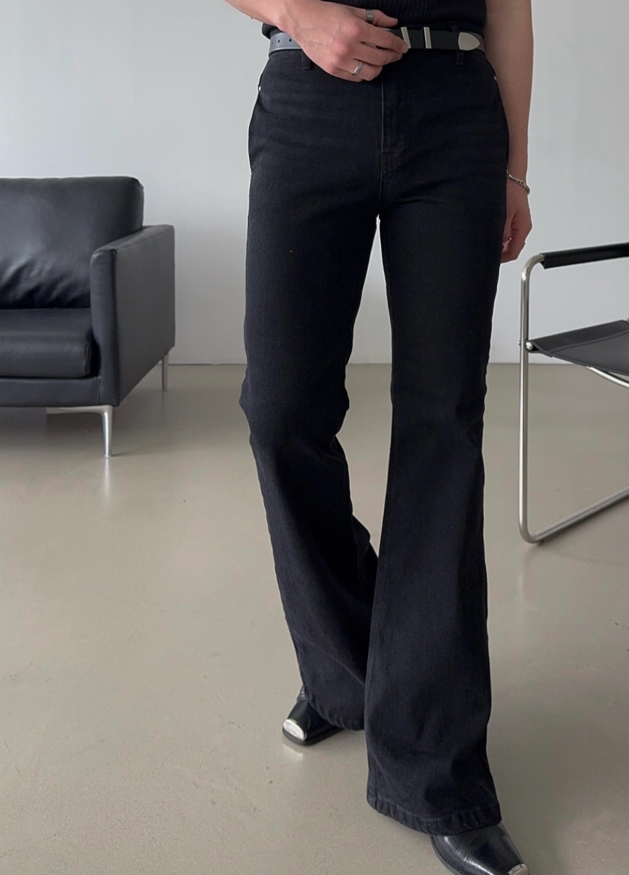 -탄탄한 코튼 소재로 제작된 플레어 데님 팬츠