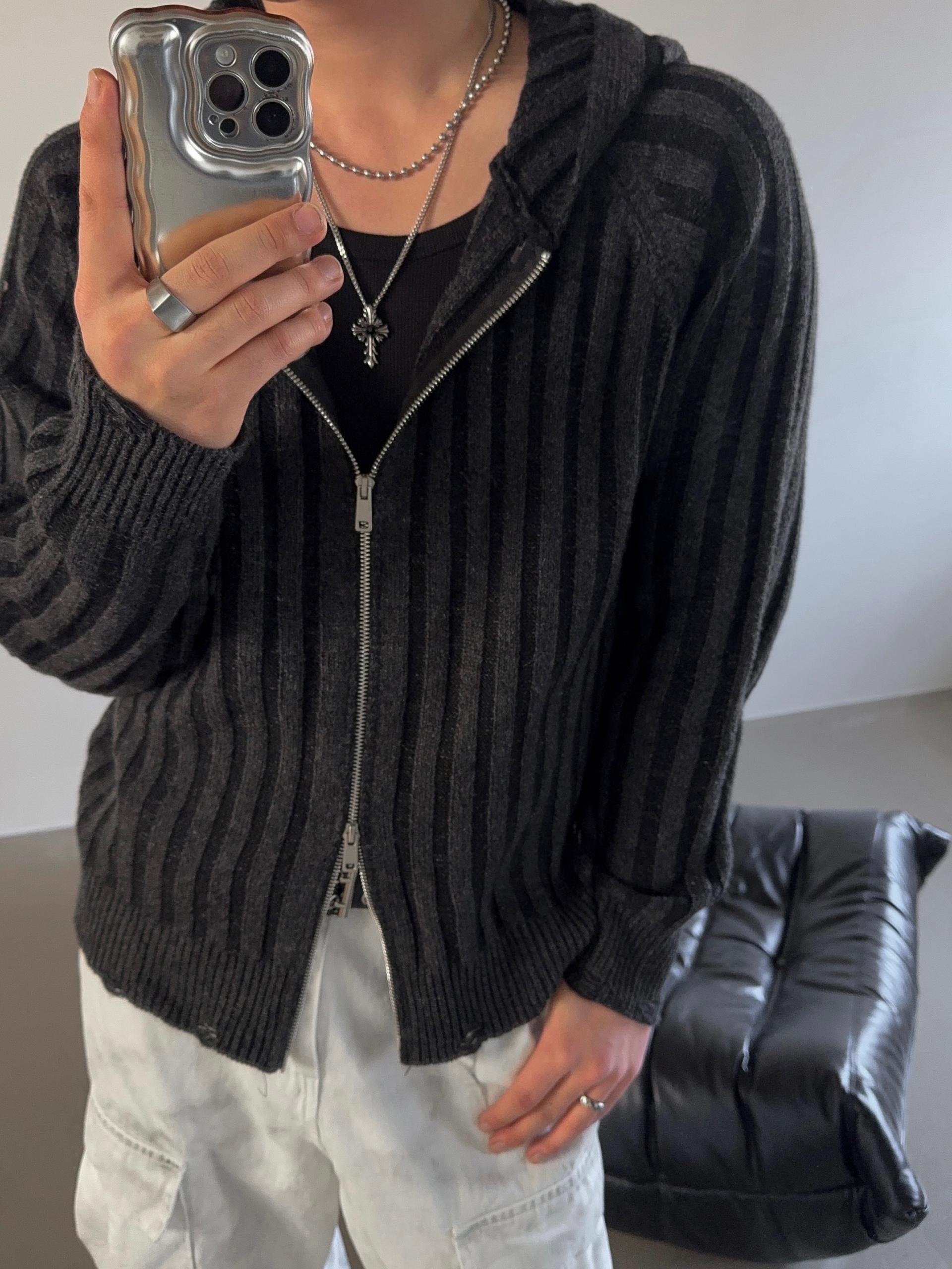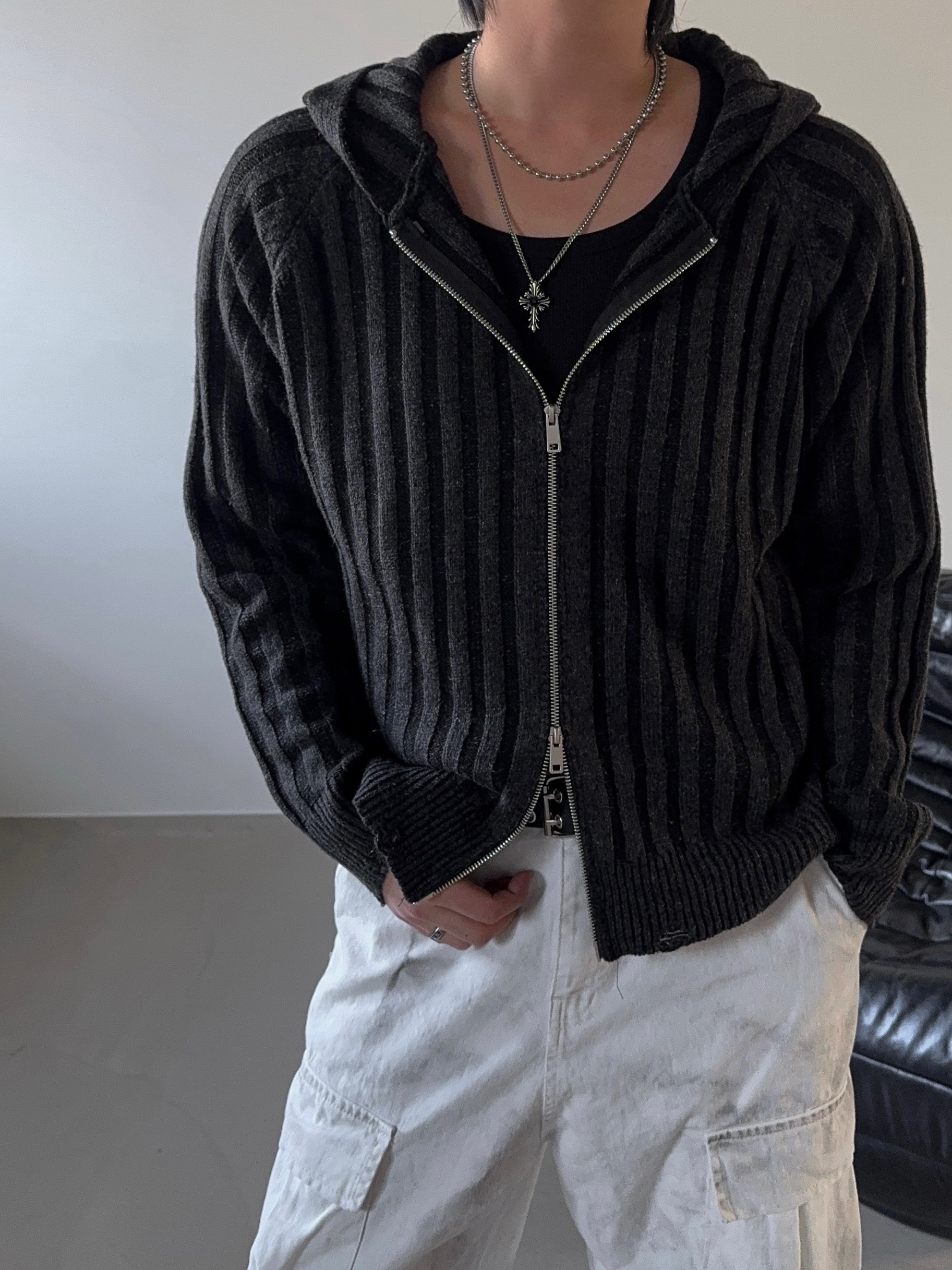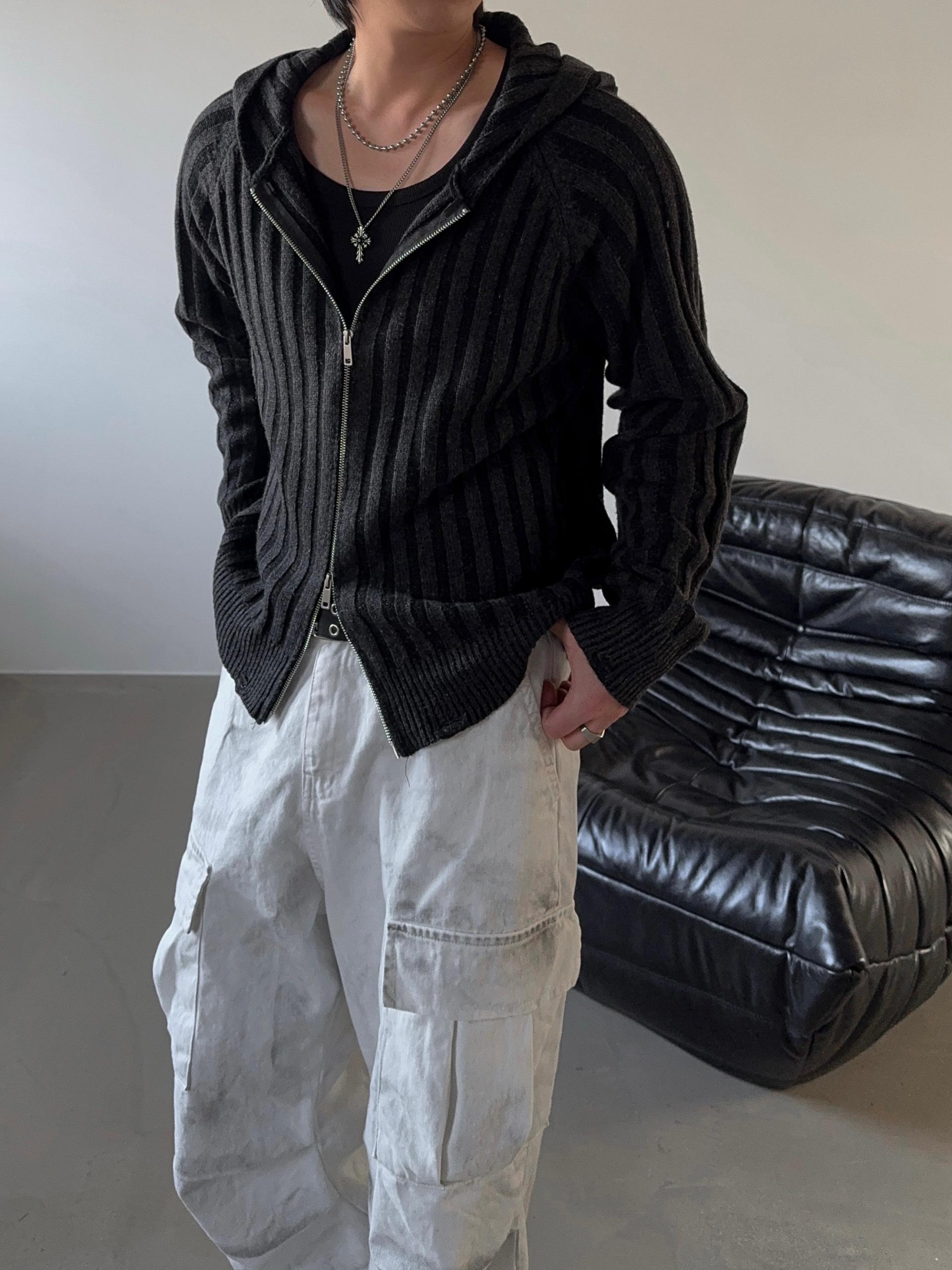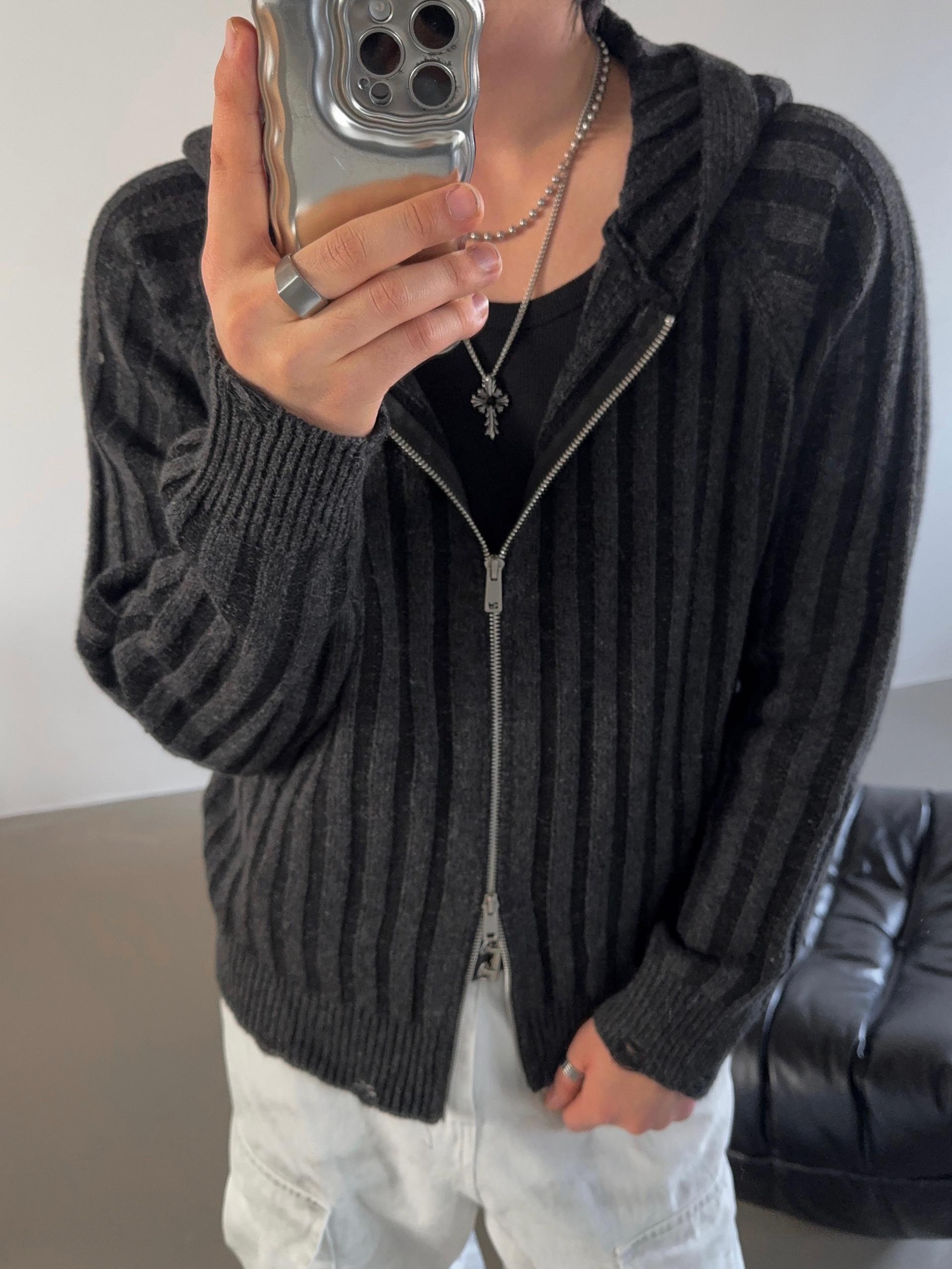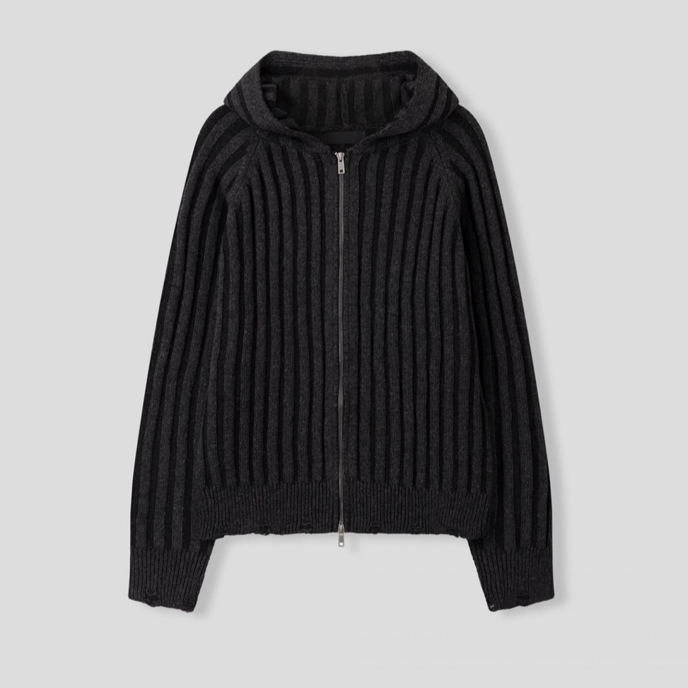 -울 혼방 조직으로 제작된 니트 후드 집업