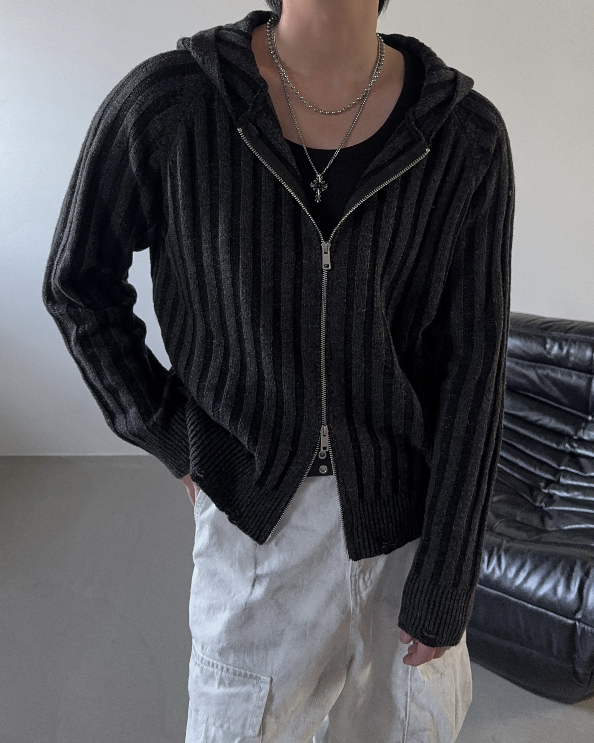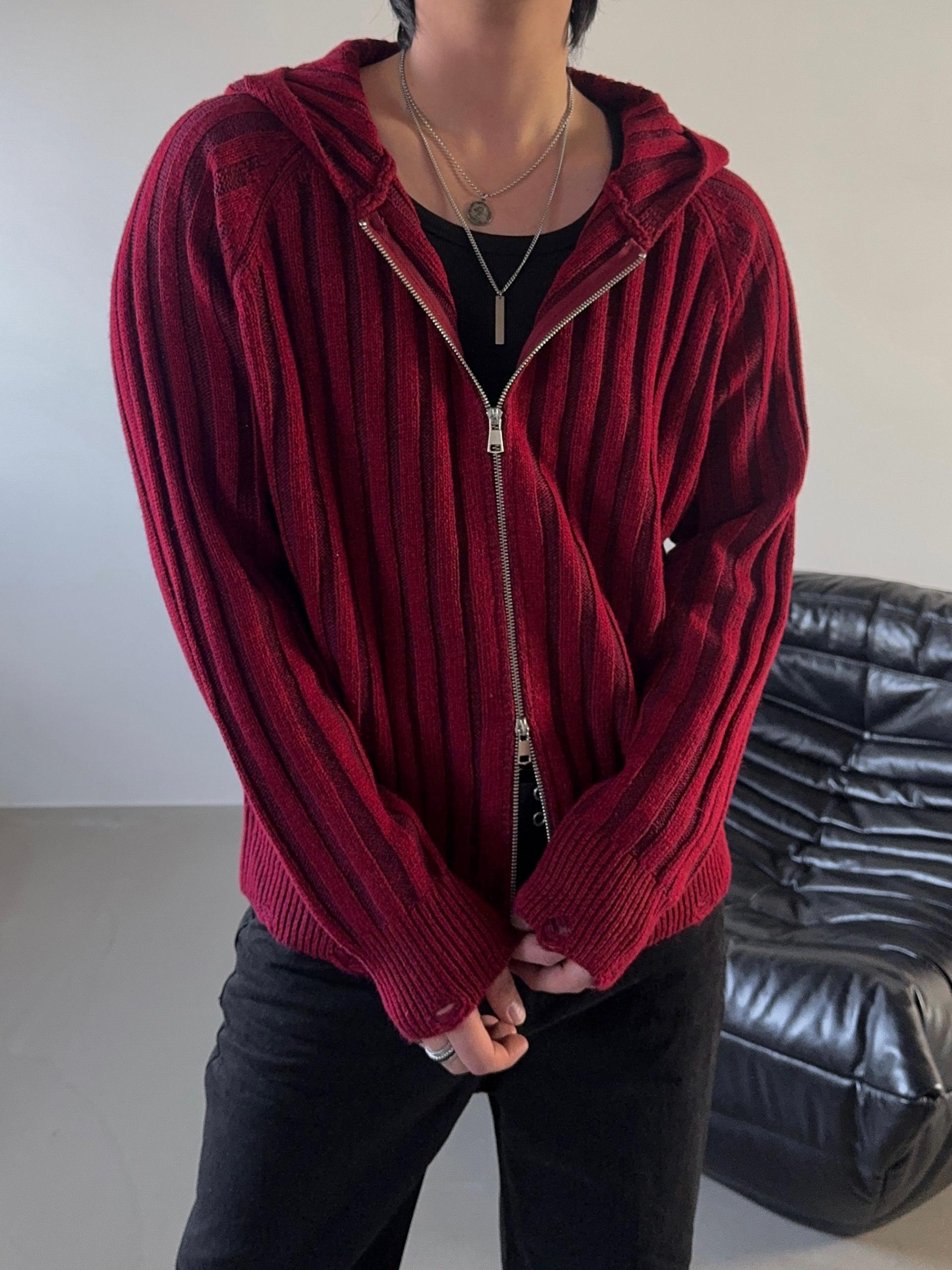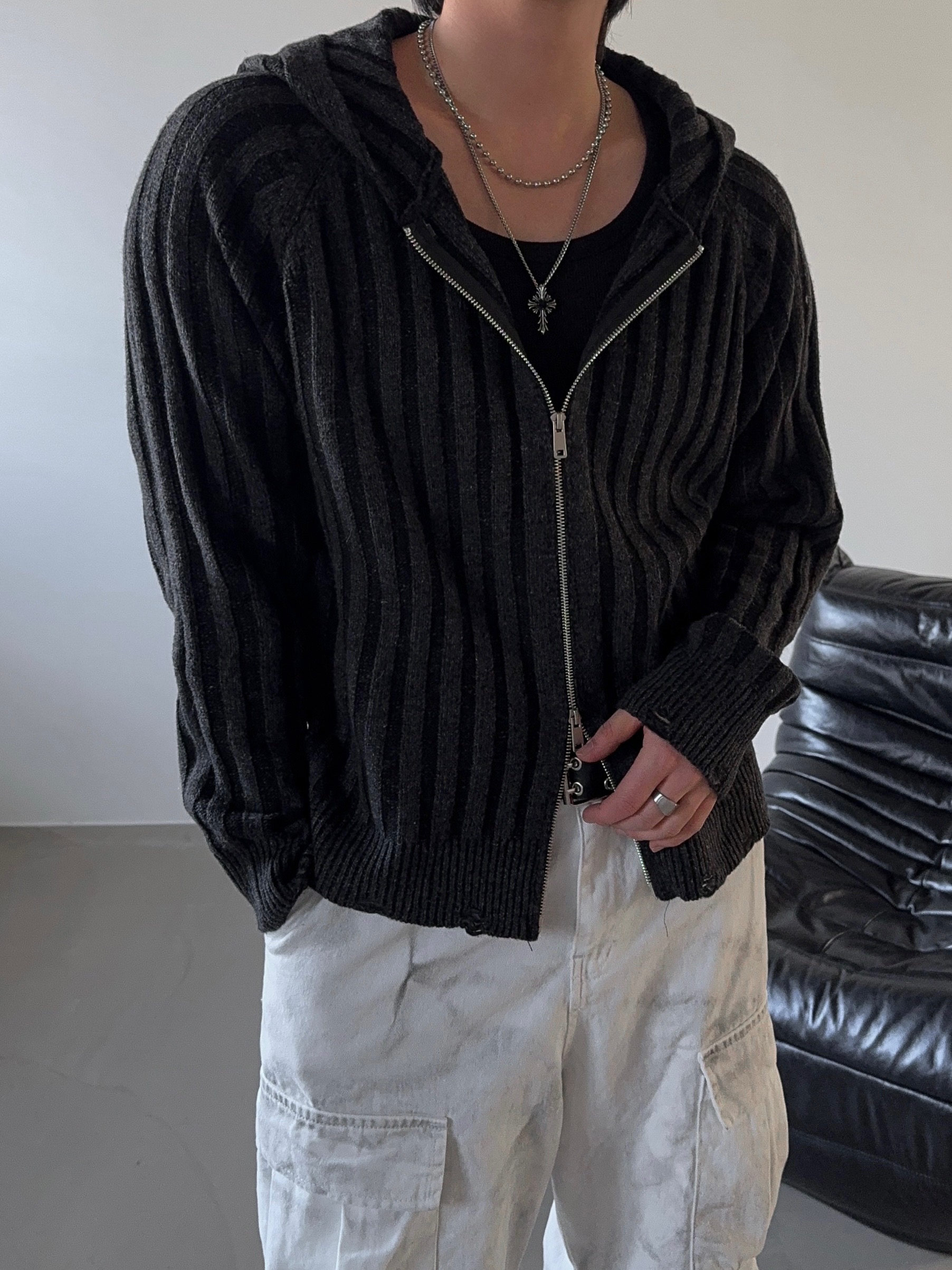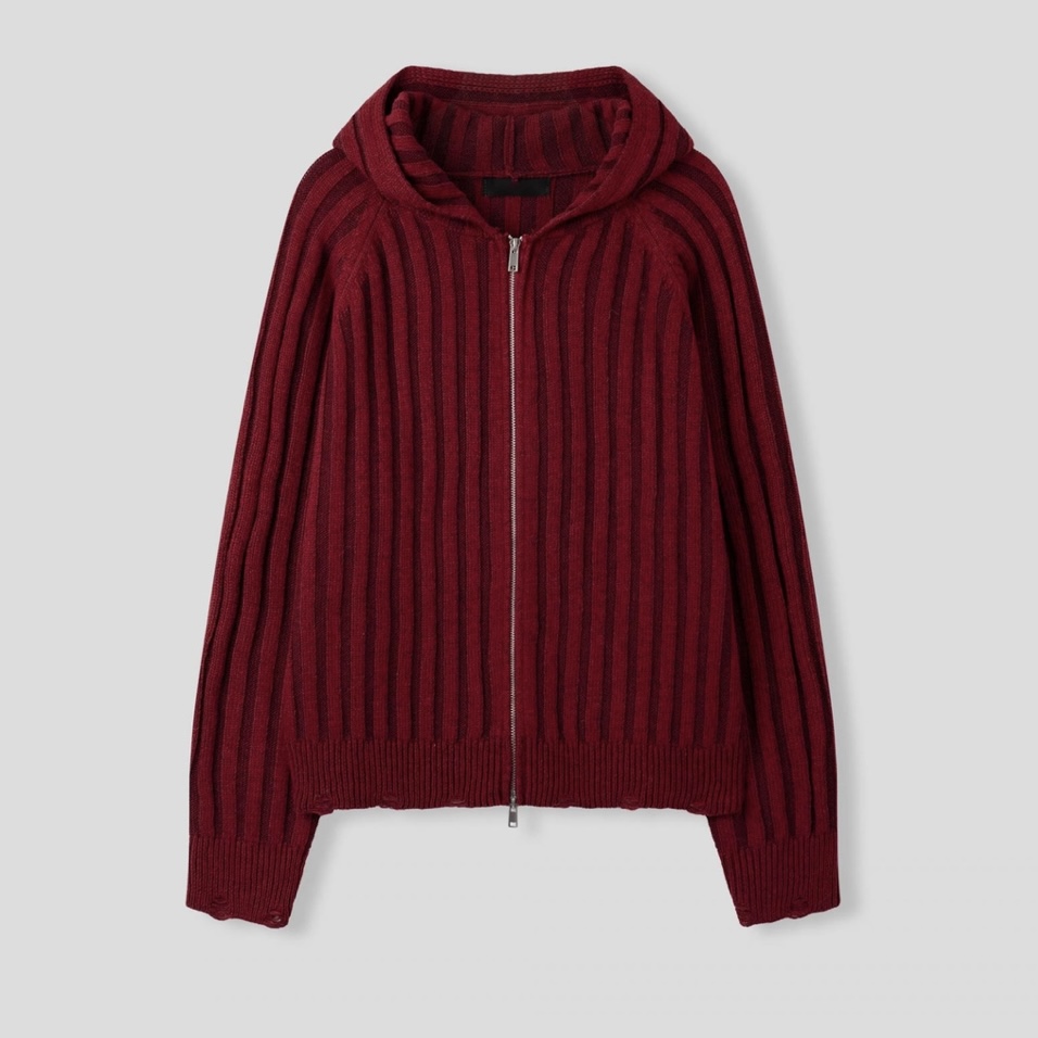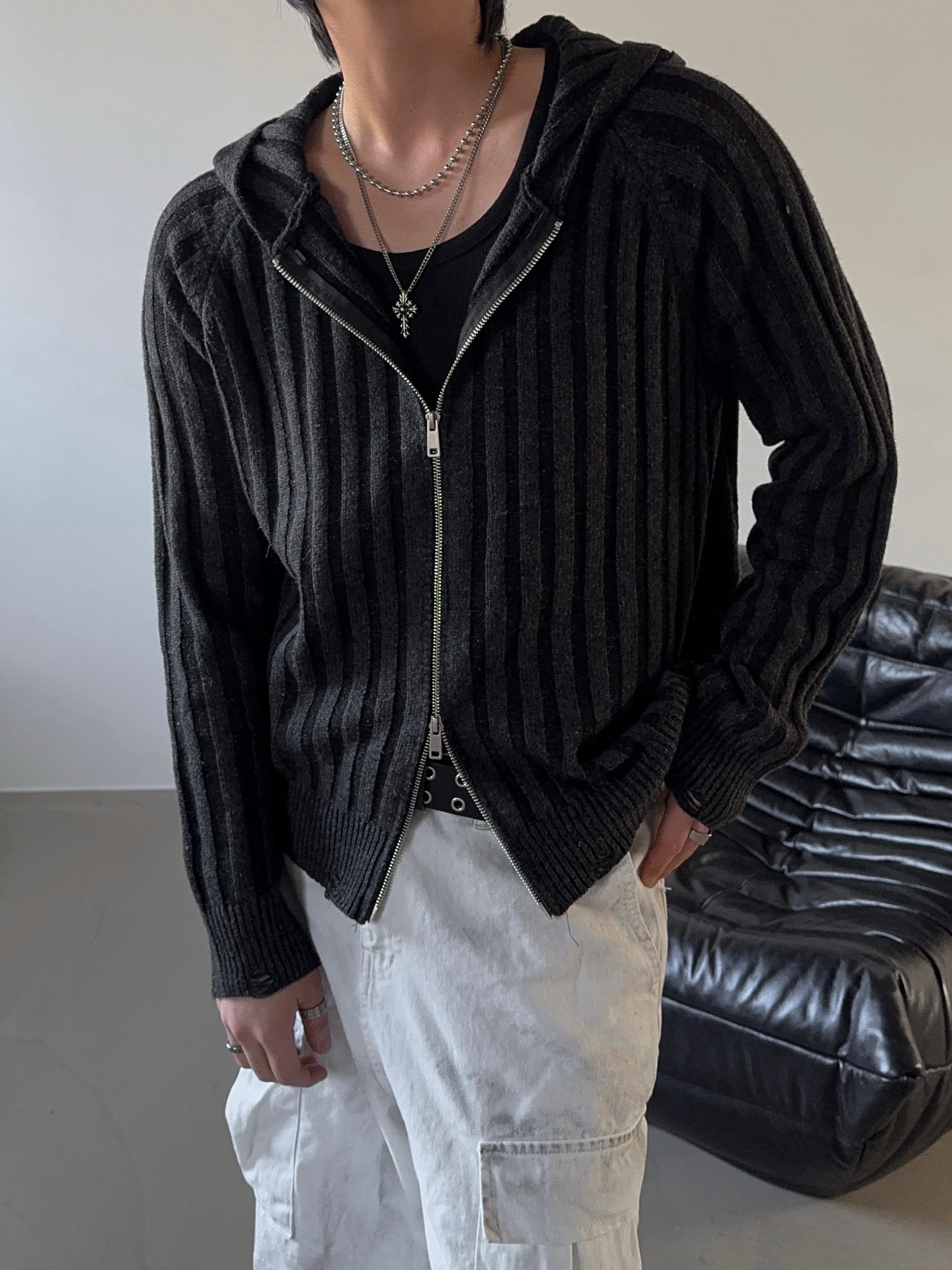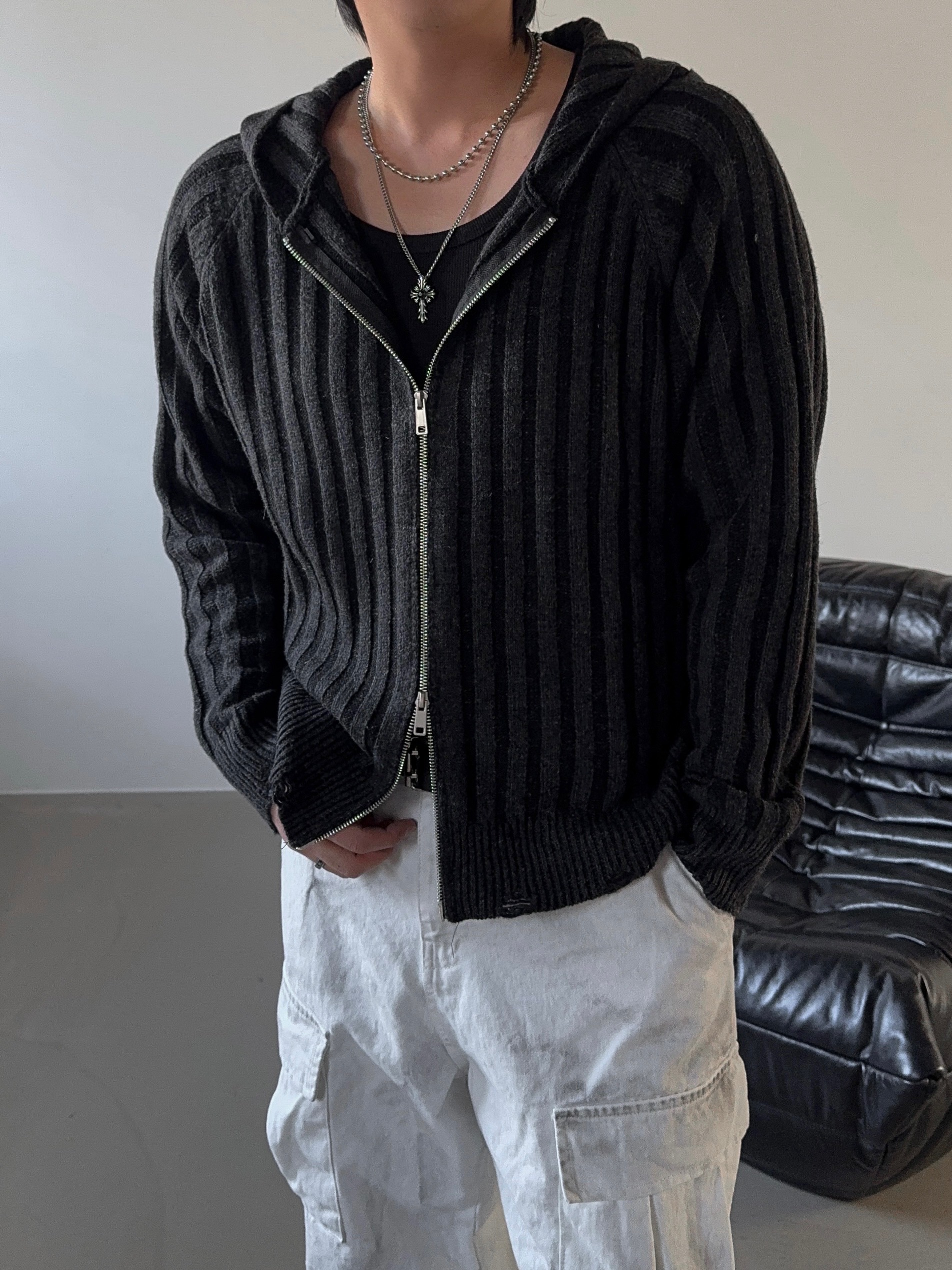 -울 혼방 조직으로 제작된 니트 후드 집업