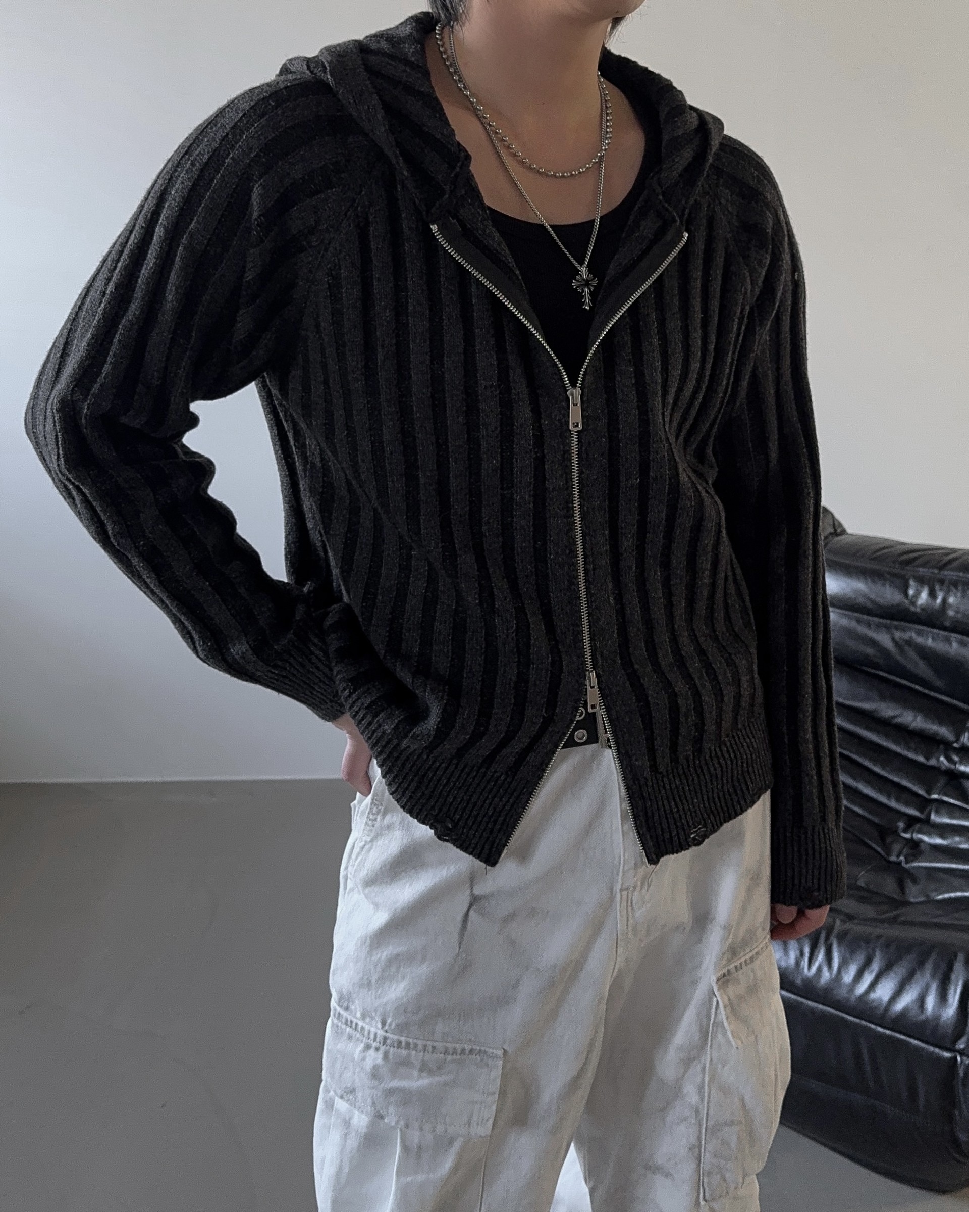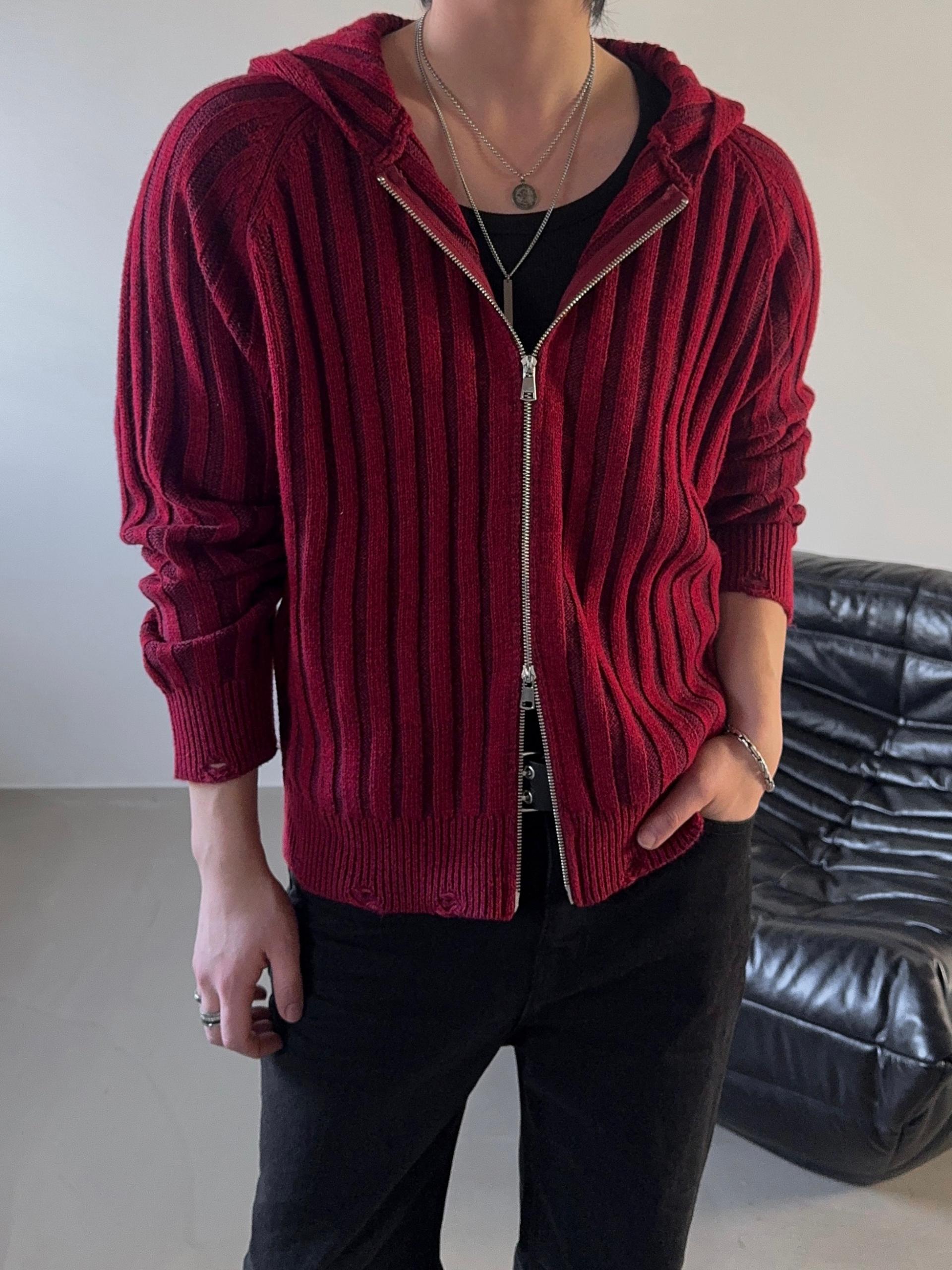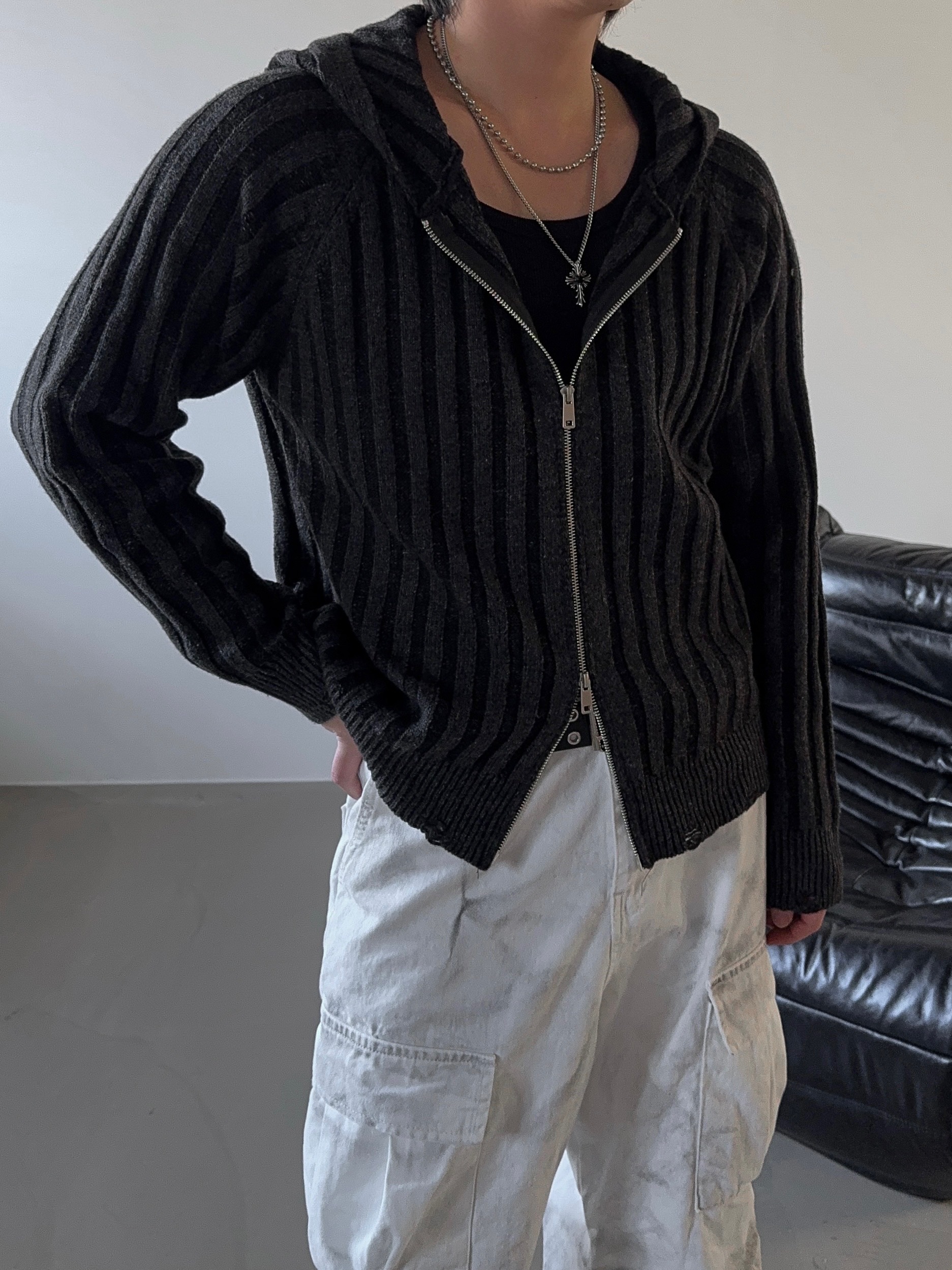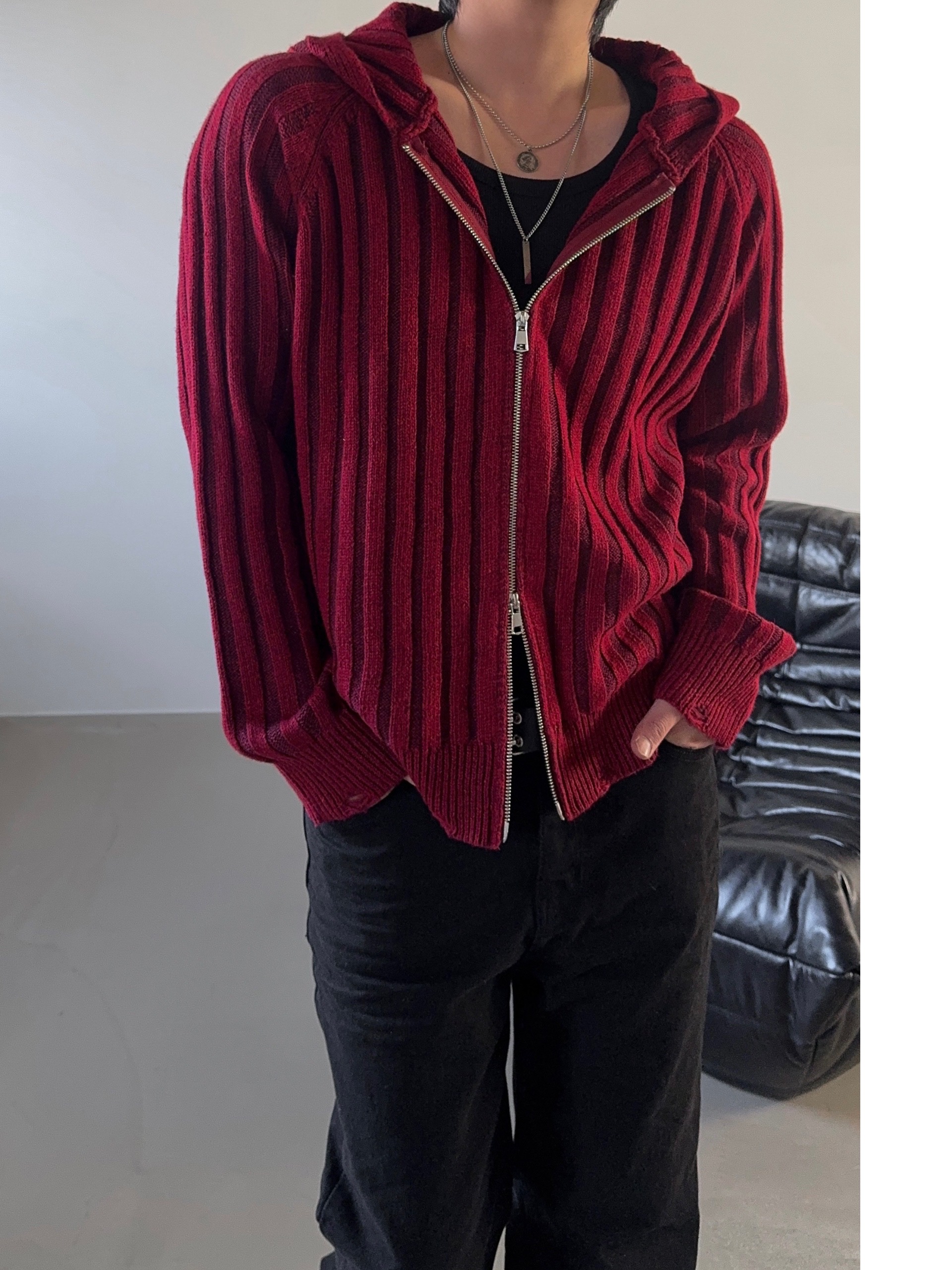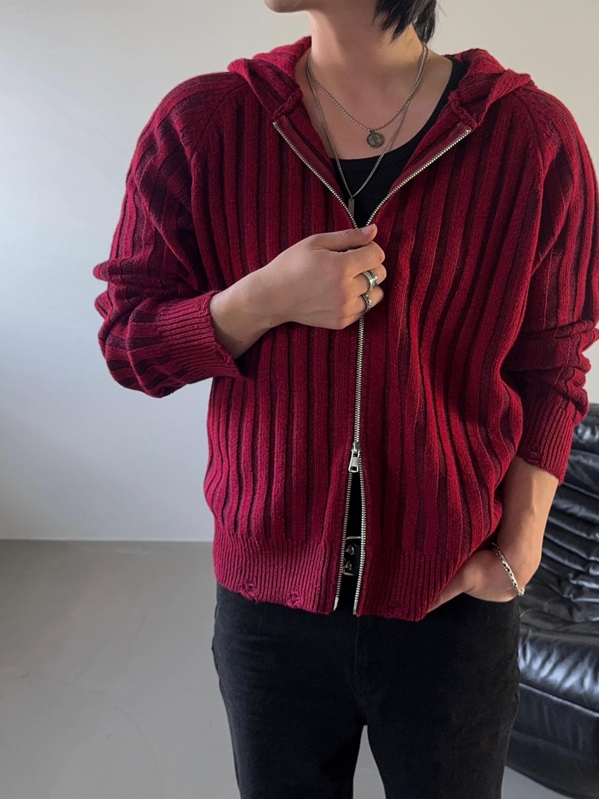 -울 혼방 조직으로 제작된 니트 후드 집업